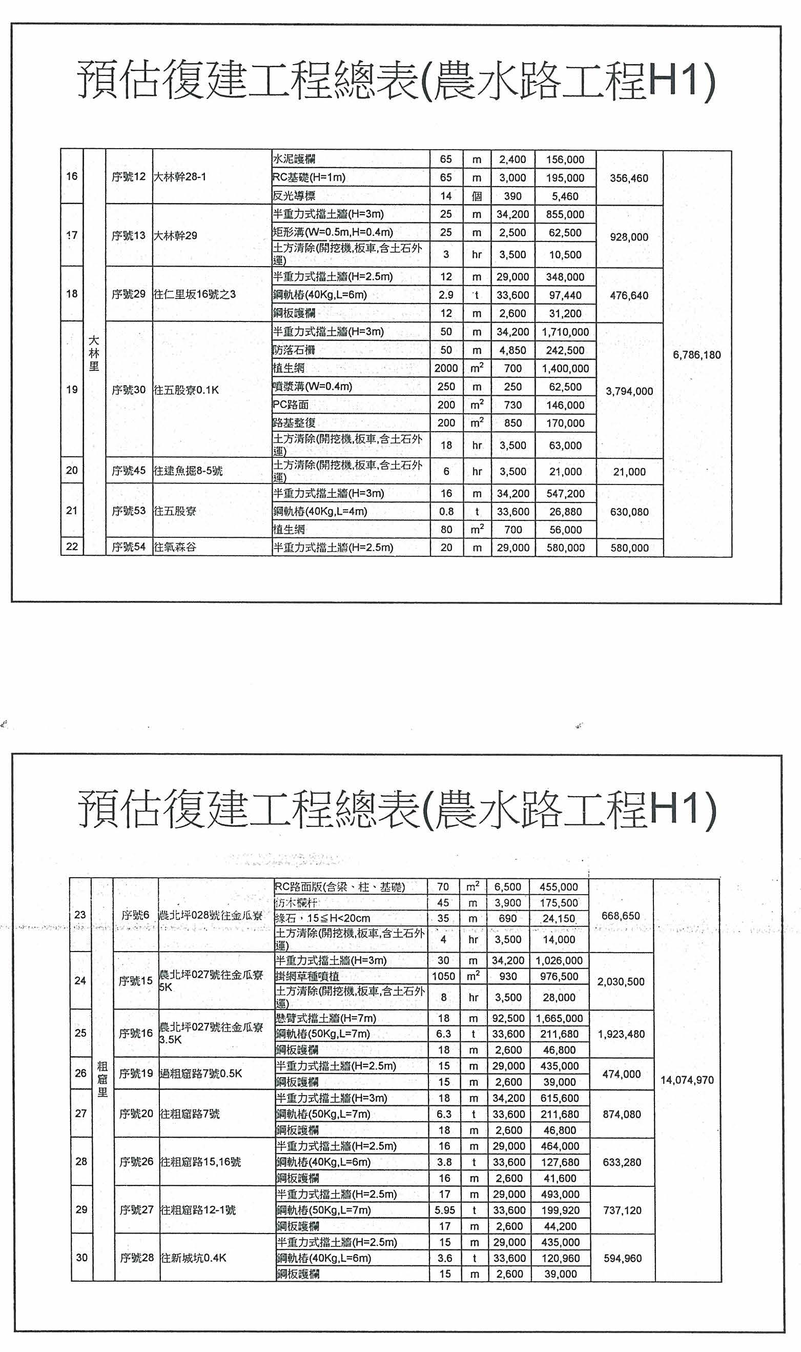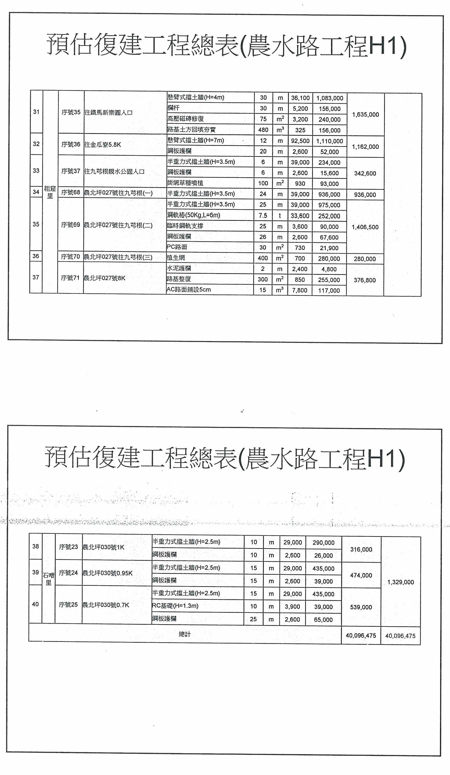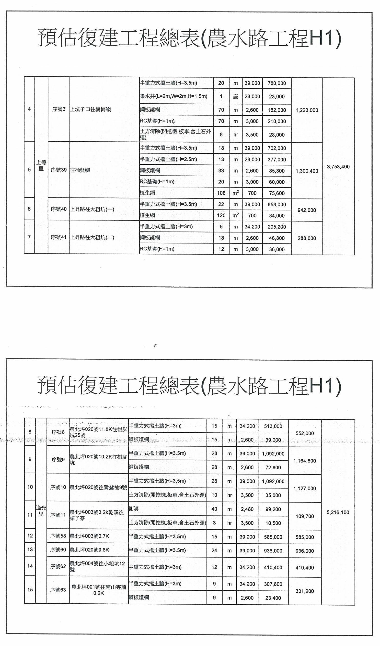 陳主任委員保基:以前我們從來沒有把治水計畫放在最關鍵的農業生產區和養殖區,所以到最後損失都是由農委會以天然災害救助金來賠,這是不對的,所以院長特別把這兩個項目匡進來,這兩個項目的錢不多。