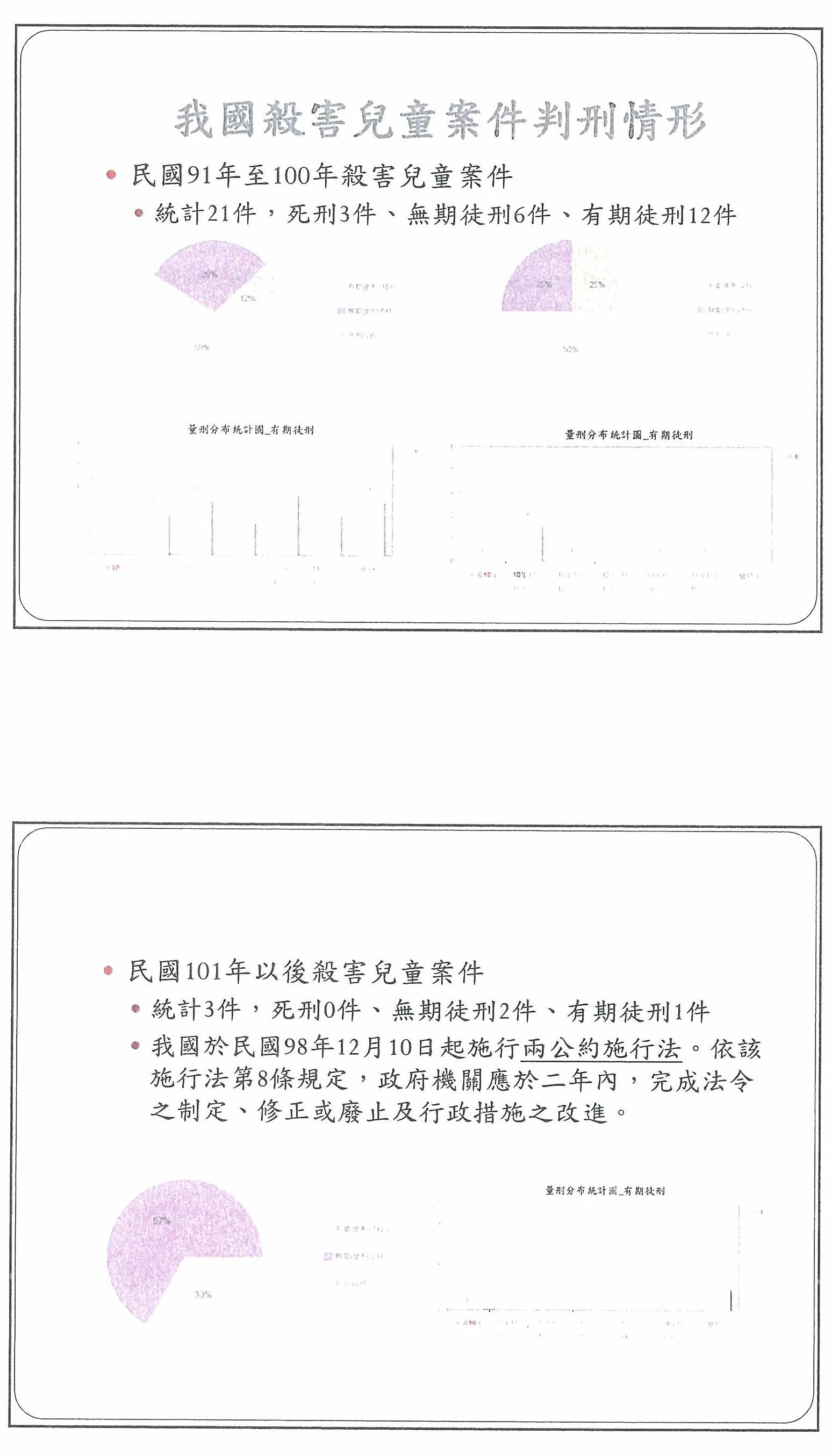 立法院第9屆第1會期司法及法制委員會「刑法修正弒童處死刑或無期徒刑爭議」公聽會會議紀錄