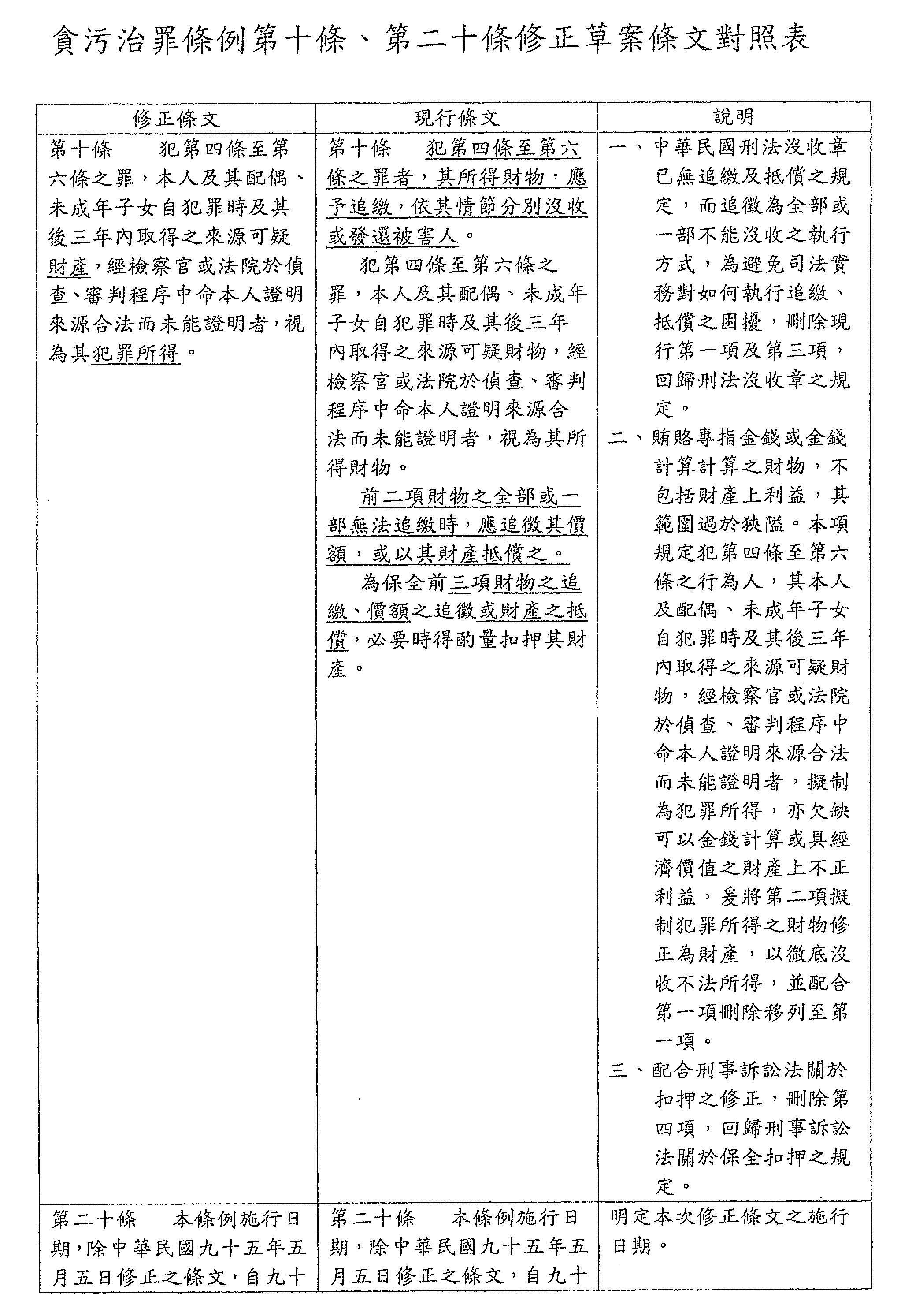 五、委員徐國勇等21人擬具「貪污治罪條例第十條及第二十條條文修正草案」