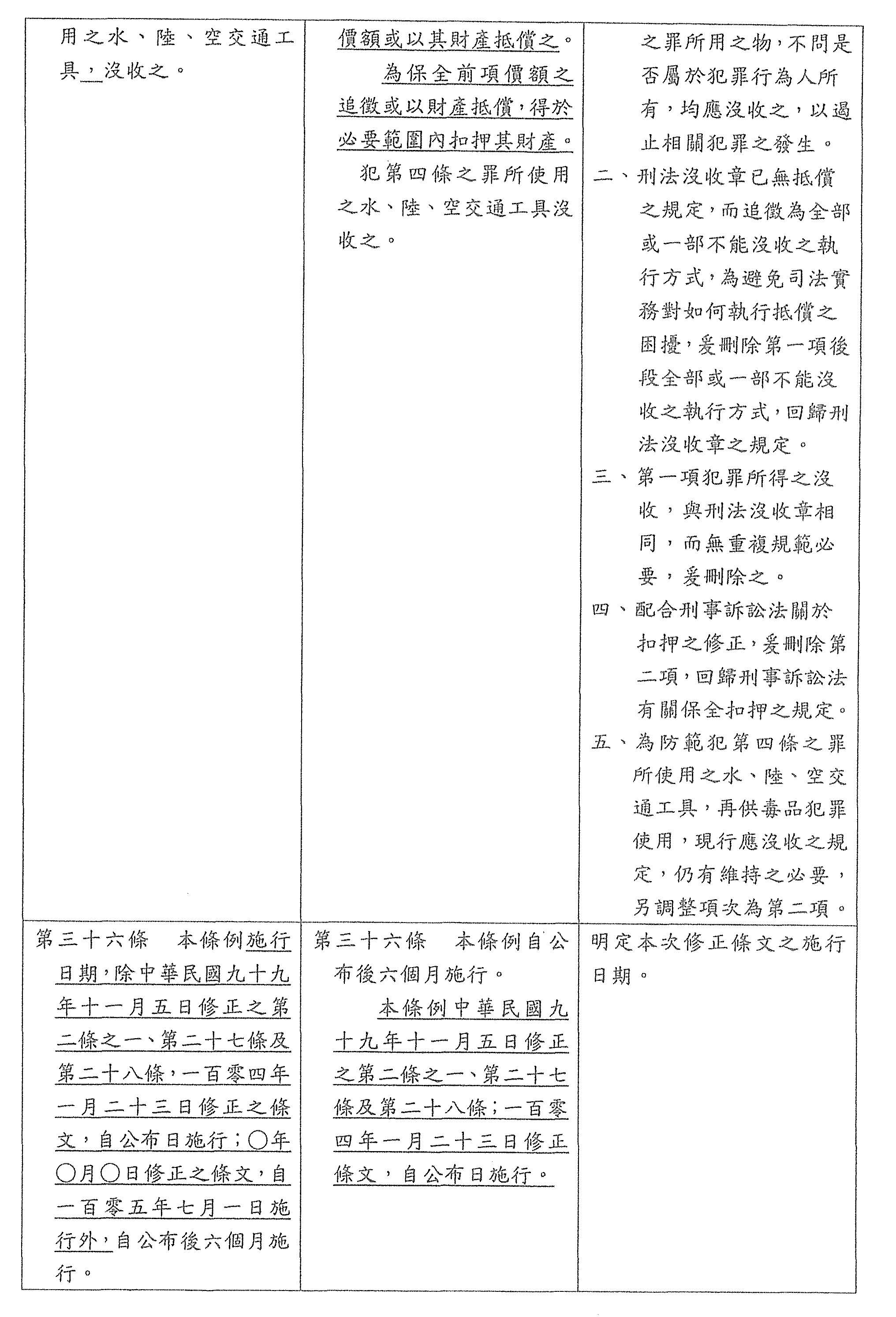 余副司長麗貞:這一條一樣配合,第一項把追徵、追繳的部分刪除,第二項也是刪除追徵、追繳的部分,第三項扣押的部分也是整個刪除。不過這一條我們要跟主席和各位委員報告,這是我們的疏漏啦!就是我們沒有提施行日期,所以可能就會發生7月1日如果審查通過的話,會不會造成不符合剛剛第十條之三第二項的問題。