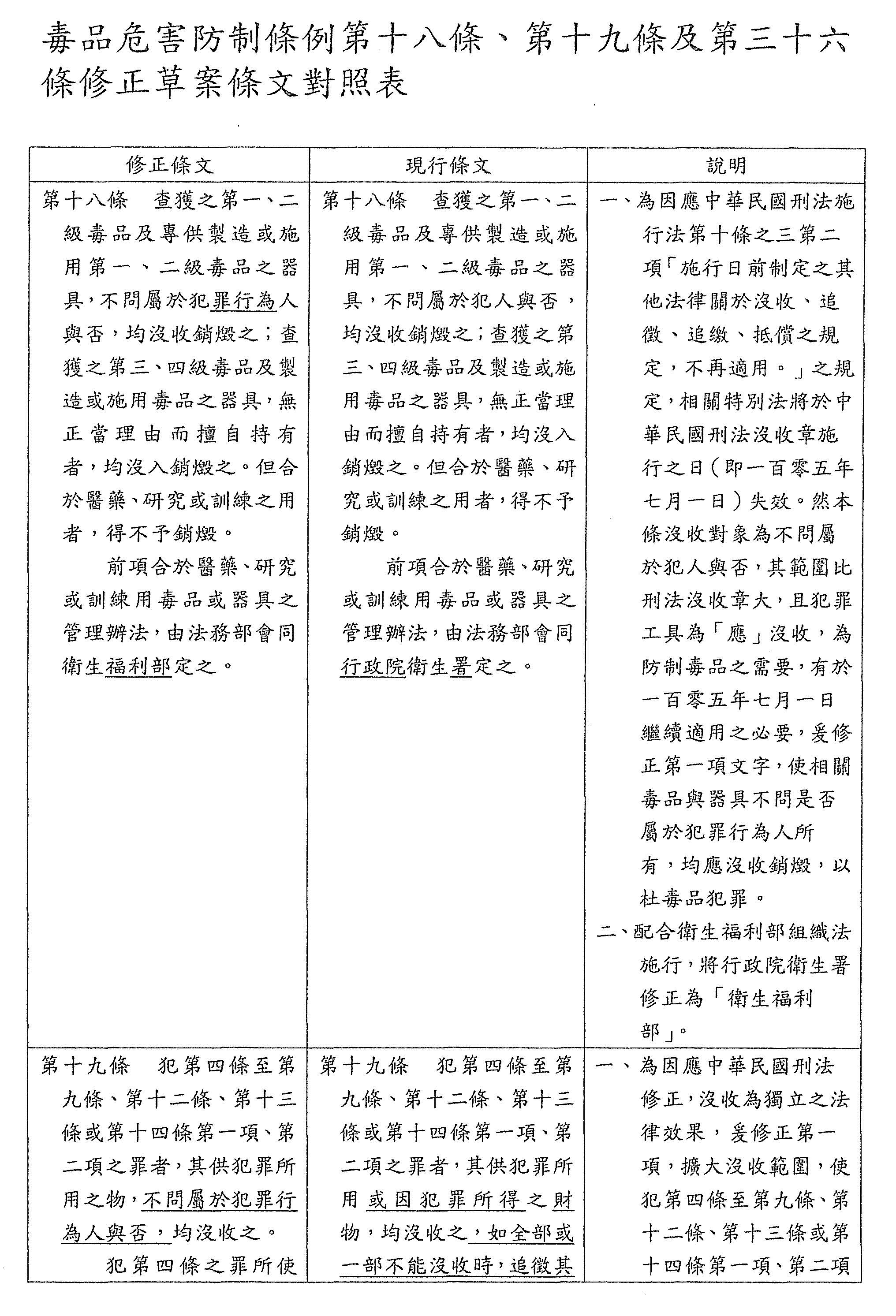 六、委員徐國勇等22人擬具「毒品危害防制條例第十八條、第十九條及第三十六條修正條文草案」