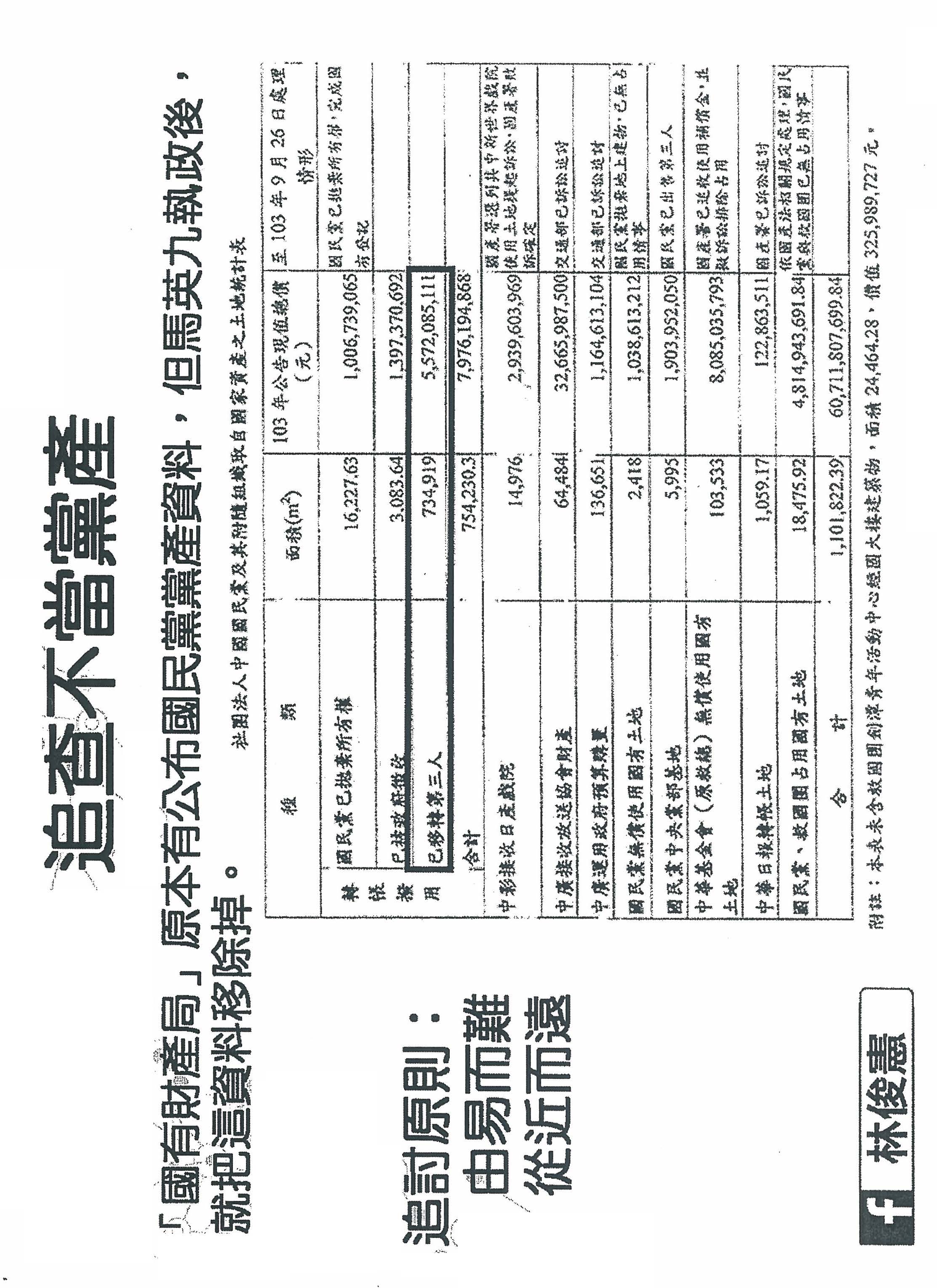 江委員永昌:(15時7分)主席、行政院林院長、各部會首長、各位同仁。院長好像身體不舒服,可以就坐無妨。今天早上不當黨產處理委員會舉行聽證會,而有關中和的齊魯企業當年會向台灣省農工公司購得齊魯在南勢角的土地,其實本席也做了查證,也提供了資料。不過特別的是,我在查證的過程中,發現到一個怪怪的訊息,我不曉得是否有相關,也請你們去了解一下,到時也可以提供副主委他們去研究。這個奇怪點就是尹衍樑董事長,先前的浩鼎案也有看到他的身影,兆豐案鑒機的超貸也看到他與蔡友才前董事長的關係。而中和齊魯特種工業區總共12公頃,國民黨的中投公司底下的齊魯公司占有將近10公頃,而旁邊相鄰的土地也有尹衍樑董事長的身影,即華新段812地號、烘爐地段448地號。而且齊魯特種工業區在過去台北縣政府進行的都市計畫當中,他也曾陳情要求將特種工業區變更為住宅區。我提供這些資料,但沒有做任何指控,不過難免外界會有很多的懷疑,因此請你們去研究一下。