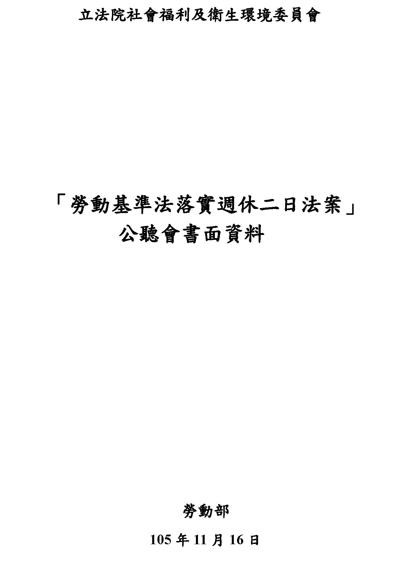 立法院第9屆第2會期社會福利及衛生環境委員會舉行「勞動基準法落實週休二日法案」公聽會會議紀錄