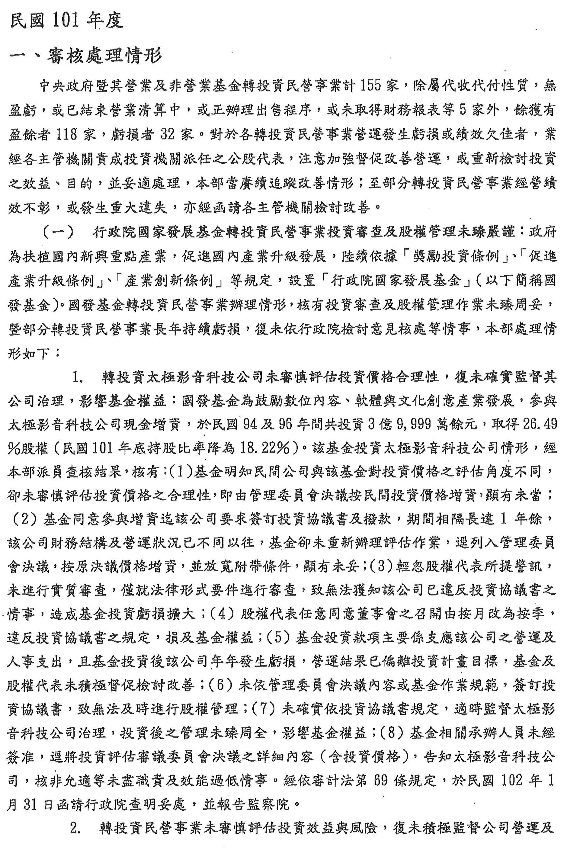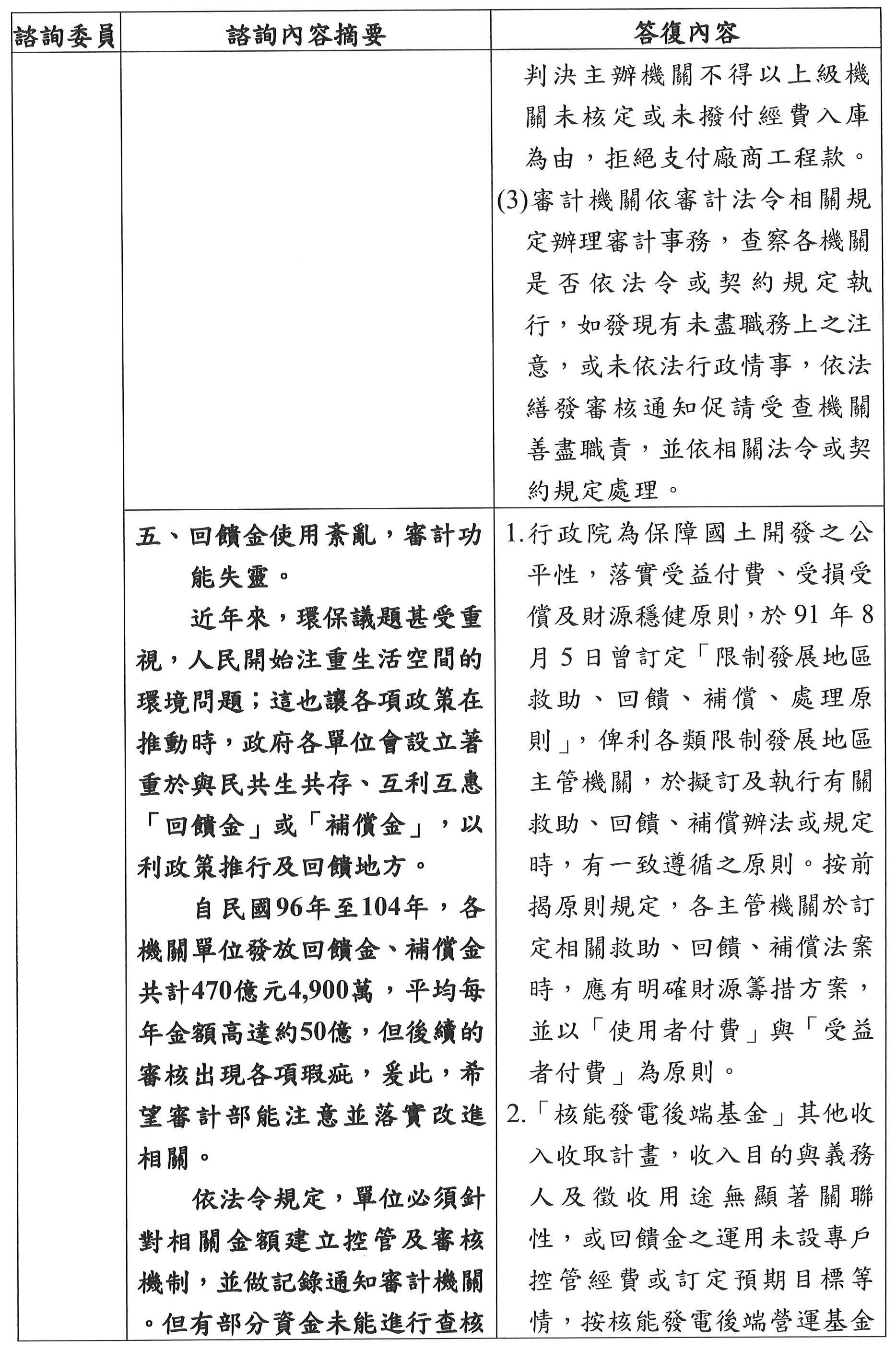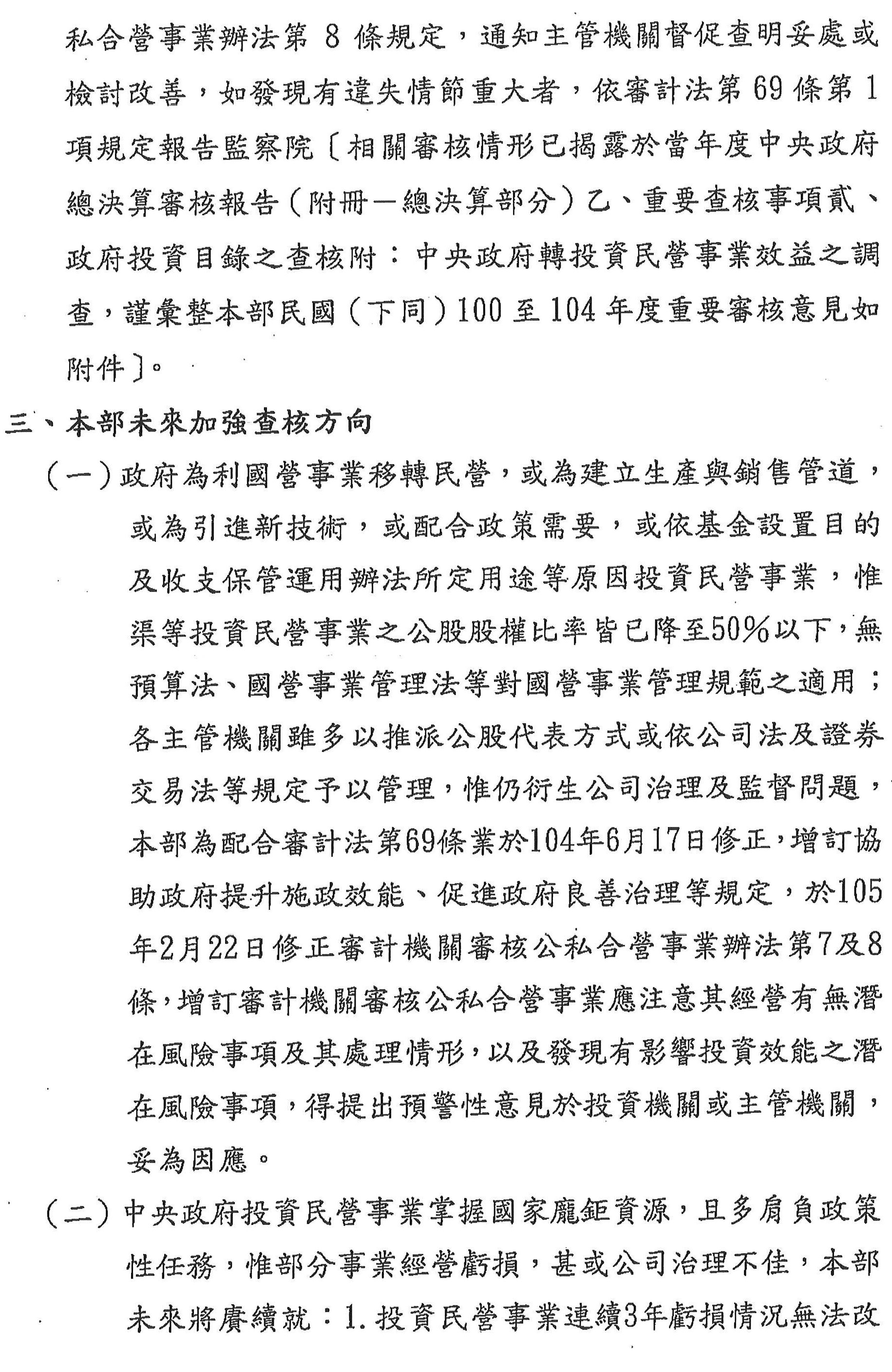 (審計部函 中華民國105年11月4日台審部國字第1050059709號)