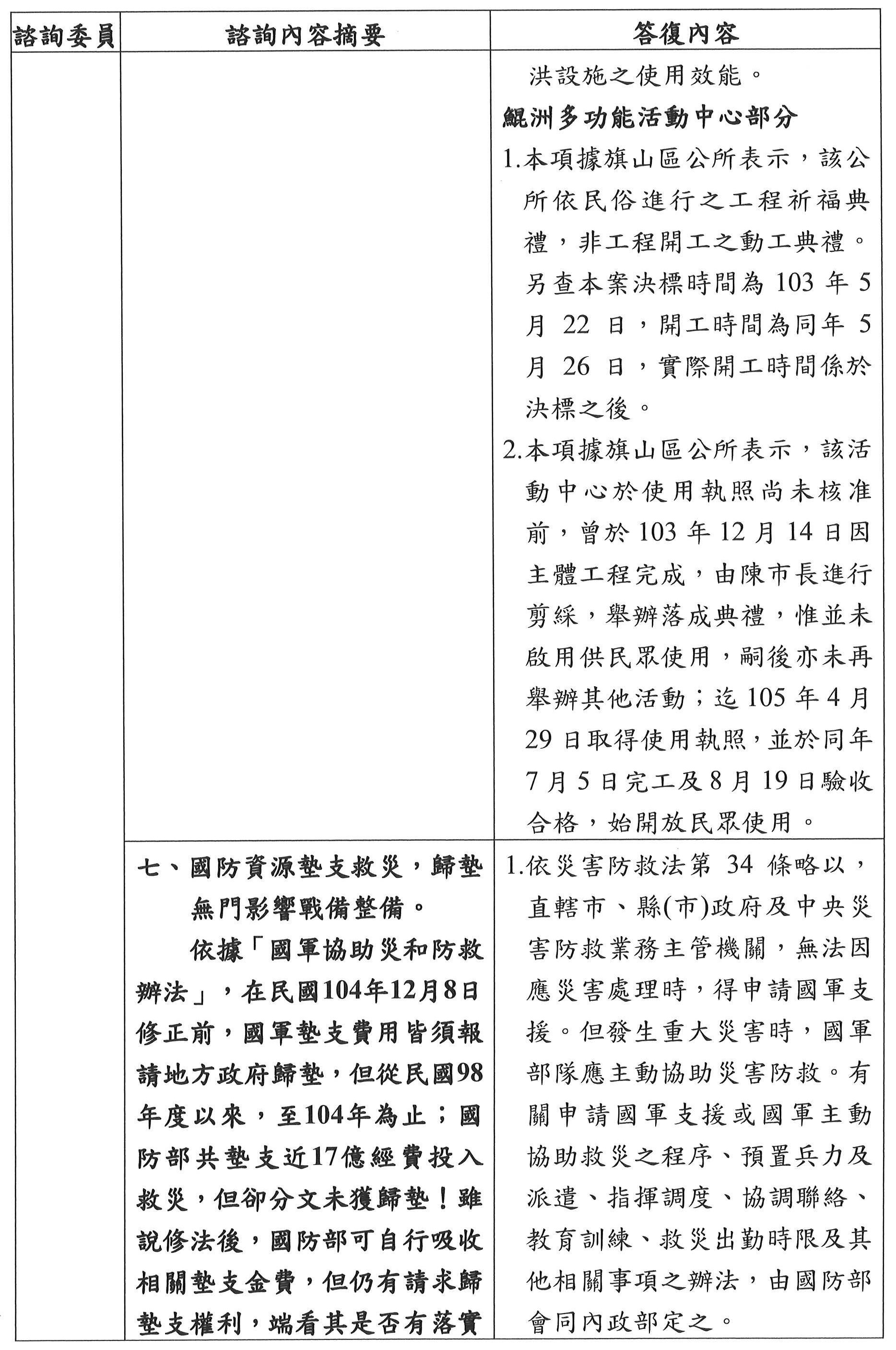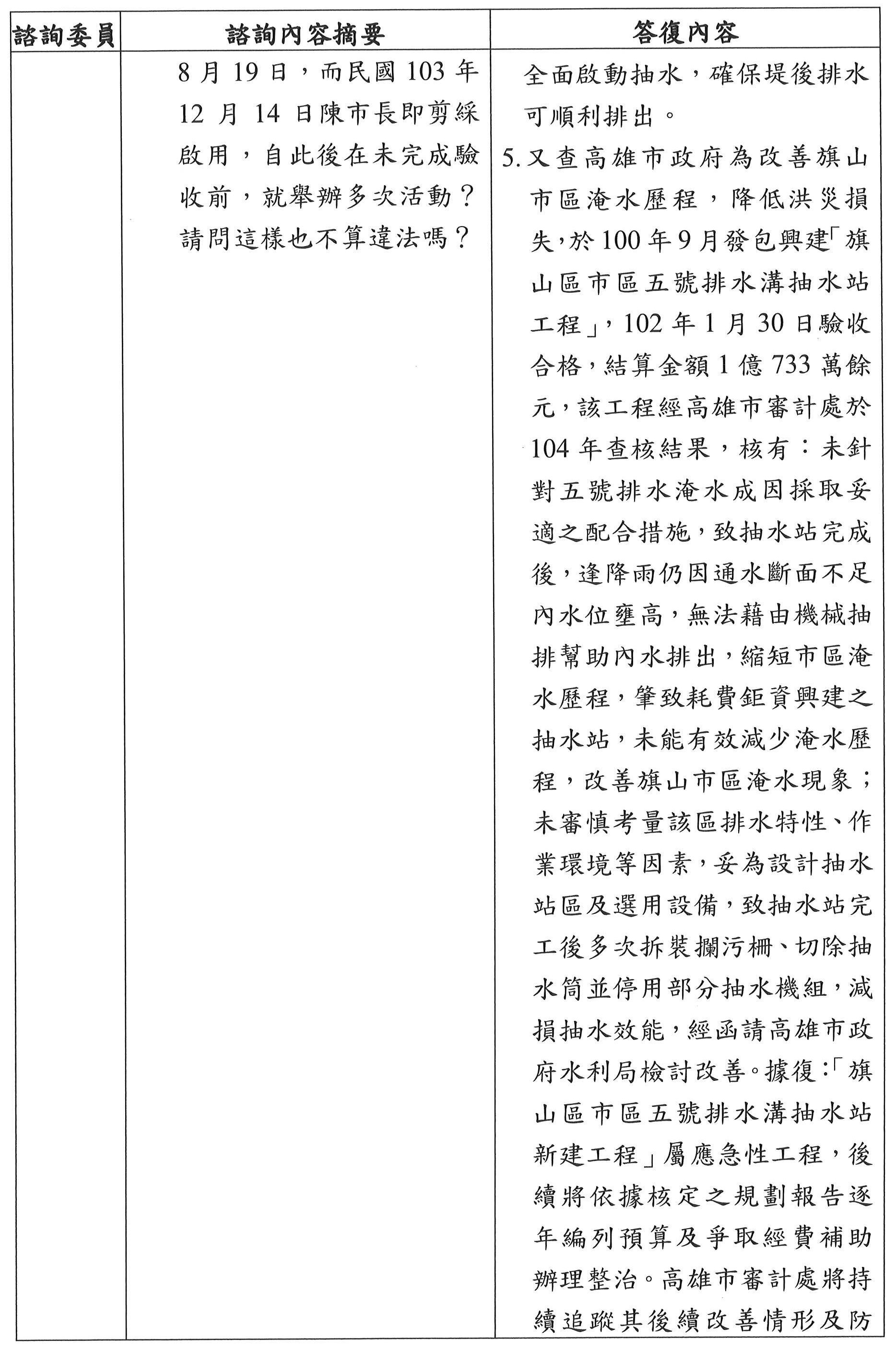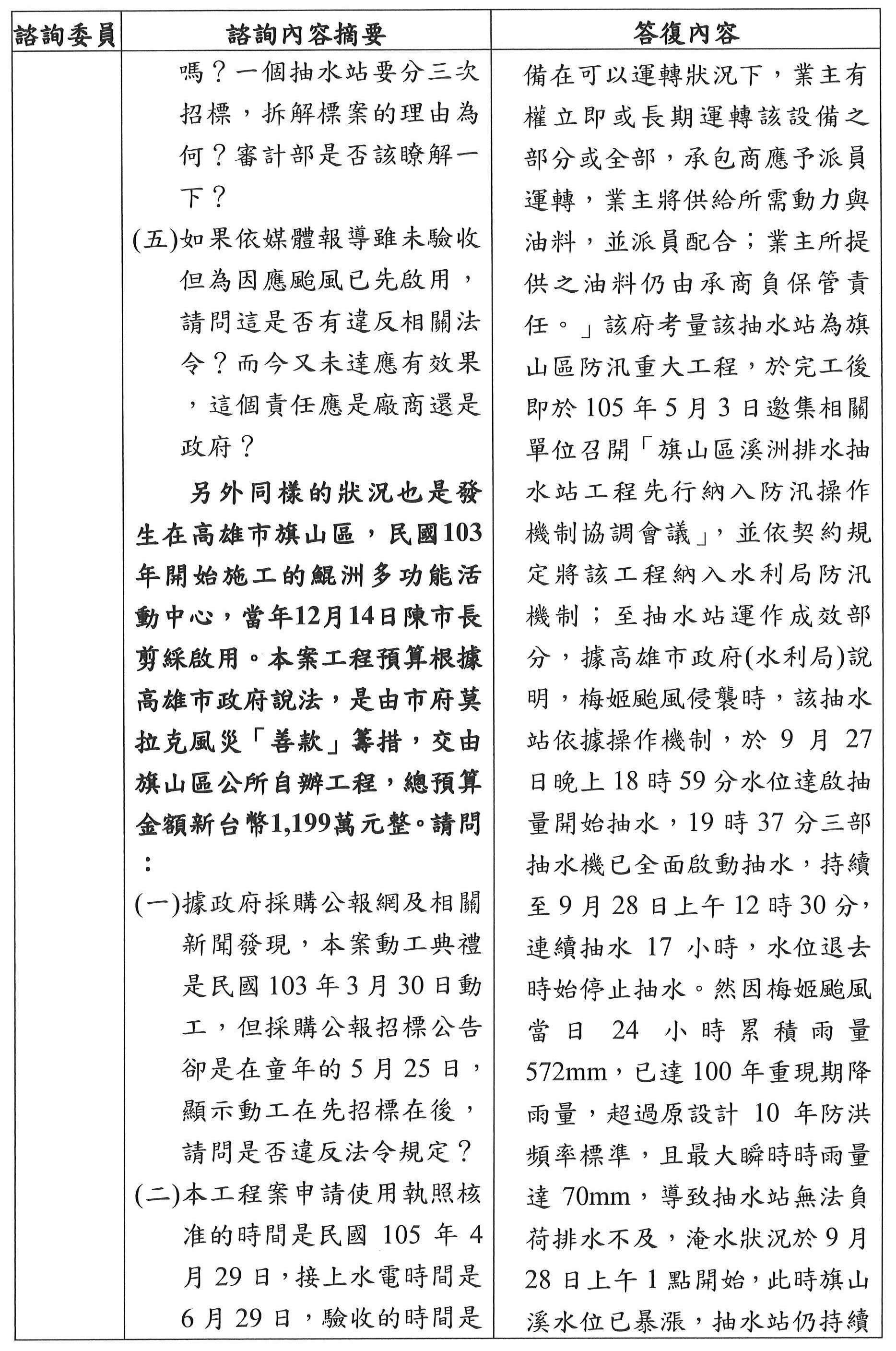 (立法院函 中華民國105年10月27日台立院議字第1050705475號 施政報告質詢5號)