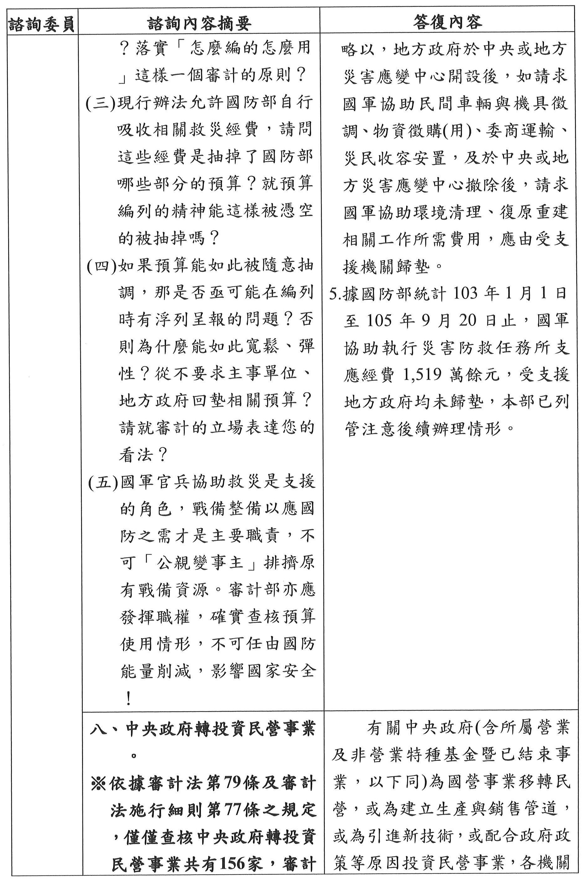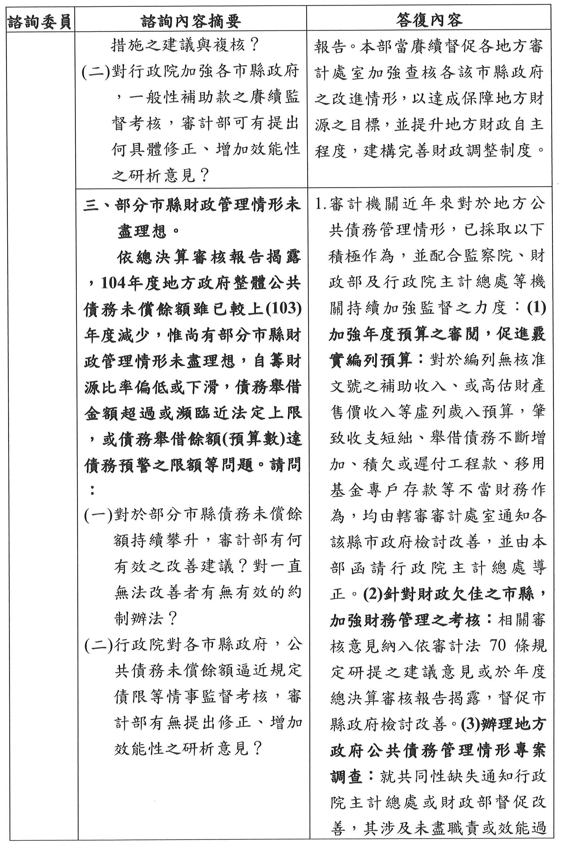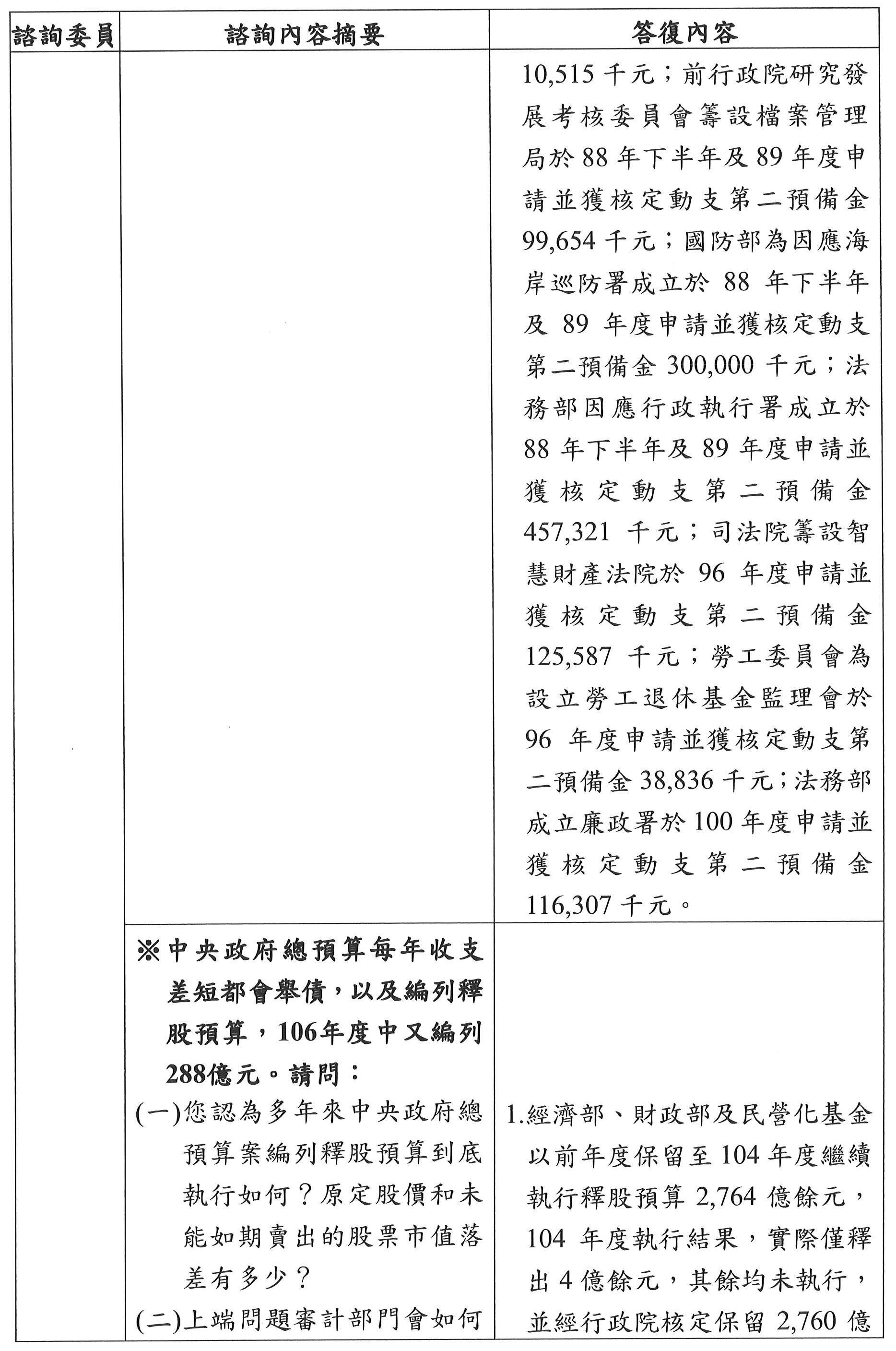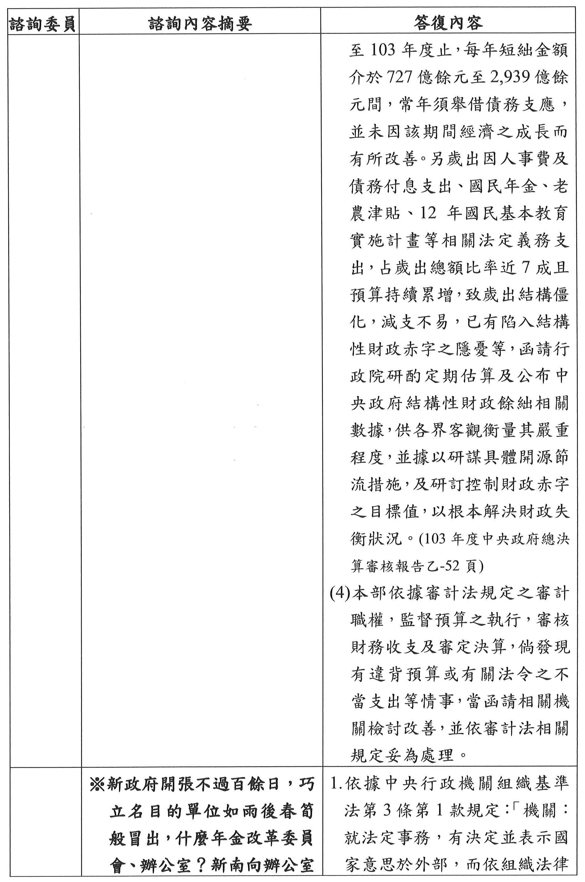 (立法院函 中華民國105年10月21日台立院議字第1050705289號 施政報告質詢2號)