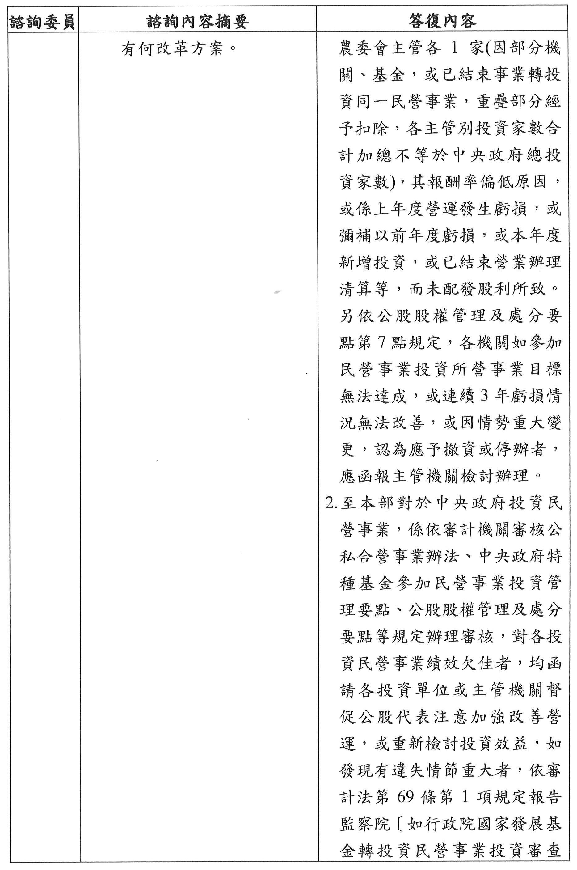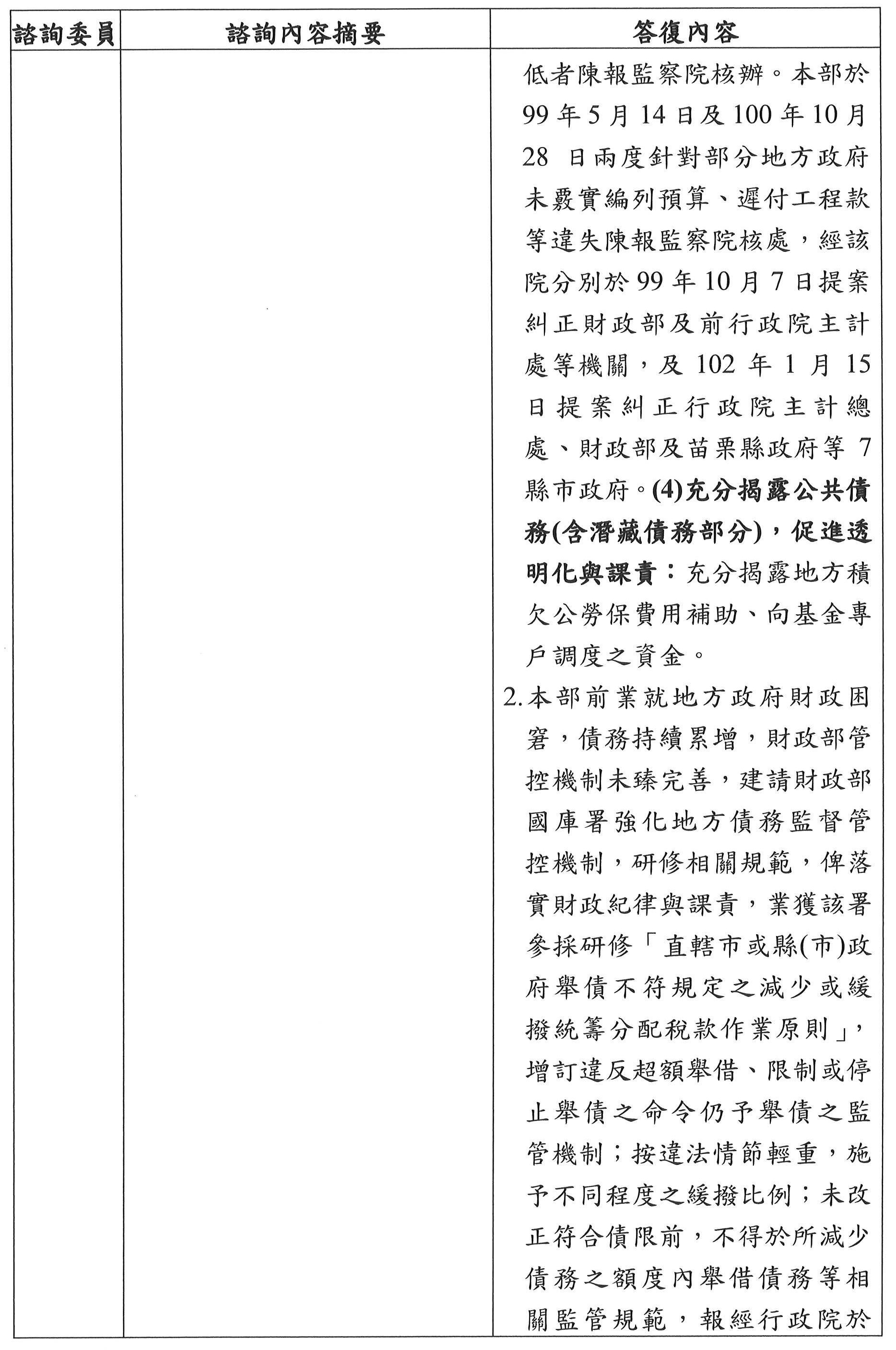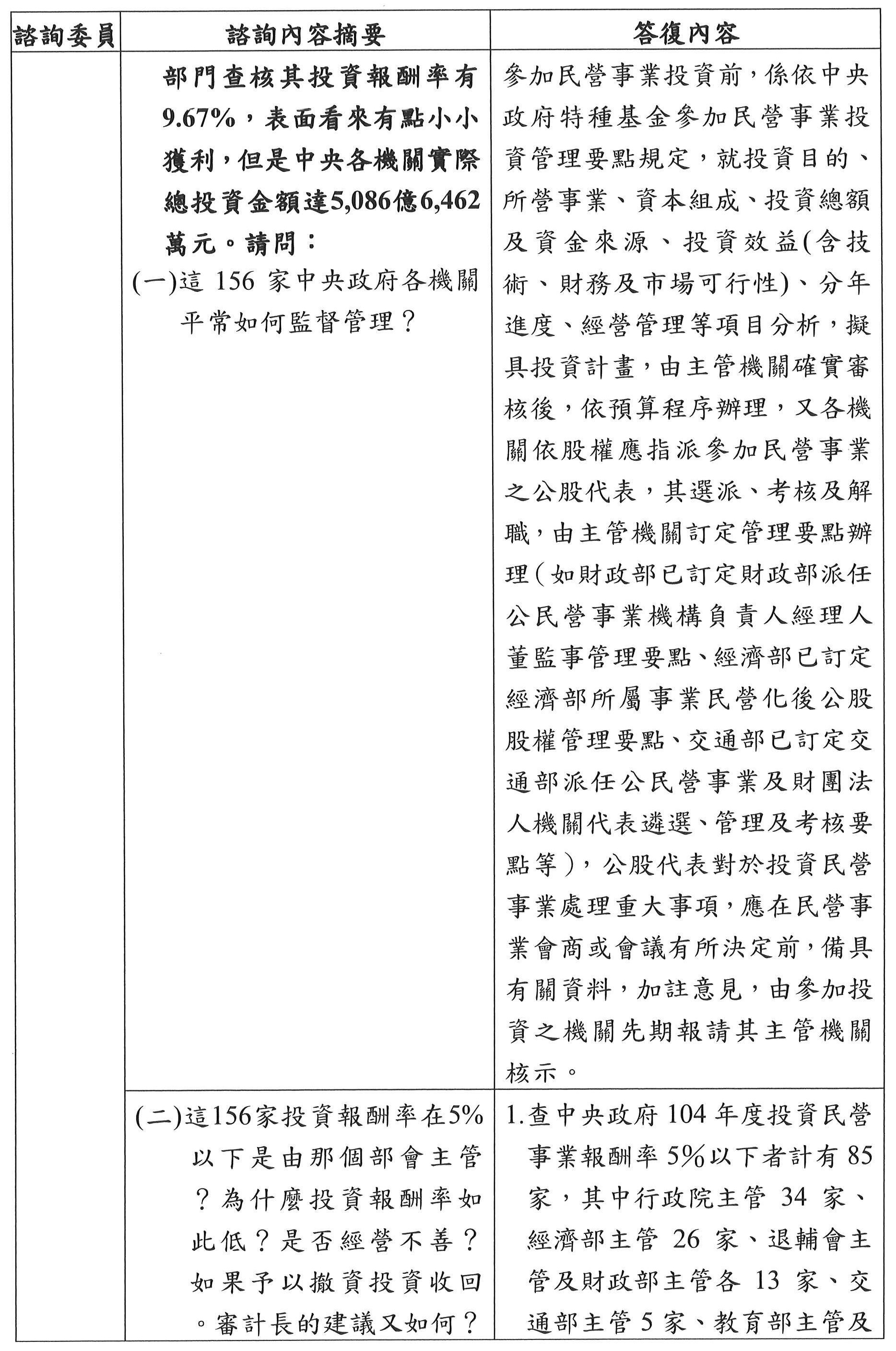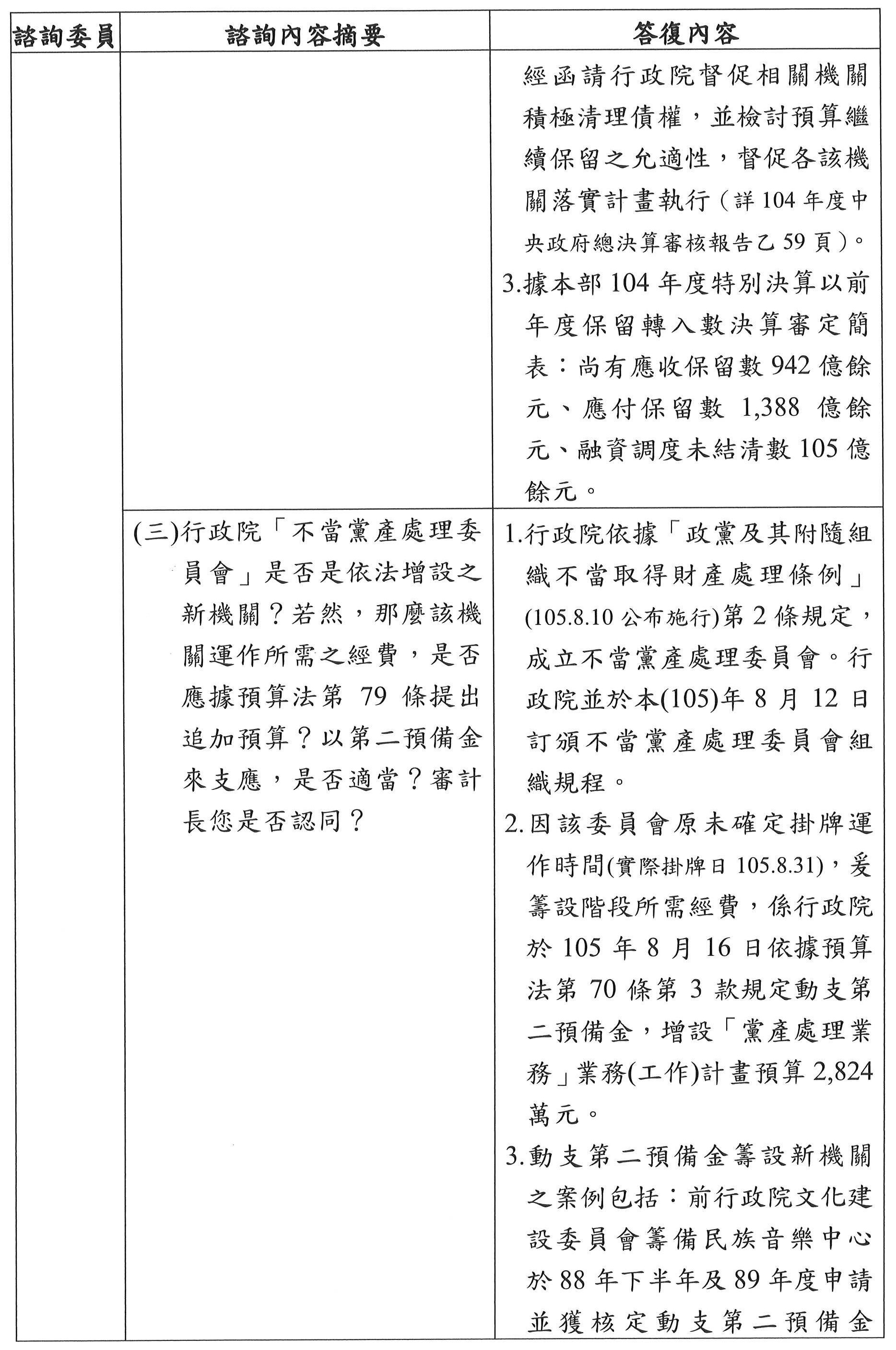 (立法院函 中華民國105年10月21日台立院議字第1050705289號 施政報告質詢2號)