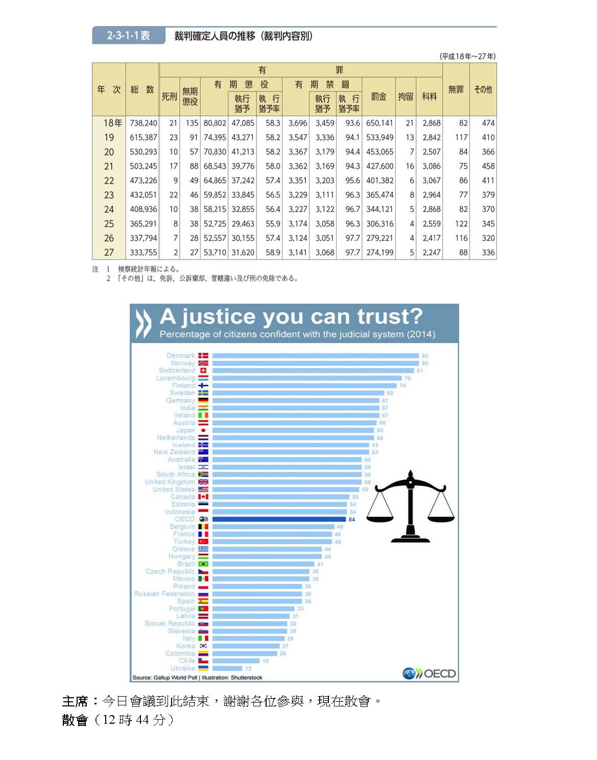 最後,我要提出個人一點小小的結論和看法,事實上裁判的品質和判決的正確性息息相關,所以我們在憲法的部分必須要充分保障被告的權利,如果我們今天真的要引進參審制或者是陪審制,這樣究竟能不能改變人民對於司法的信賴度?或者是如同剛才有先進提到的,對於陪審或參審所得出來的結果,被告到底能不能救濟?我覺得我們真的應該要慎重的做一個思考,以上,謝謝。