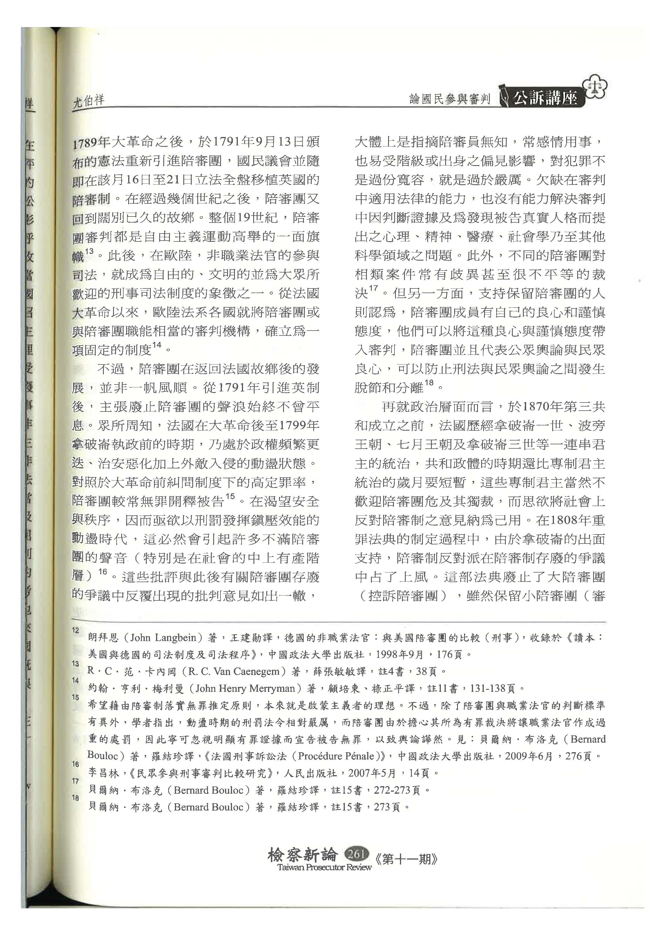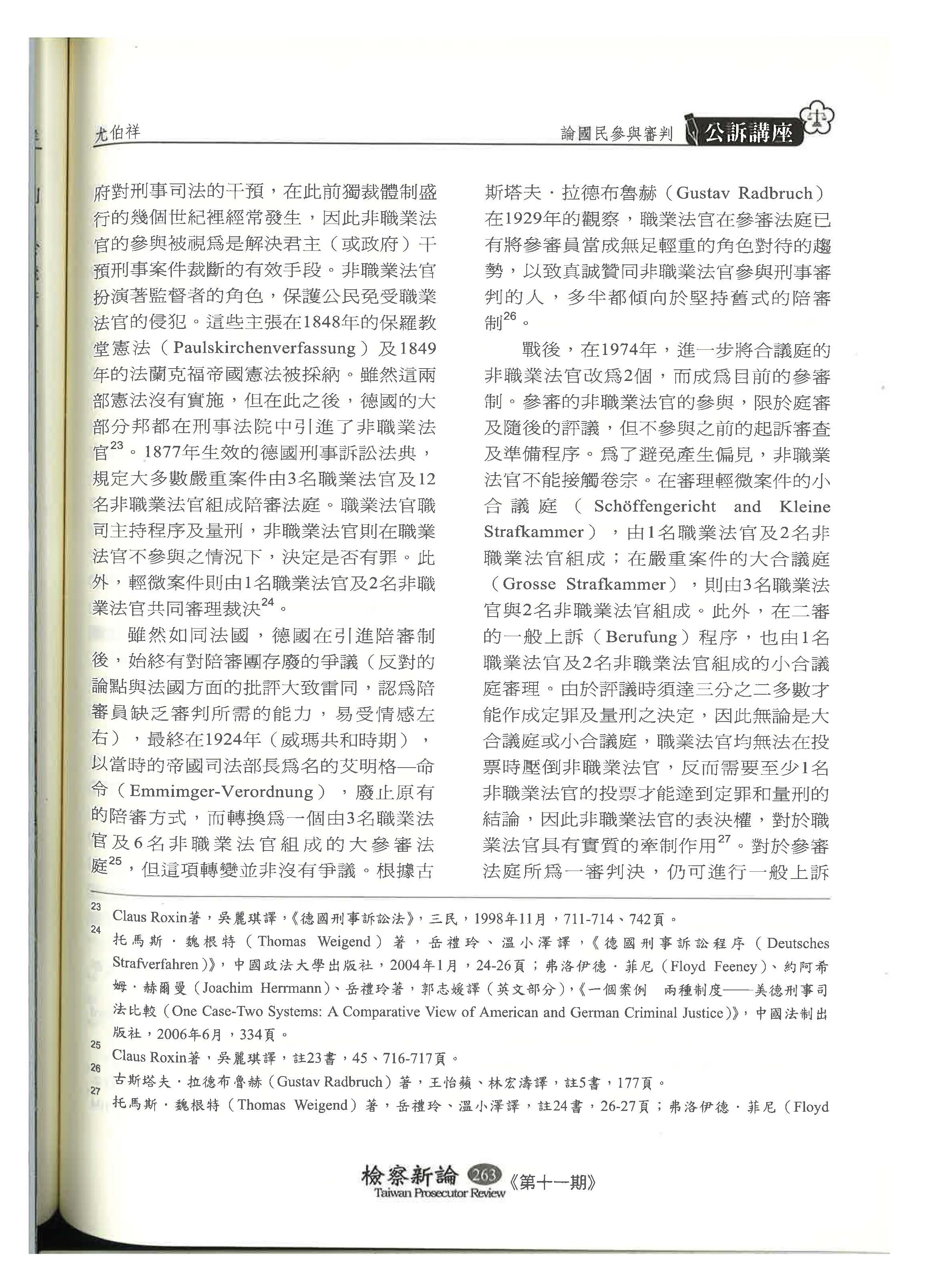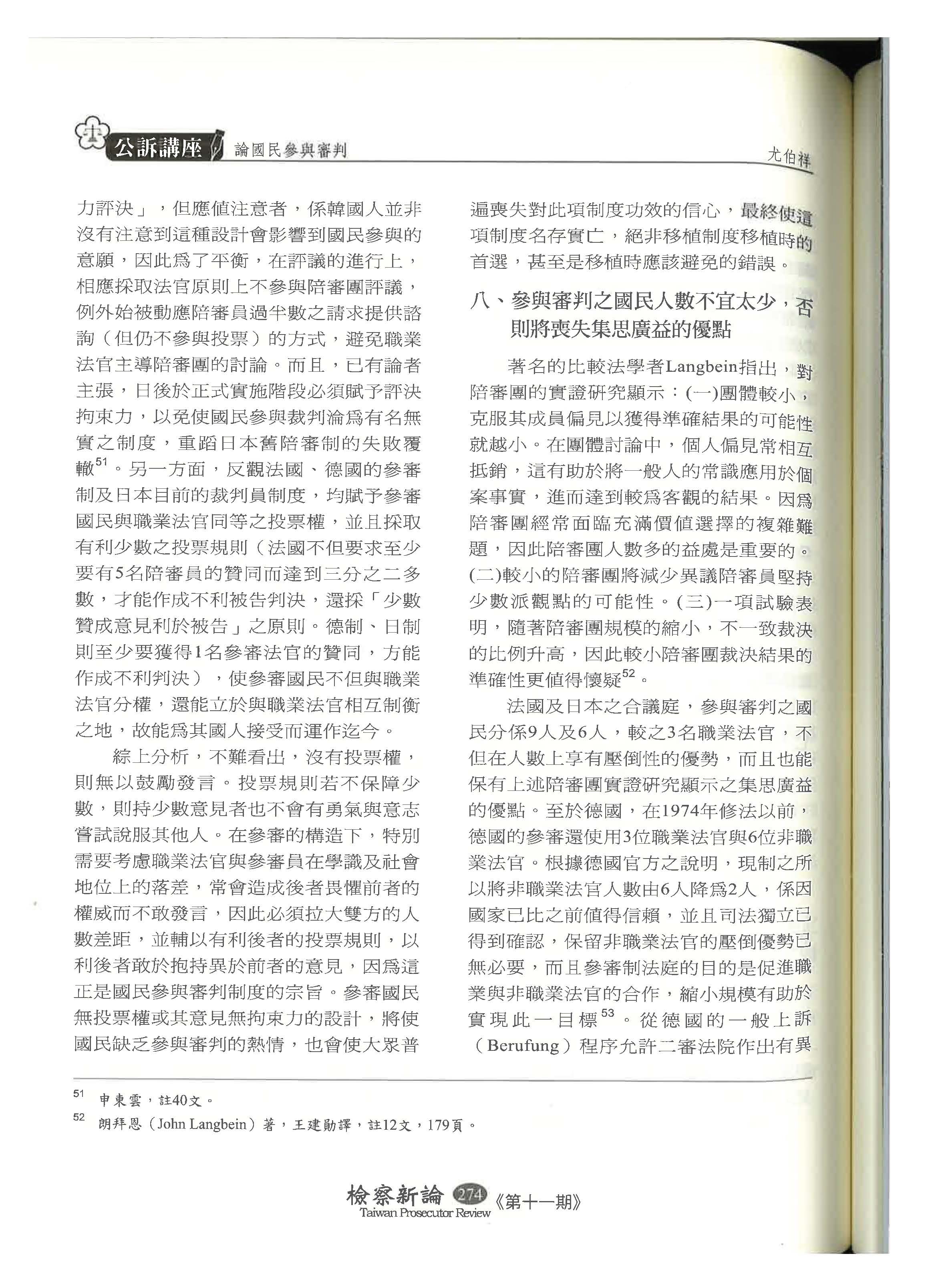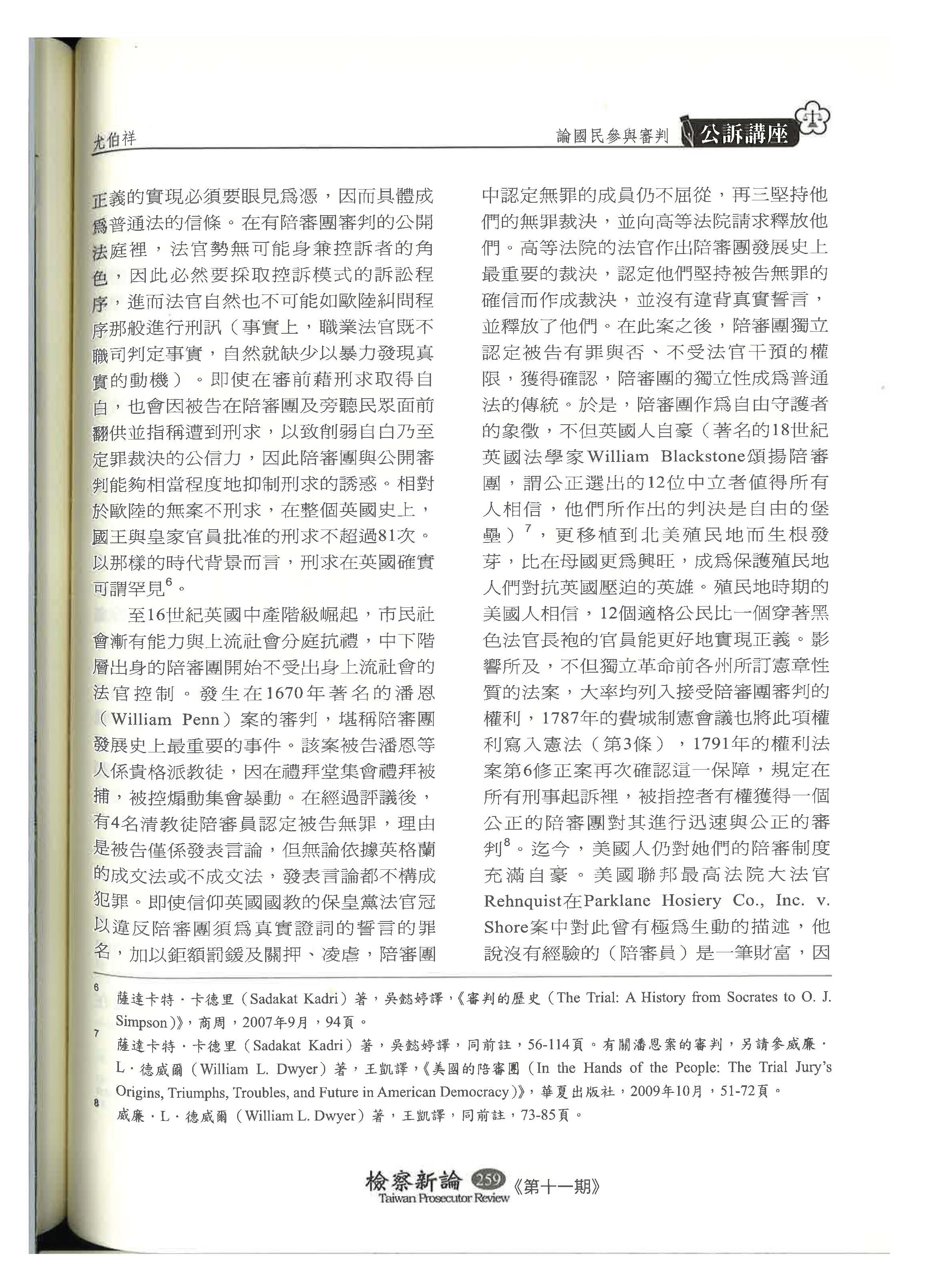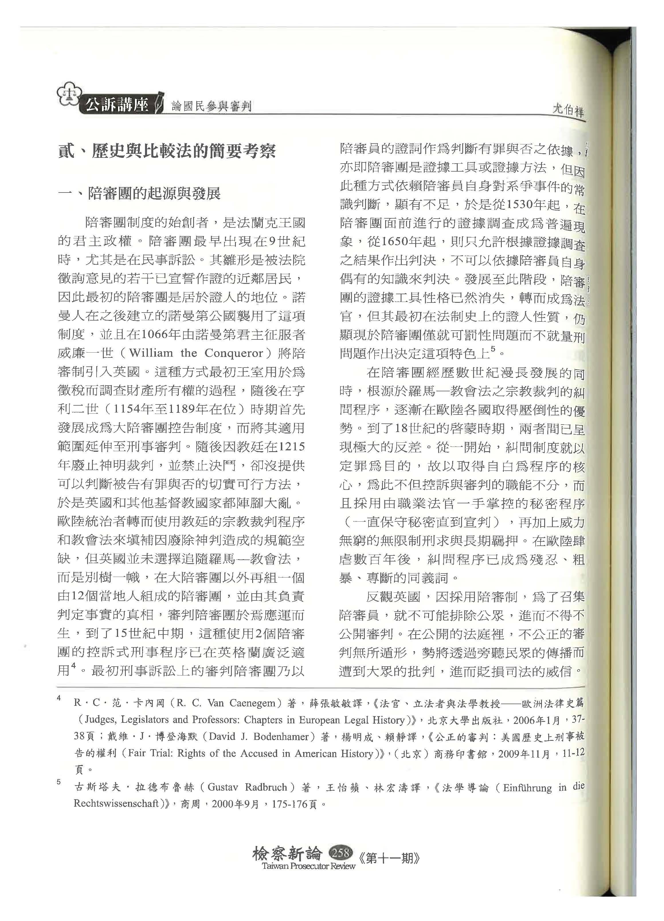 第二,臺灣到底適合陪審、參審?就近從東亞的日本、韓國來看的話,他們都沒有稱他們現在的人民參與審判制度為陪審或參審,這一點是值得我們注意的,他們並沒有說他們的制度叫做陪審或參審。這一點稍後我會再補充。