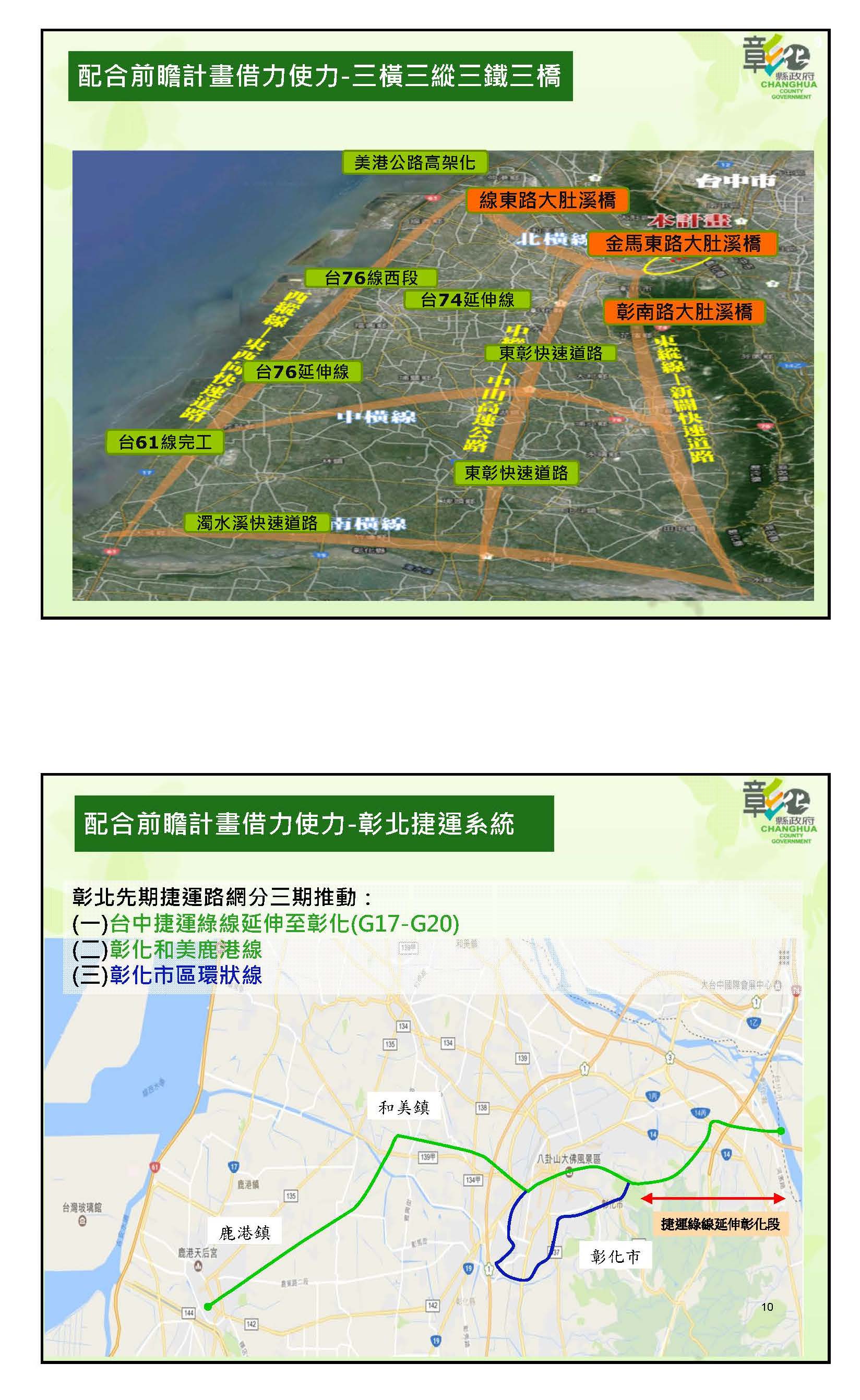 有關軌道建設部分,我認為前瞻基礎建設計畫有把區域治理的觀念納入,比如說台中捷運綠線要延伸到彰化,軌道運輸也有二水到集集,也就是集集支線。其實南投也有一條鐵路,我們要把集集線提速,中央投資了23億元的經費。為了讓集集線和彰化高鐵連結在一起,又有田中的台鐵支線,銜接到高鐵站,投資18億元。將來這個支線蓋好以後,南投的集集線就可以串連到彰化的高鐵站,而彰化的高鐵站就可以成為南投觀光大縣進出的門戶。所以我個人認為,前瞻基礎建設計畫已納入區域治理的概念,而且是不分地域、不分黨派。