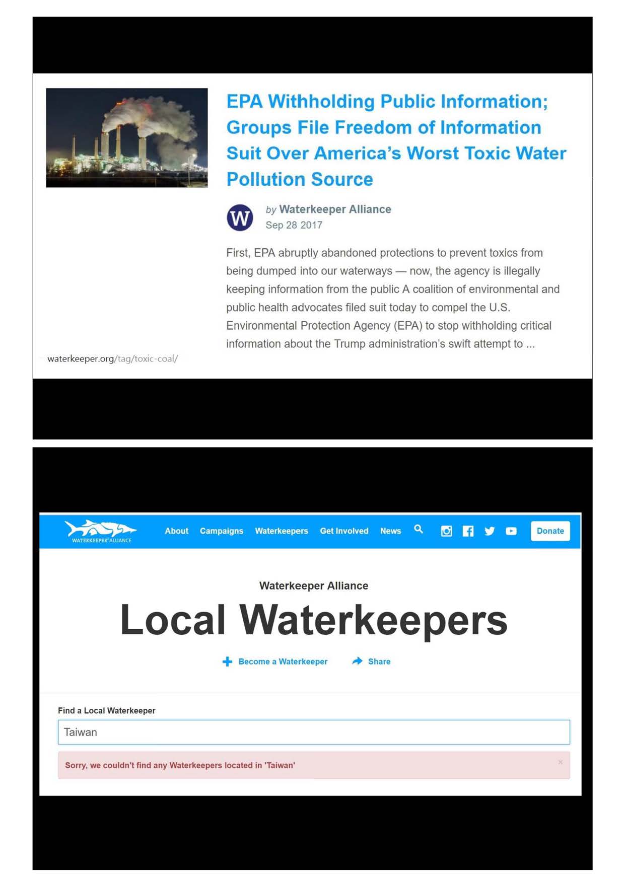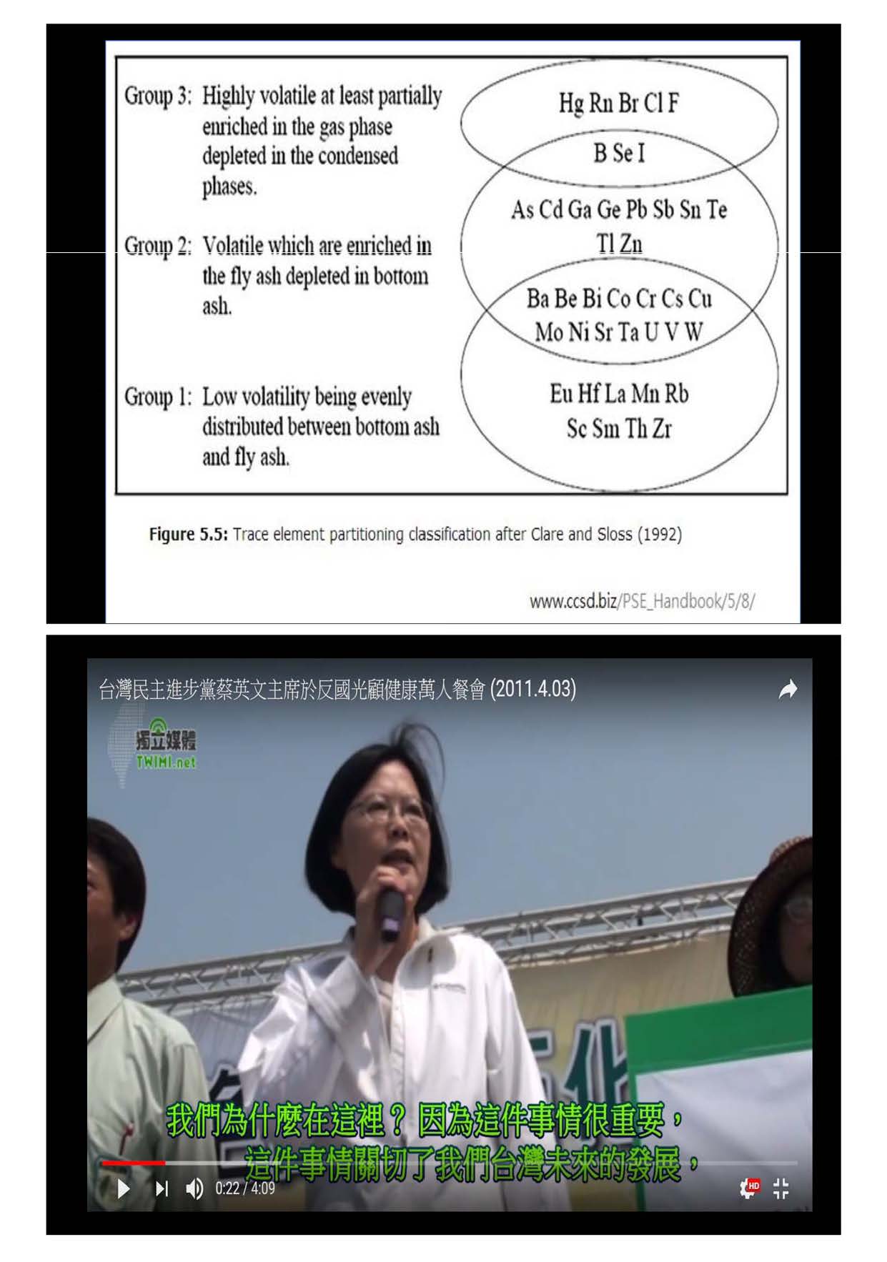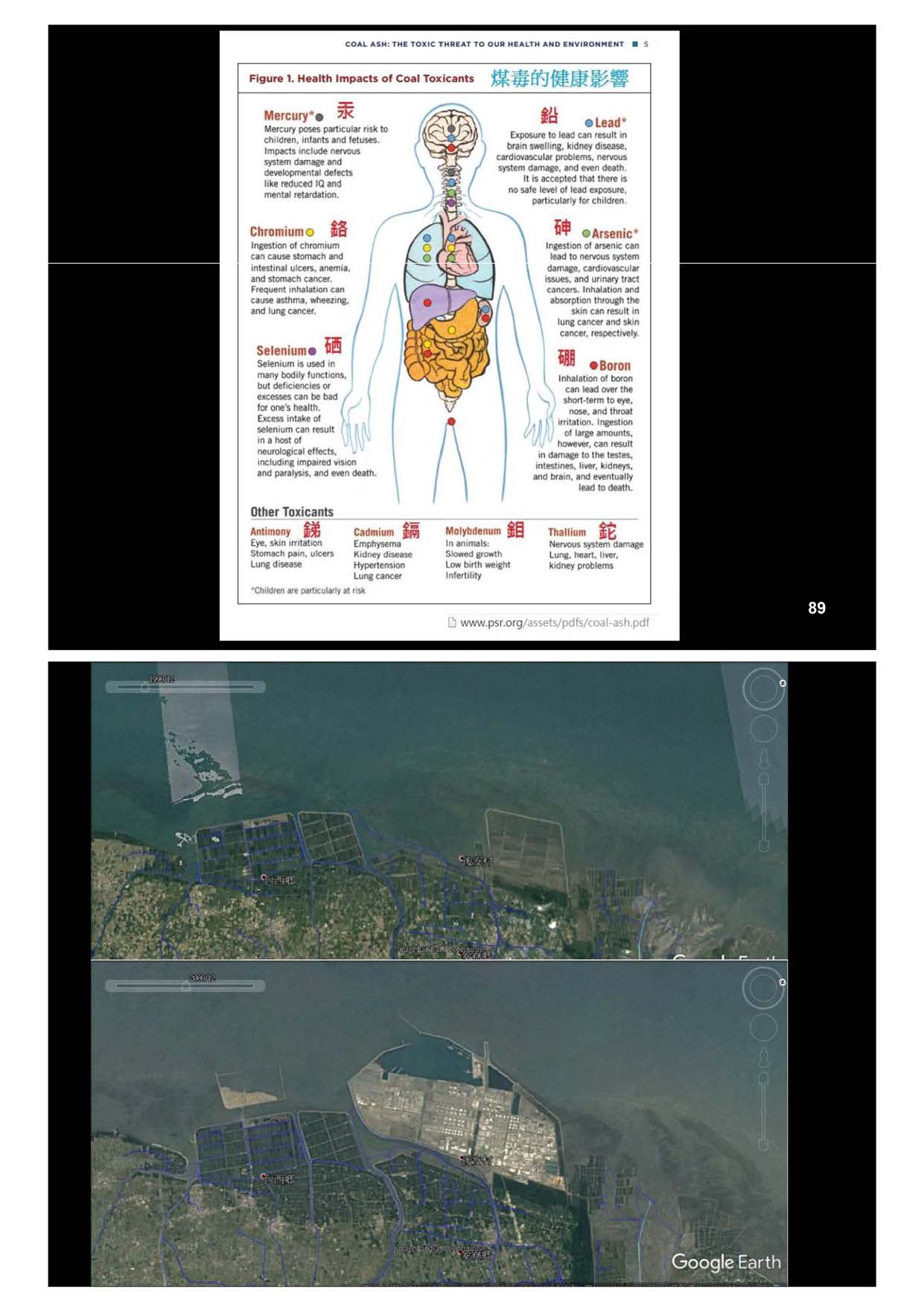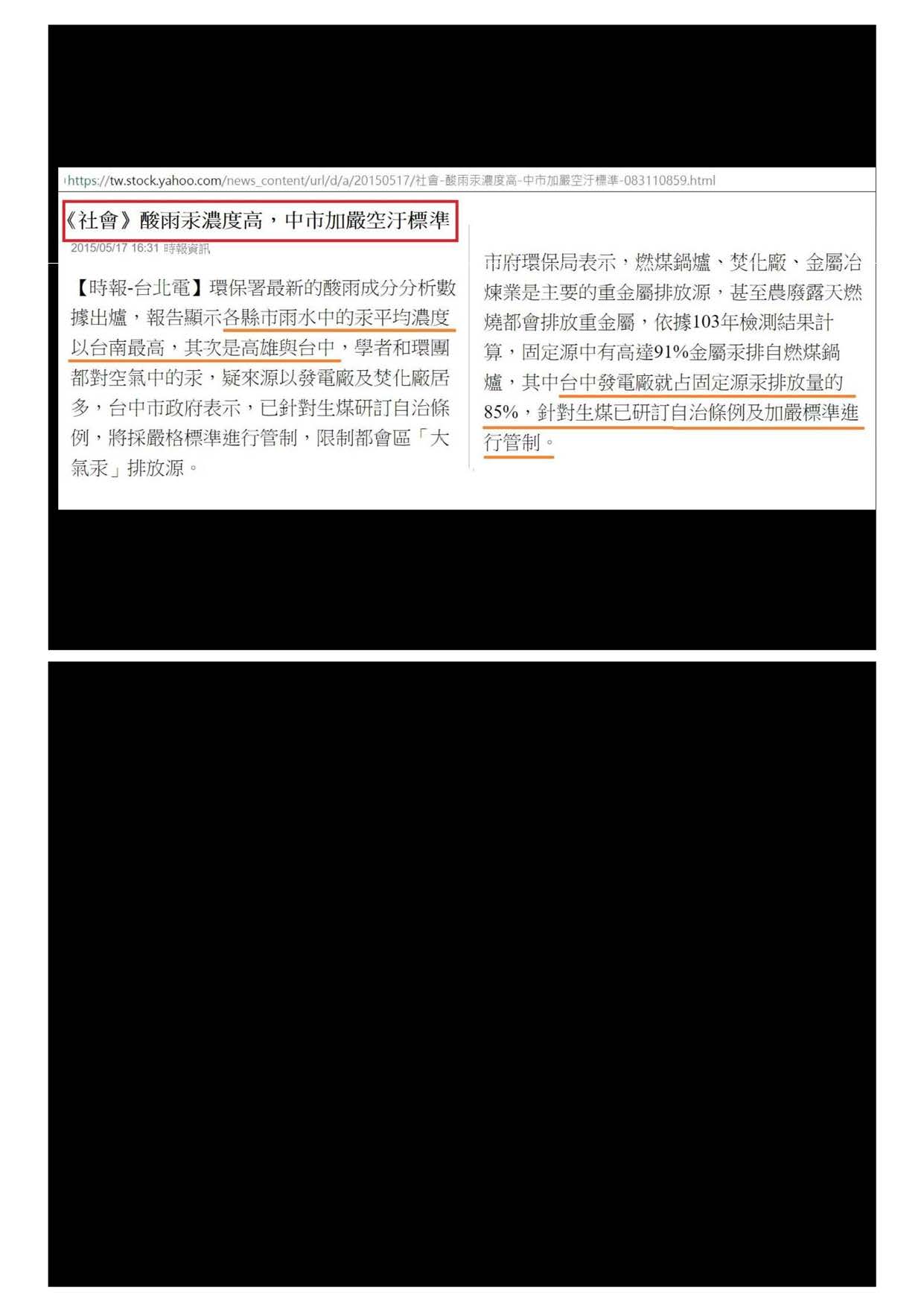 這張圖是公視的新聞,上半部是2014年報導PM2.5超標,下面則是2017年10月3日報導霾害入侵旭光國小。2014年是國民黨執政,2017年是民進黨執政,三年的時空都在這裡,一樣。劉建國委員也質詢過。如果核災食品是謀殺人民,臺灣的空氣正在謀殺人民,假如沒有修正、好好保護臺灣人民,那就是合法殺人。小英最近講過,清廉、勤政、愛鄉土,勤政是什麼?連環保署跟經濟部溝通一年半還在說要轉達。藍與黑,南部是藍的。林全說坐高鐵到臺中就晚了。這個世界不公不義,修法一定要修正、終結不公不義。燃煤是毒氣,如果連這個知識、常識都沒有的話,已經沒有資格做中華民國的知識分子,怎麼有資格領導臺灣?我點名經濟部的次長,他完全不適合做這個,連中華民國的知識分子都不適合當的時候,他還要怎麼領導臺灣的經濟?它對經濟是有損害的,對健康是有損害的,對環境是損害的,連這個概念都沒有。我受到2011年美國肺臟醫學會啟發。