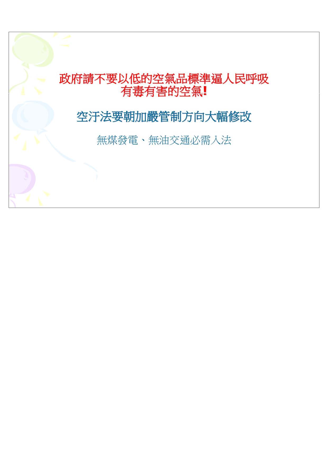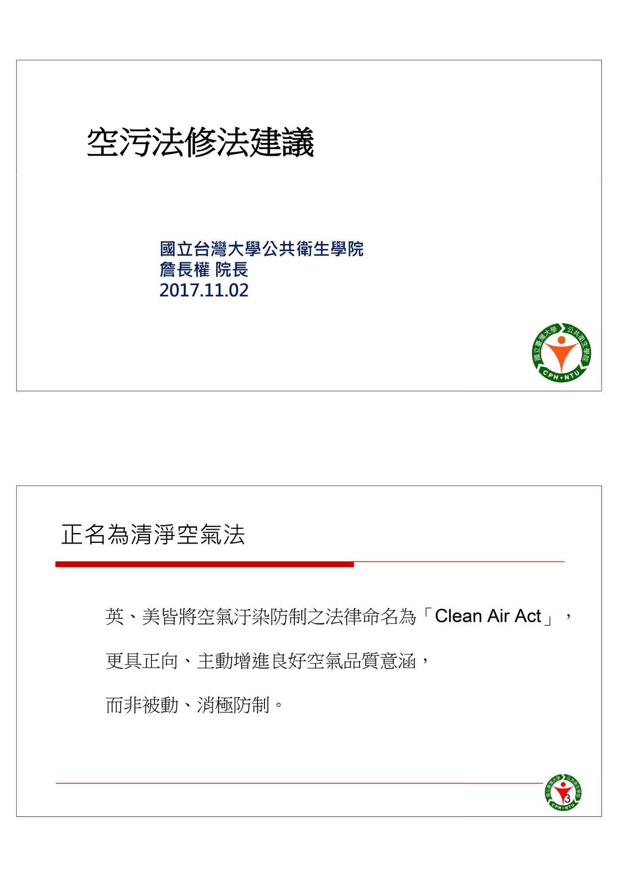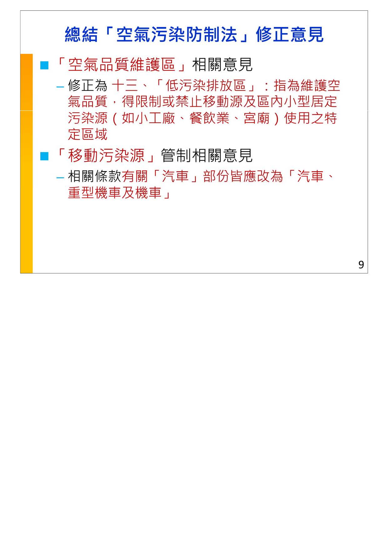 我自己有提出空污法的修法版本,今天也看到很多委員的版本,大家可以再看一下,思考這樣的修正文字是否能讓大家比較滿意。以上,謝謝。