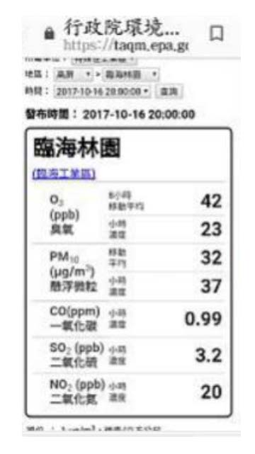 再來就是空氣盒子,我本身是國小老師,現在做得很好,每個國小裡面跟公家機關都有做,但是不好意思,林園附近的話只有六間國中小有做。我希望在林園布空氣盒子的點能夠加強。