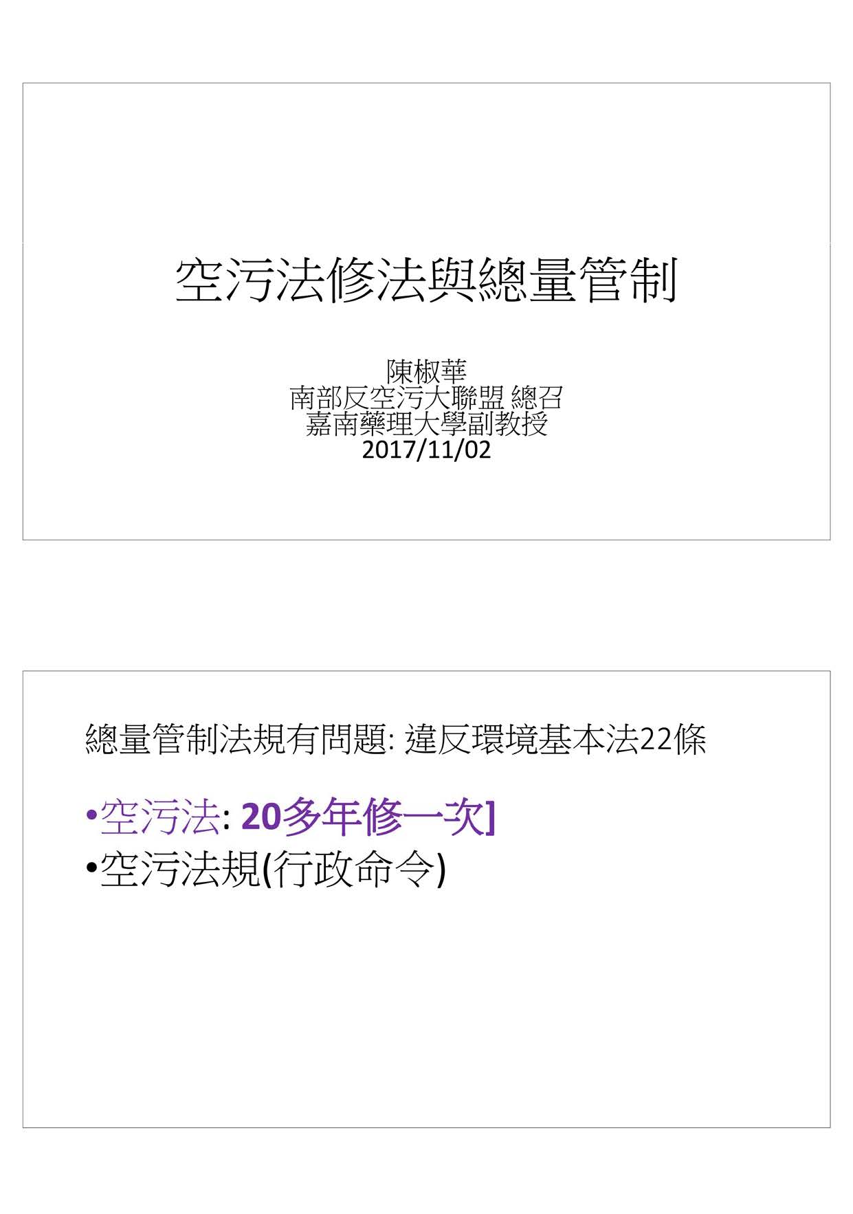 陳椒華副教授:主席、各位委員。很高興今天有機會來表達南部空污的嚴重,因為時間很短,我就很快地來報告。