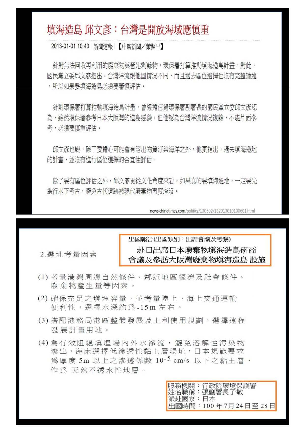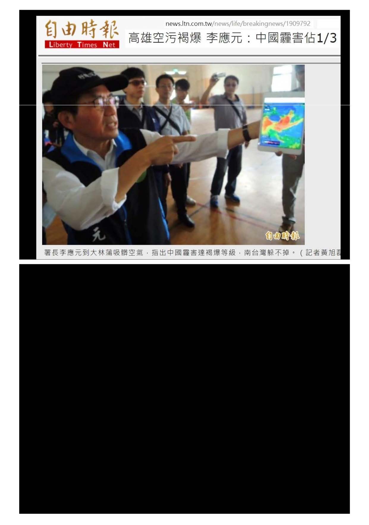 我感到很悲哀的是,看到我們的副總統陳建仁教授來自學界,做過衛生署長,說臺灣的PM2.5有1/3來自境外。李應元說高雄空污褐爆,中國霾害占1/3。我現在公開在立法院的紀錄,不要誤導總統,如果說臺灣有1/3的霾害來自中國,那是非常不精確、不科學的敘述。是要告訴臺灣人民,我們每年吸入肺泡裡的空氣在臺灣各地都一樣,有1/3的污染來自中國嗎?你們要造成臺灣人民這樣的印象、認知嗎?那樣的講法,就我受過科學訓練的人來講,是不精確、不科學的論述;像前幾天霾害來造成空污的時候,你一定要講占多少。是全年嗎?我告訴你,那是騙人的。希望環保署好好的更正,不要誤讓副總統、國家的院士、唸科學的人講臺灣有1/3是來自境外。李應元隨便講講我不管,那是他的程度問題。