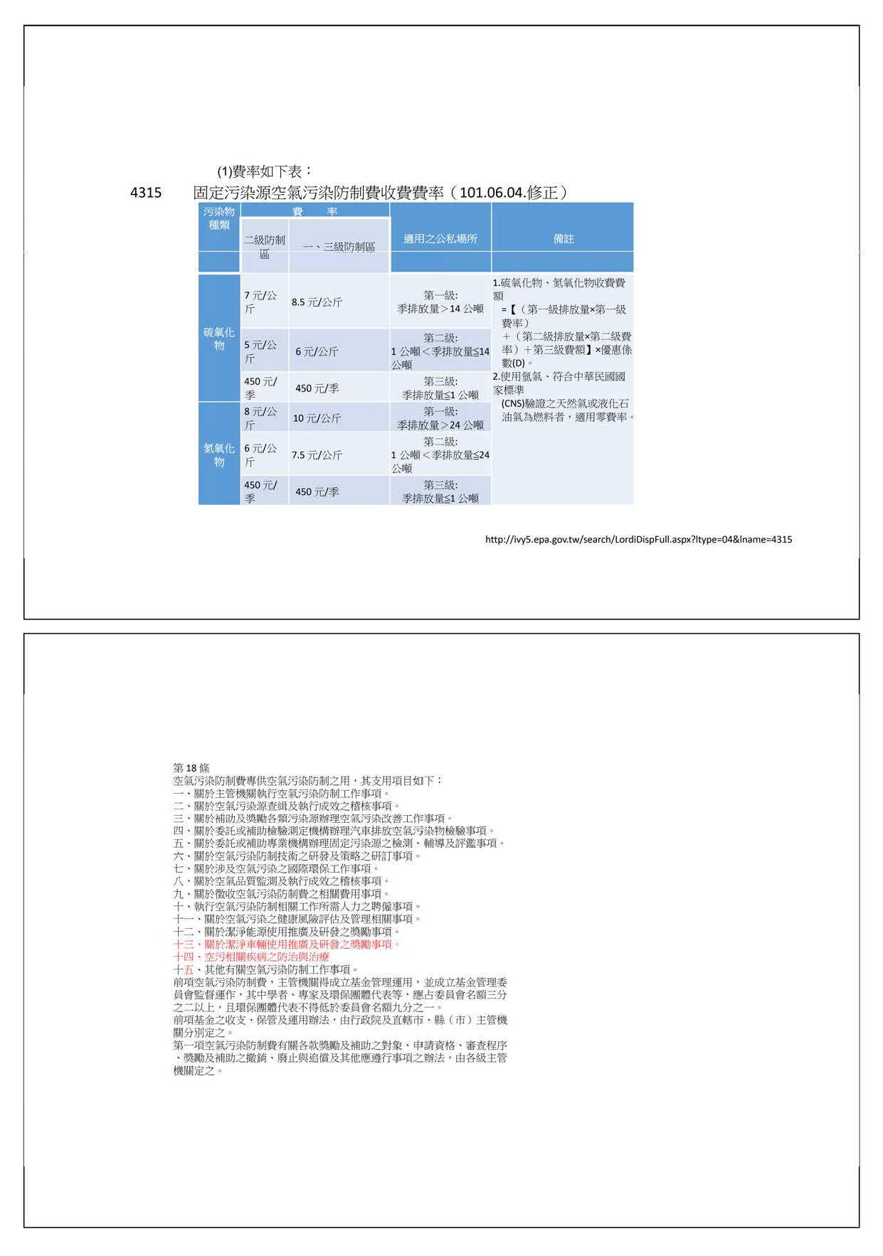 接下來是我建議的具體條文內容,第六條第三項「三級防制區內,既存之固定污染源應削減污染物排放量;新增或變更之固定污染源污染物排放量達一定規模者,應採用乾淨能源(一定比例之再生能源、天然氣)及乾淨車輛為原則,及採用最佳可行控制技術」。現在全台灣除了台東以外都是三級防制區,未來中部或台北如果要蓋發電廠的話,基本上就是以天然氣或再生能源為原則,如因政策考量必需使用燃煤機組,比如深澳因能源多元化之故,這時的條件就是對方所要負擔的空污費加上它的發電成本,這部分就會高於天燃氣,省得許多工廠會因為能源多元化擔心供氣不安全,而要用比較安全的燃煤發電。其實他們真正的目的並不是為了發電安全,而是基於對成本的考量,但這是不對的。因此在外加空污費後,深澳電廠除了空污費外,還要再加上發電成本,支出才會高過天然氣,如此台電在進行電力調度的時候才會優先以大潭電廠調度,這是關於第六條第三項的建議。