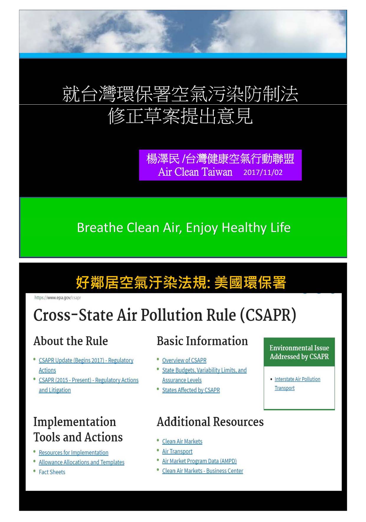 主席:謝謝陳副教授。接下來請台灣健康空氣行動聯盟楊澤民執行長發言。