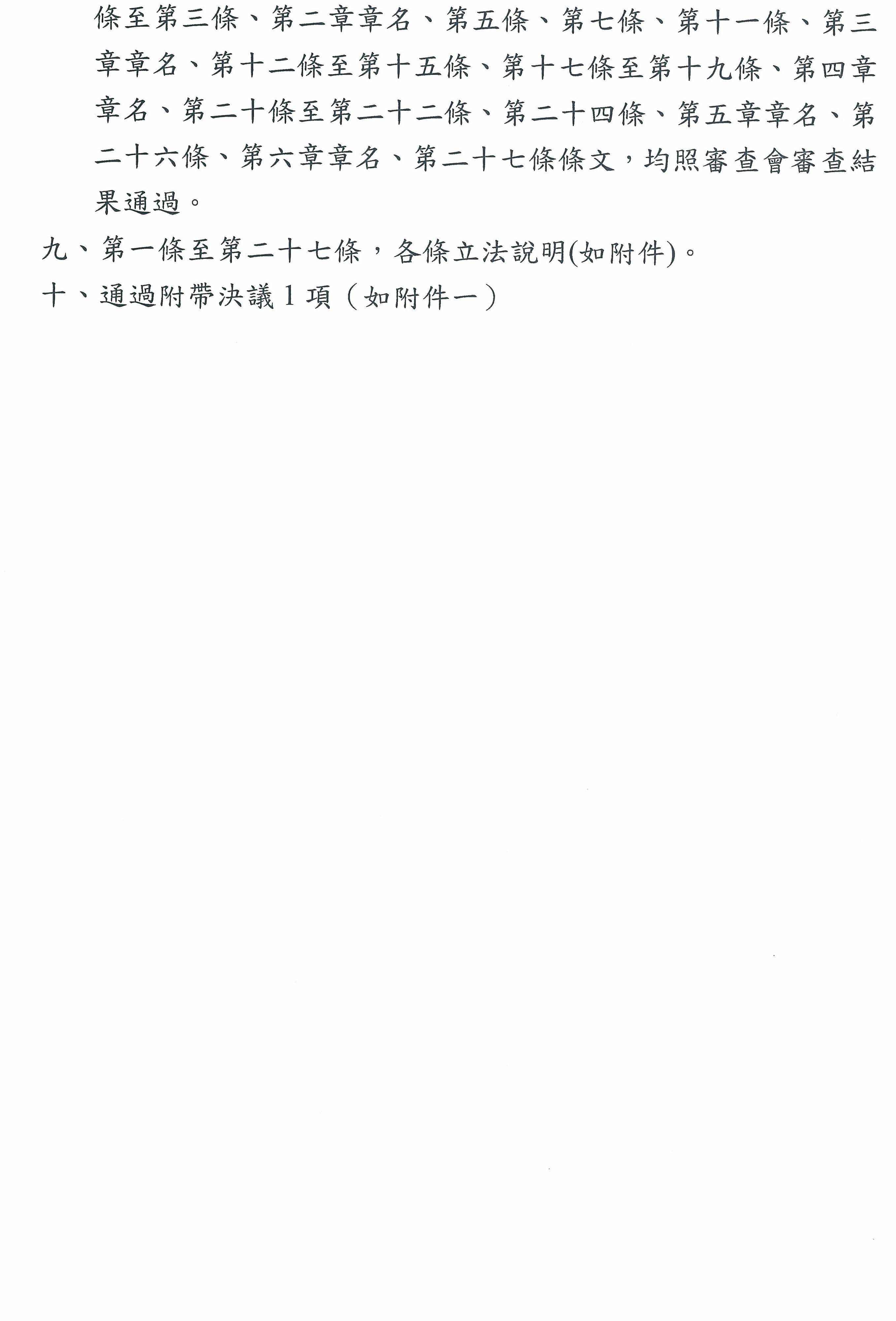 主席:第一,不管有沒有一個月,協商有結論的案子,明天就要處理,既然有結論,明天是最後一天院會,就要把它通過。