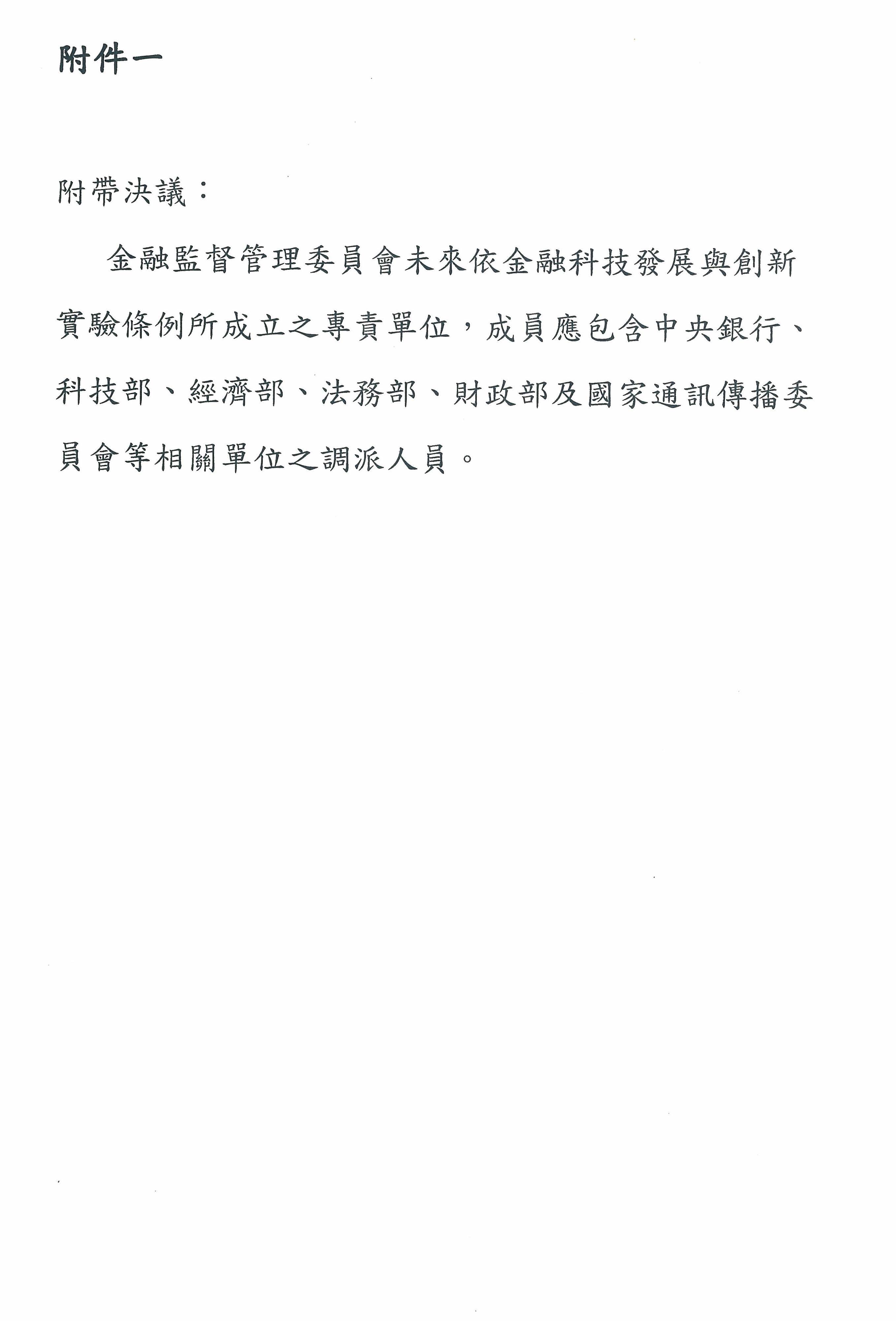 柯委員建銘:有關金融科技創新條例,又稱金融監理沙盒,我知道這個法案大家都很期待,在前幾天禮拜二院會時,我們請院長先把所有相關條文全部唸完。這個法案總共是1加8,8的部分就是各委員單一條文的個人提案,那個部分比較沒有意見。
