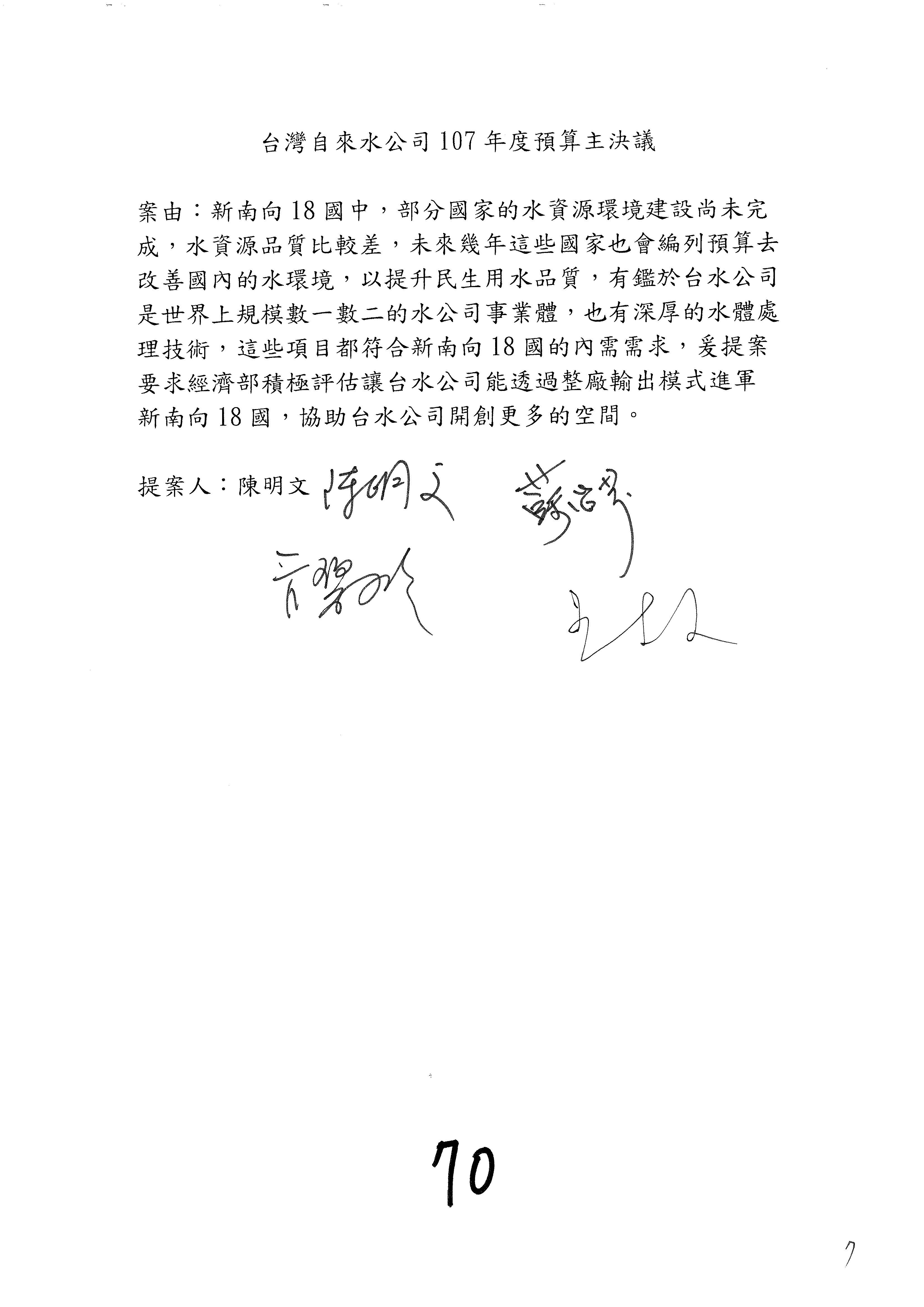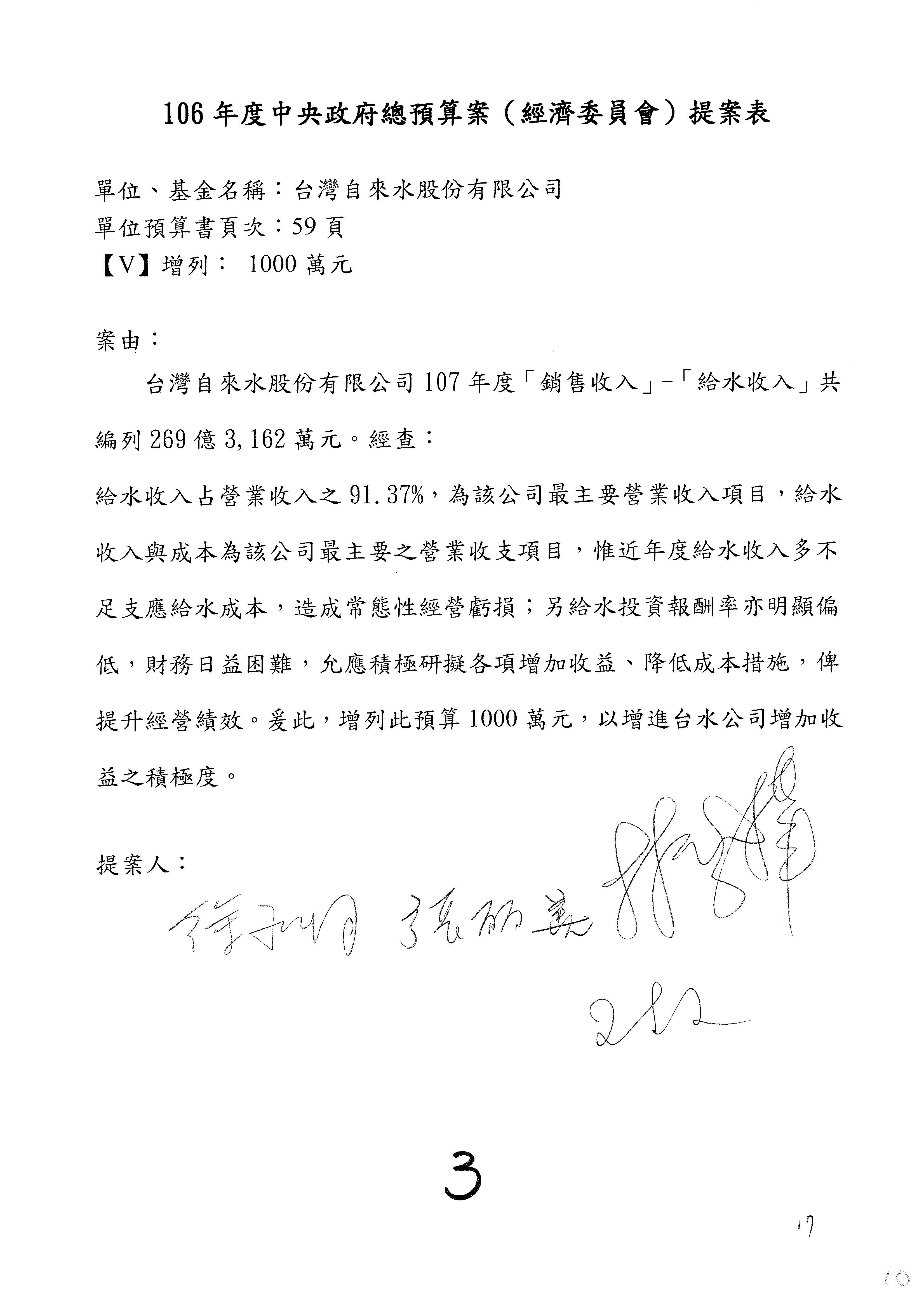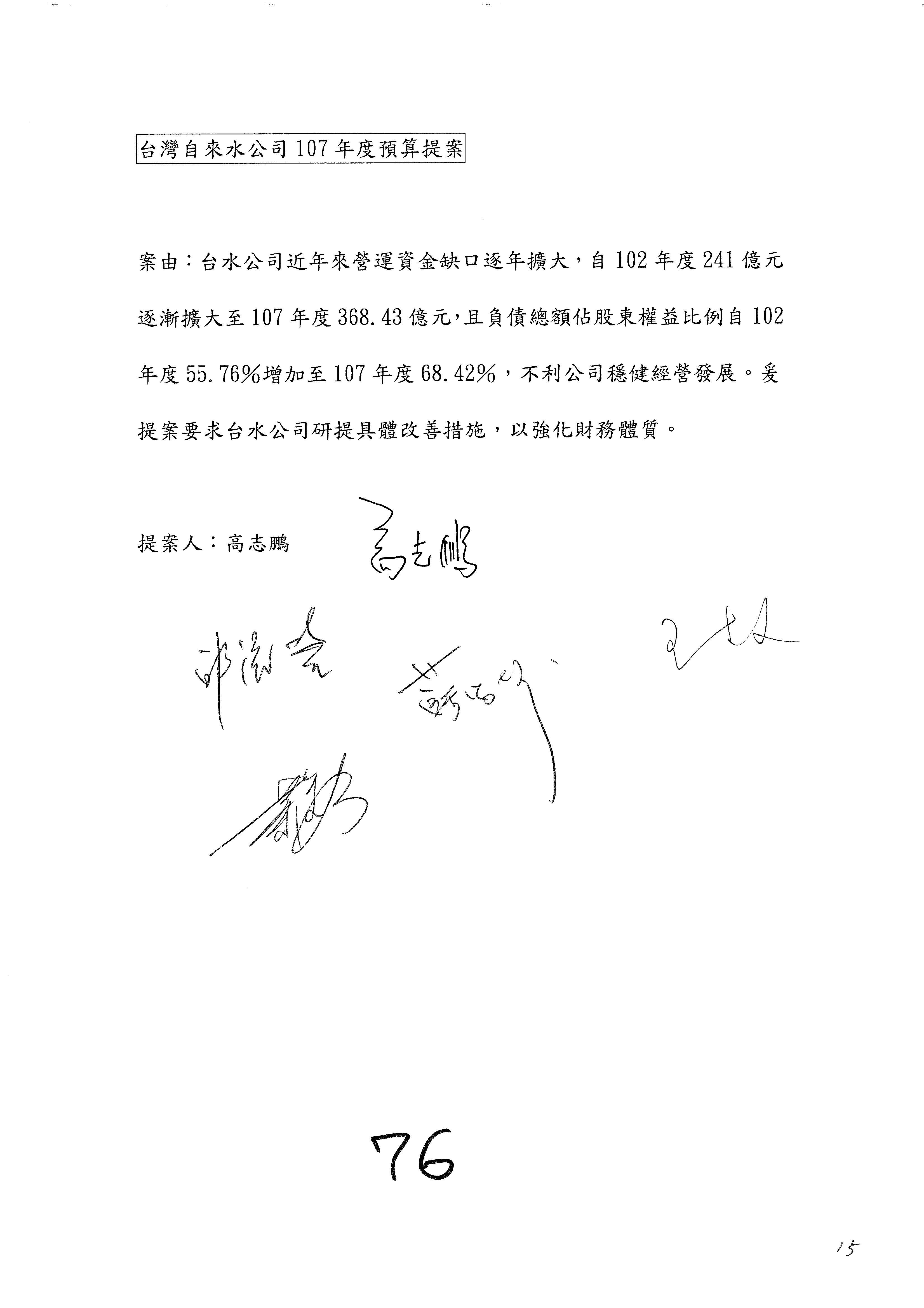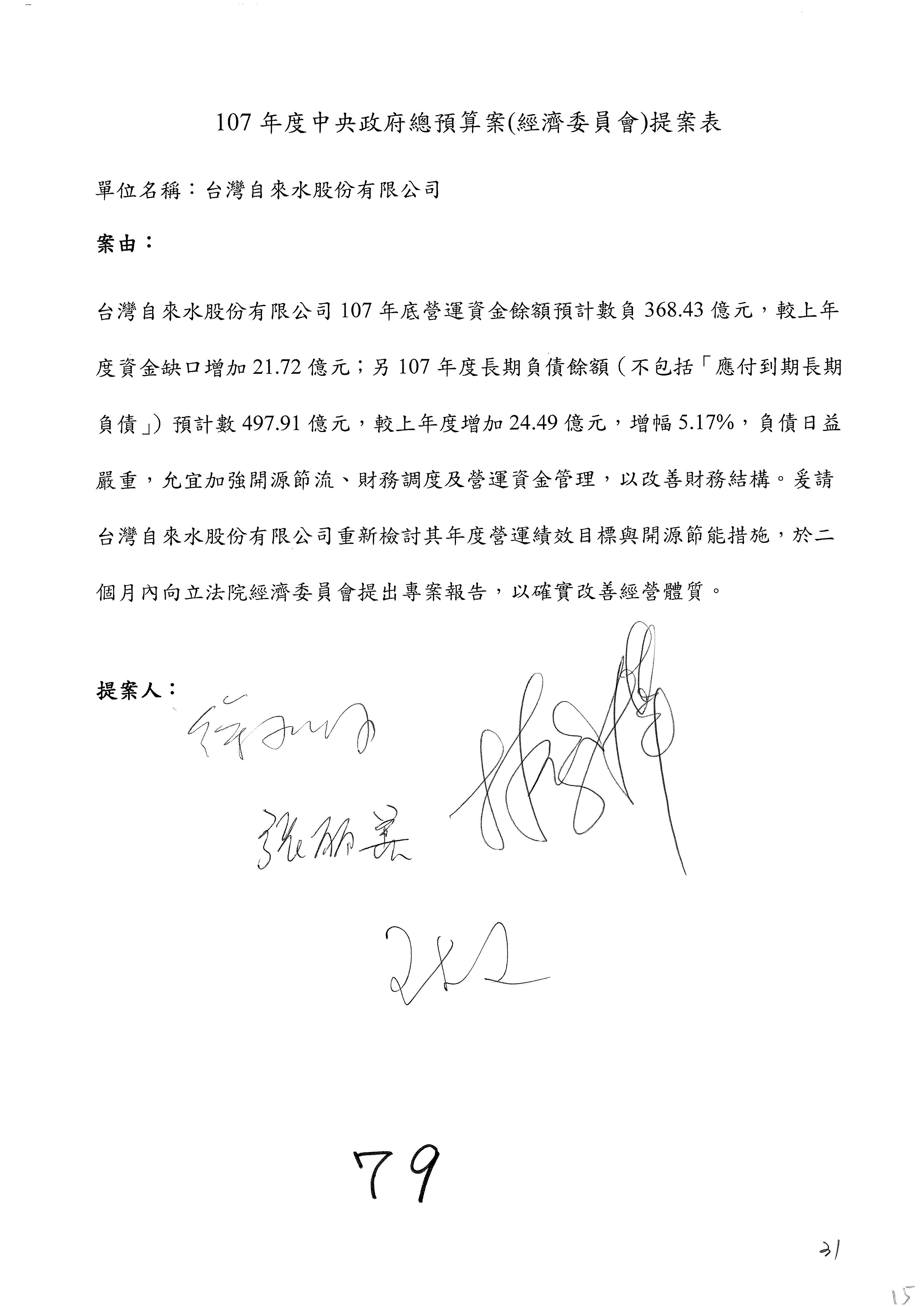 主席:我們繼續處理第66案的決議案。請問自來水公司的意見如何?