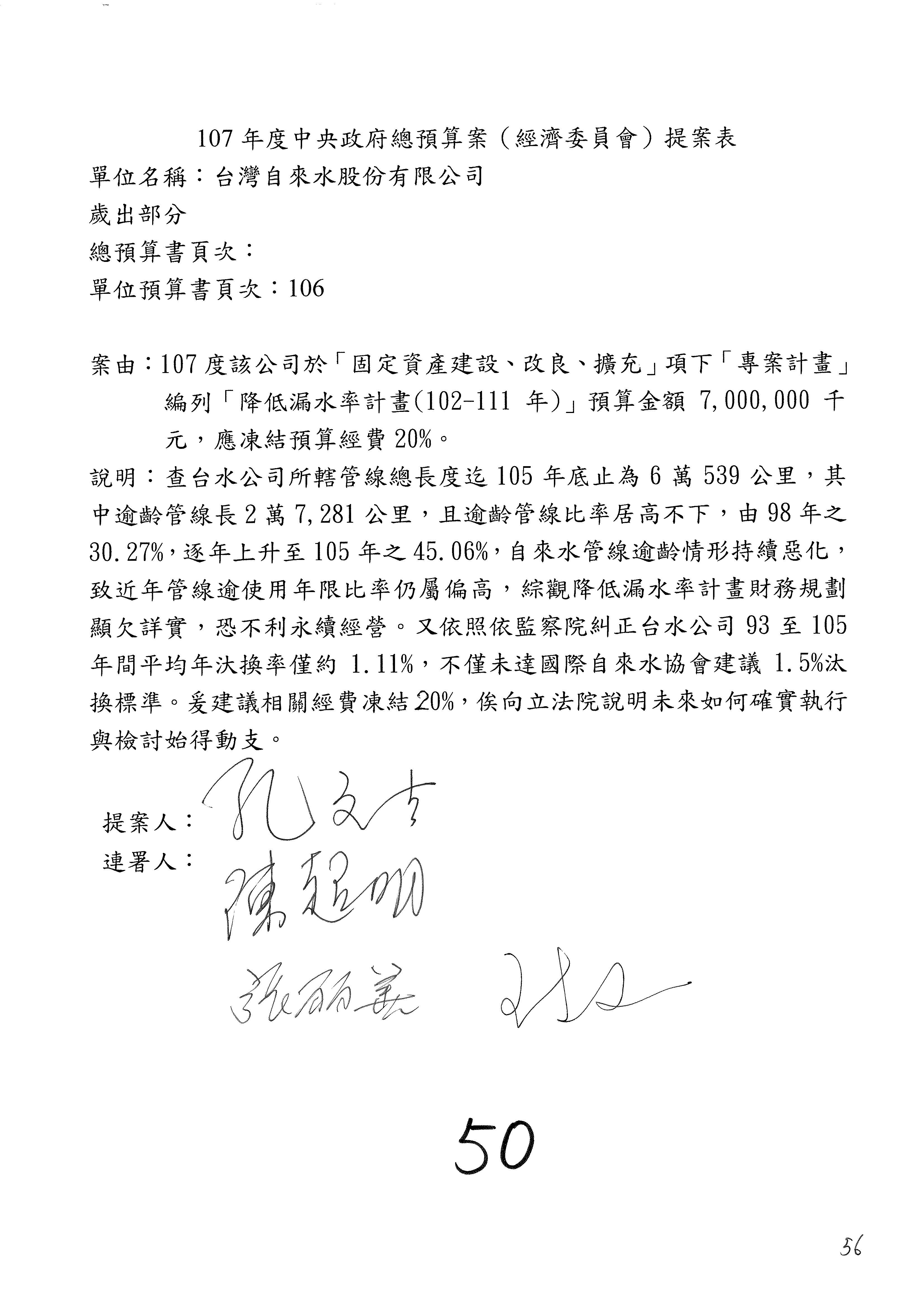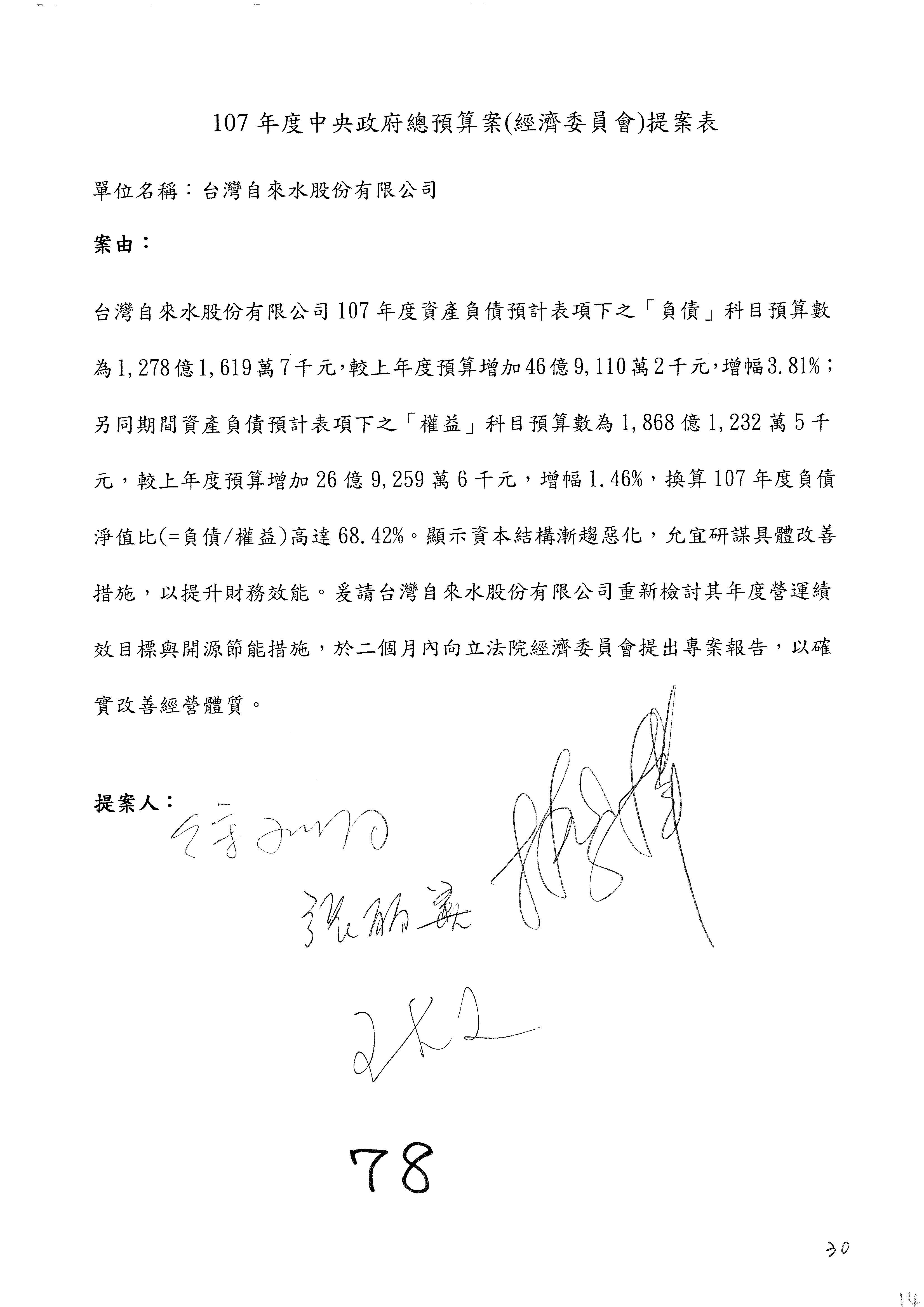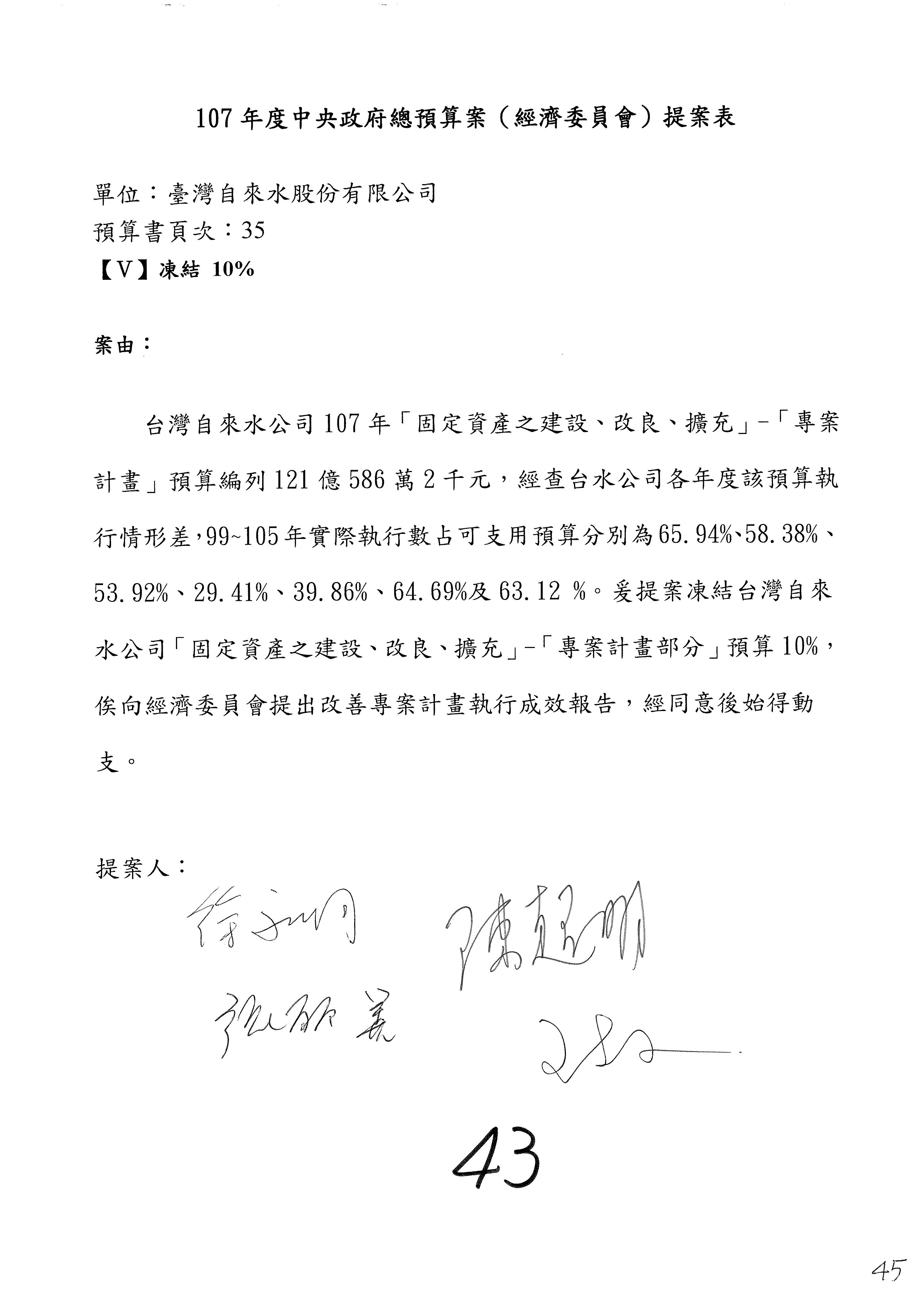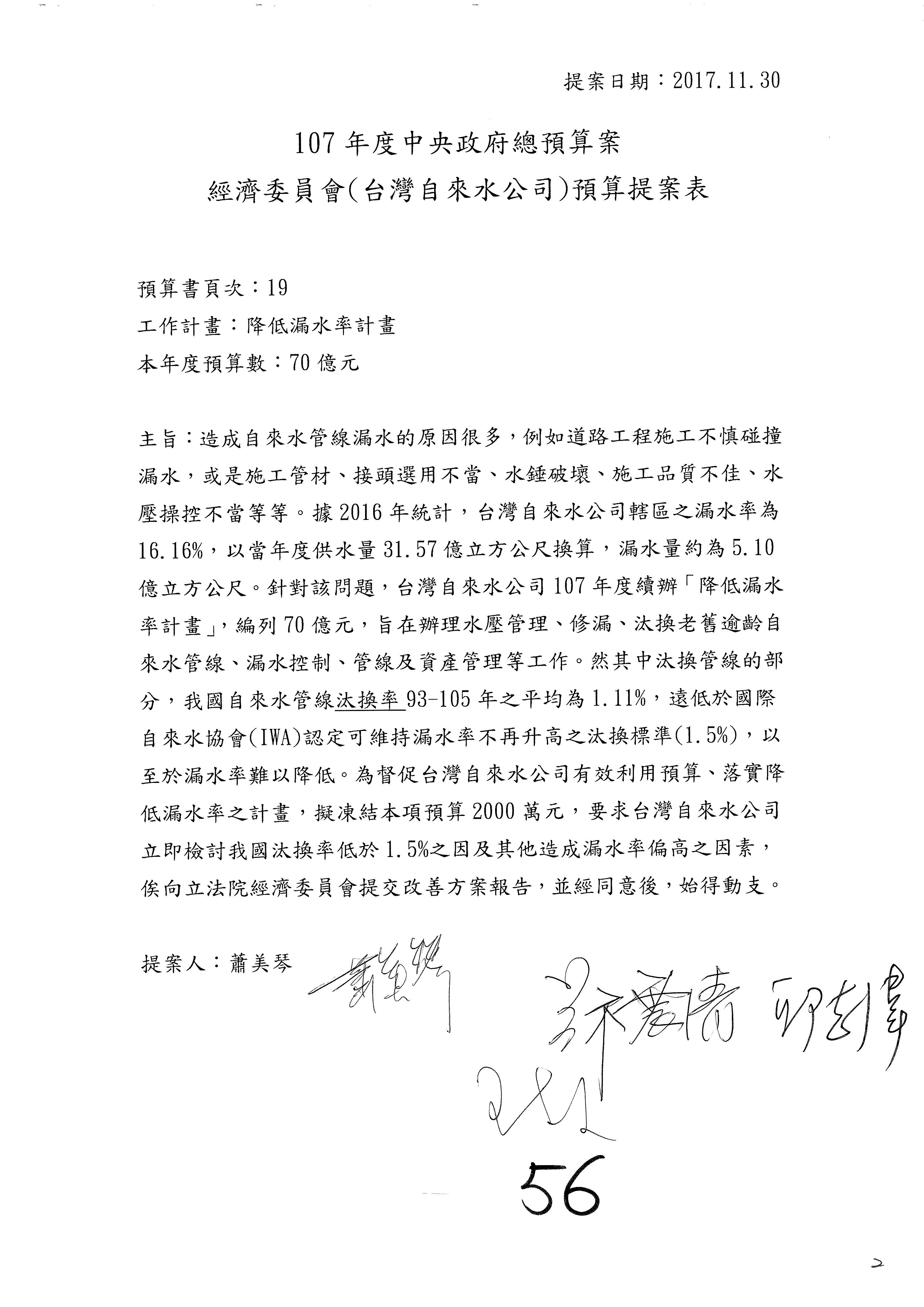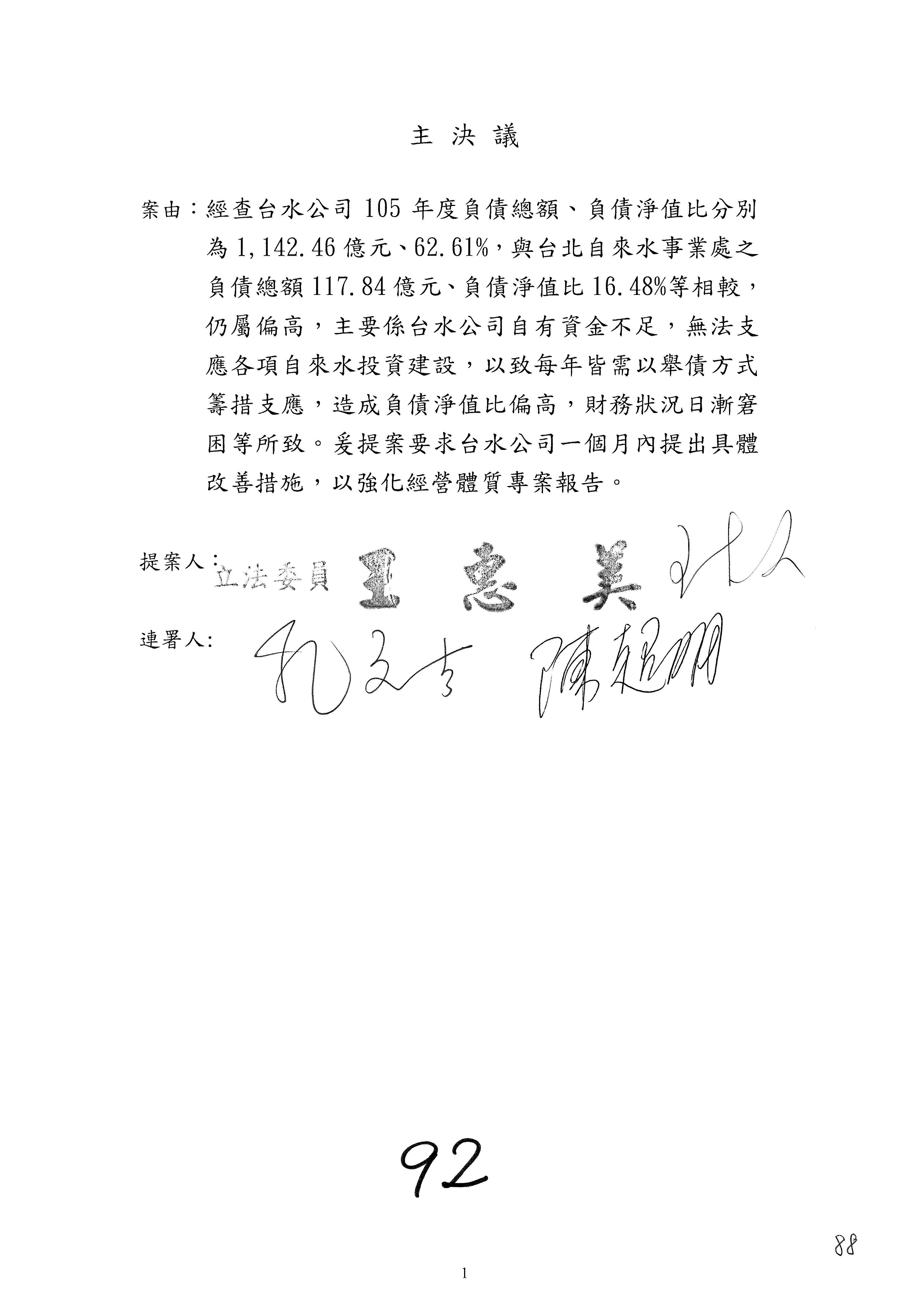 主席:我們繼續處理第66案的決議案。請問自來水公司的意見如何?