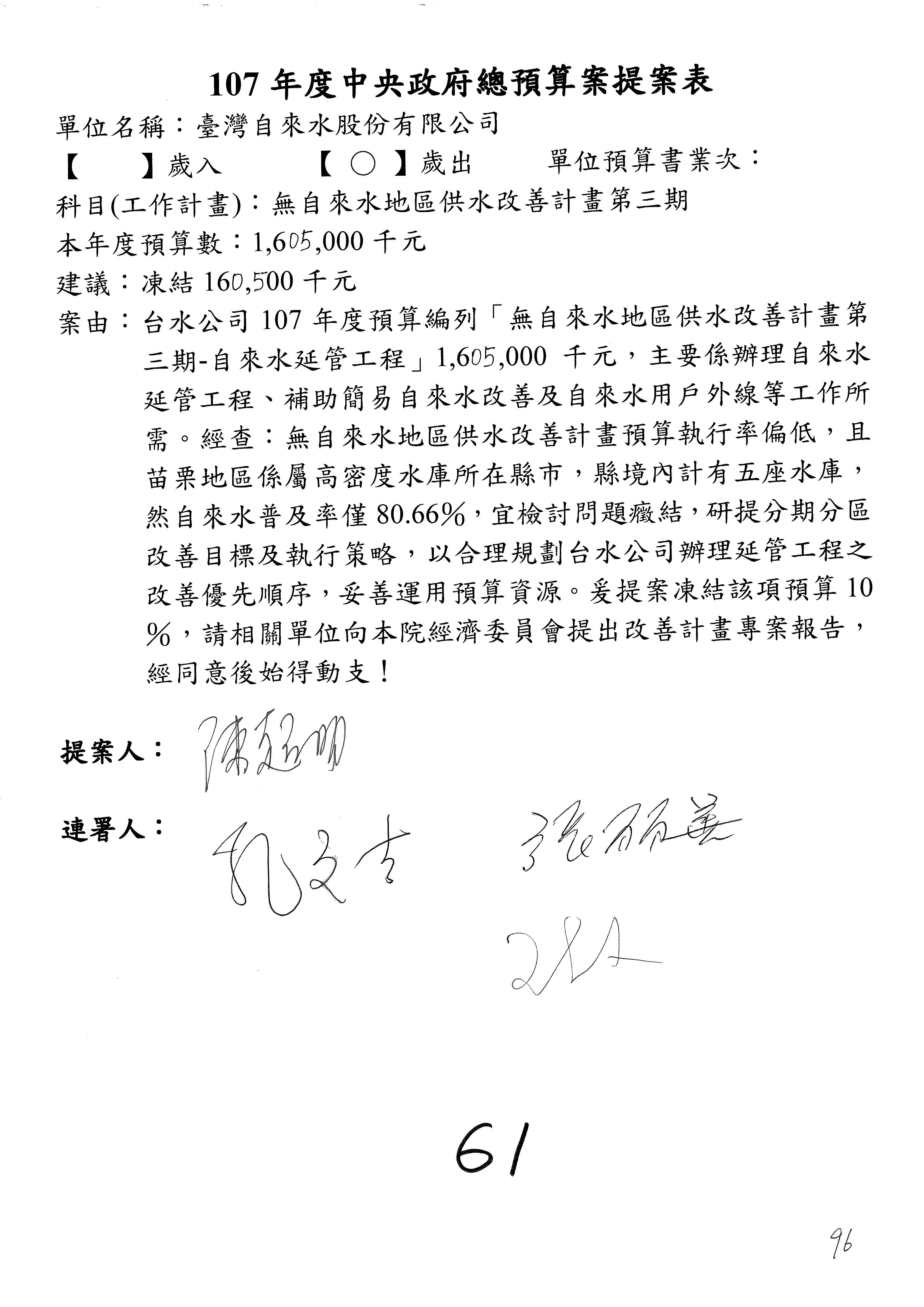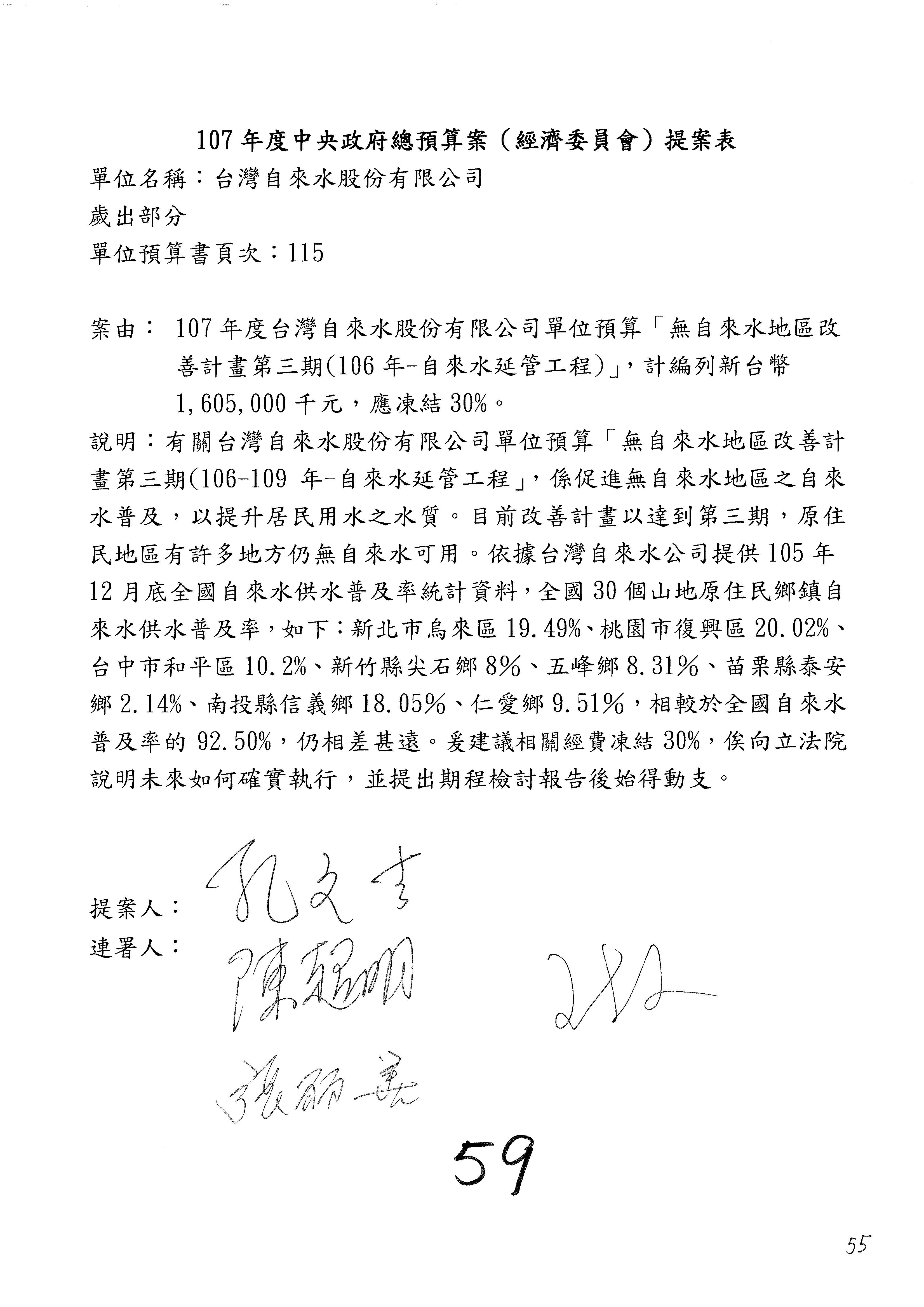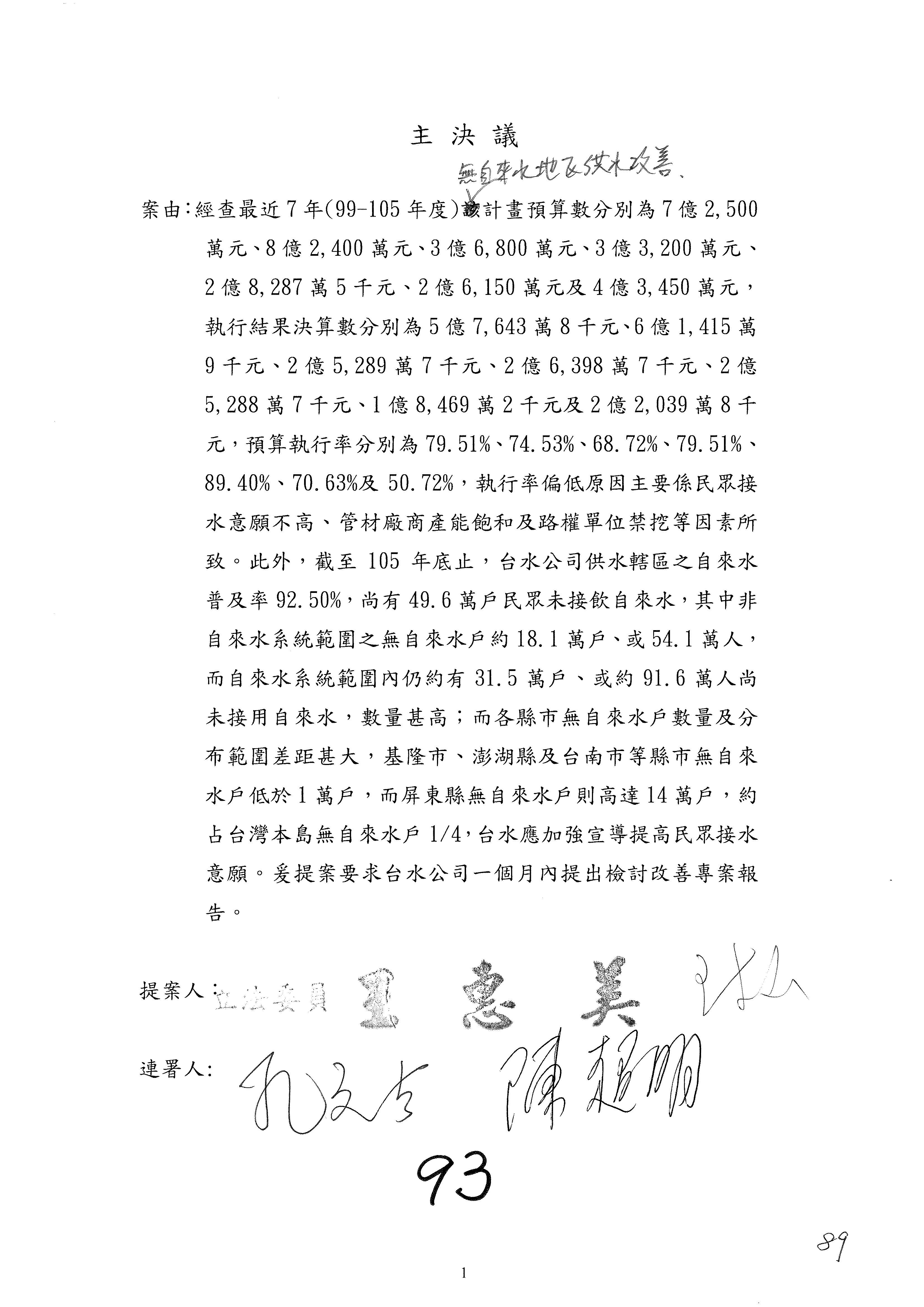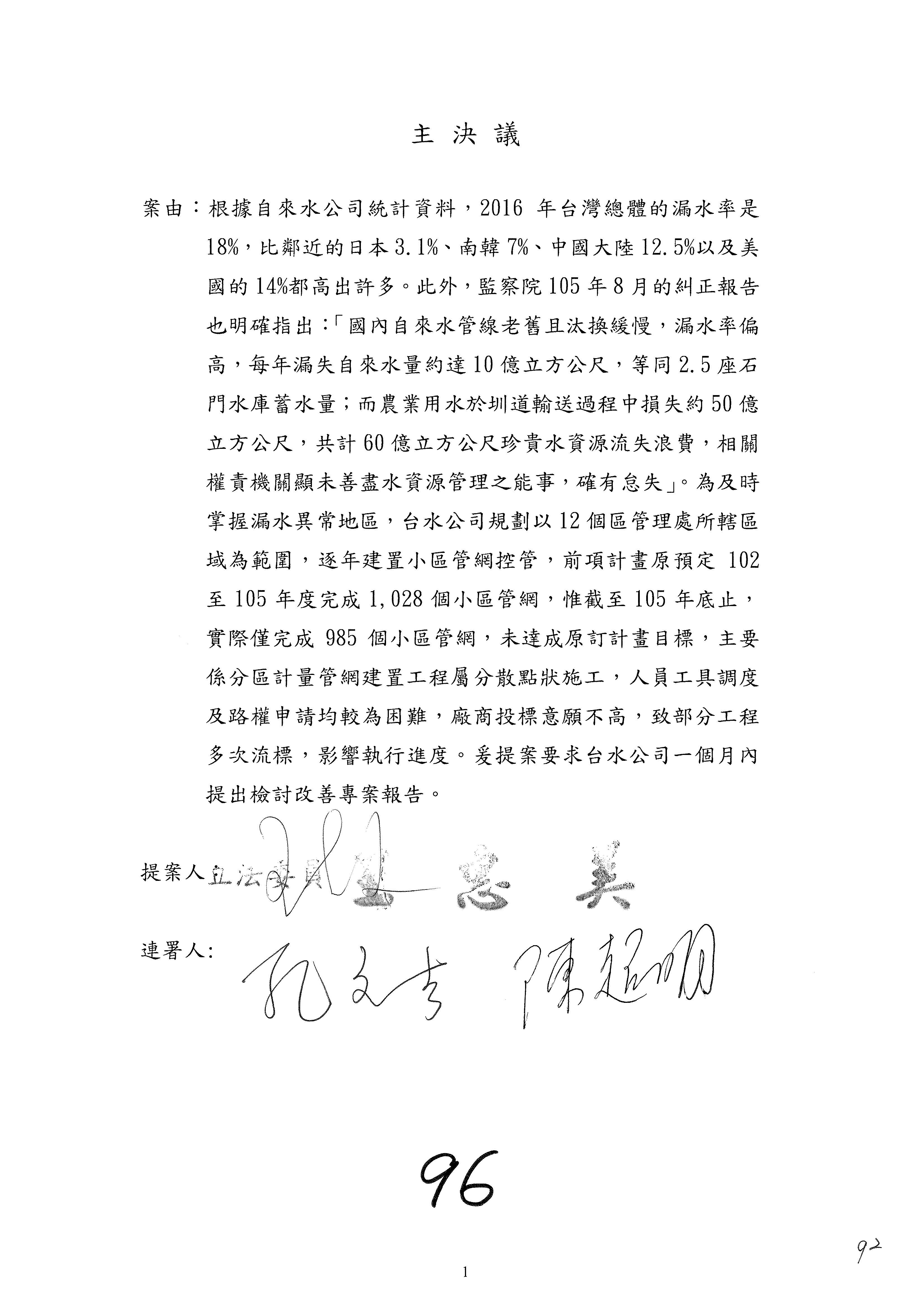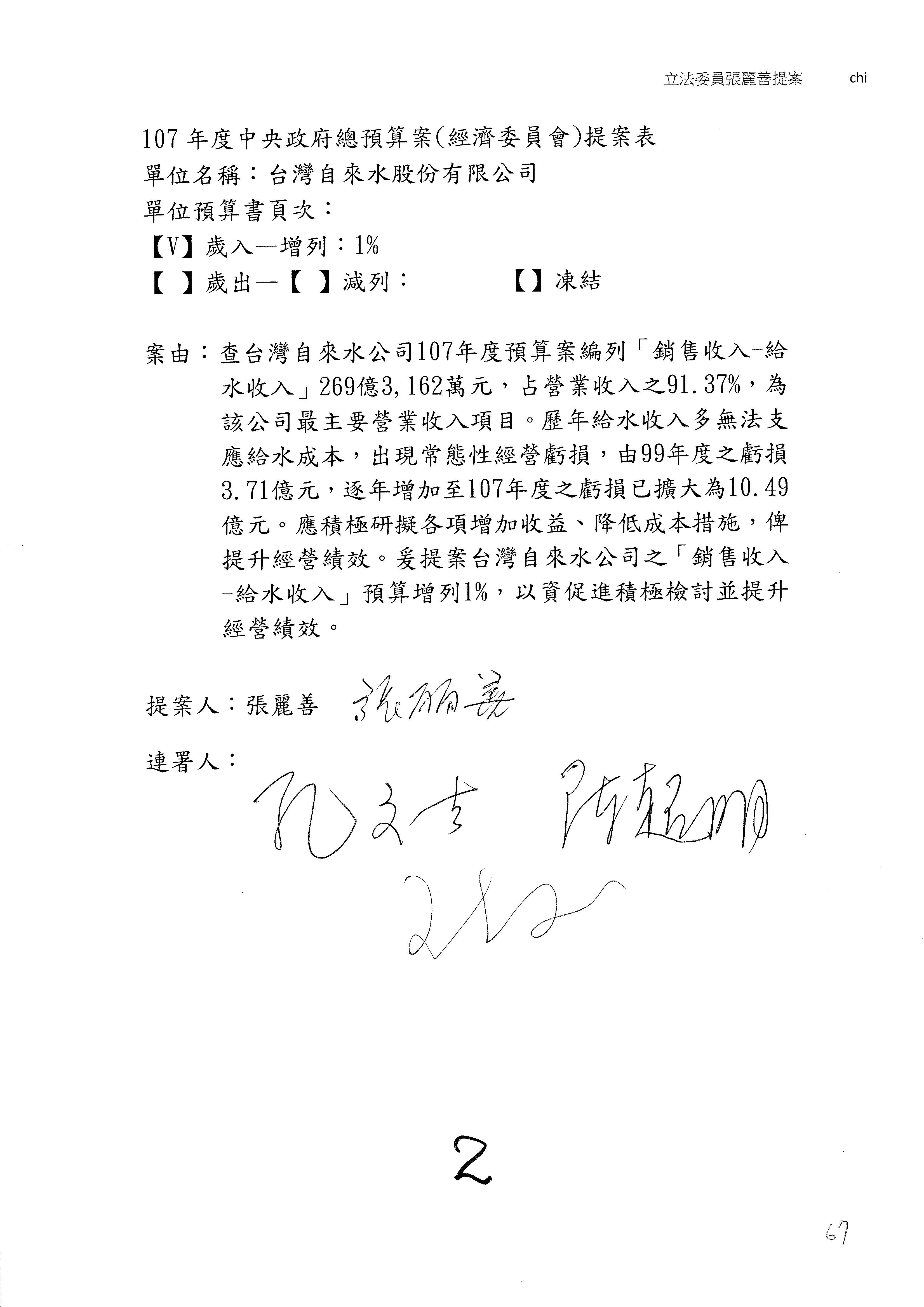 主席:我們繼續處理第66案的決議案。請問自來水公司的意見如何?