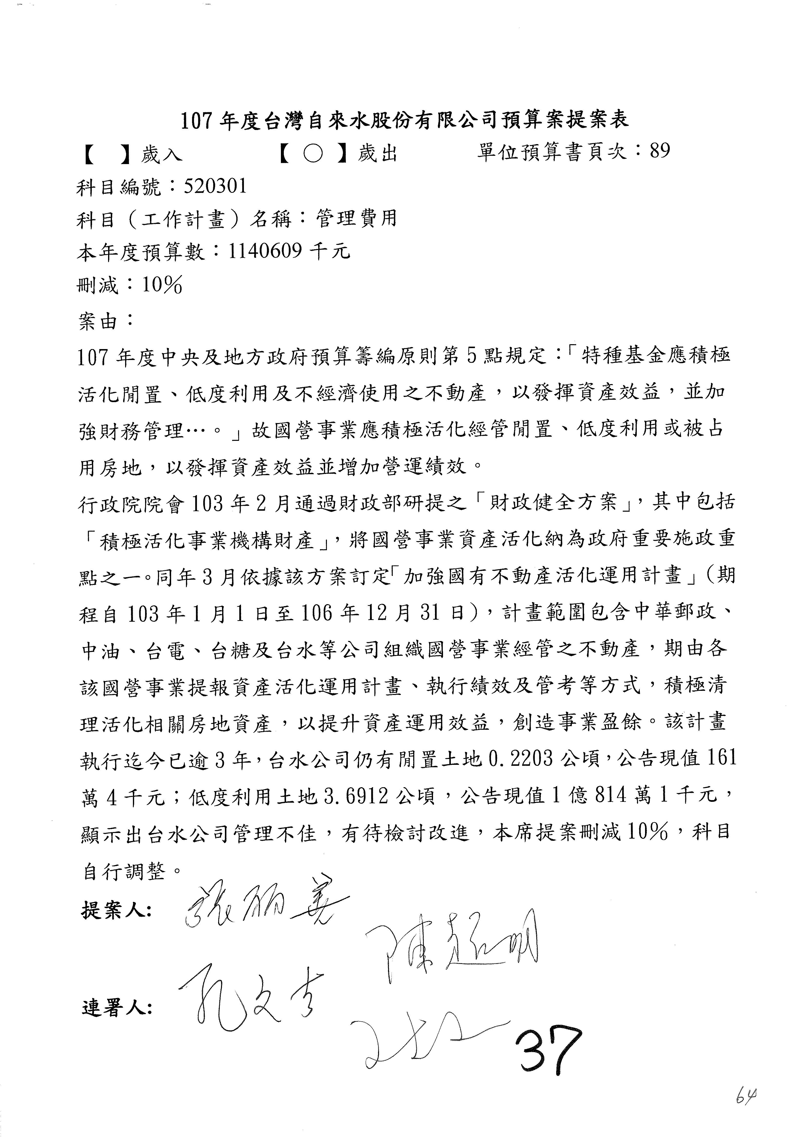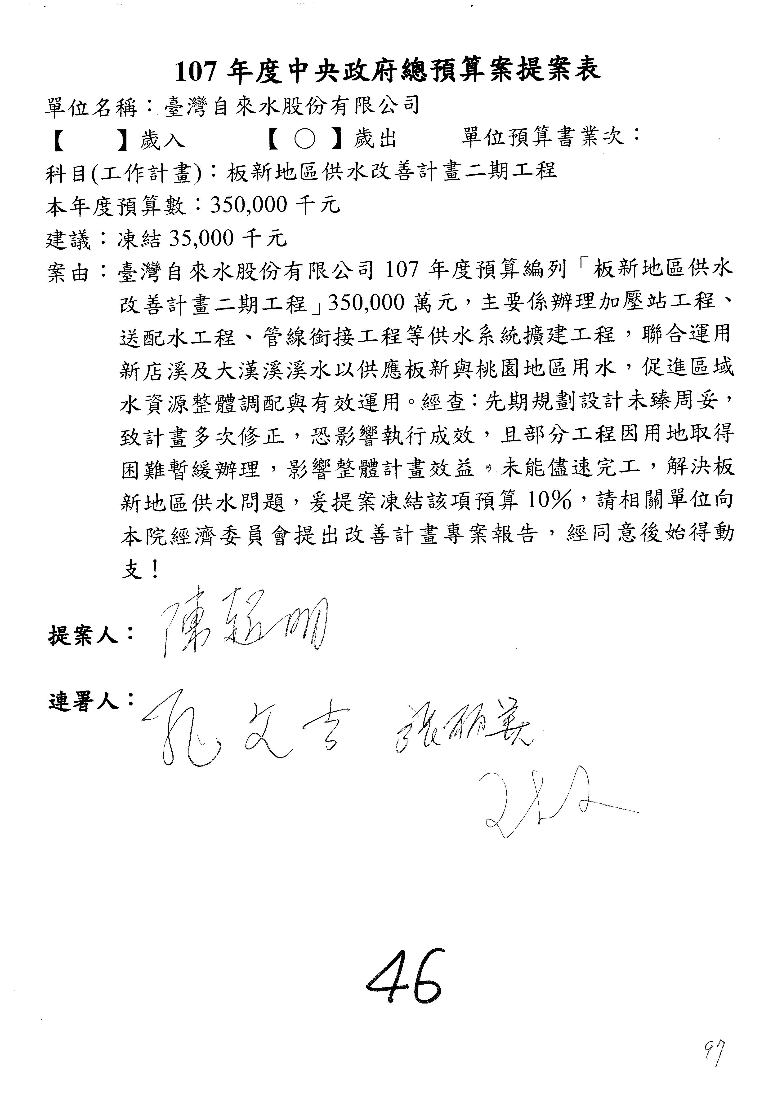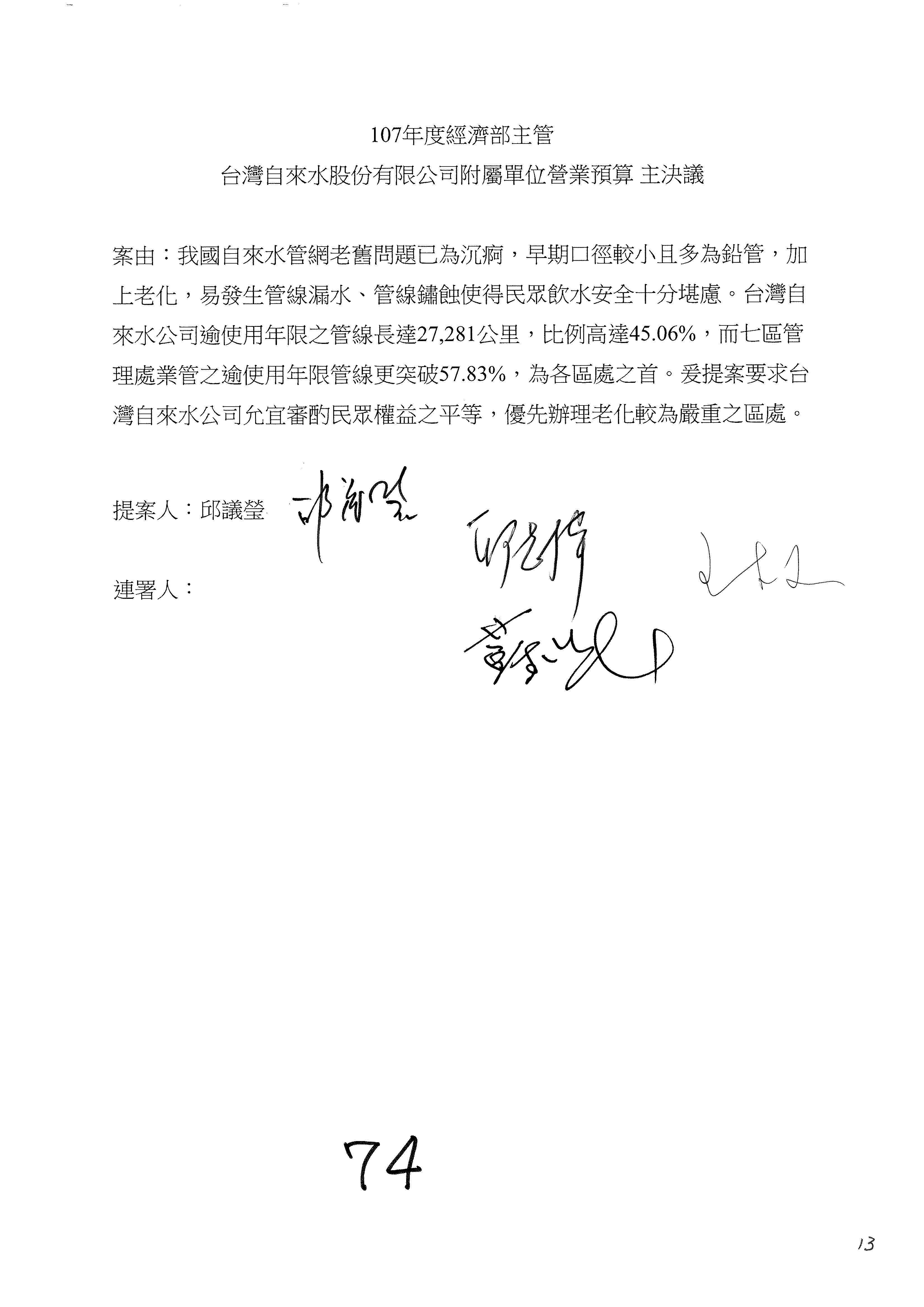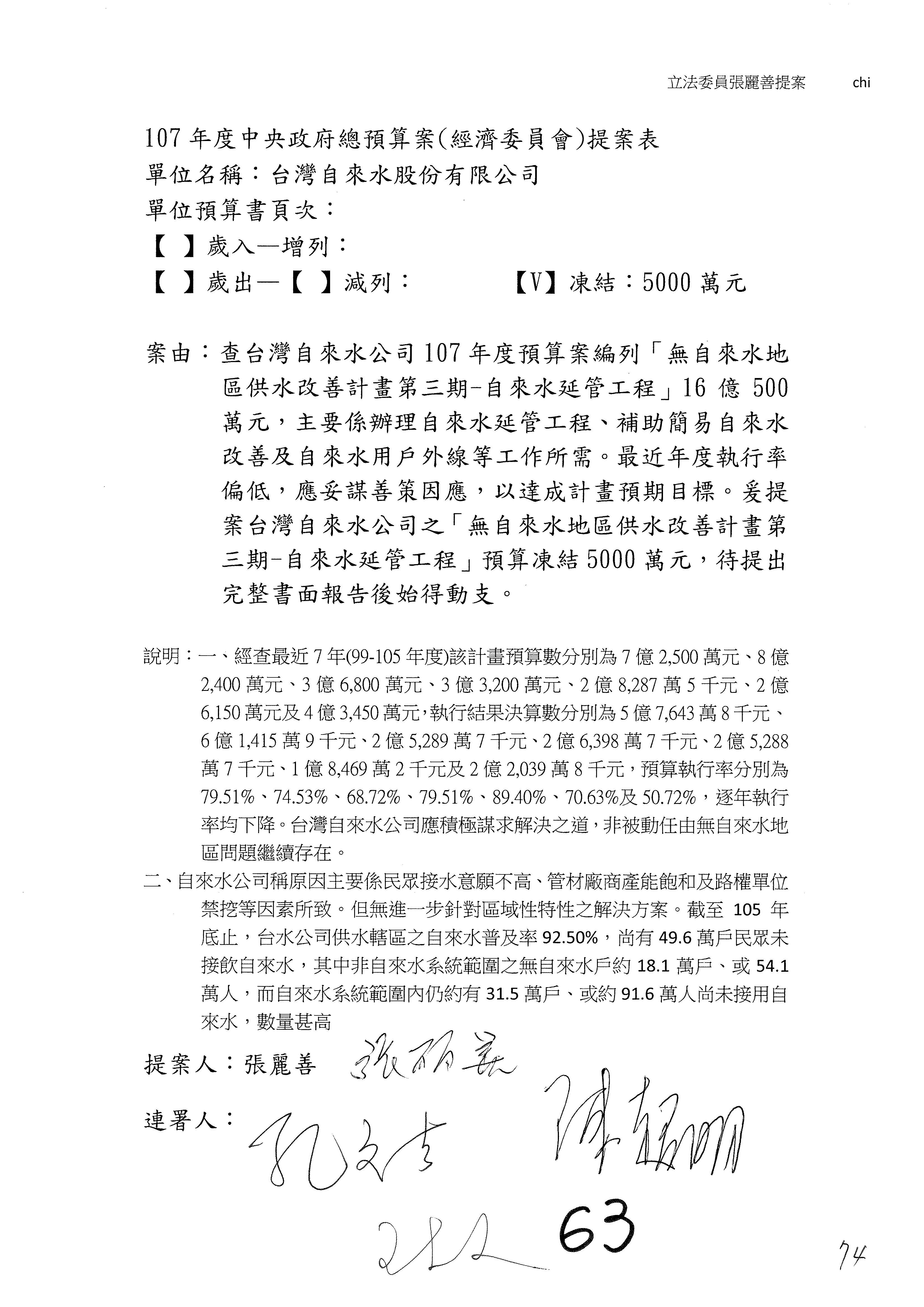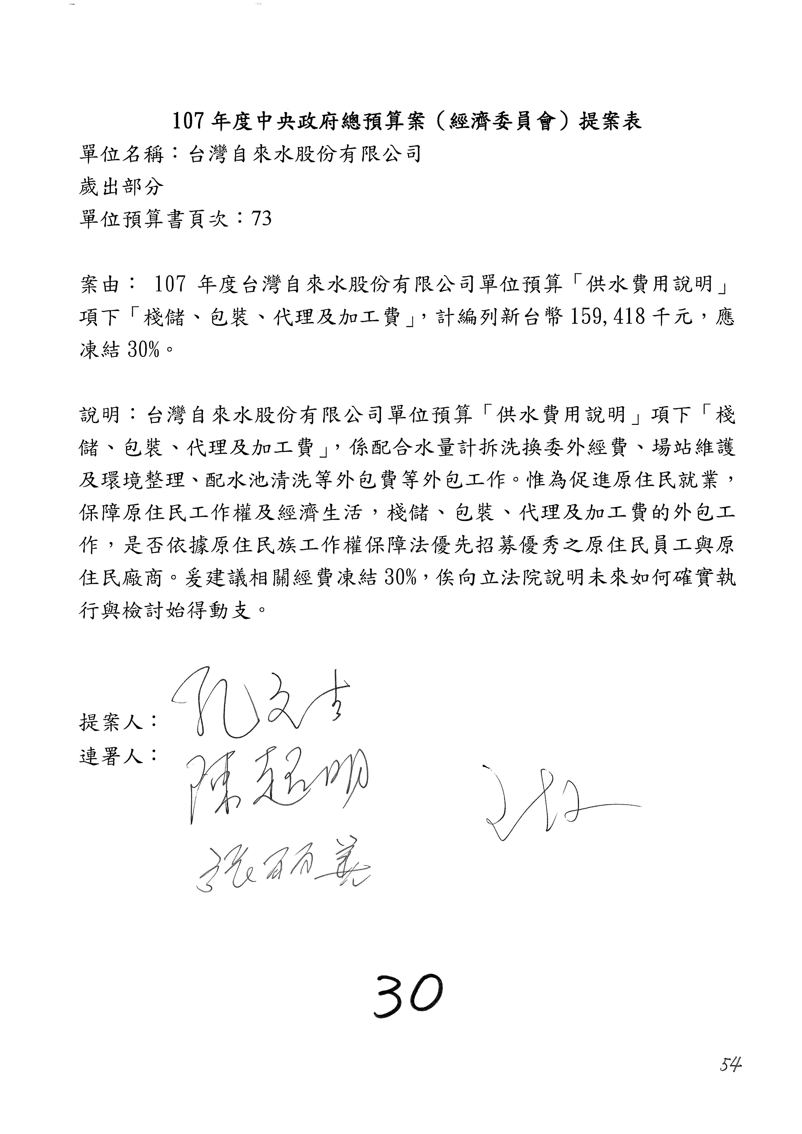 主席:我們繼續處理第66案的決議案。請問自來水公司的意見如何?