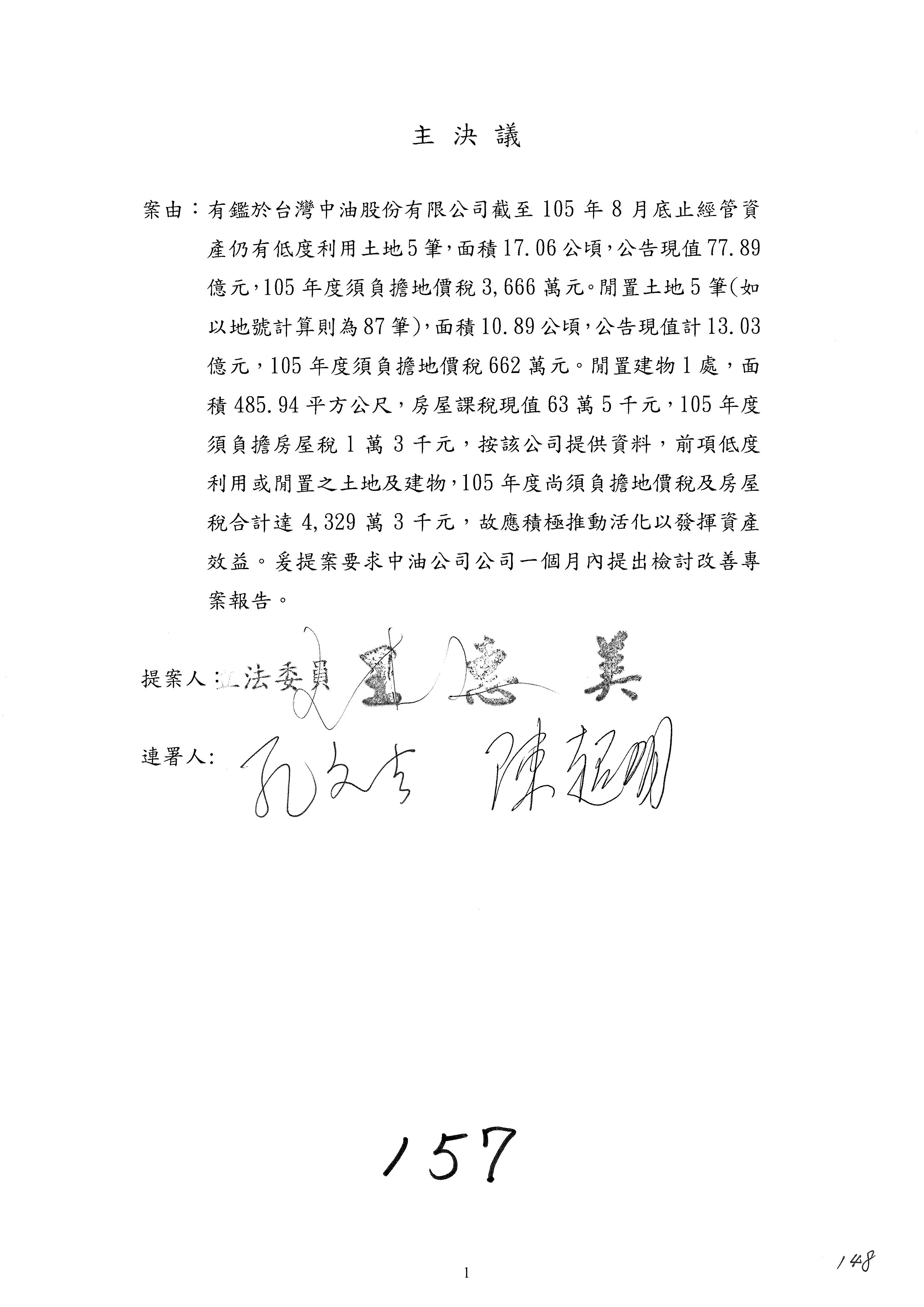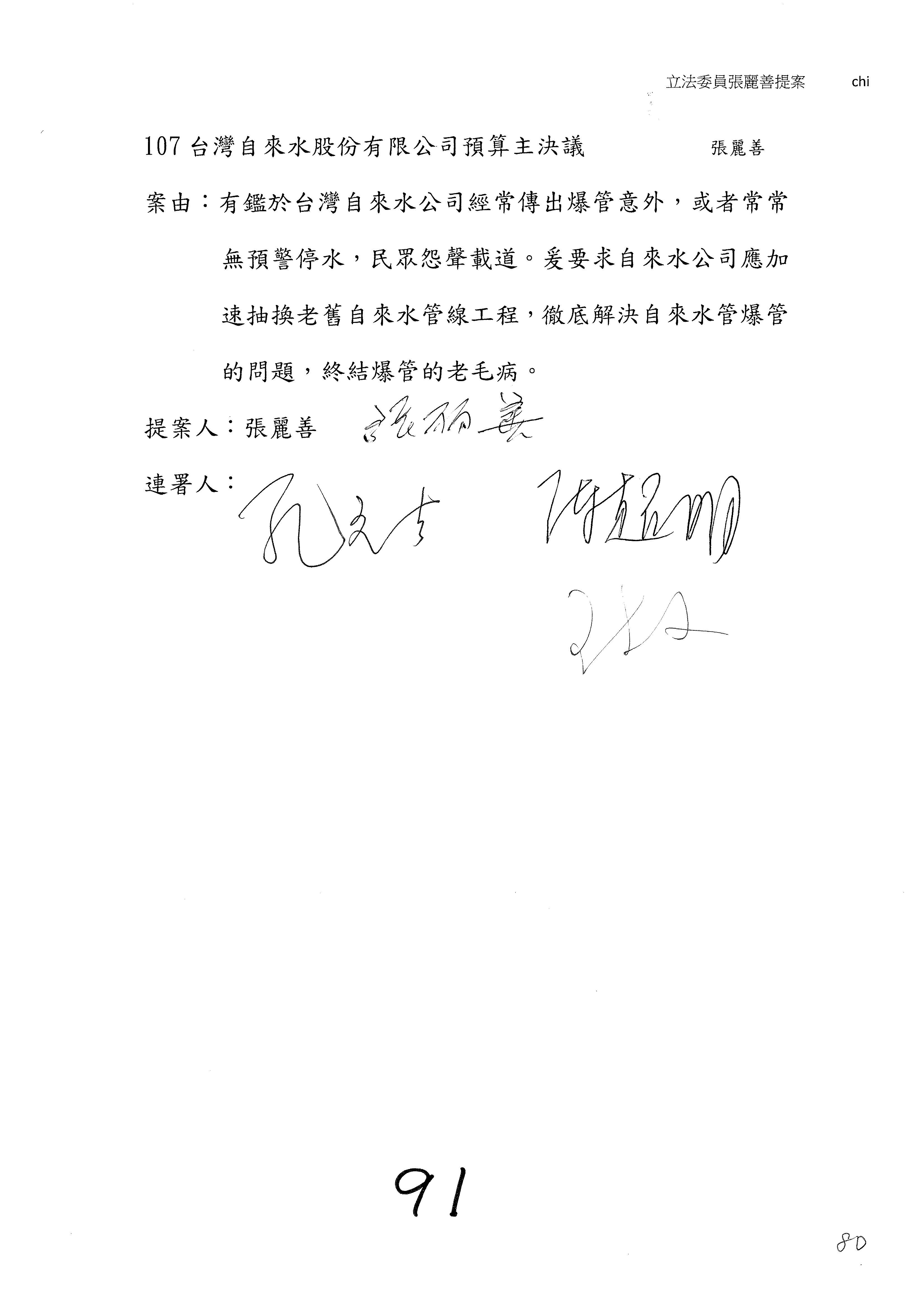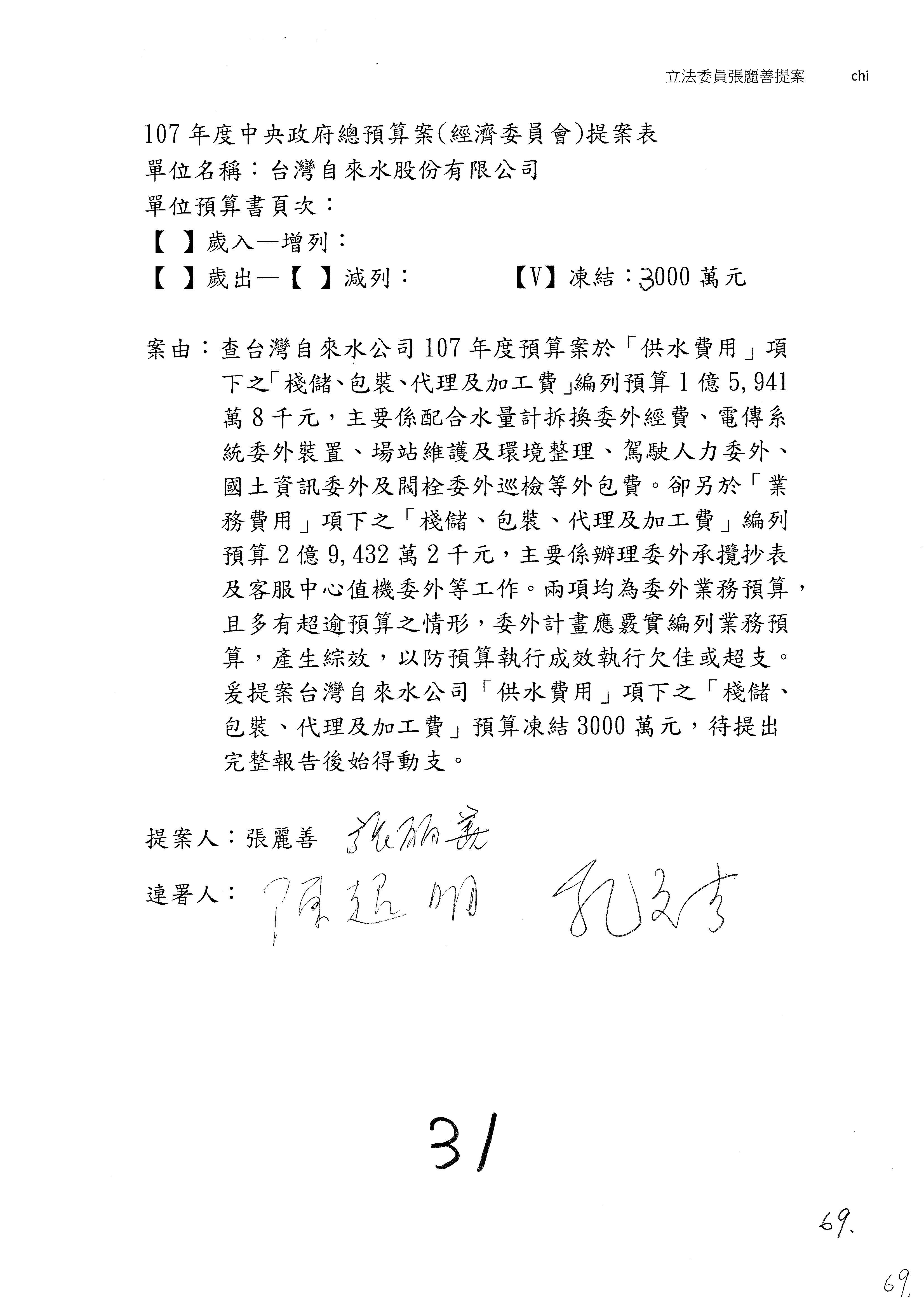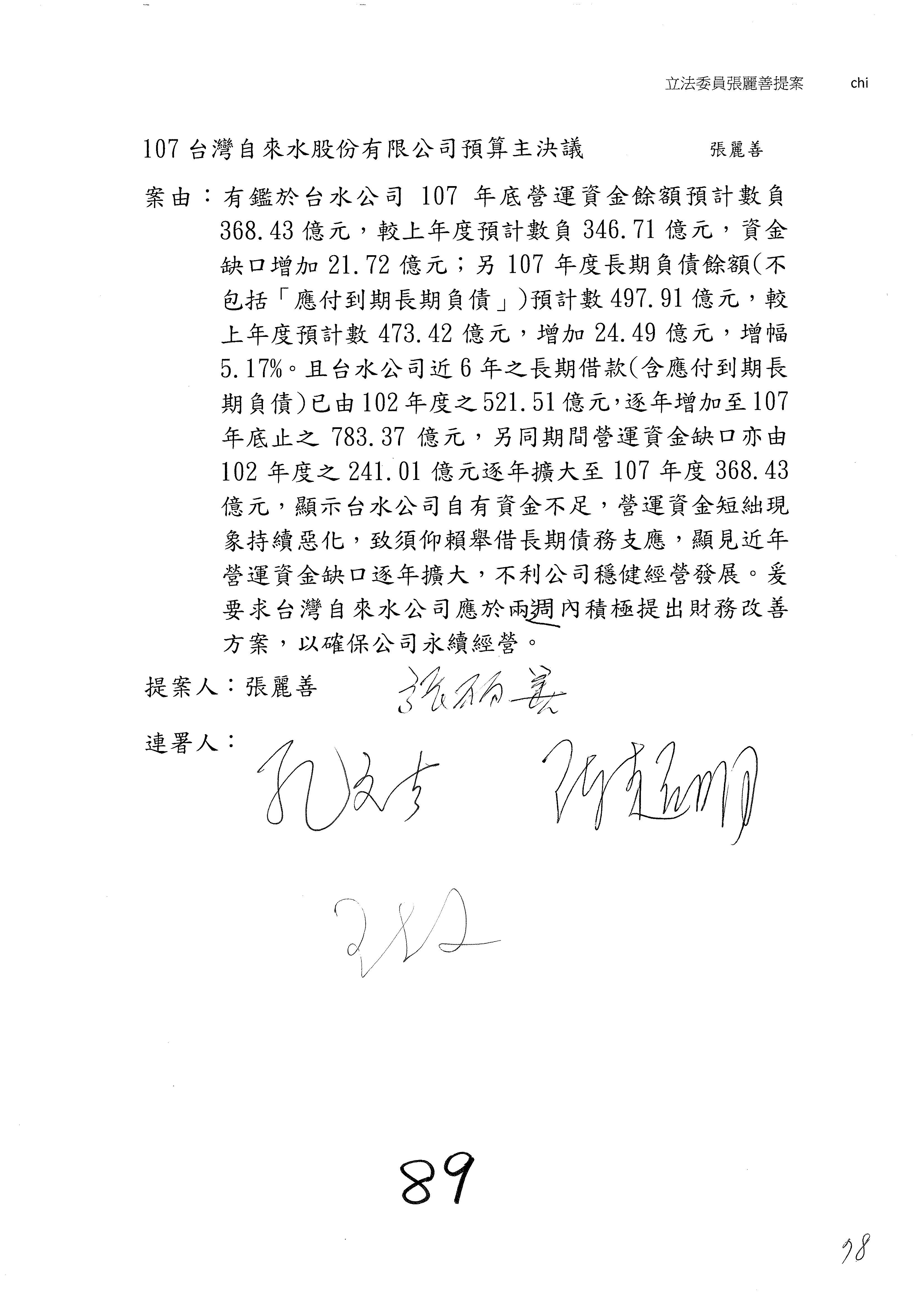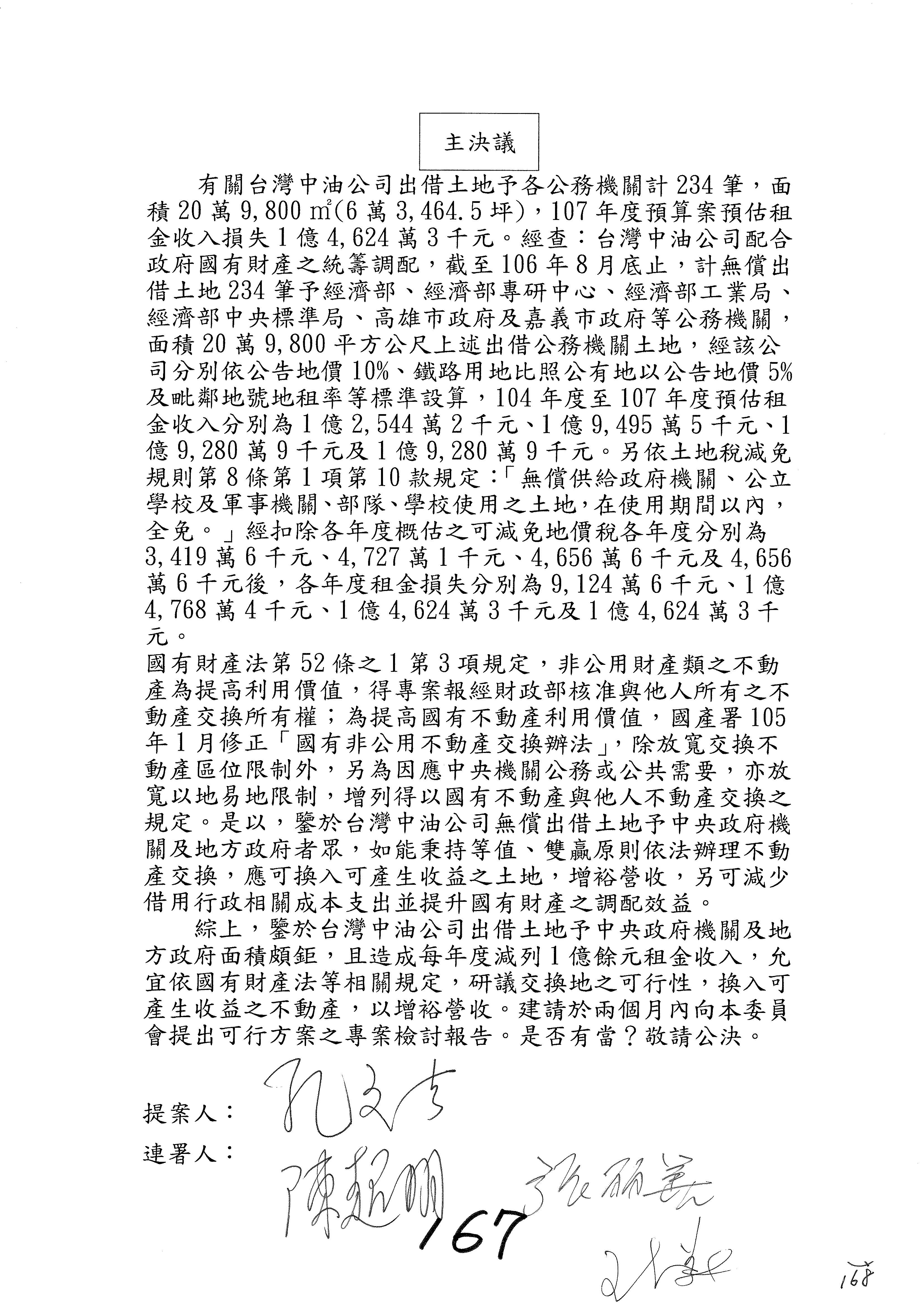 主席:我們繼續處理第66案的決議案。請問自來水公司的意見如何?