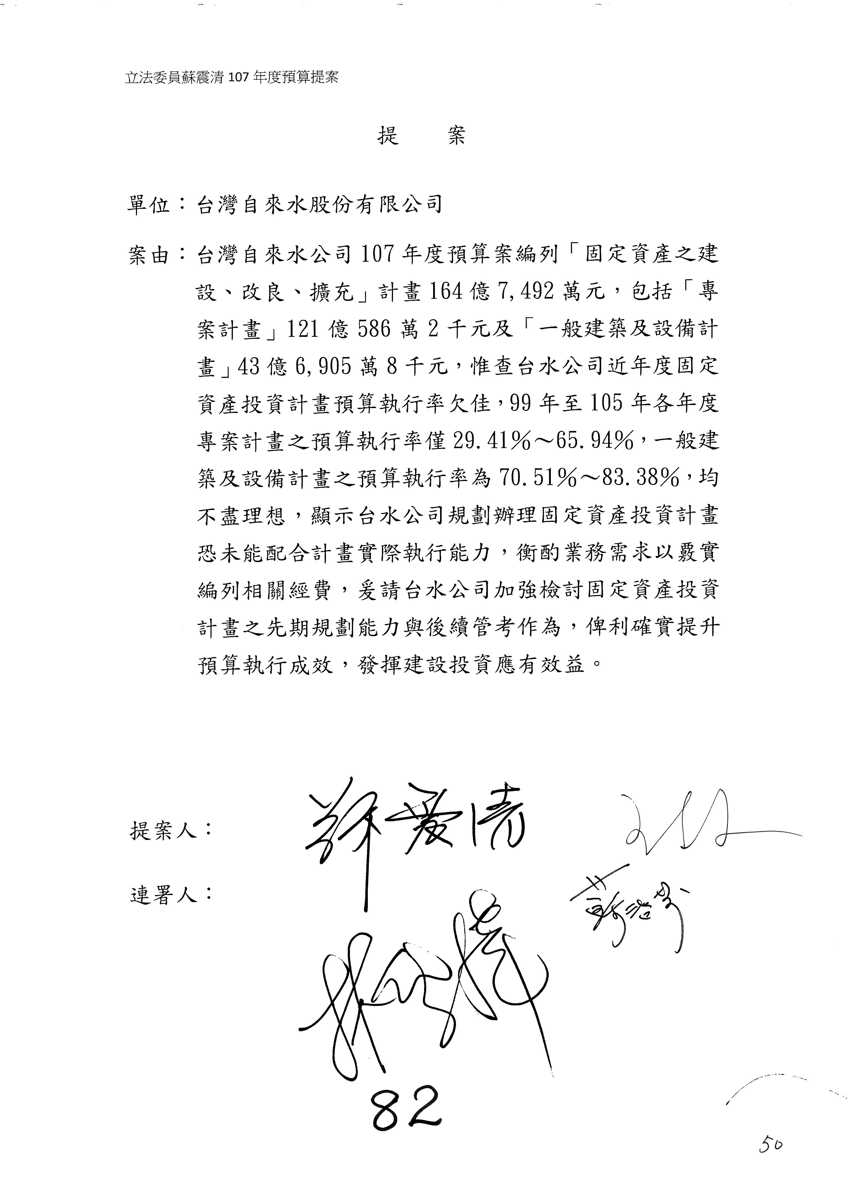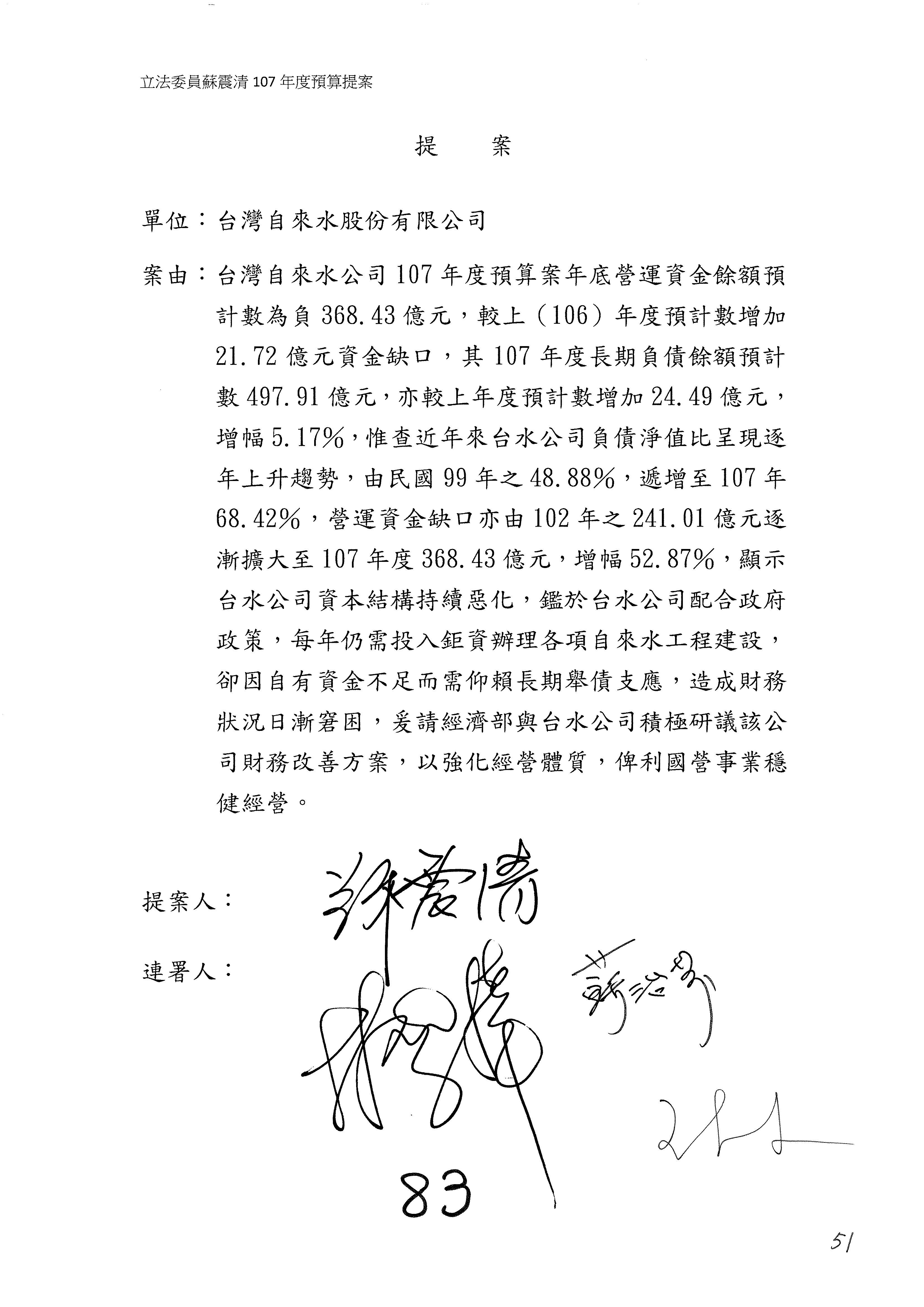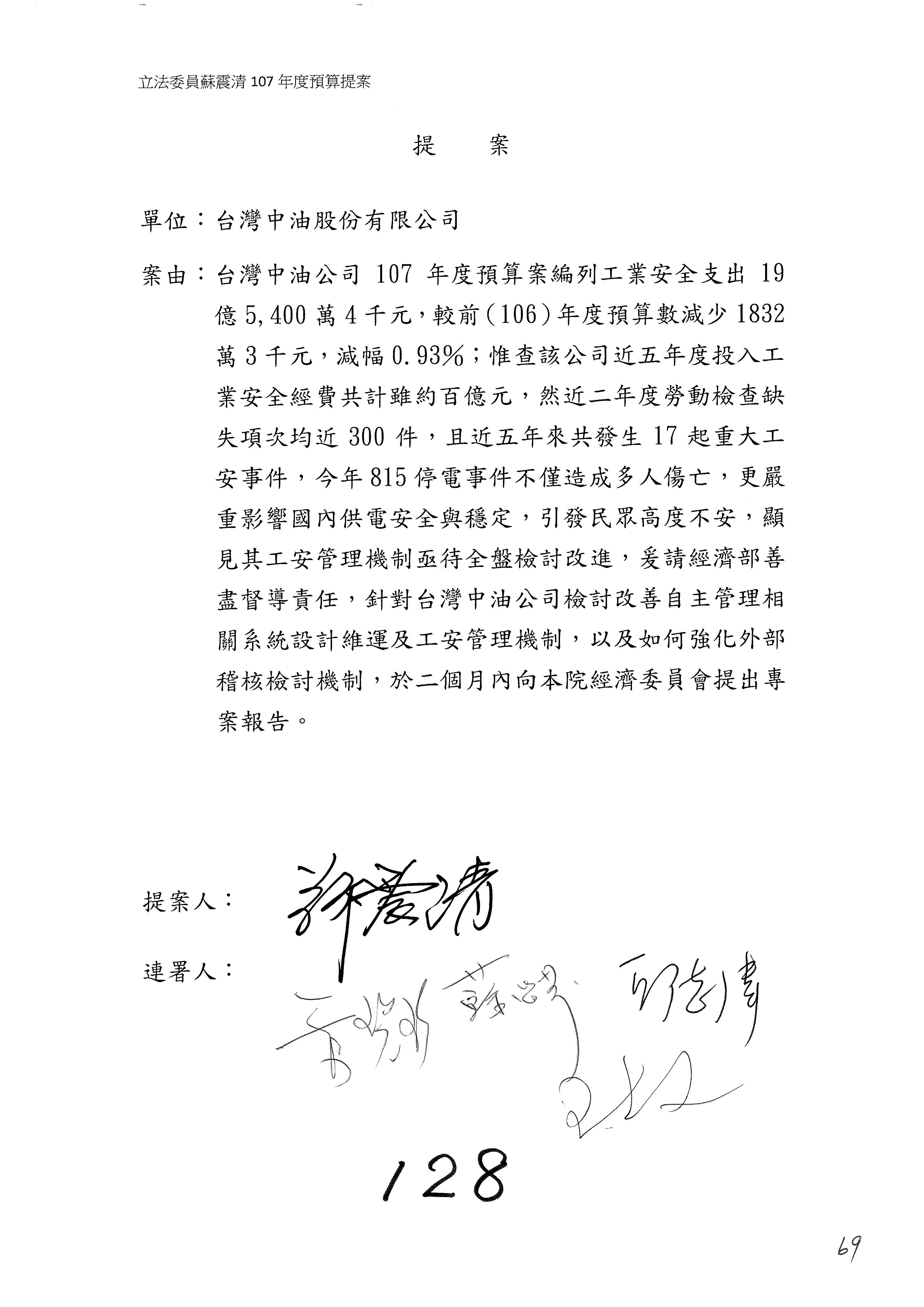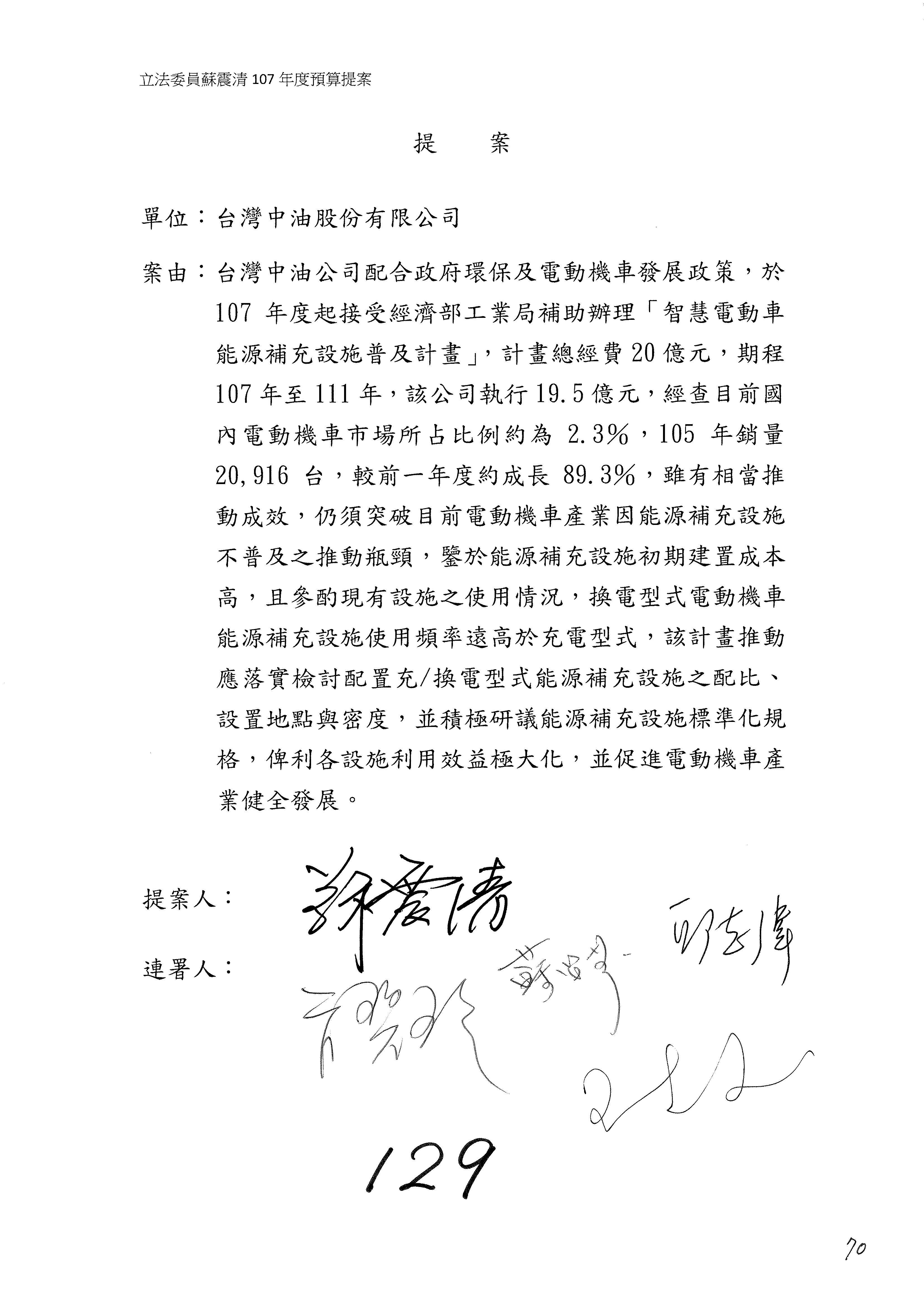 提案人:蘇震清 邱志偉 陳超明 徐永明 王惠美 陳明文 張麗善 蕭美琴