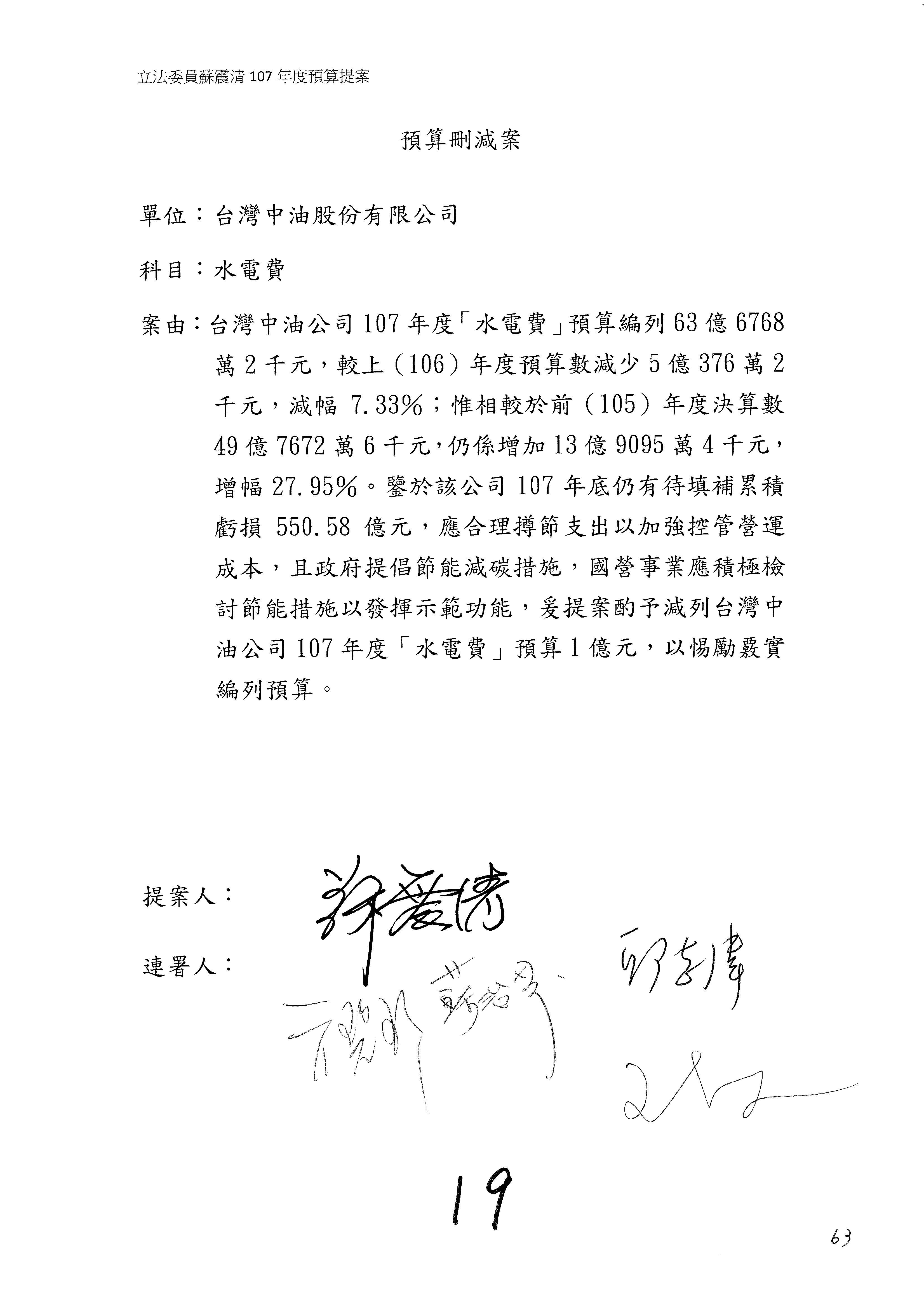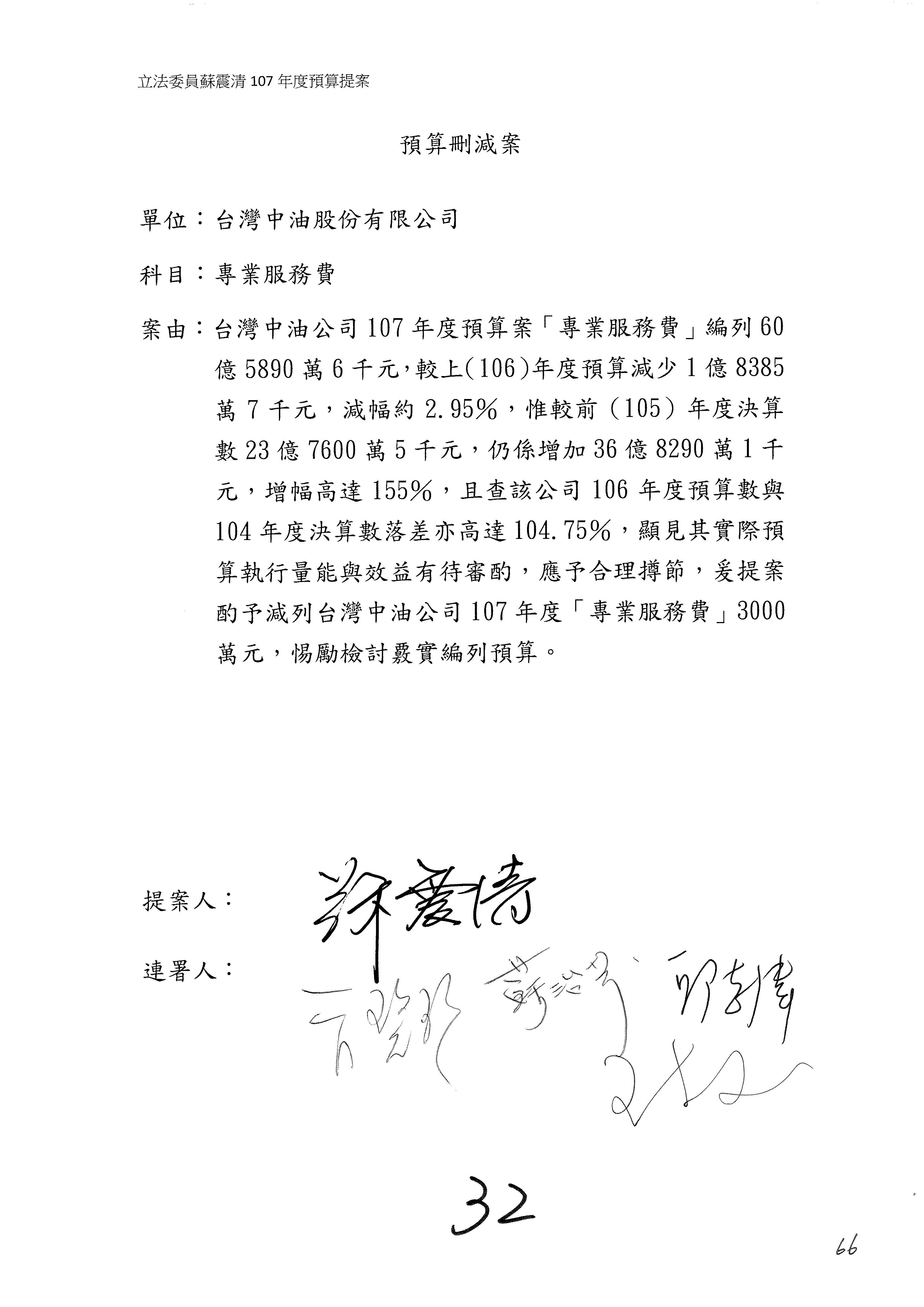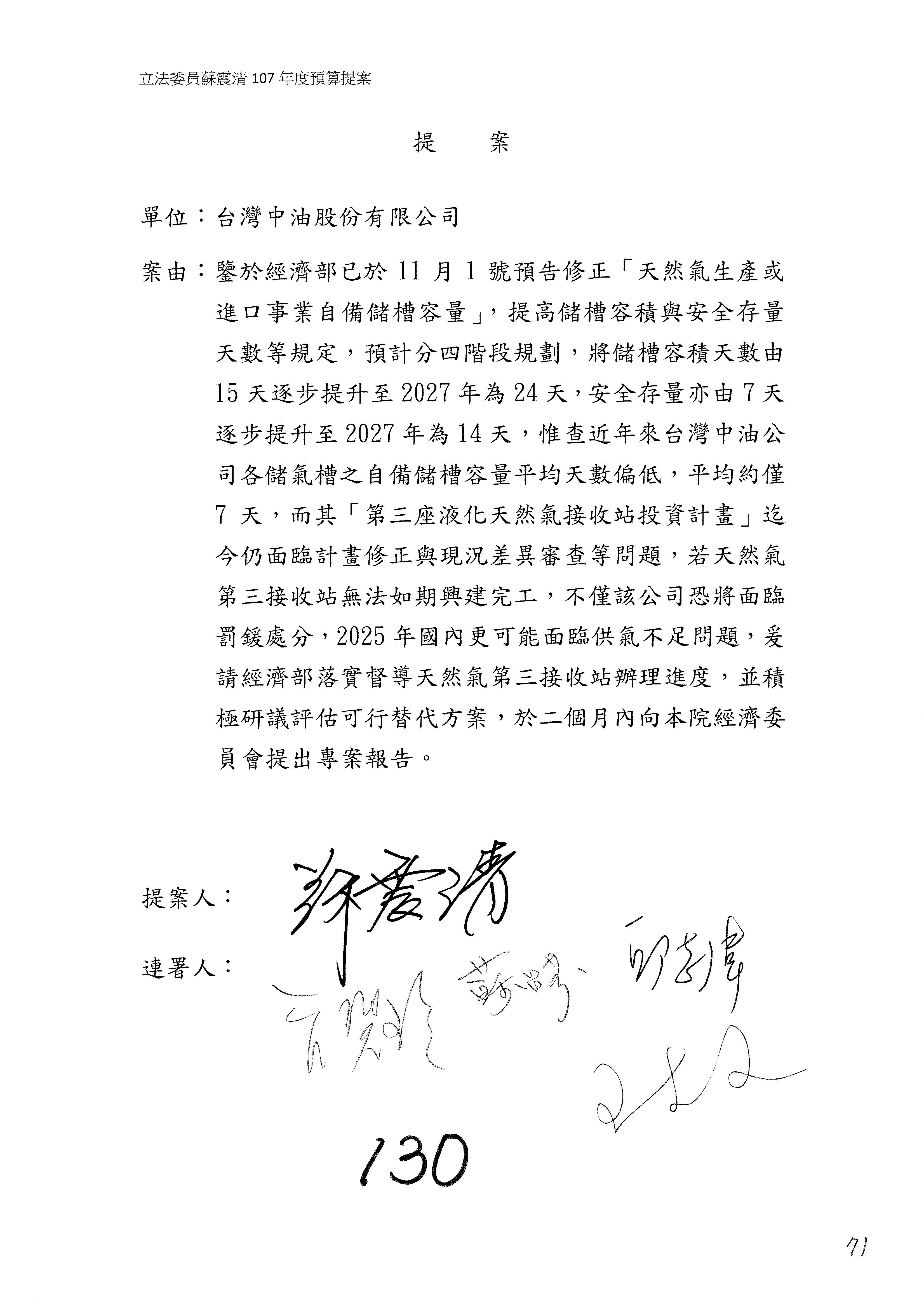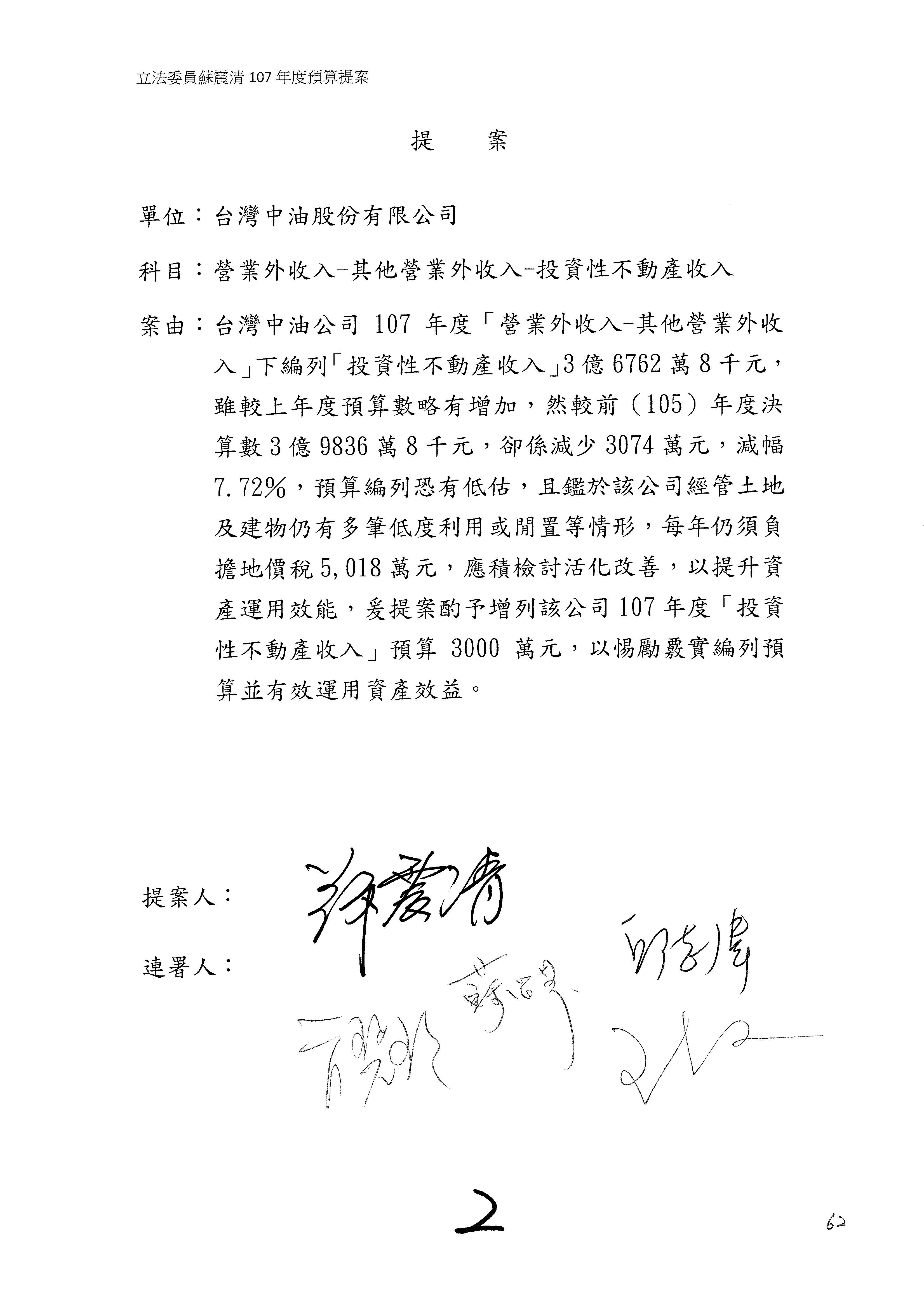 提案人:蘇震清 邱志偉 陳超明 徐永明 王惠美 陳明文 張麗善 蕭美琴