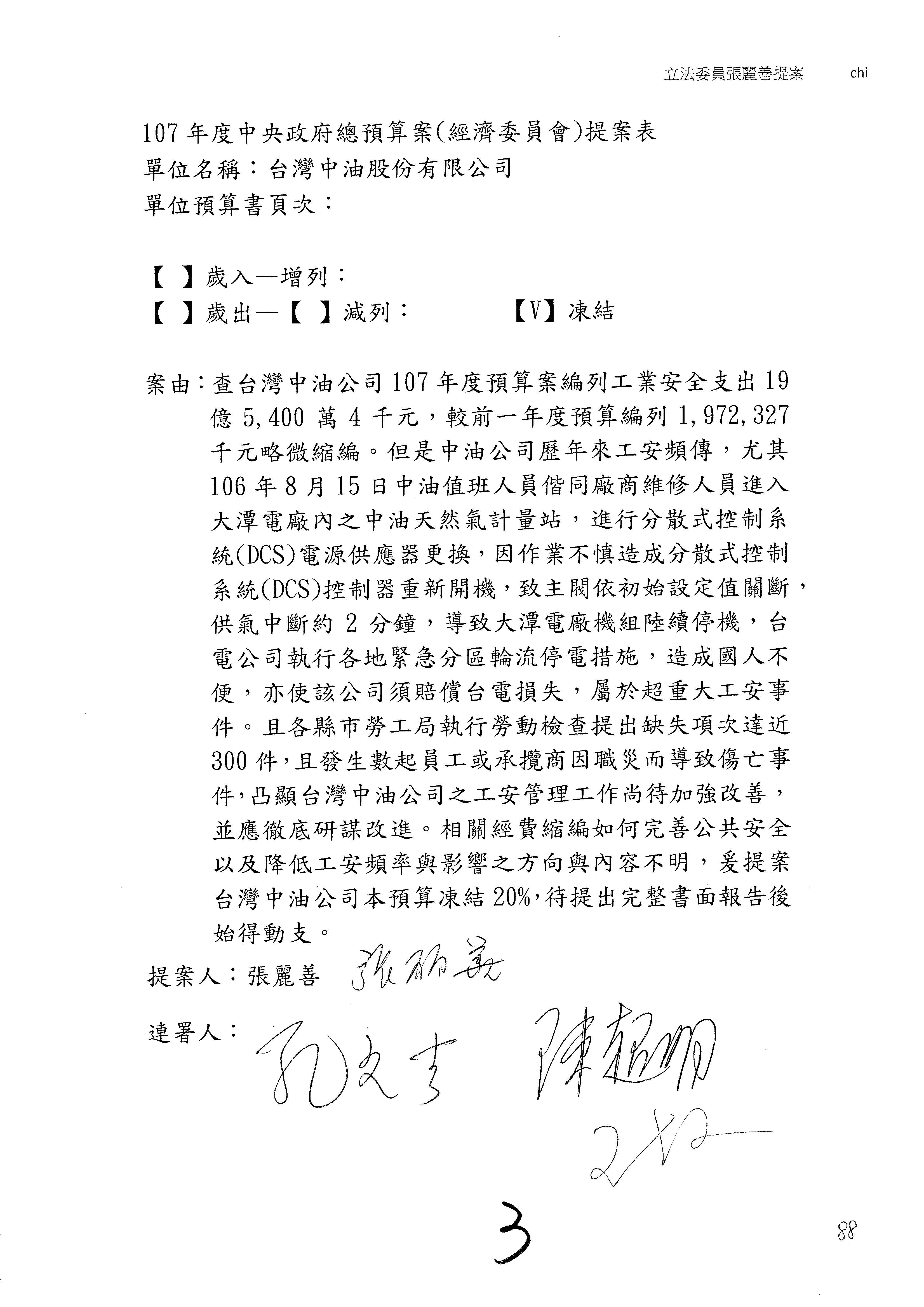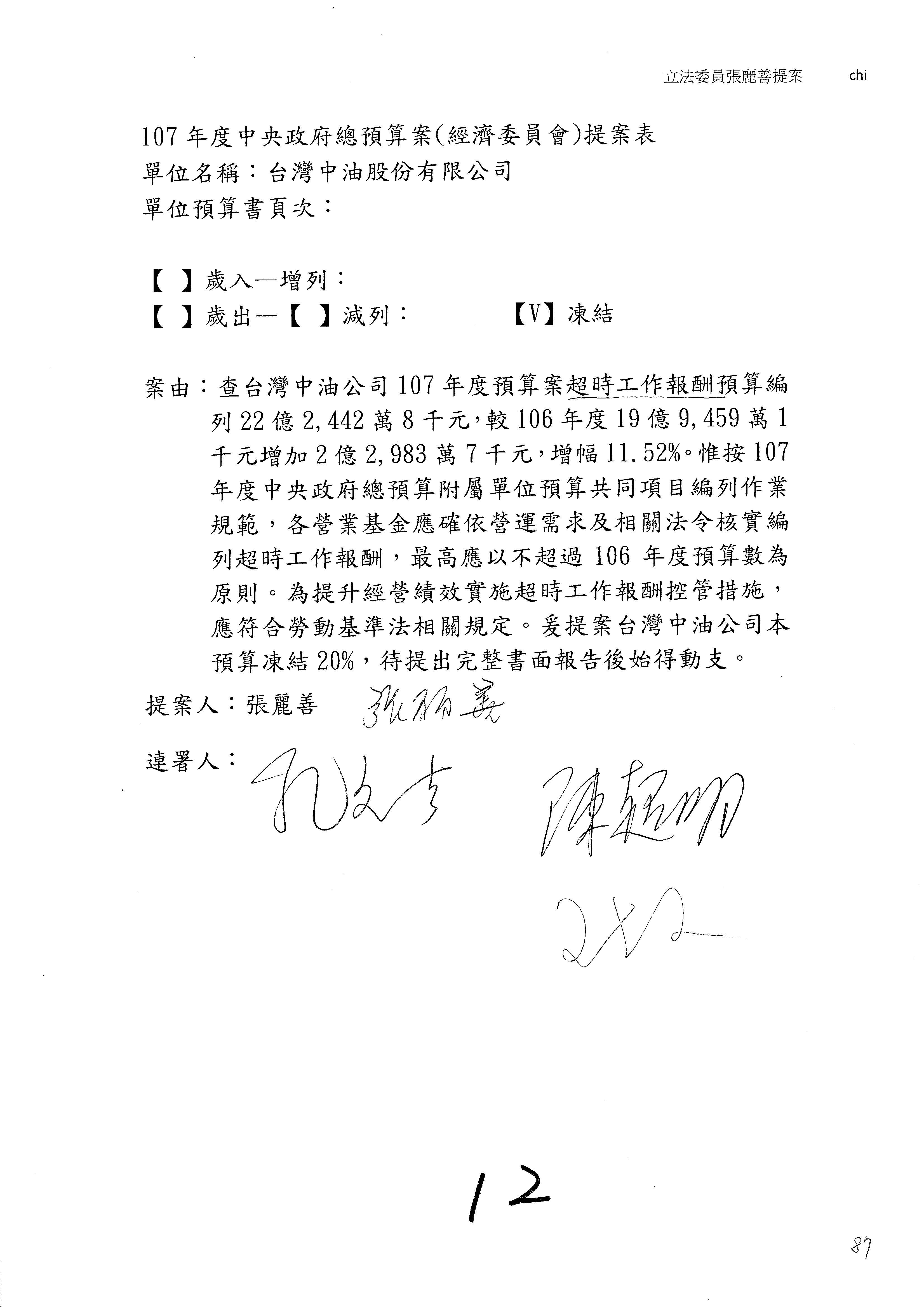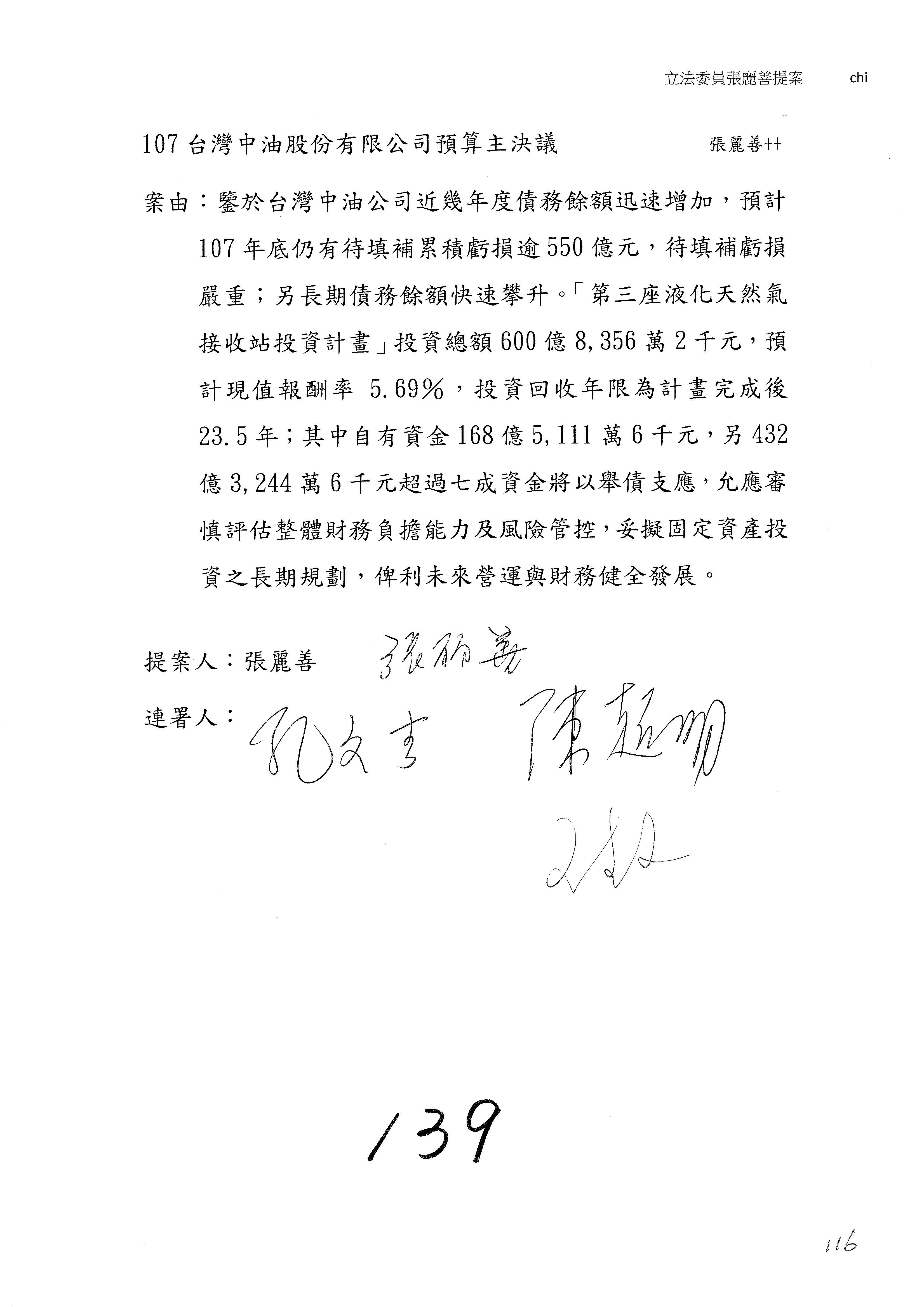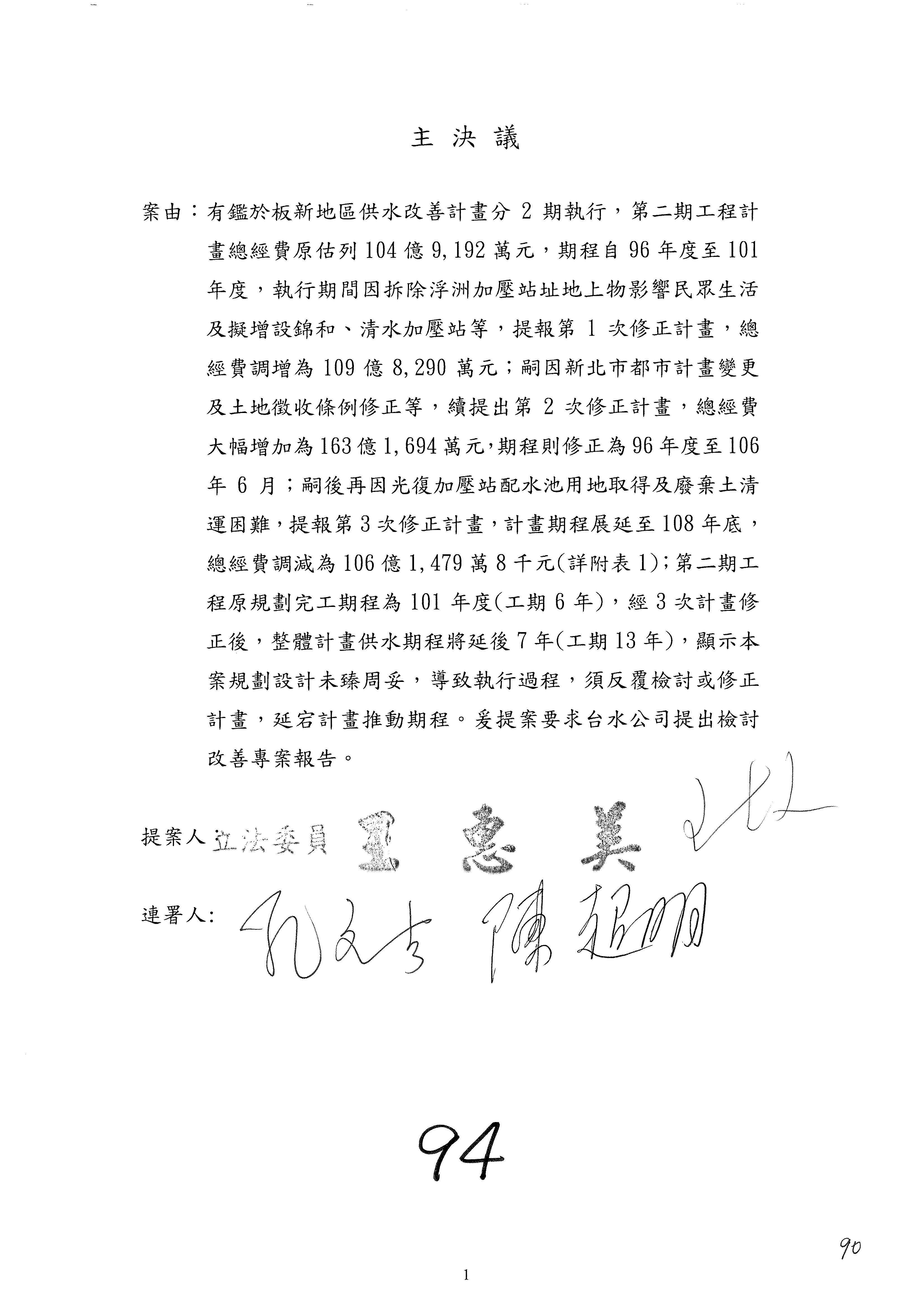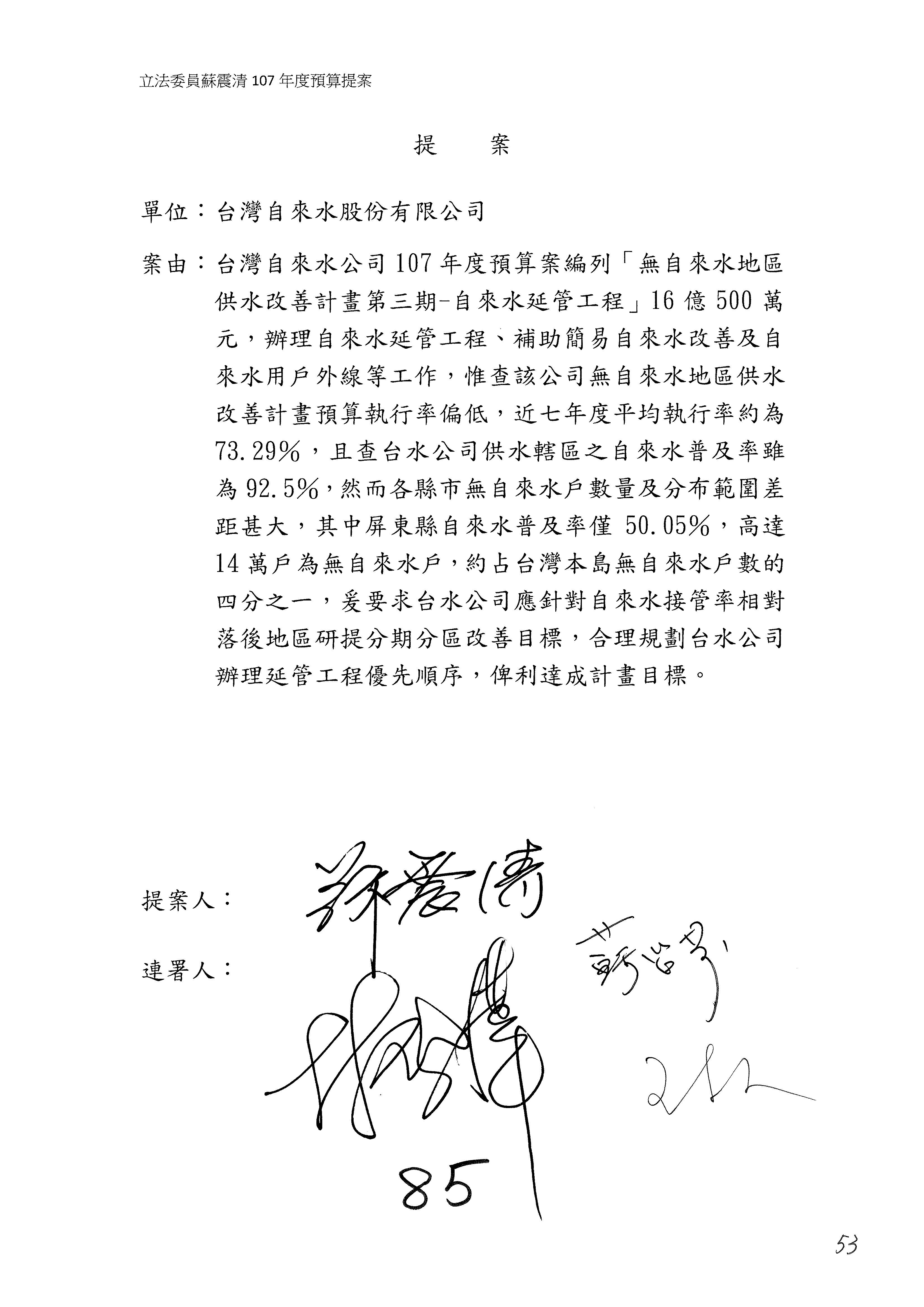 提案人:蘇震清 邱志偉 陳超明 徐永明 王惠美 陳明文 張麗善 蕭美琴