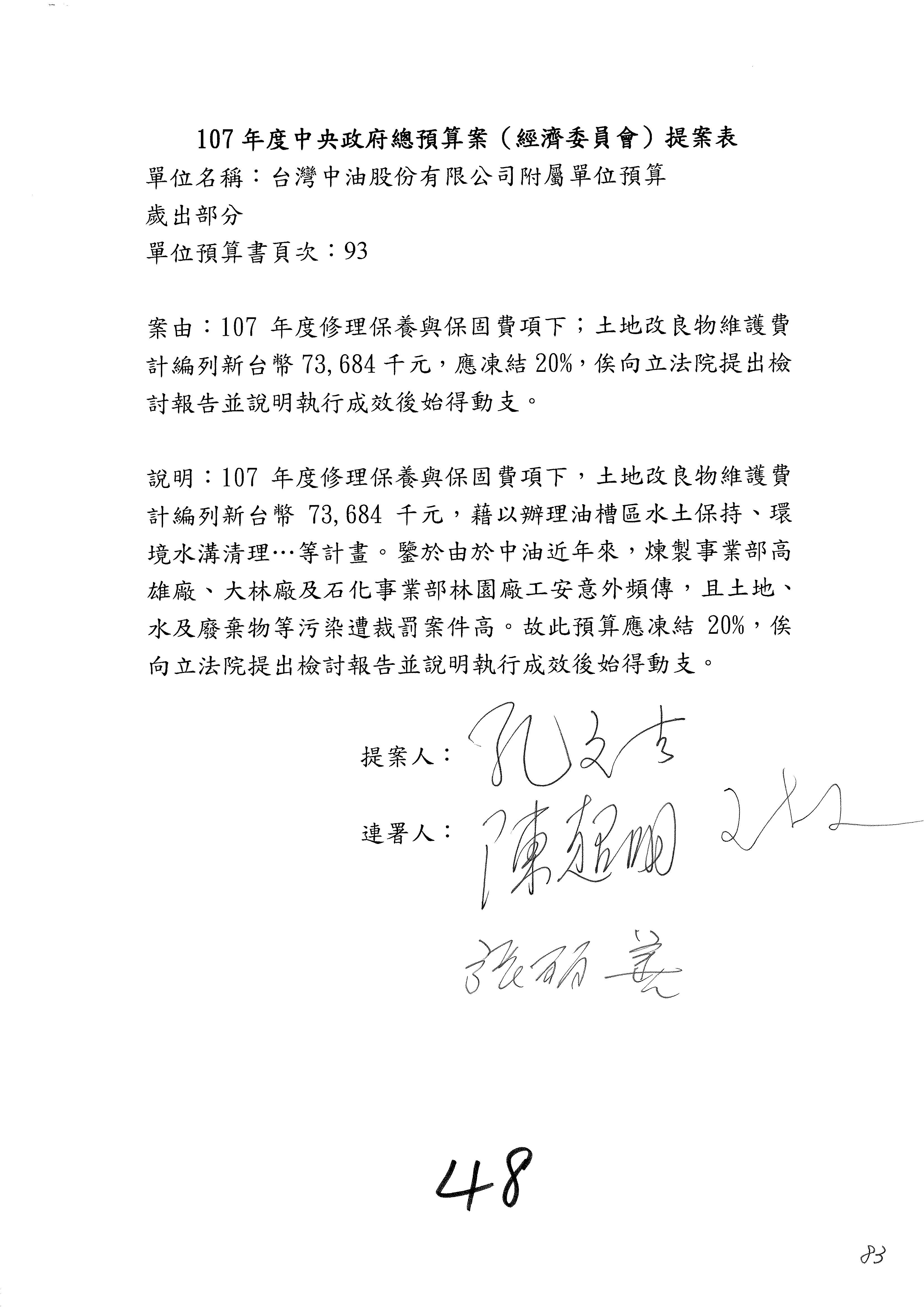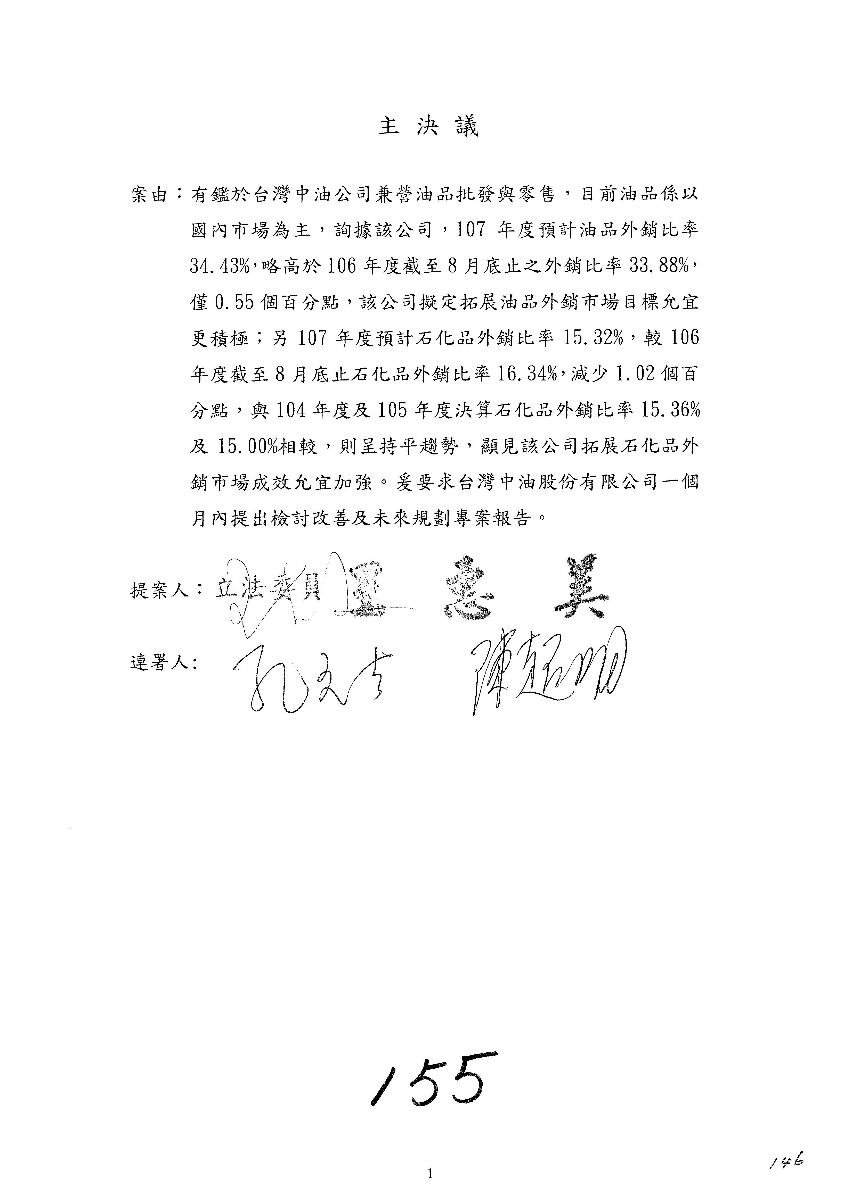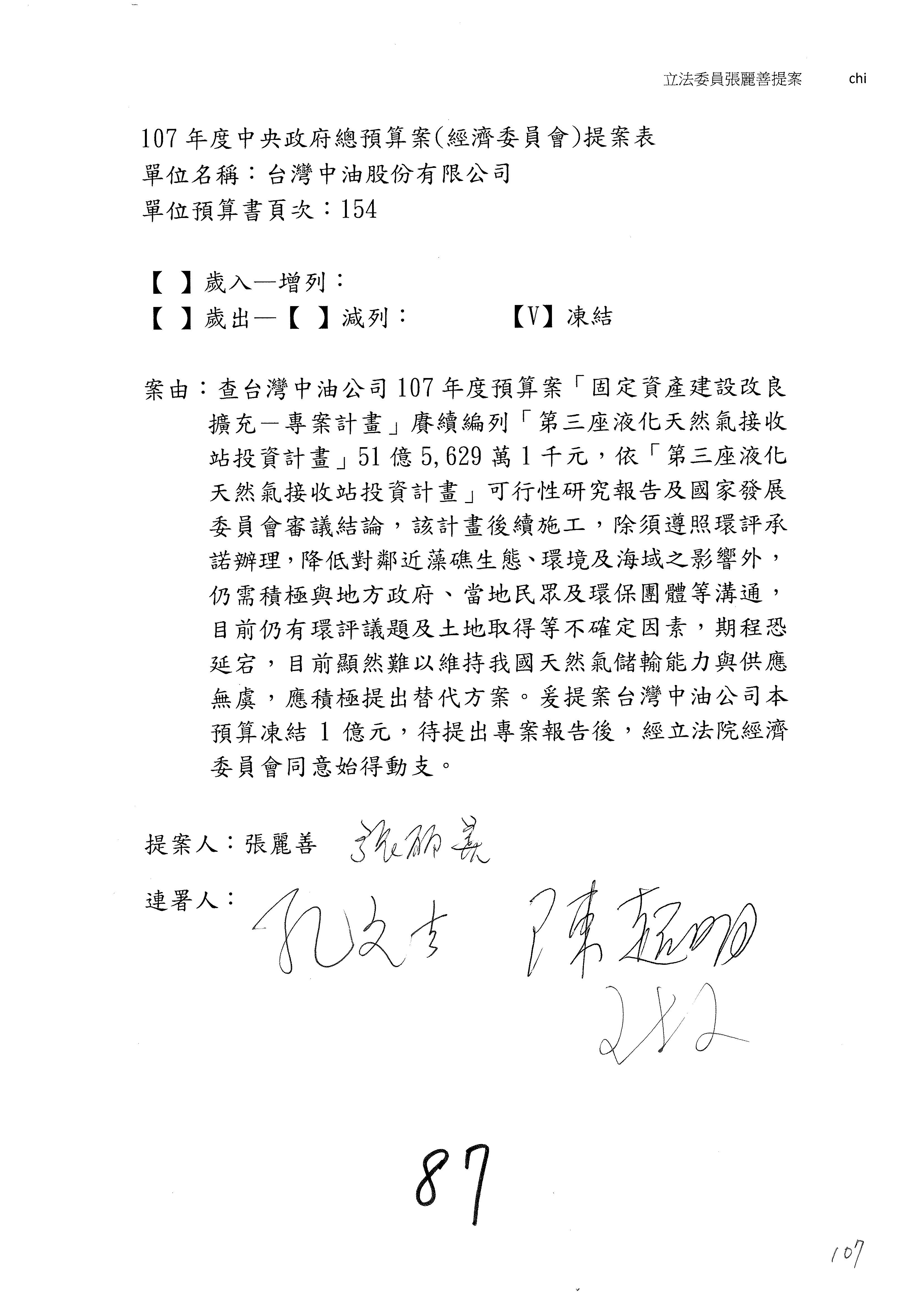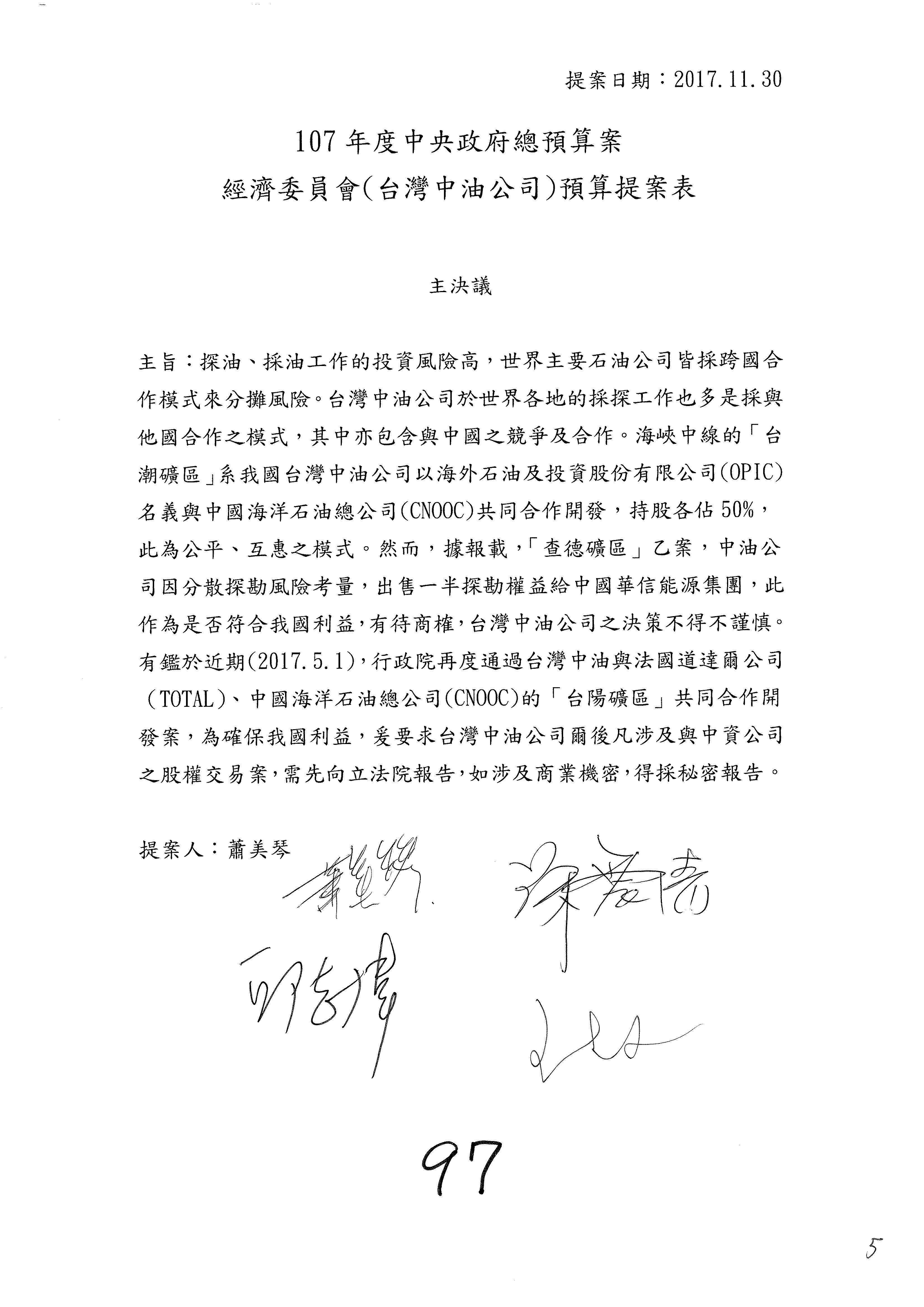 提案人:蘇震清 邱志偉 陳超明 徐永明 王惠美 陳明文 張麗善 蕭美琴