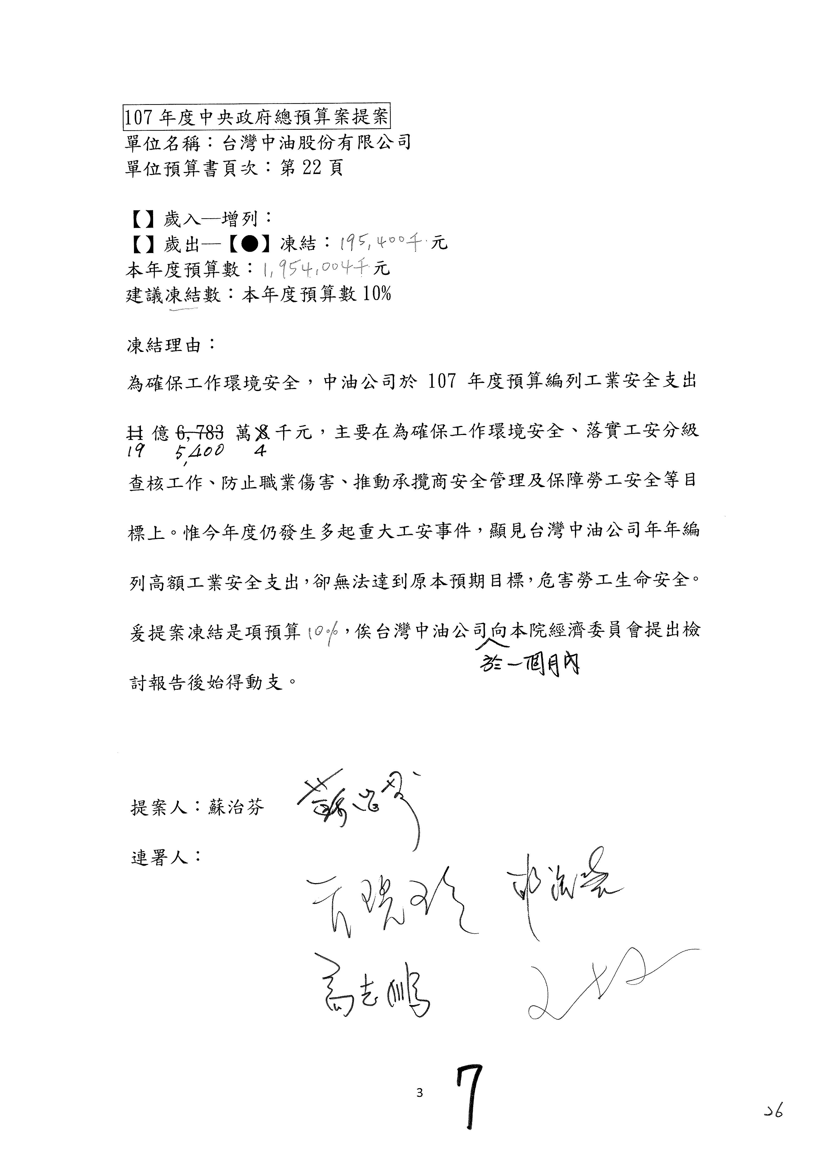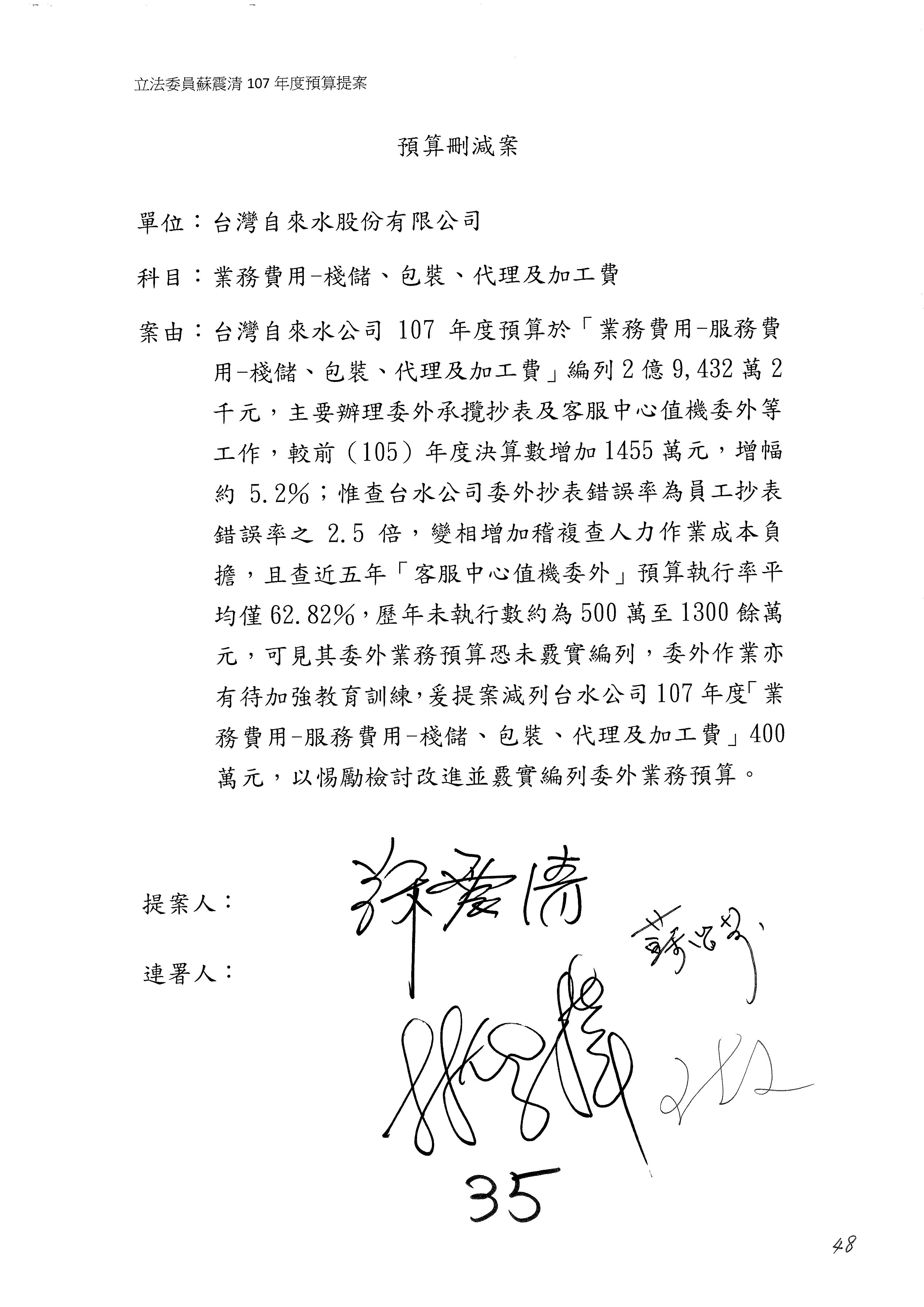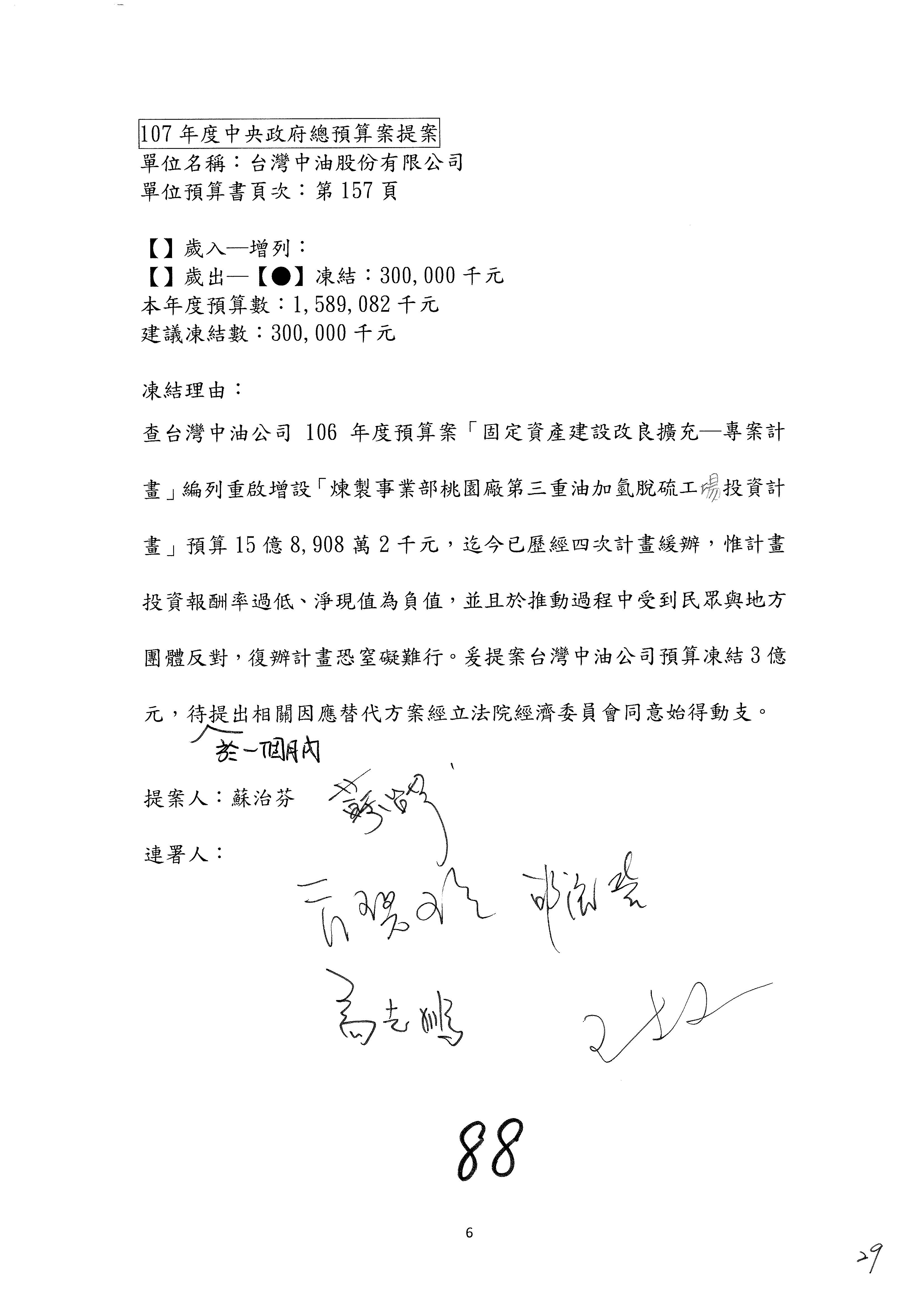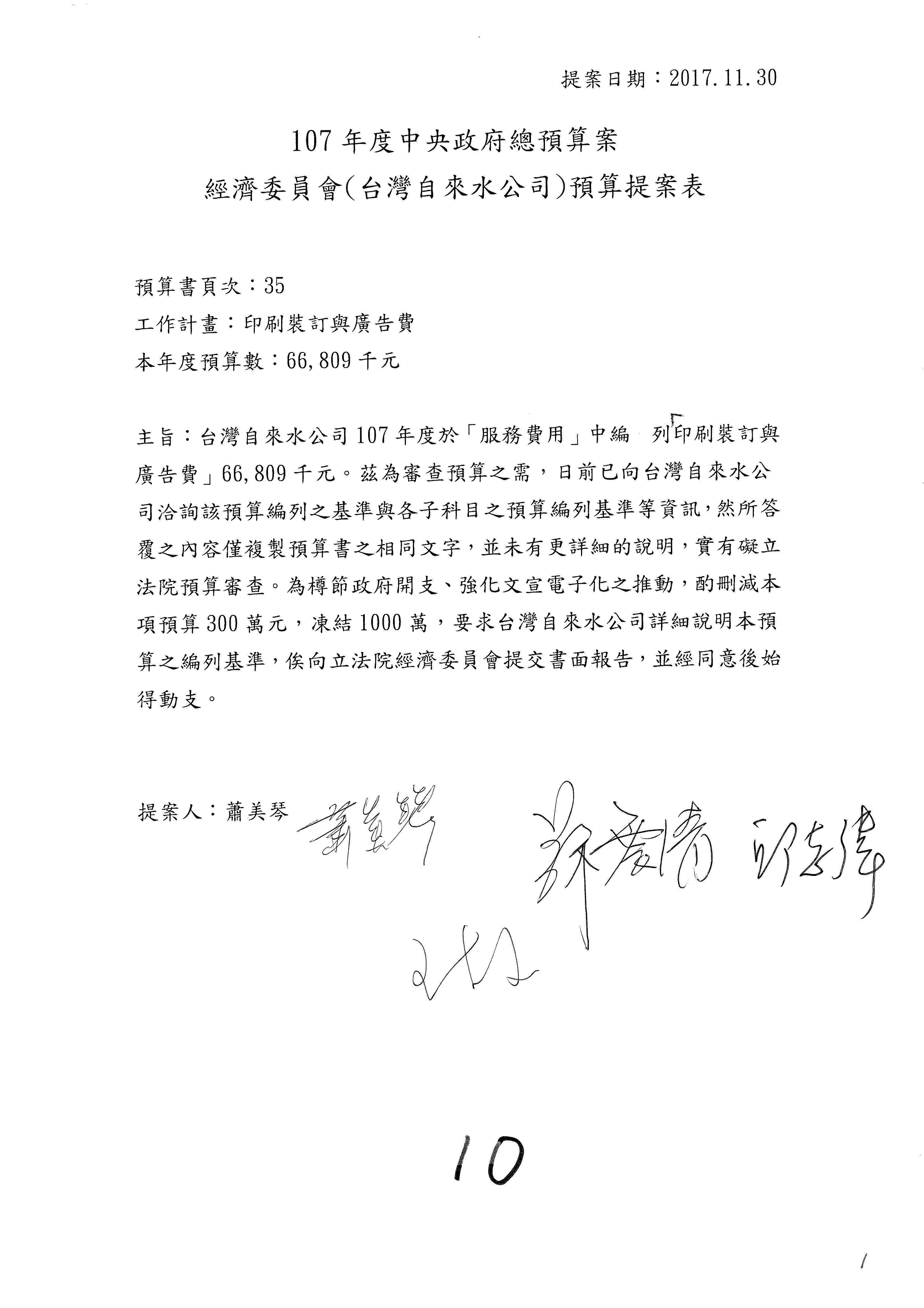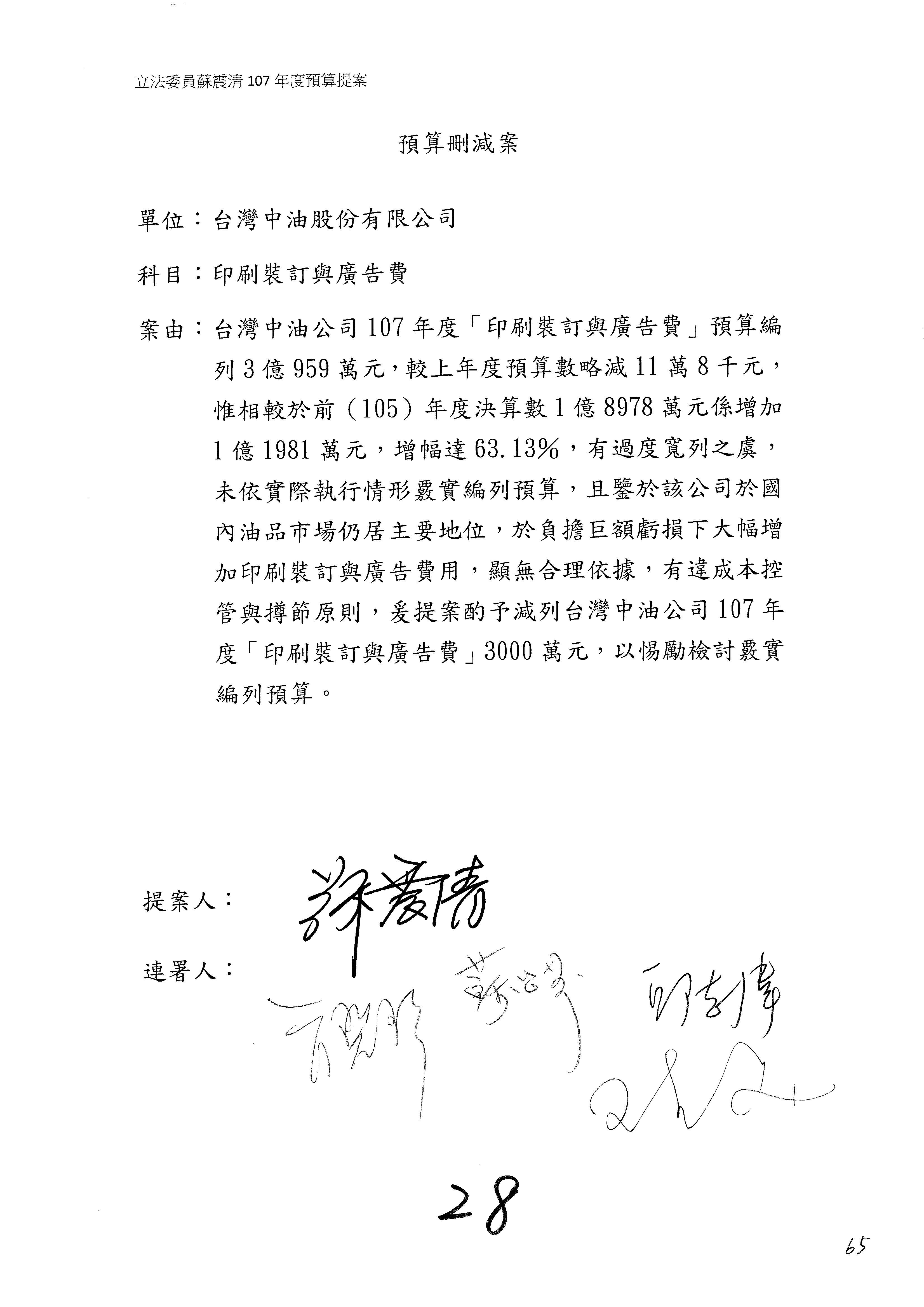 蕭委員美琴:現在都在講求環保,所以你們是否可以減少紙本的印刷?對此,本席提案減列300萬元,蘇委員則是建議減列100萬元。