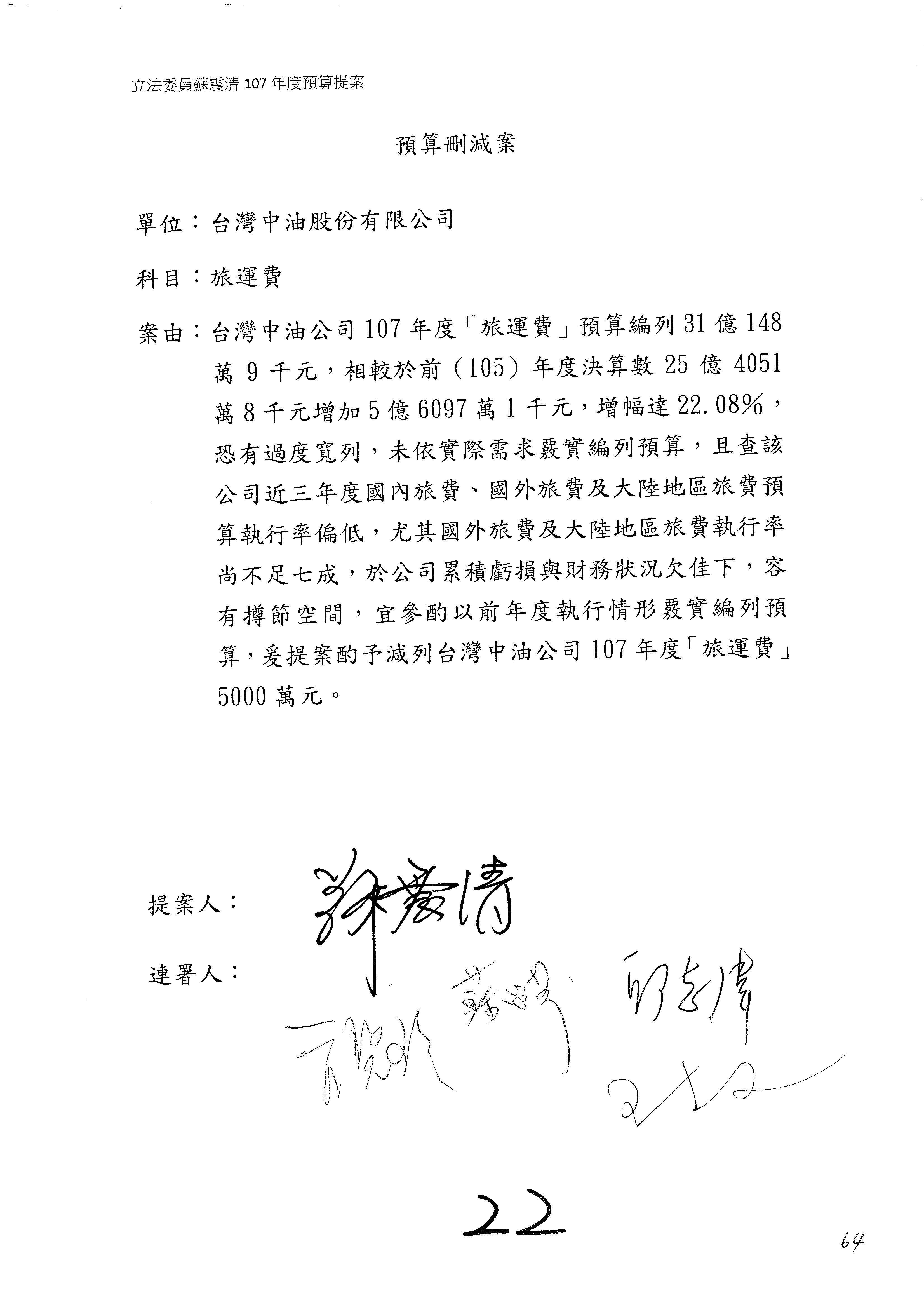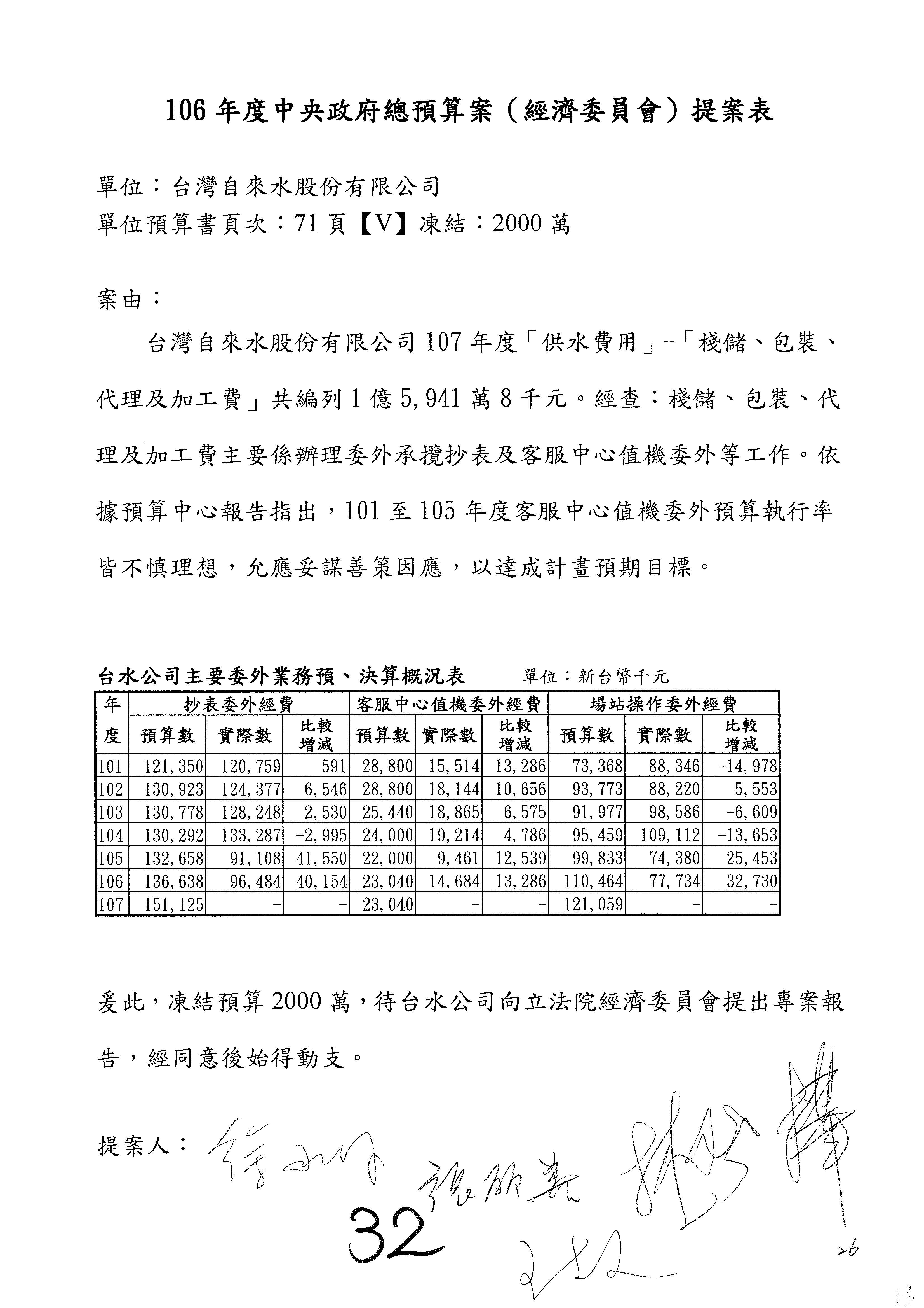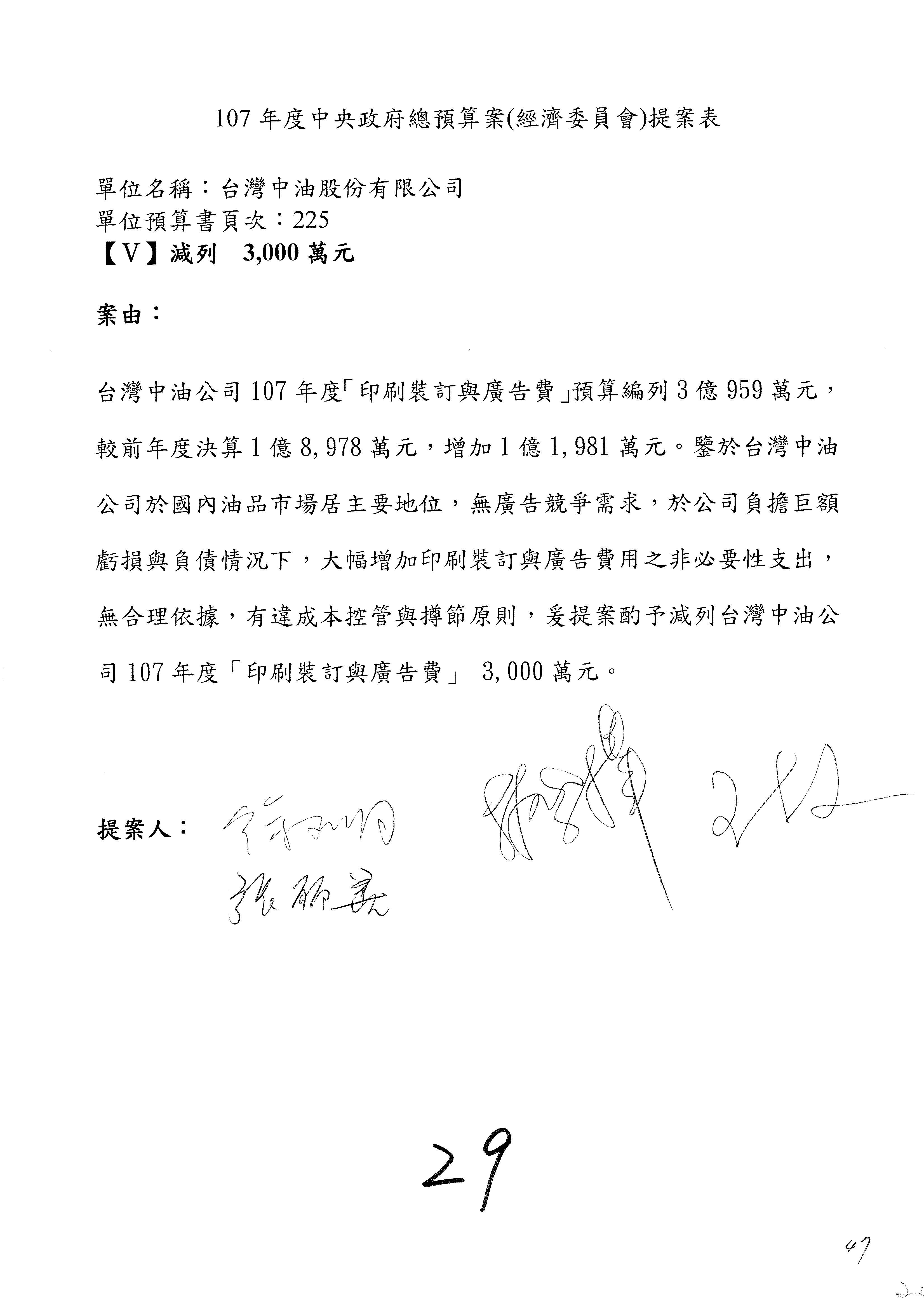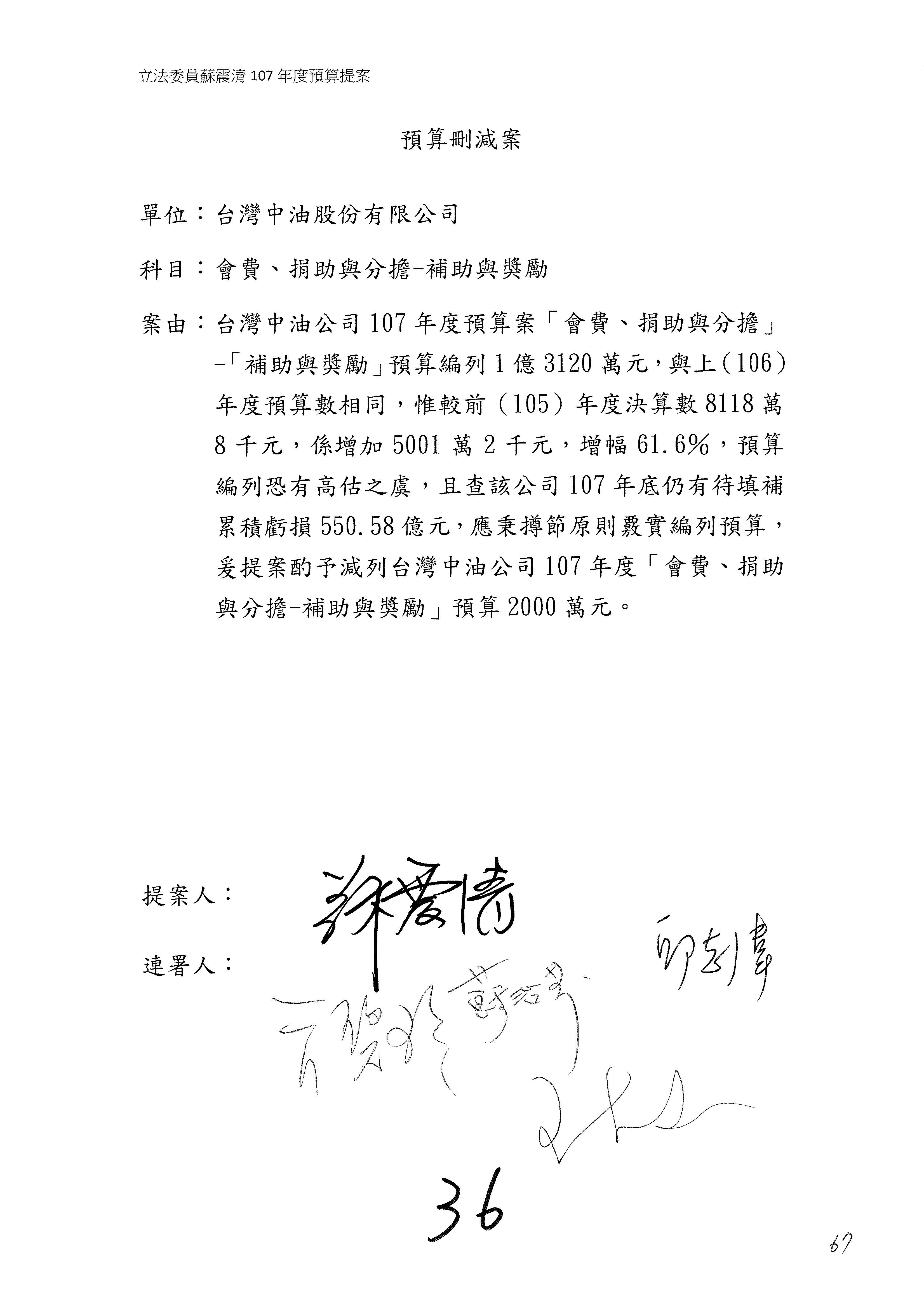 蕭委員美琴:現在都在講求環保,所以你們是否可以減少紙本的印刷?對此,本席提案減列300萬元,蘇委員則是建議減列100萬元。