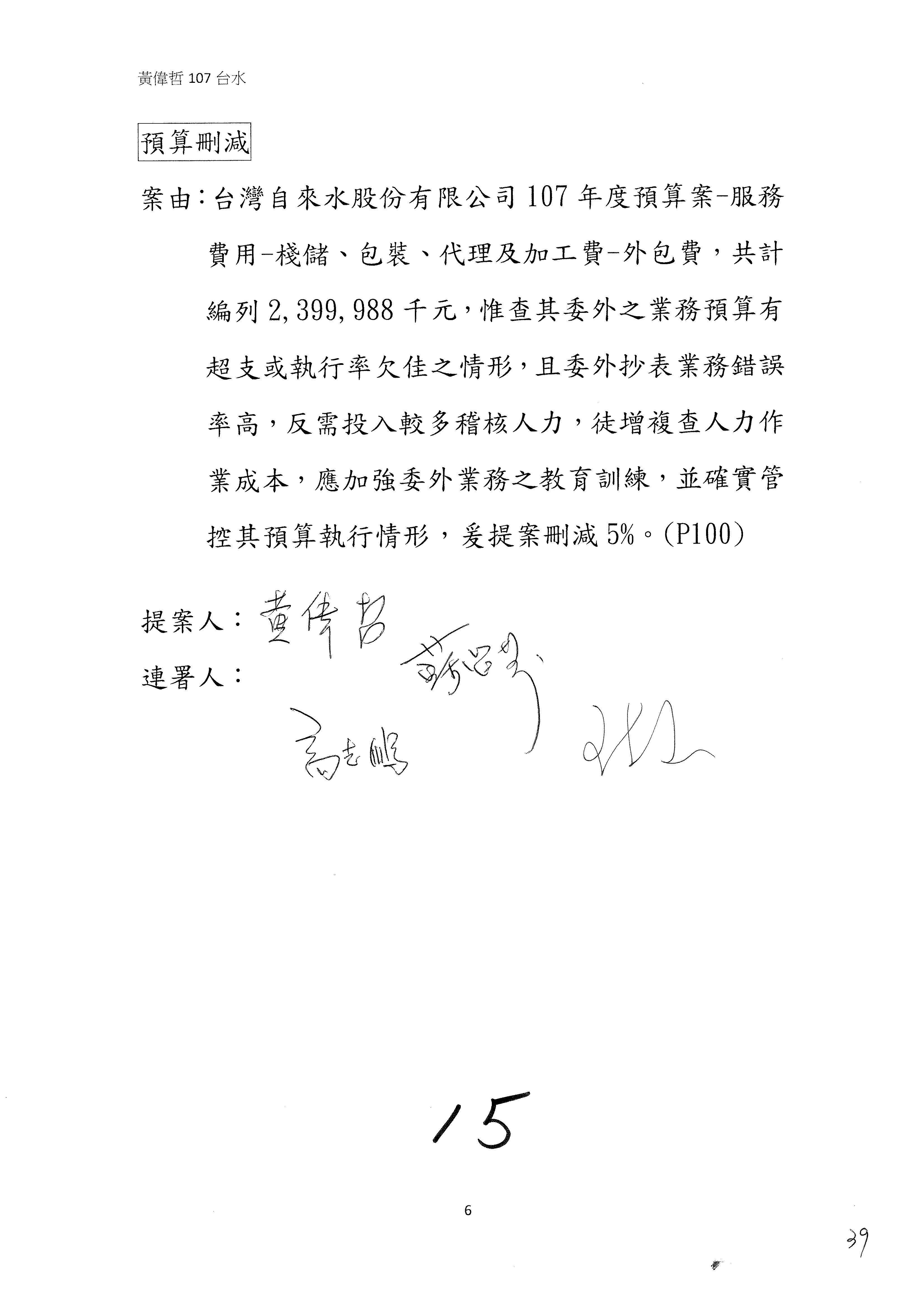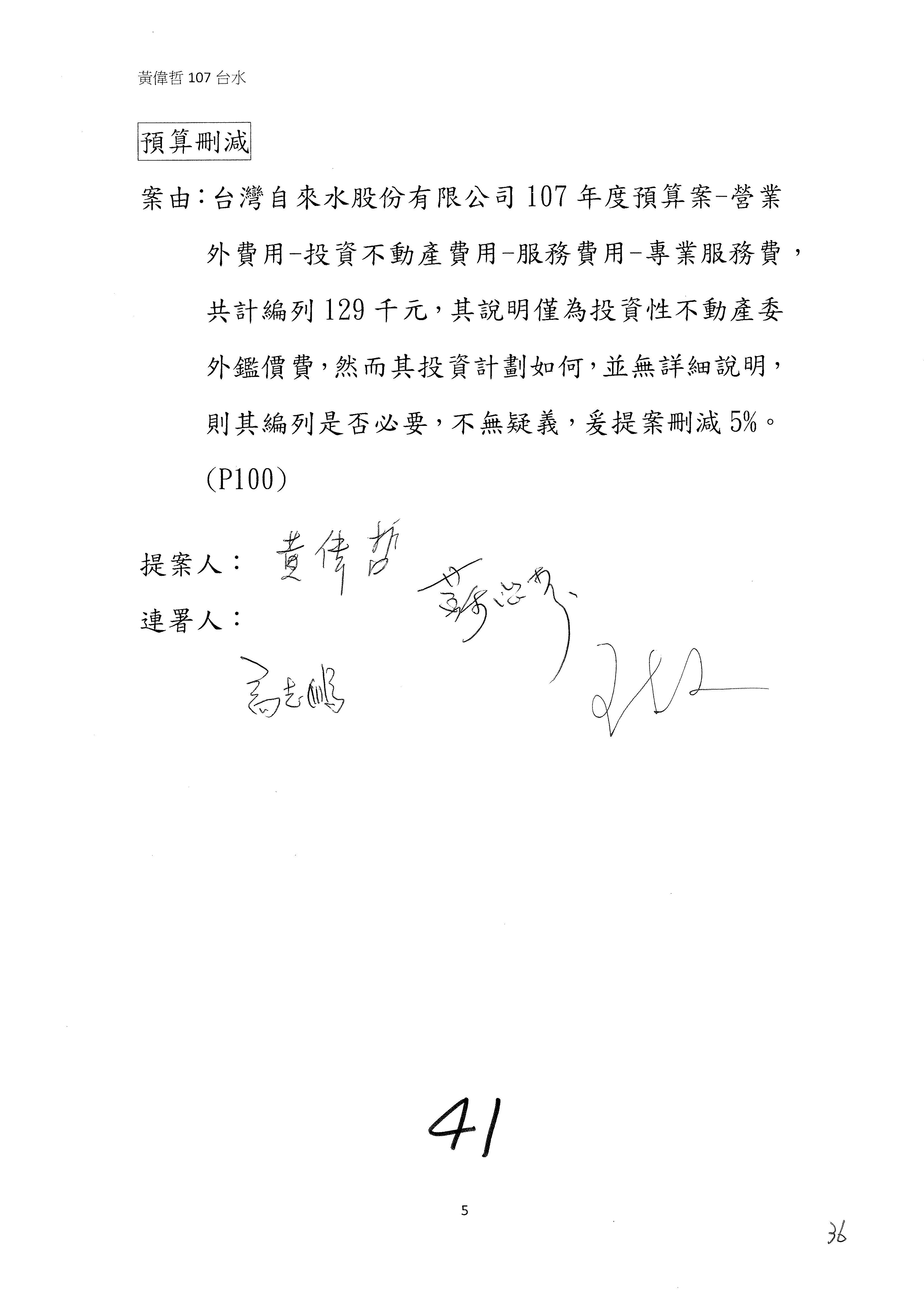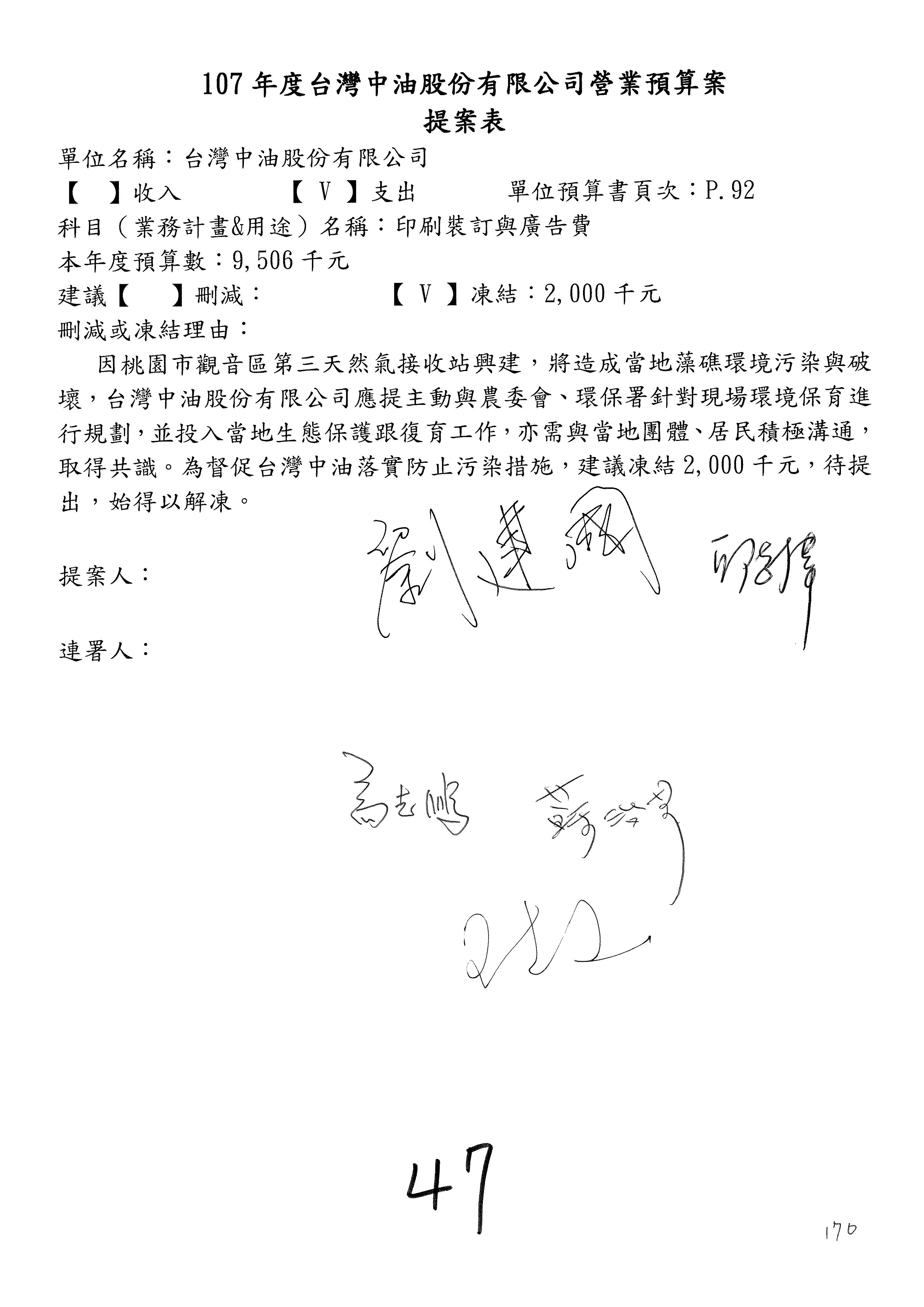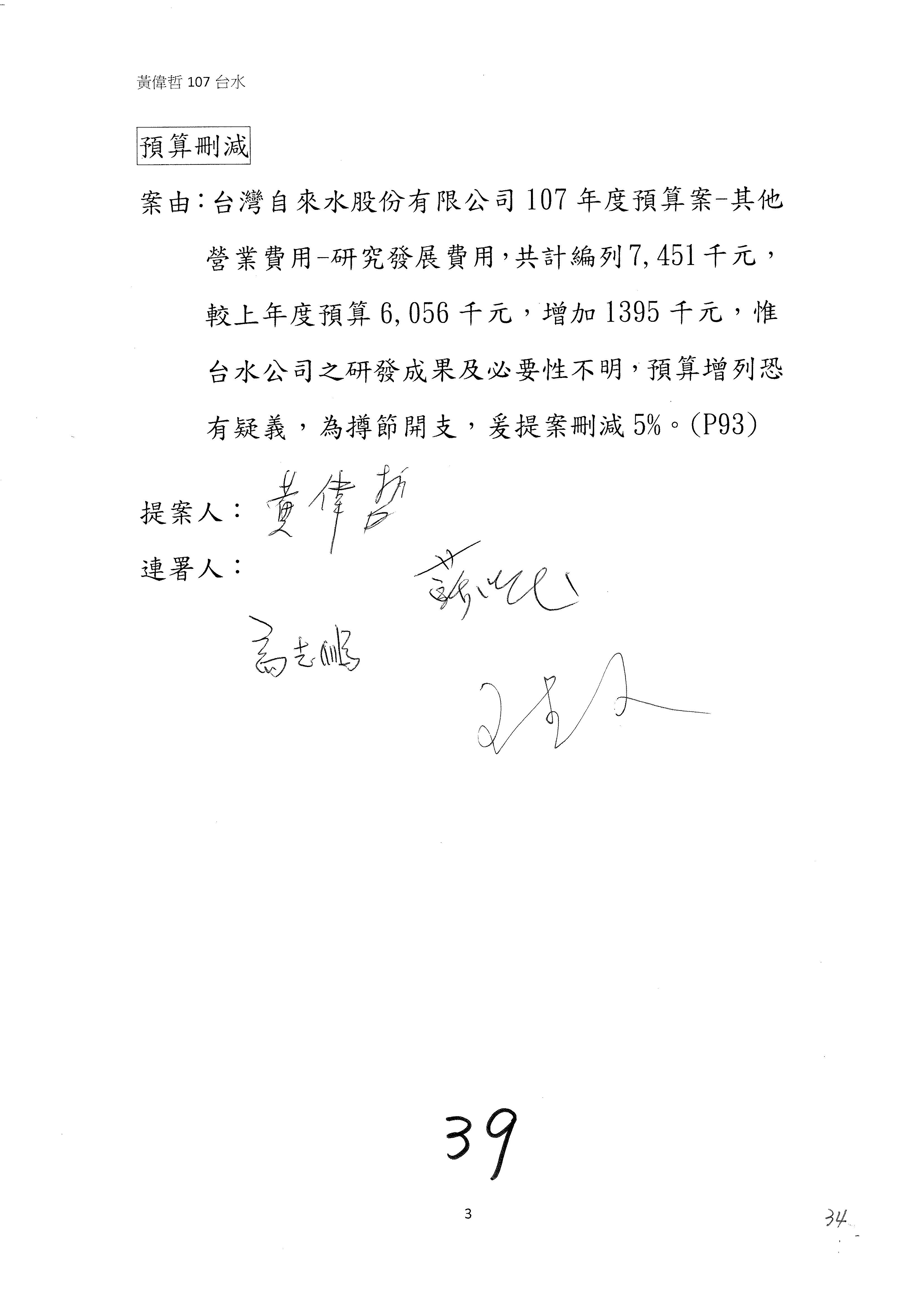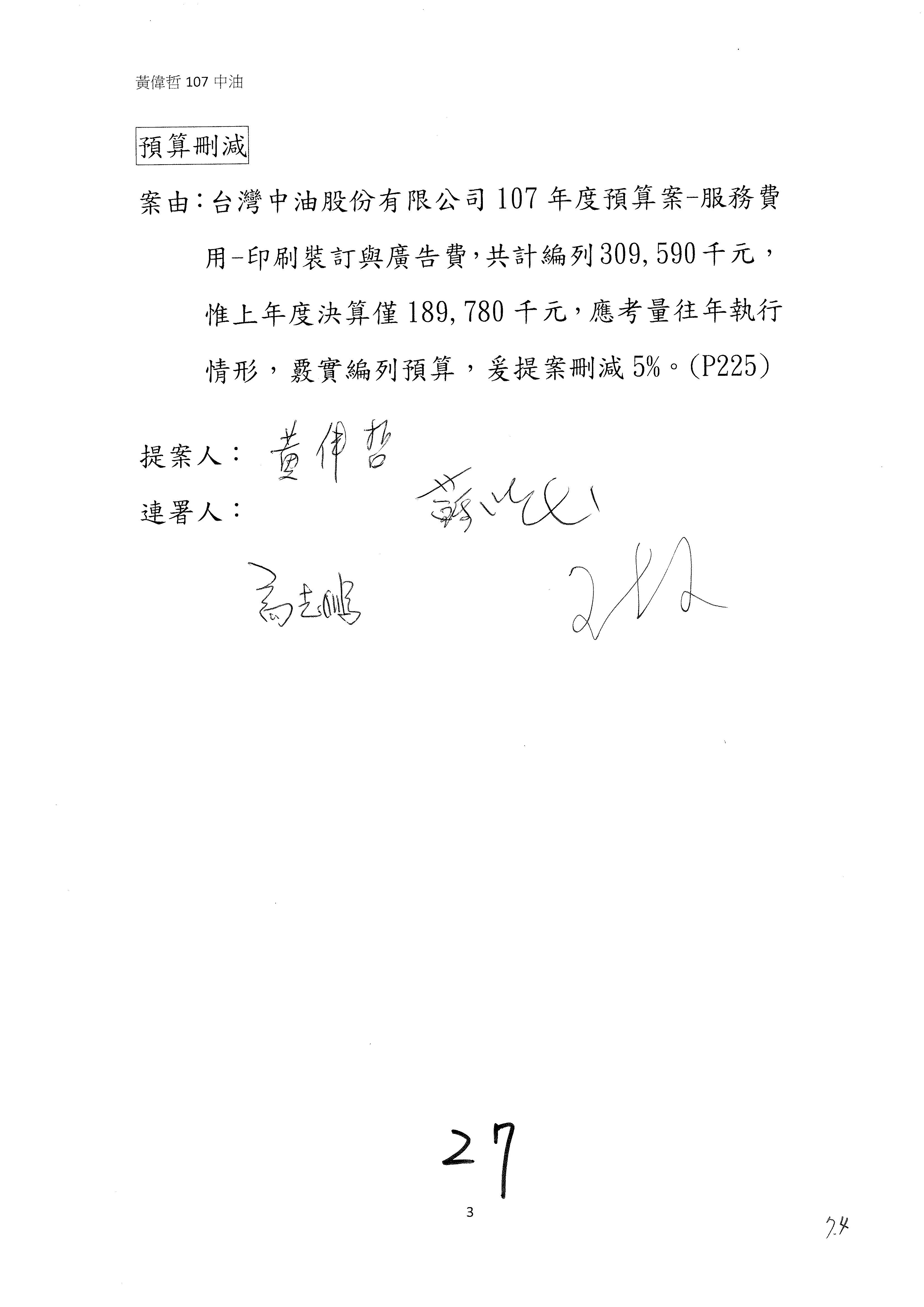 蕭委員美琴:現在都在講求環保,所以你們是否可以減少紙本的印刷?對此,本席提案減列300萬元,蘇委員則是建議減列100萬元。