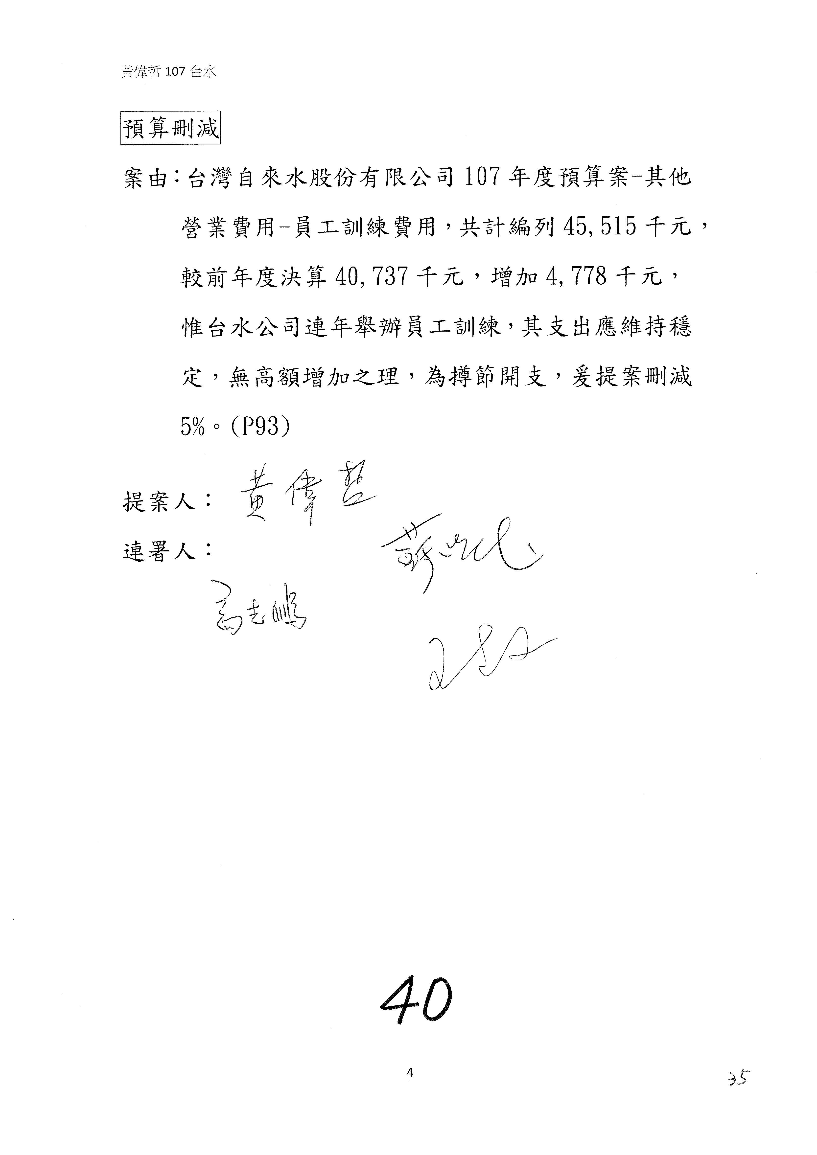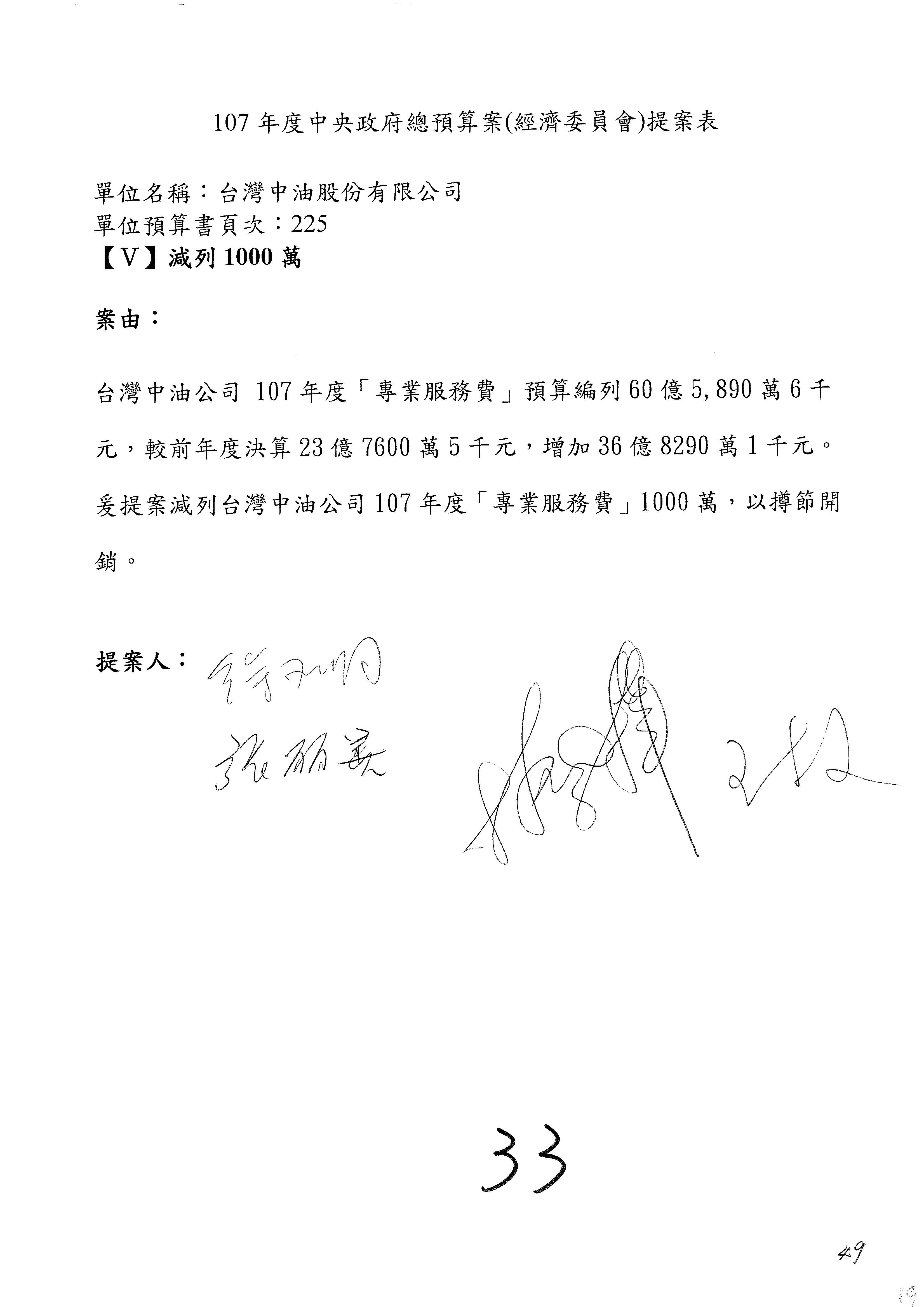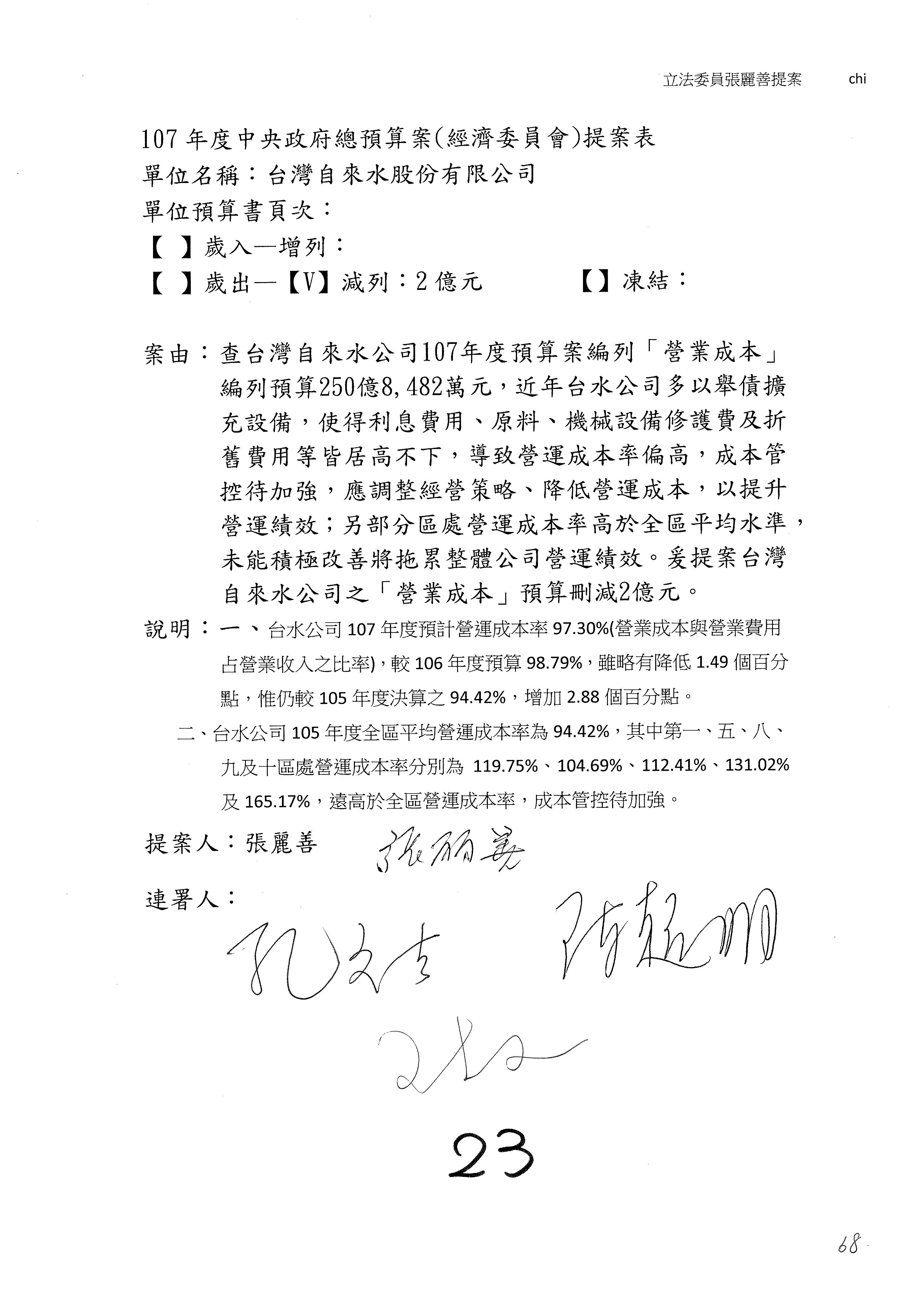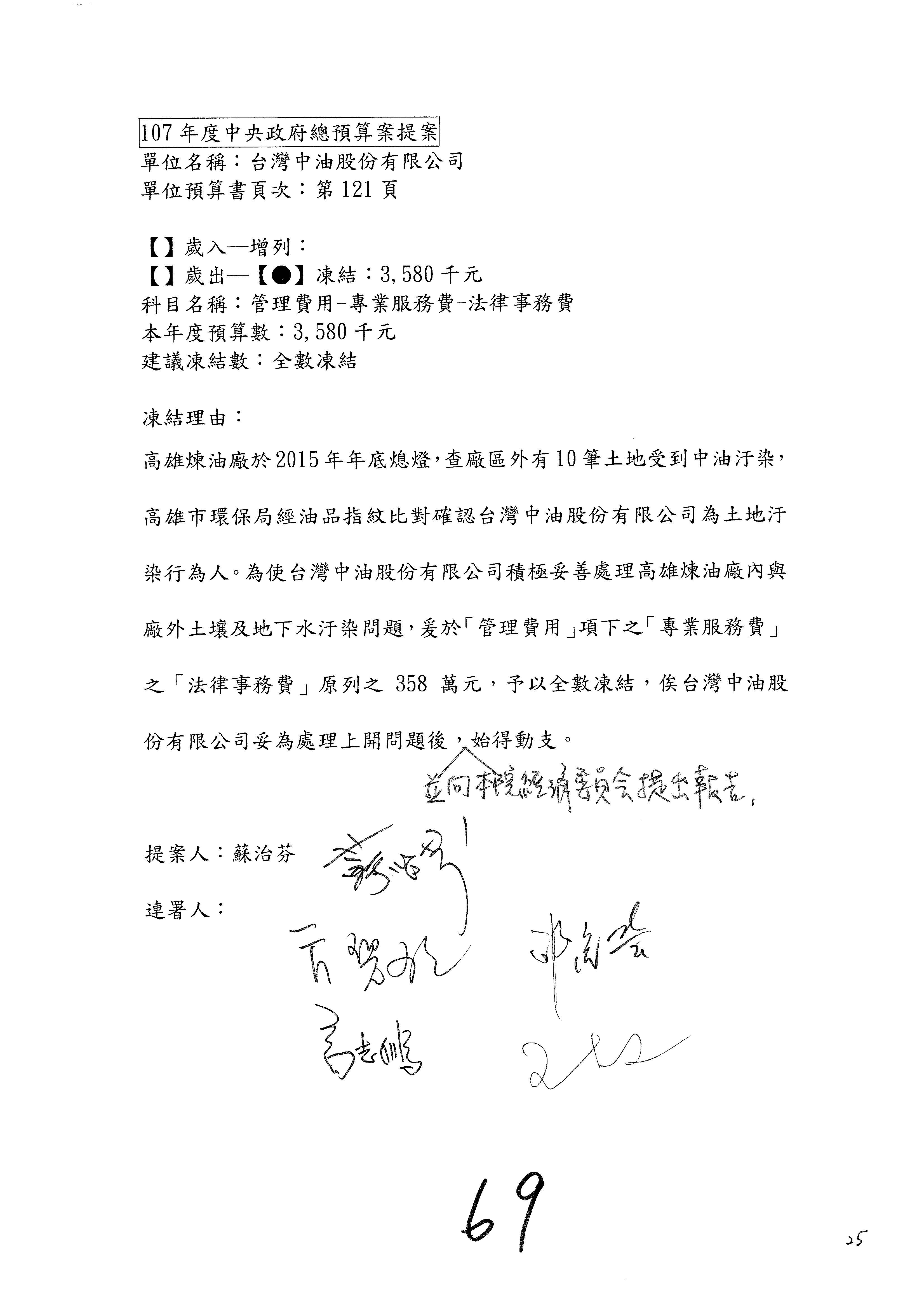 蕭委員美琴:現在都在講求環保,所以你們是否可以減少紙本的印刷?對此,本席提案減列300萬元,蘇委員則是建議減列100萬元。