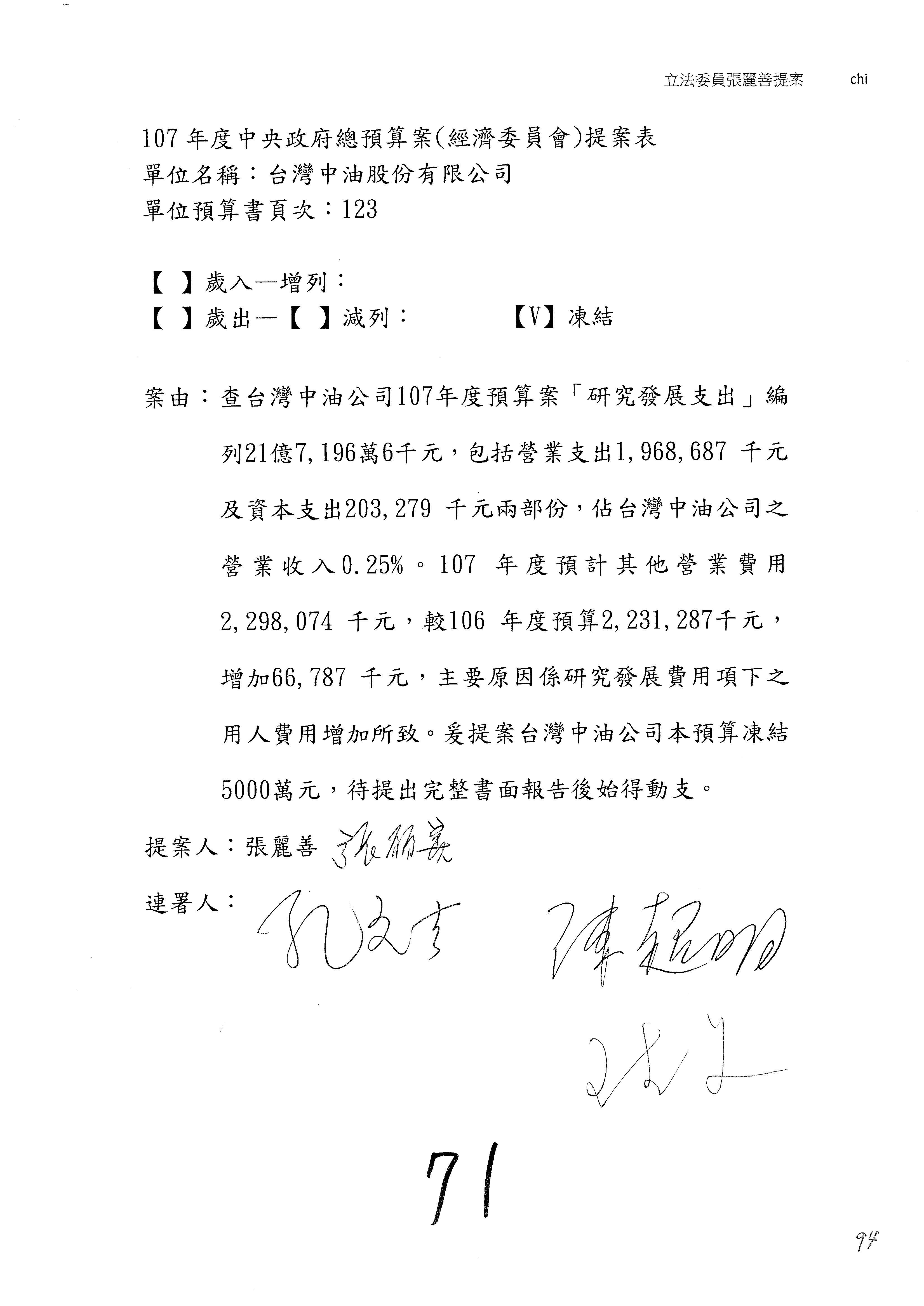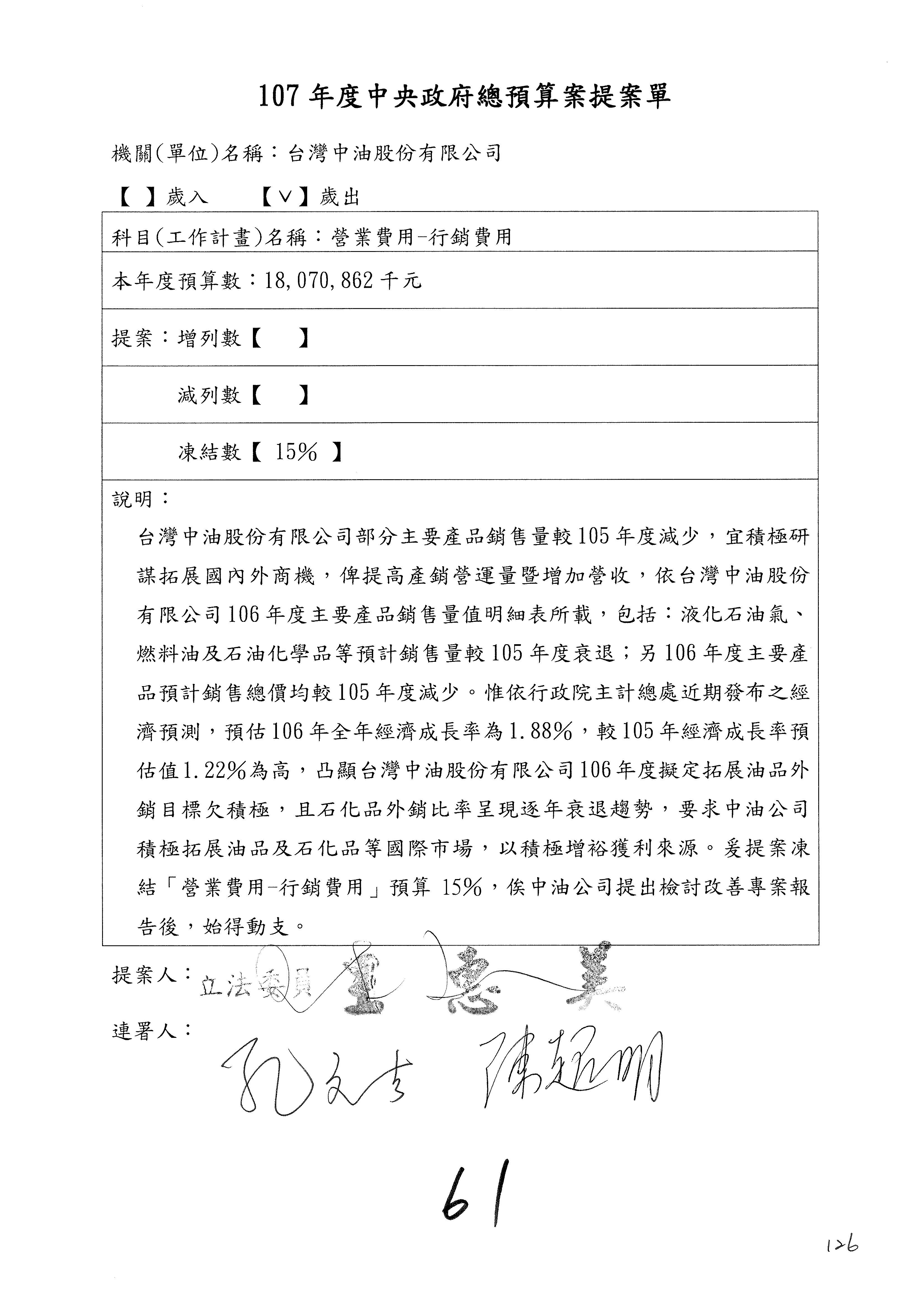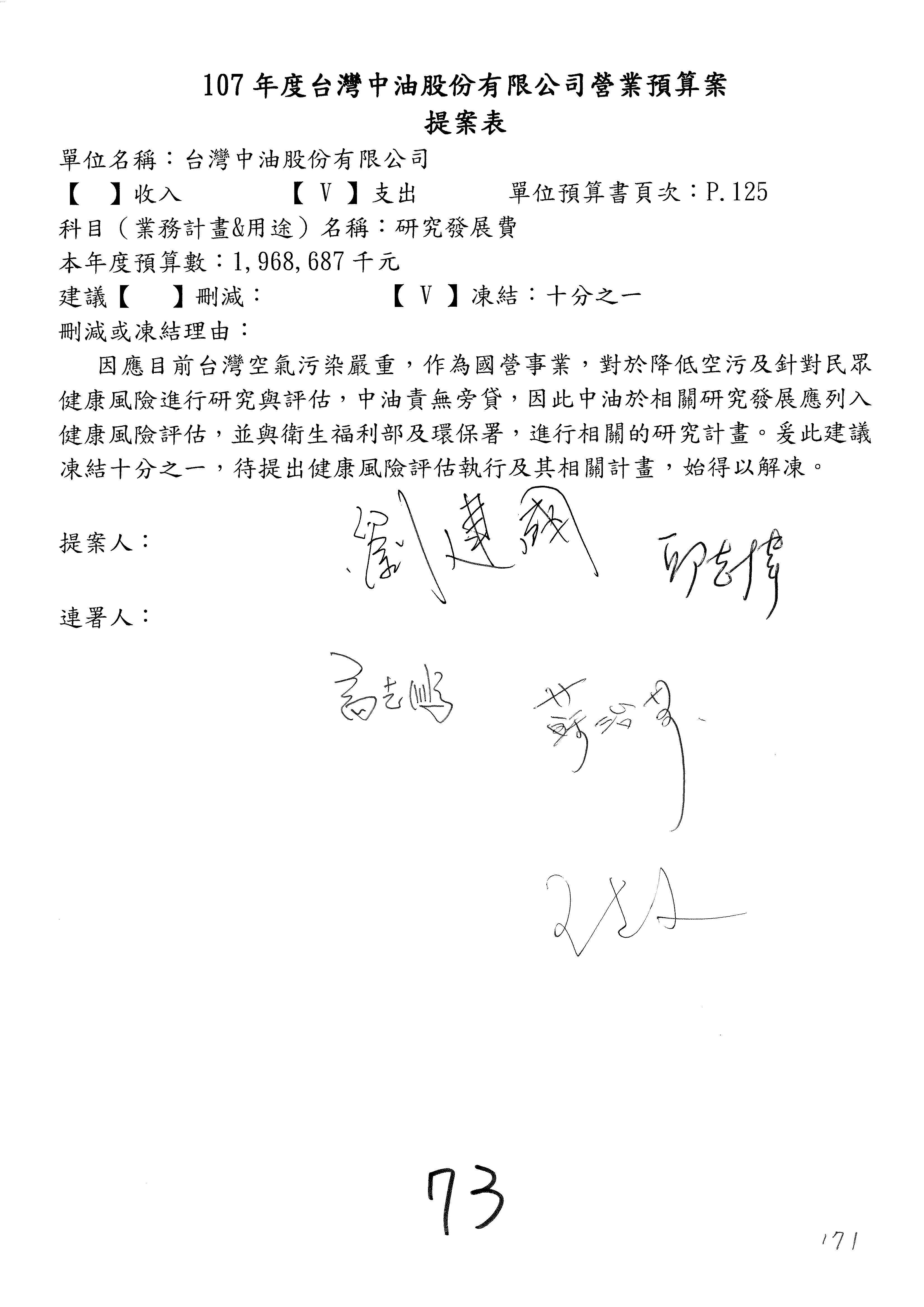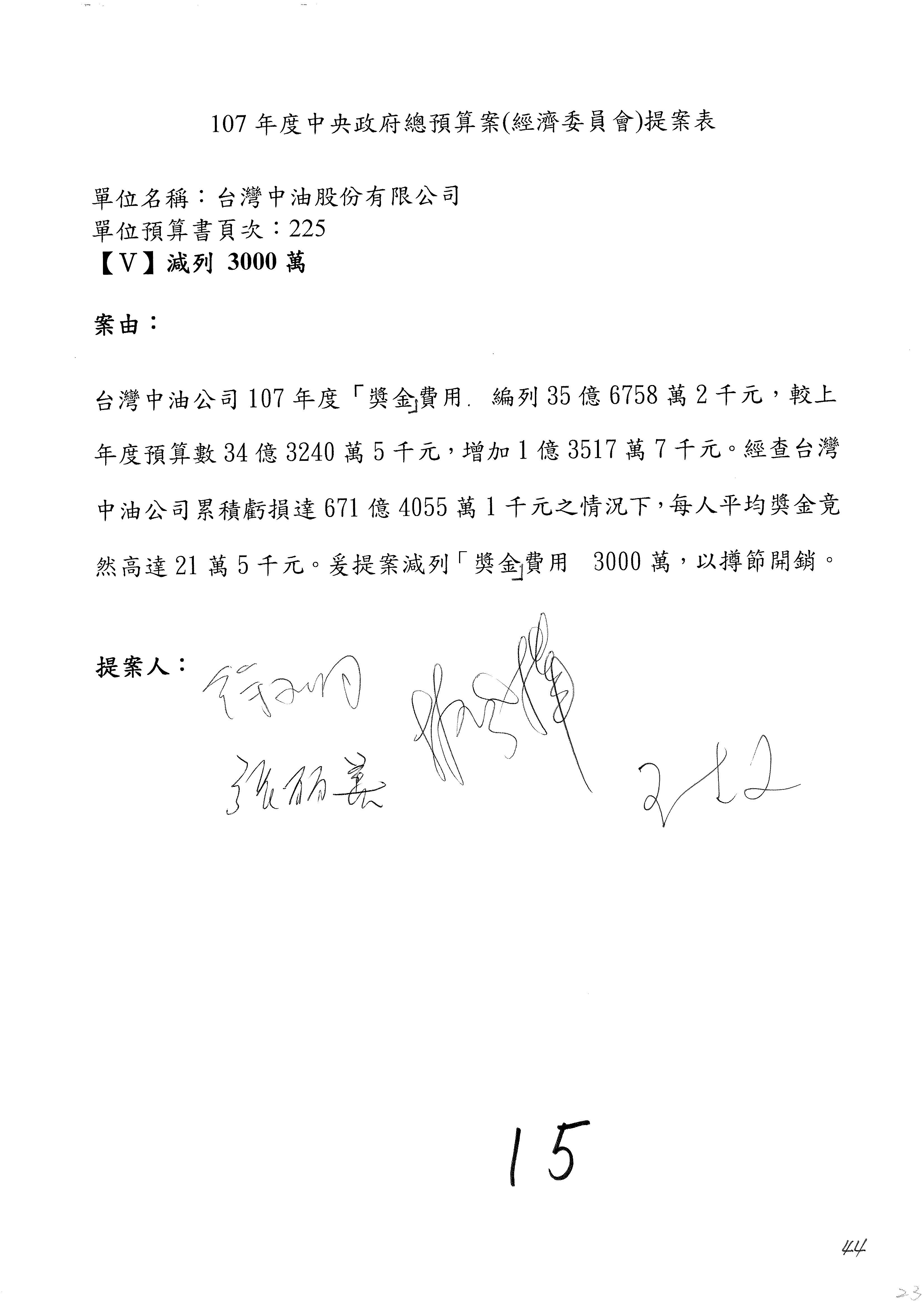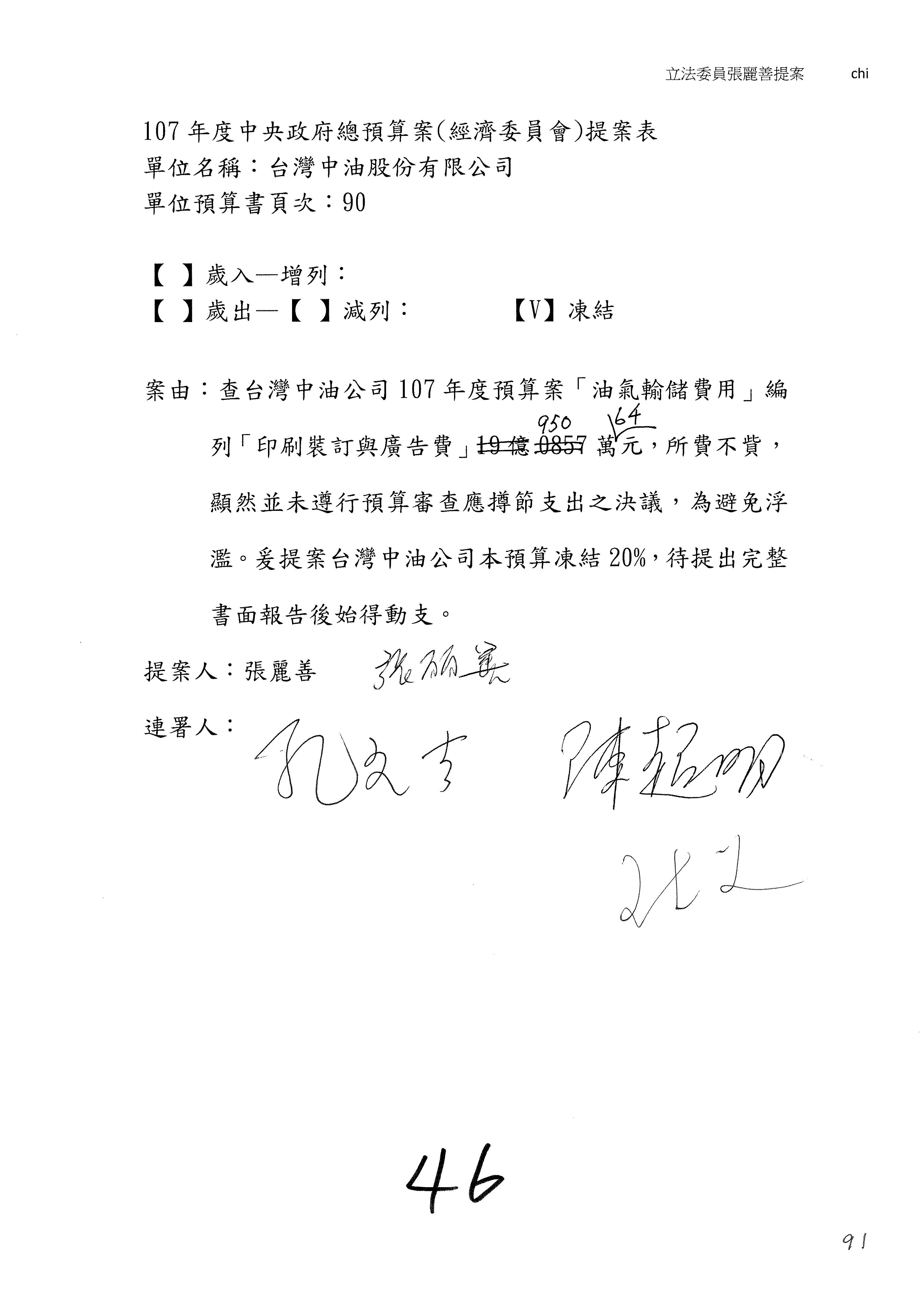 蕭委員美琴:現在都在講求環保,所以你們是否可以減少紙本的印刷?對此,本席提案減列300萬元,蘇委員則是建議減列100萬元。