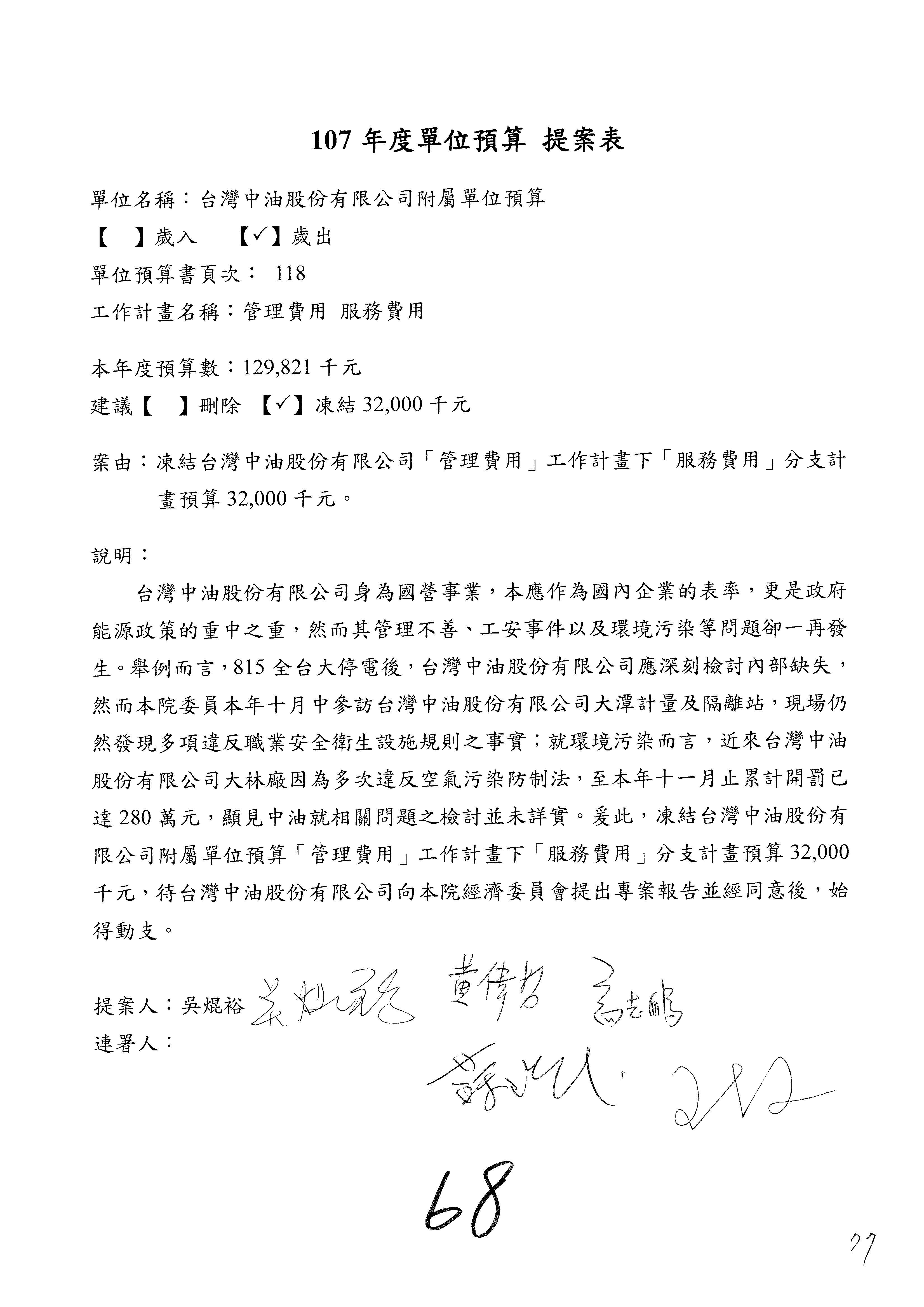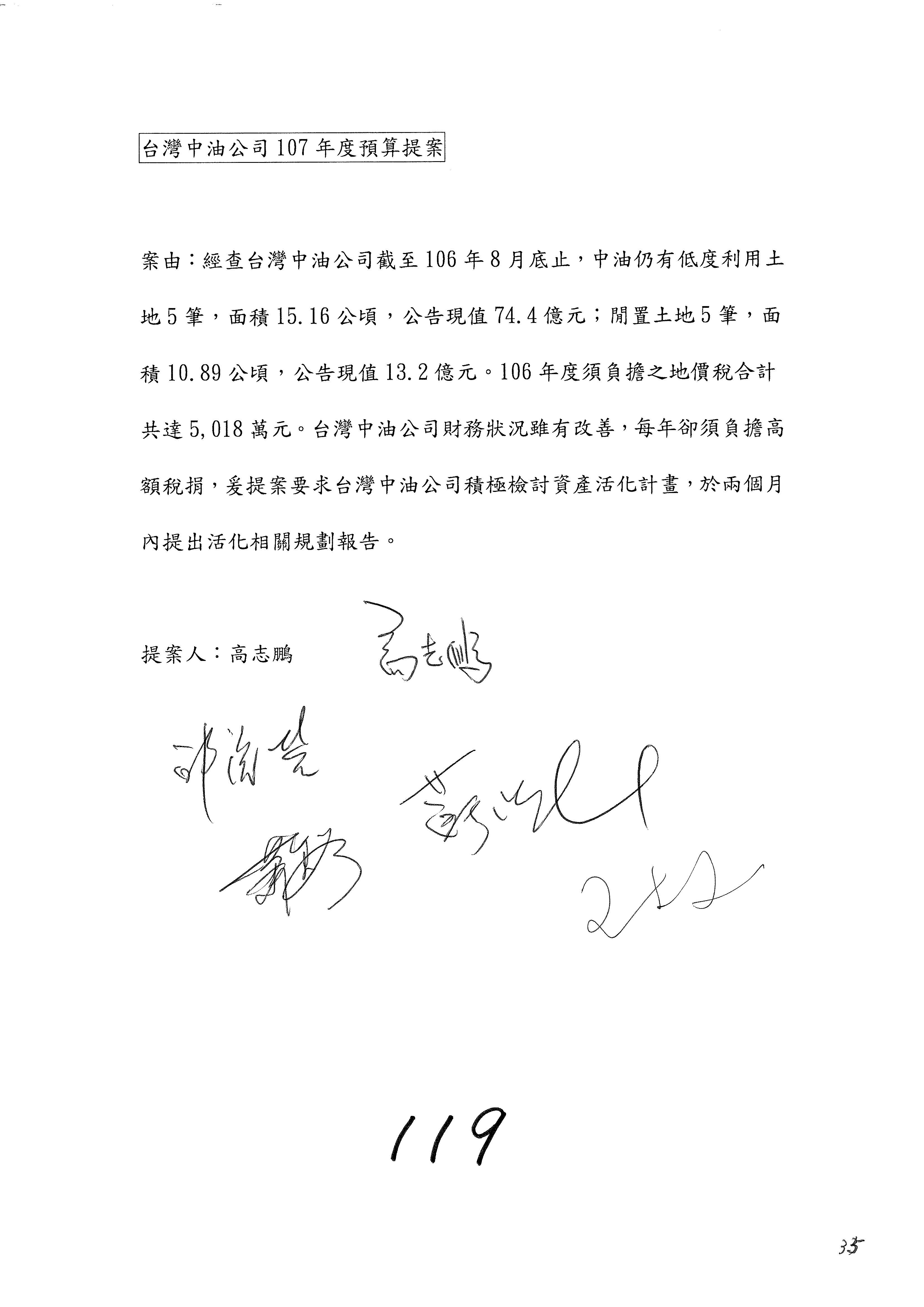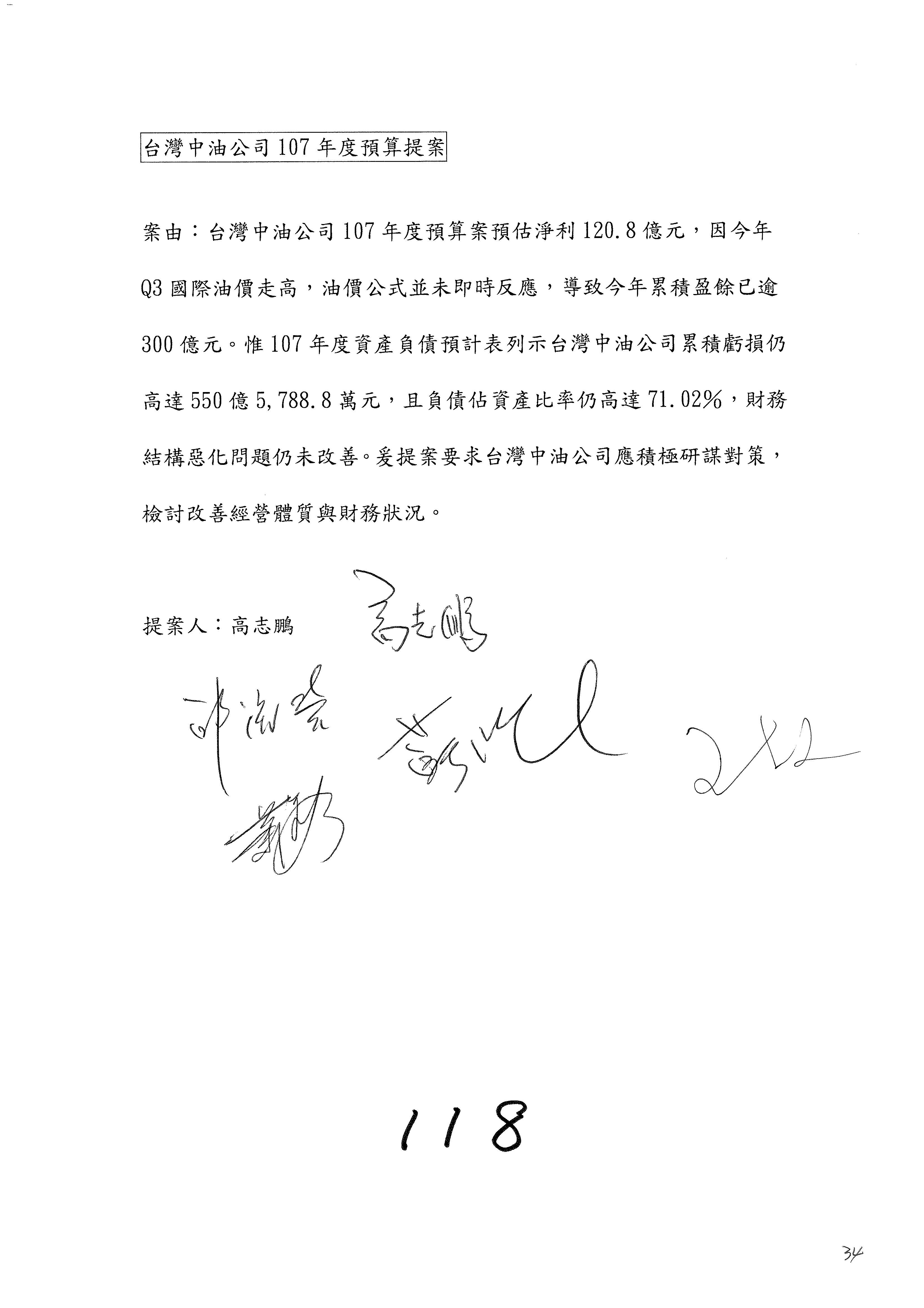 提案人:林岱樺 邱志偉 高志鵬 王惠美
