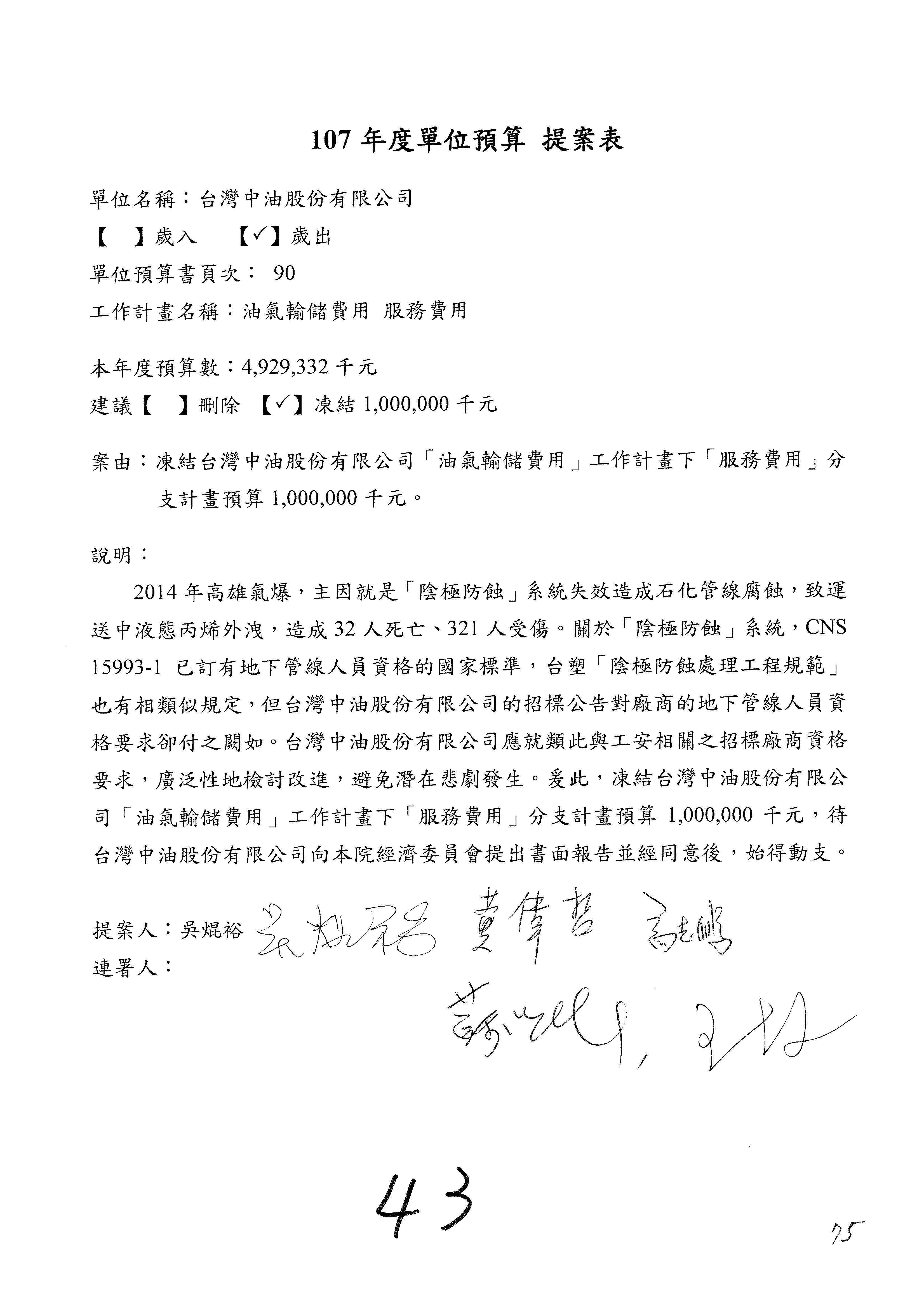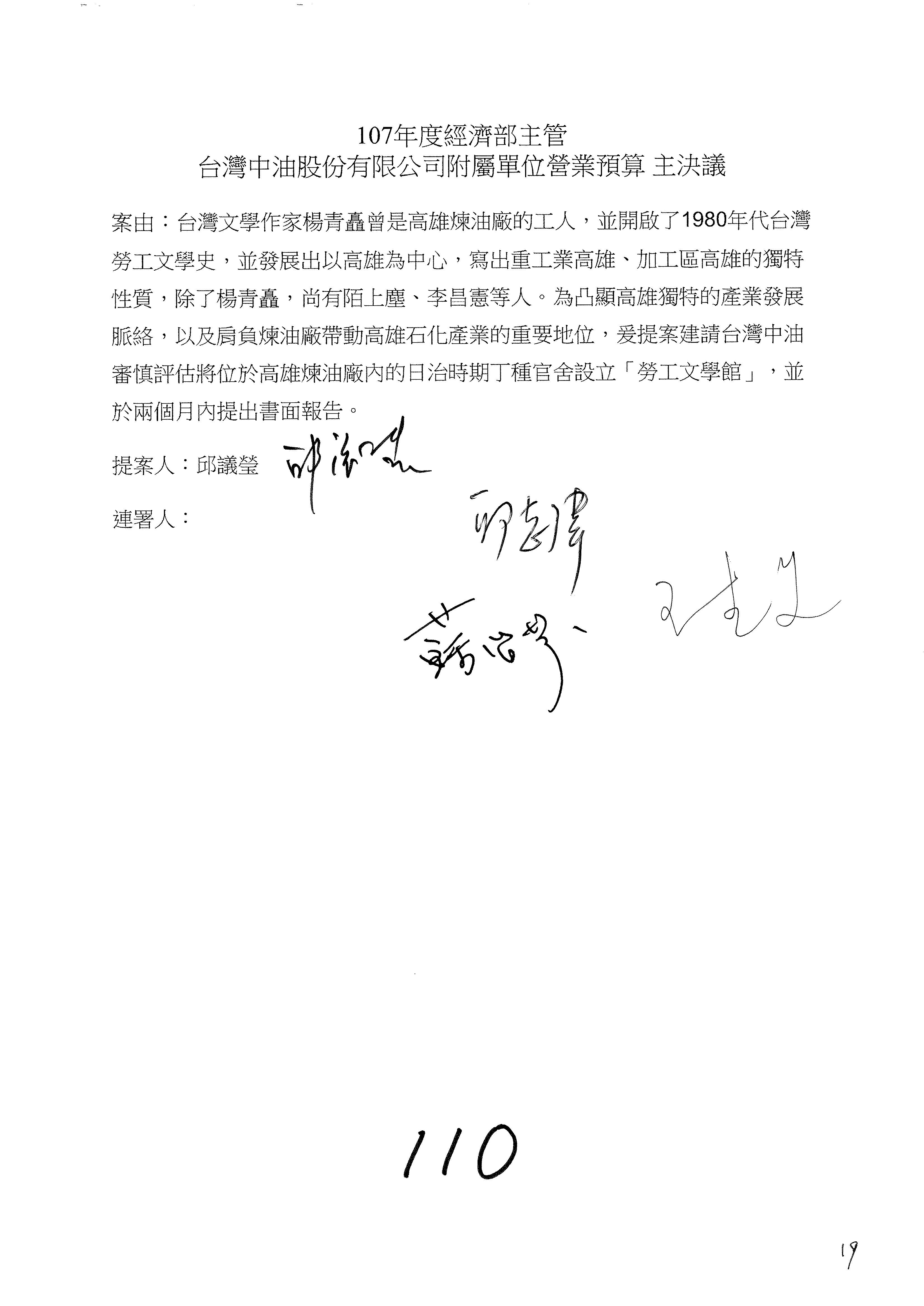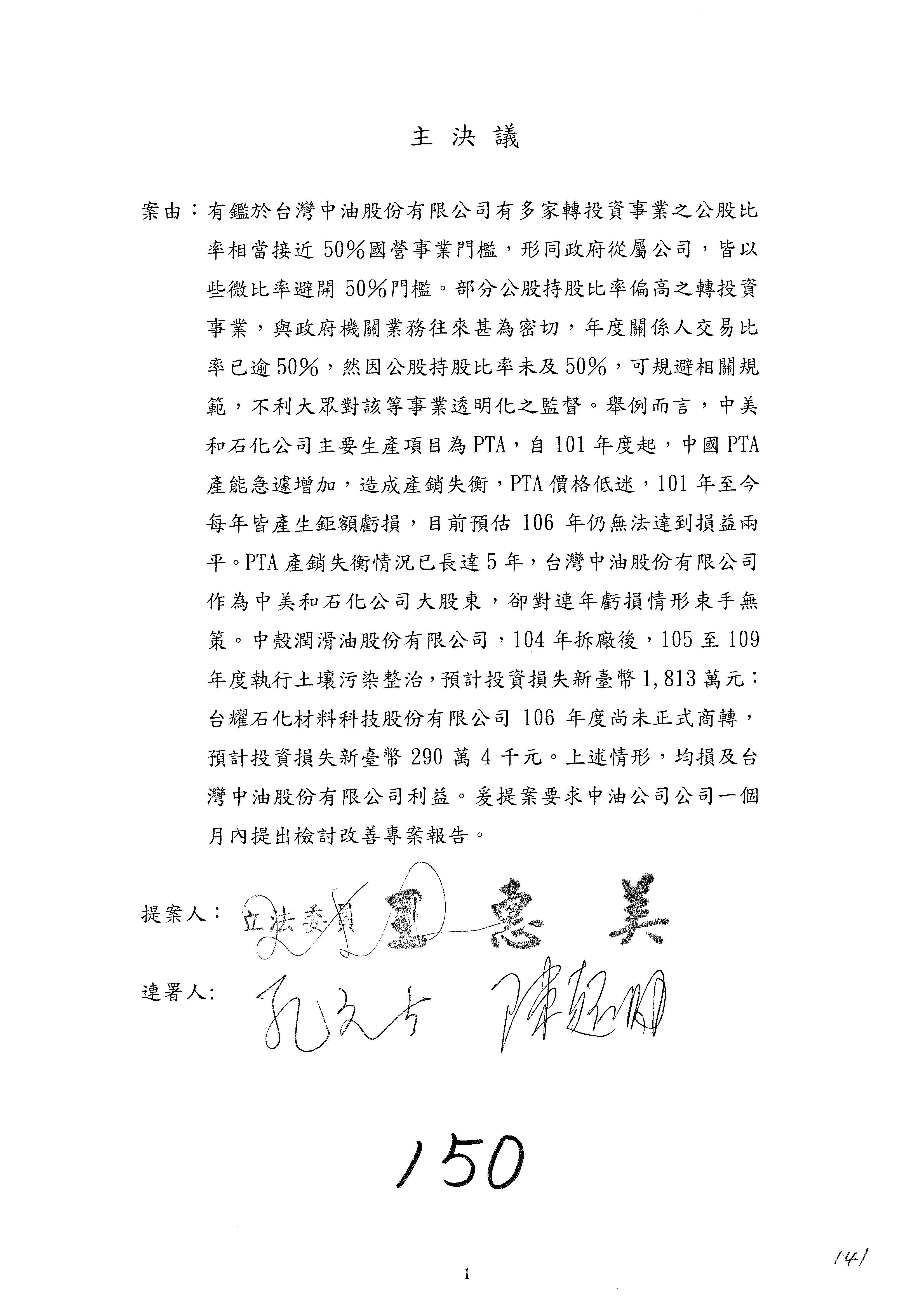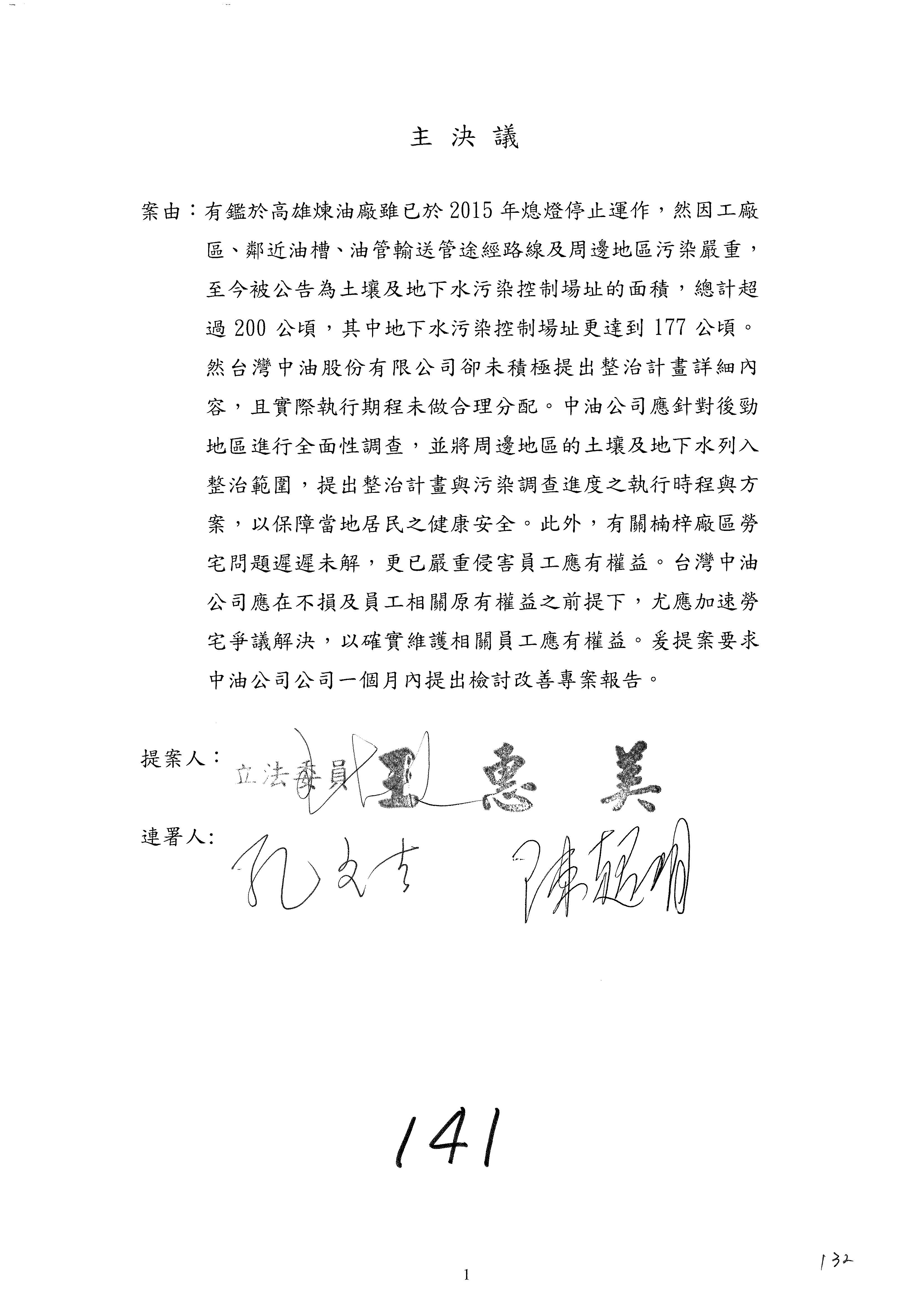 提案人:林岱樺 邱志偉 高志鵬 王惠美