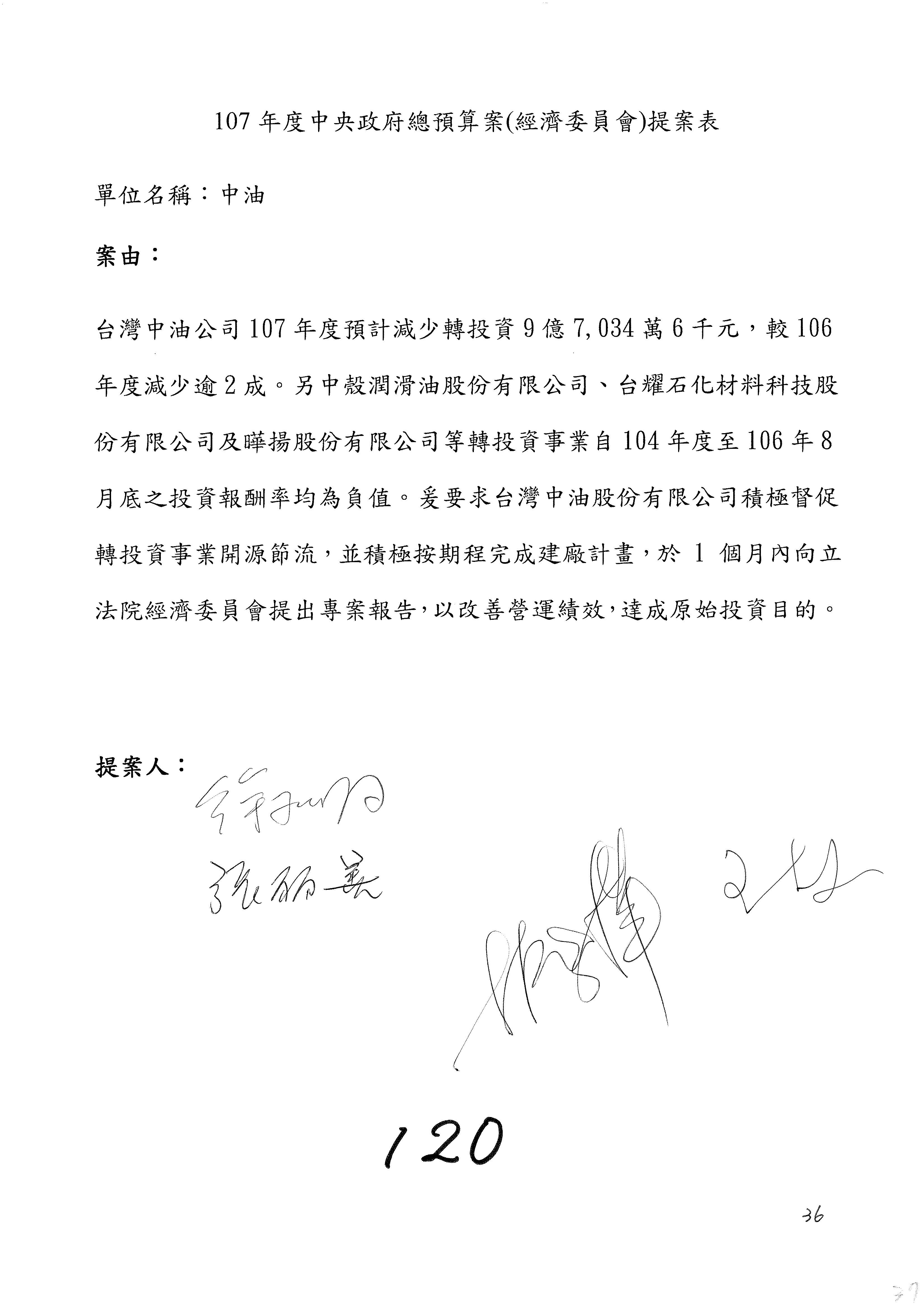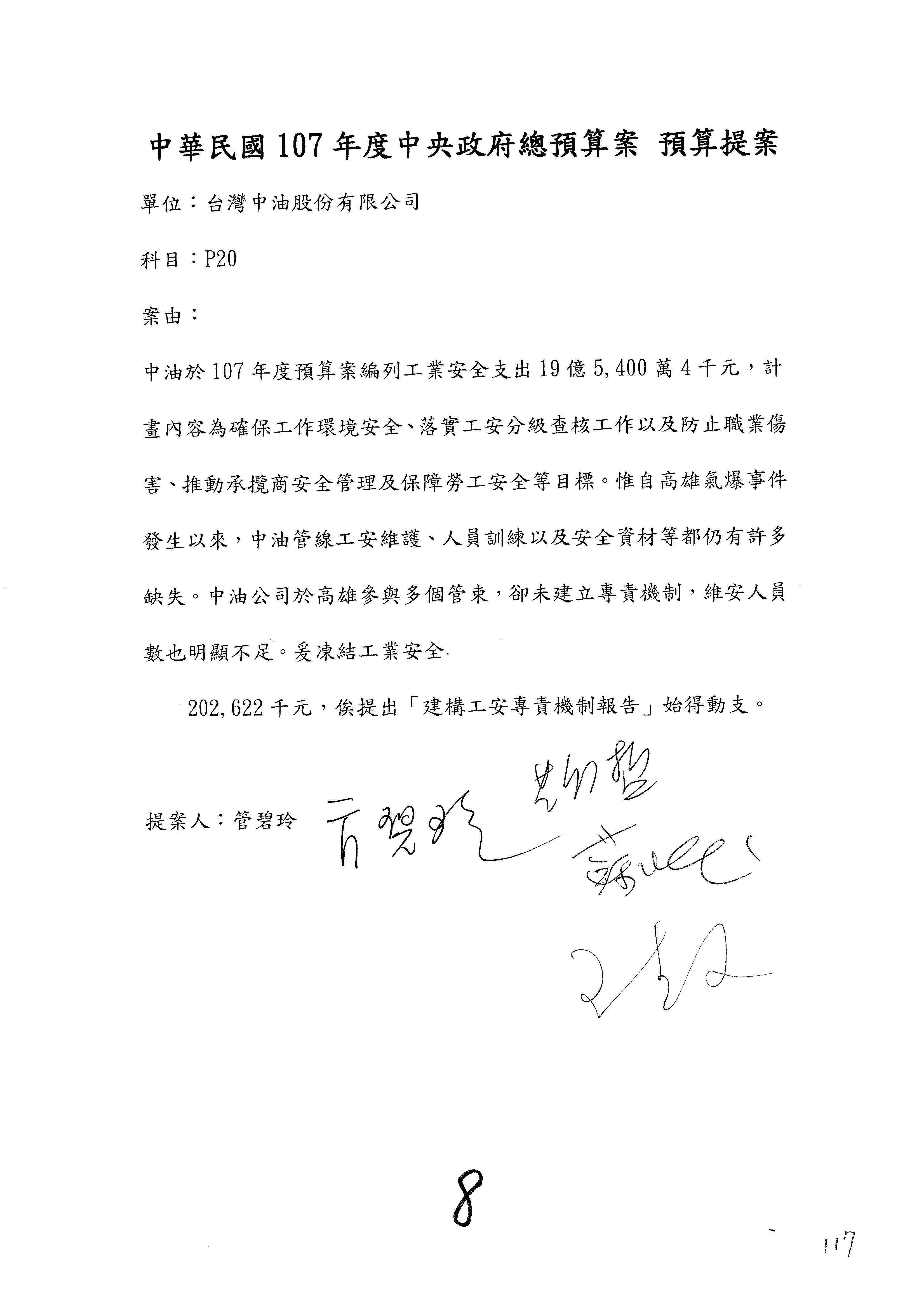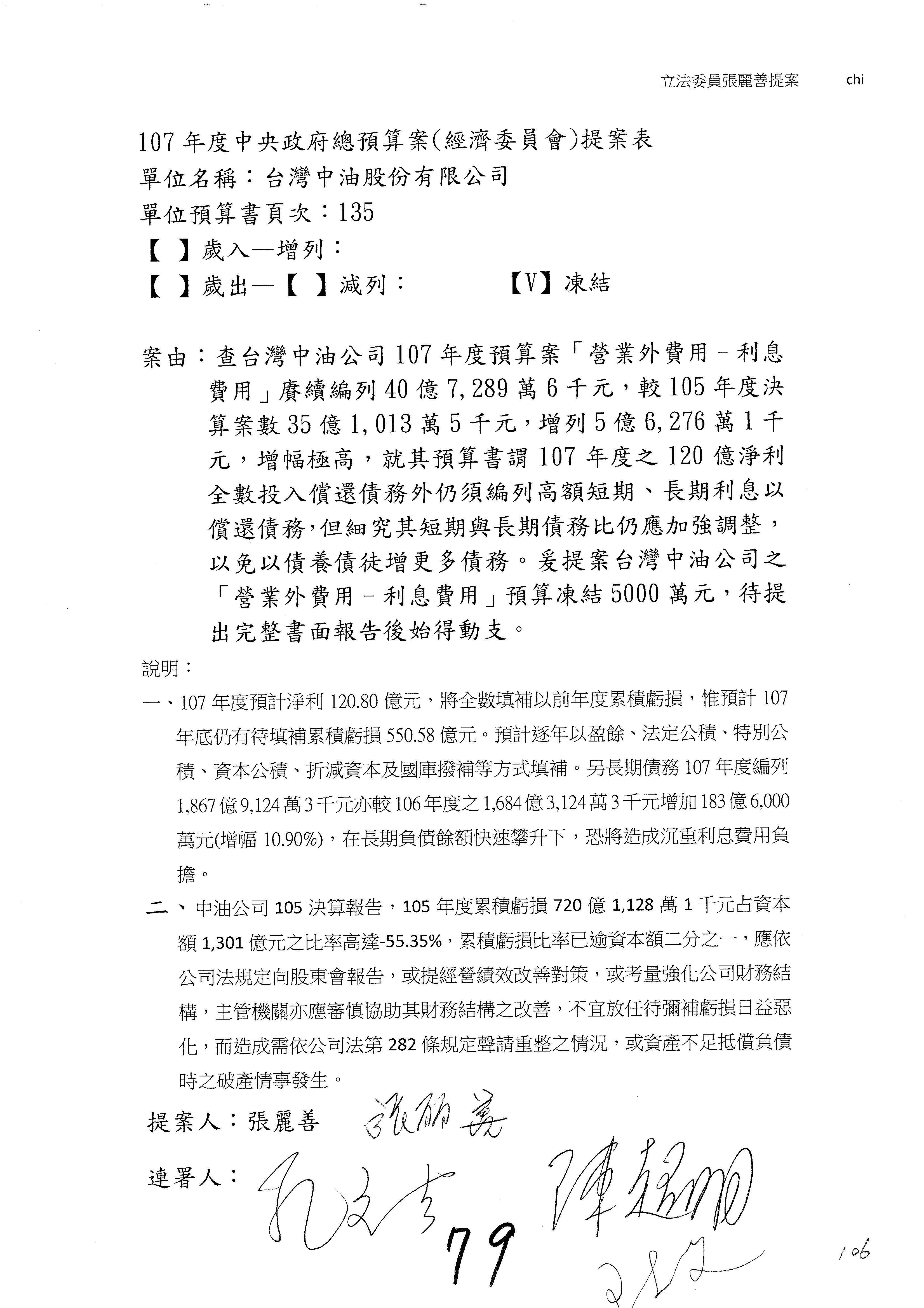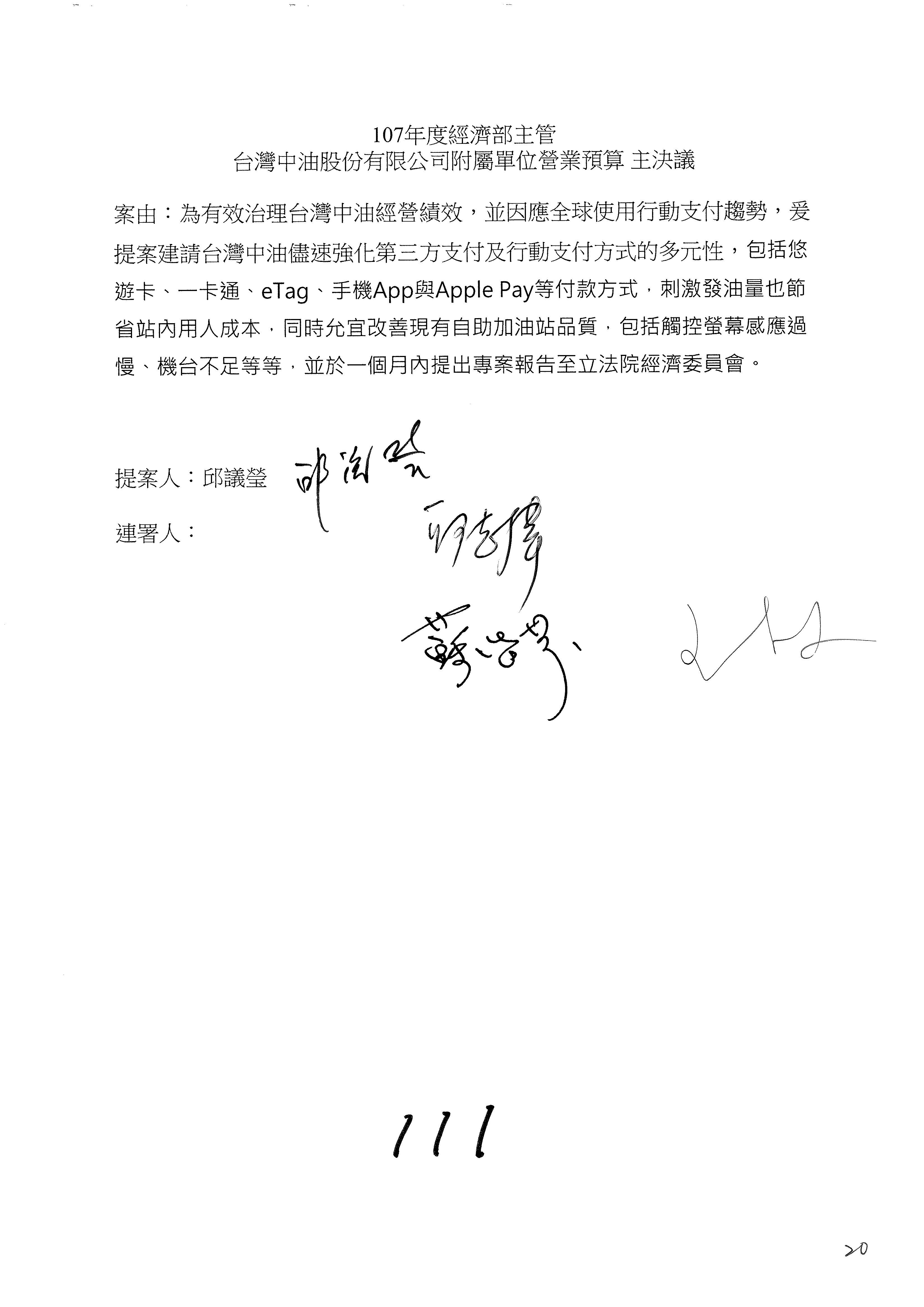 繼續審查107年度中央政府總預算案附屬單位預算營業部分關於經濟部主管:台灣自來水股份有限公司、台灣中油股份有限公司。