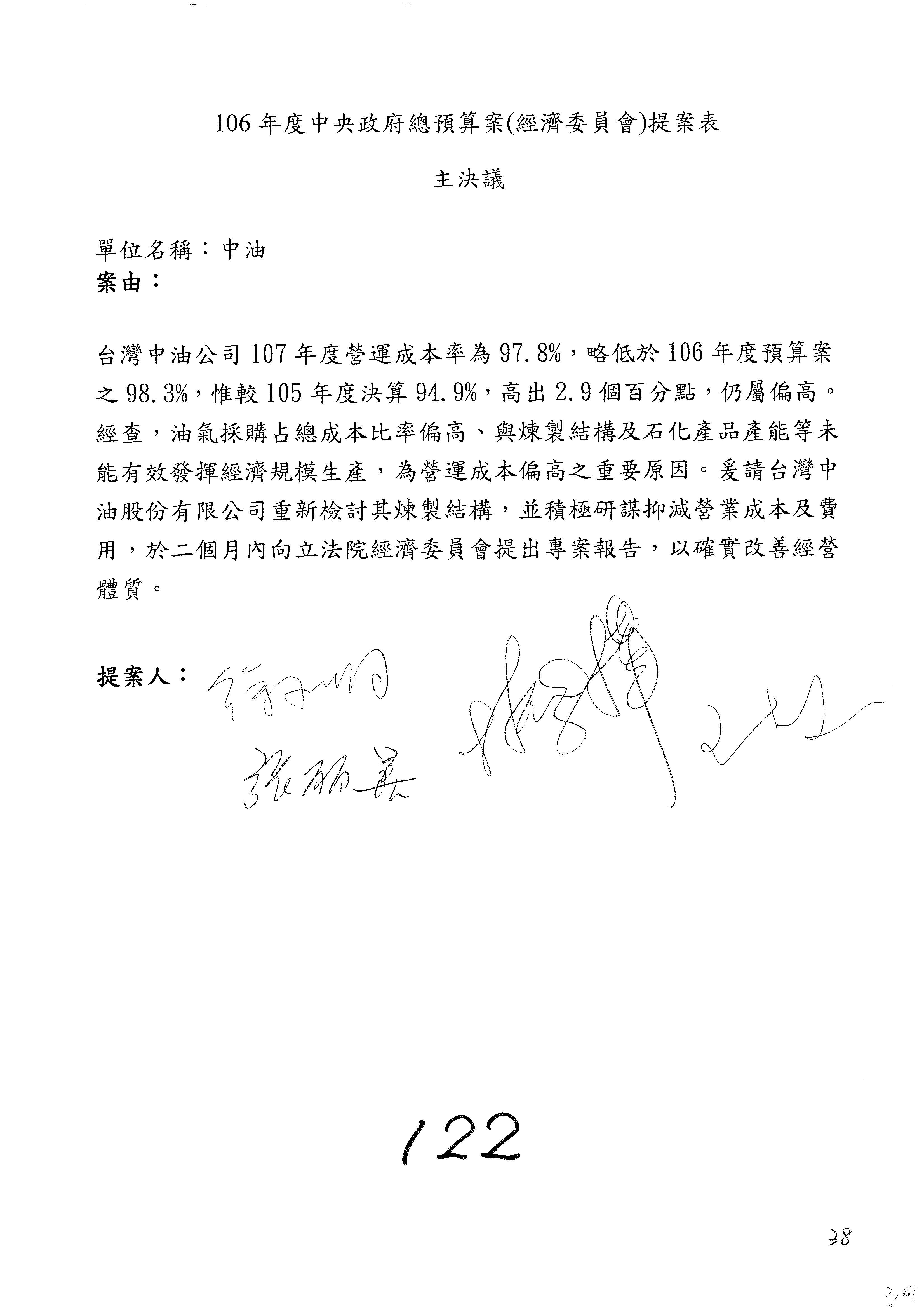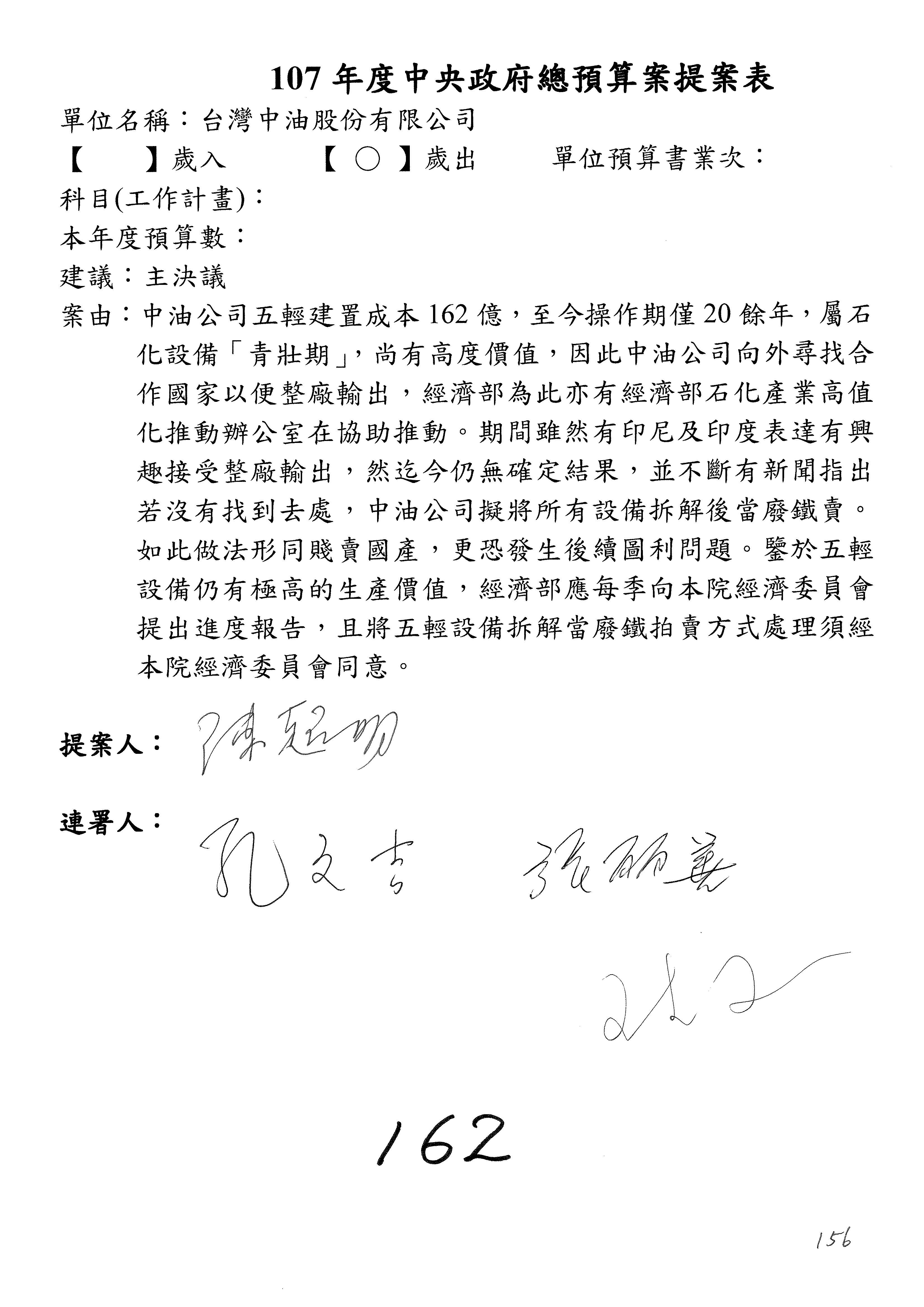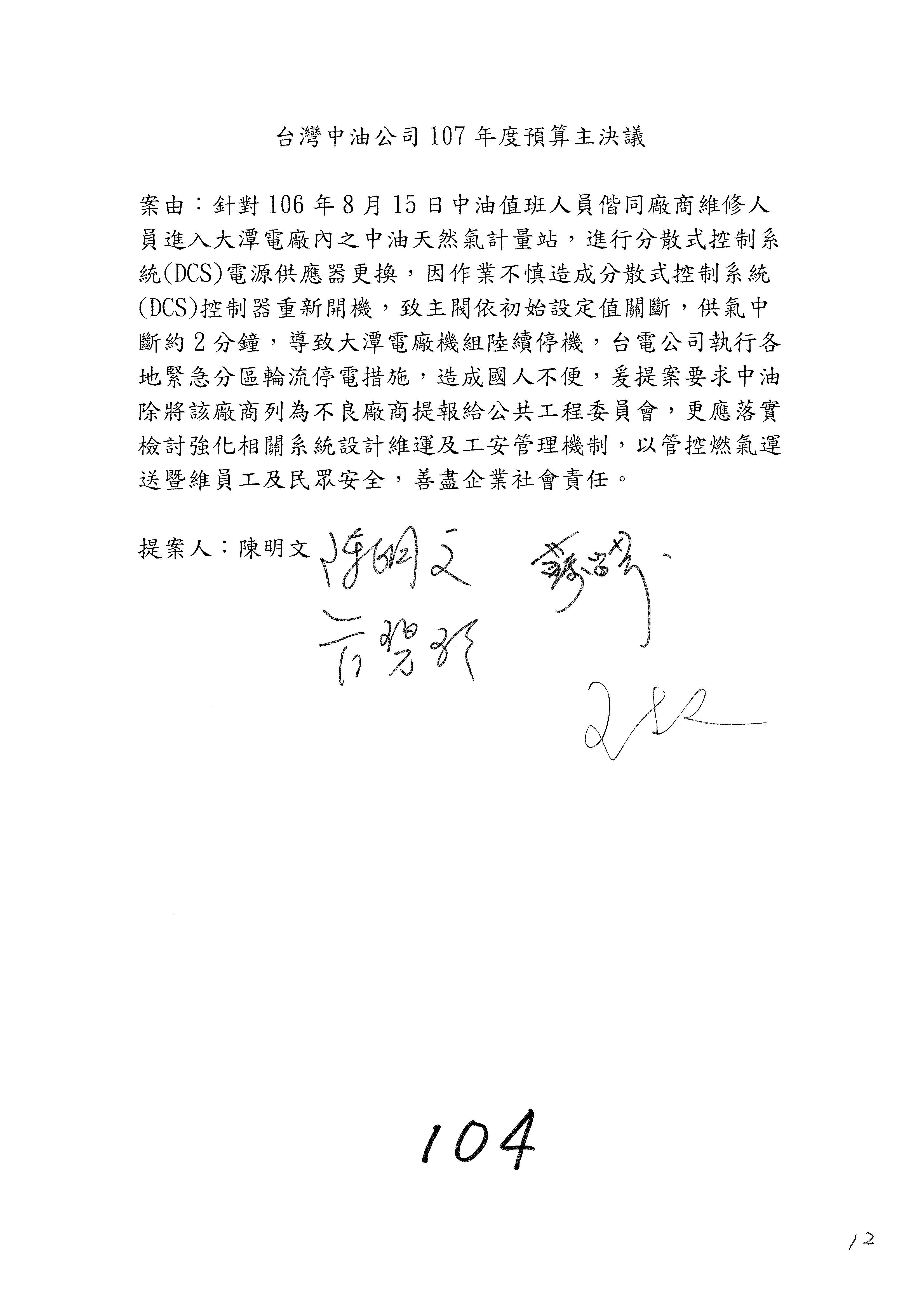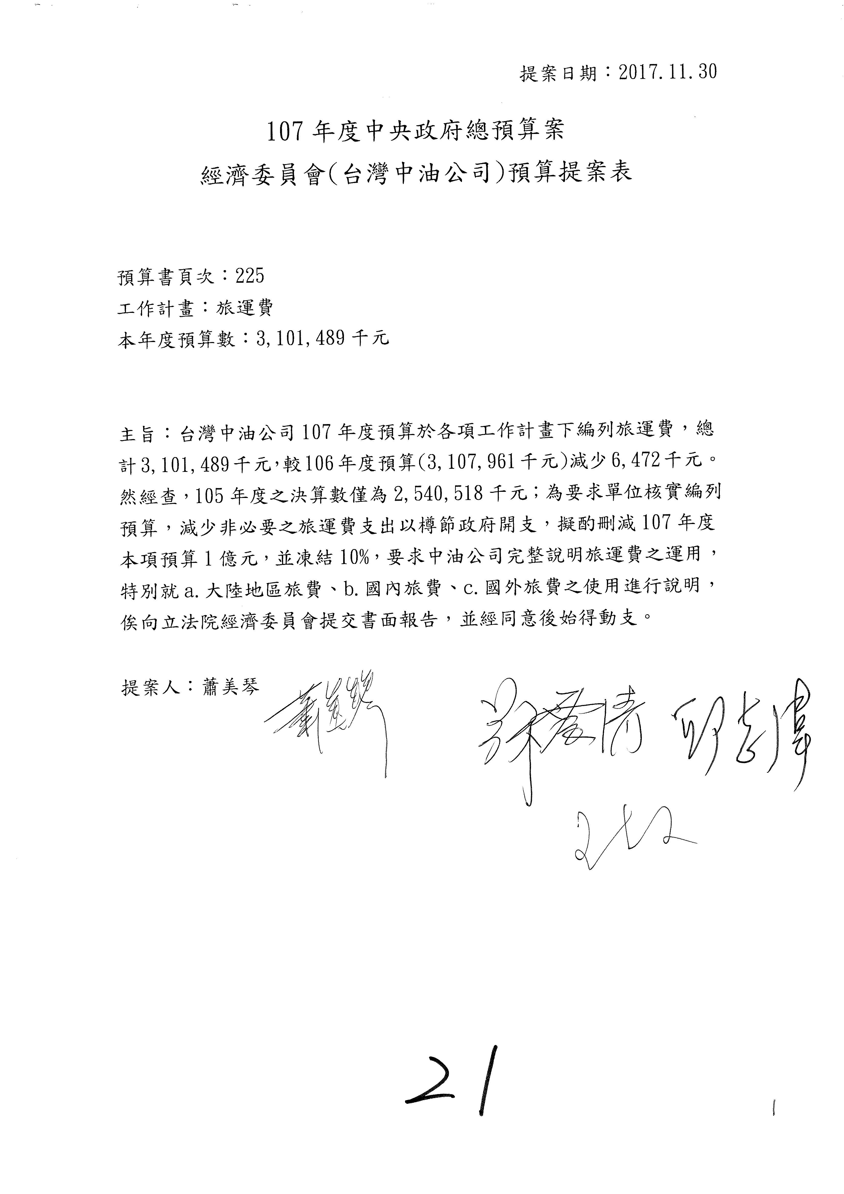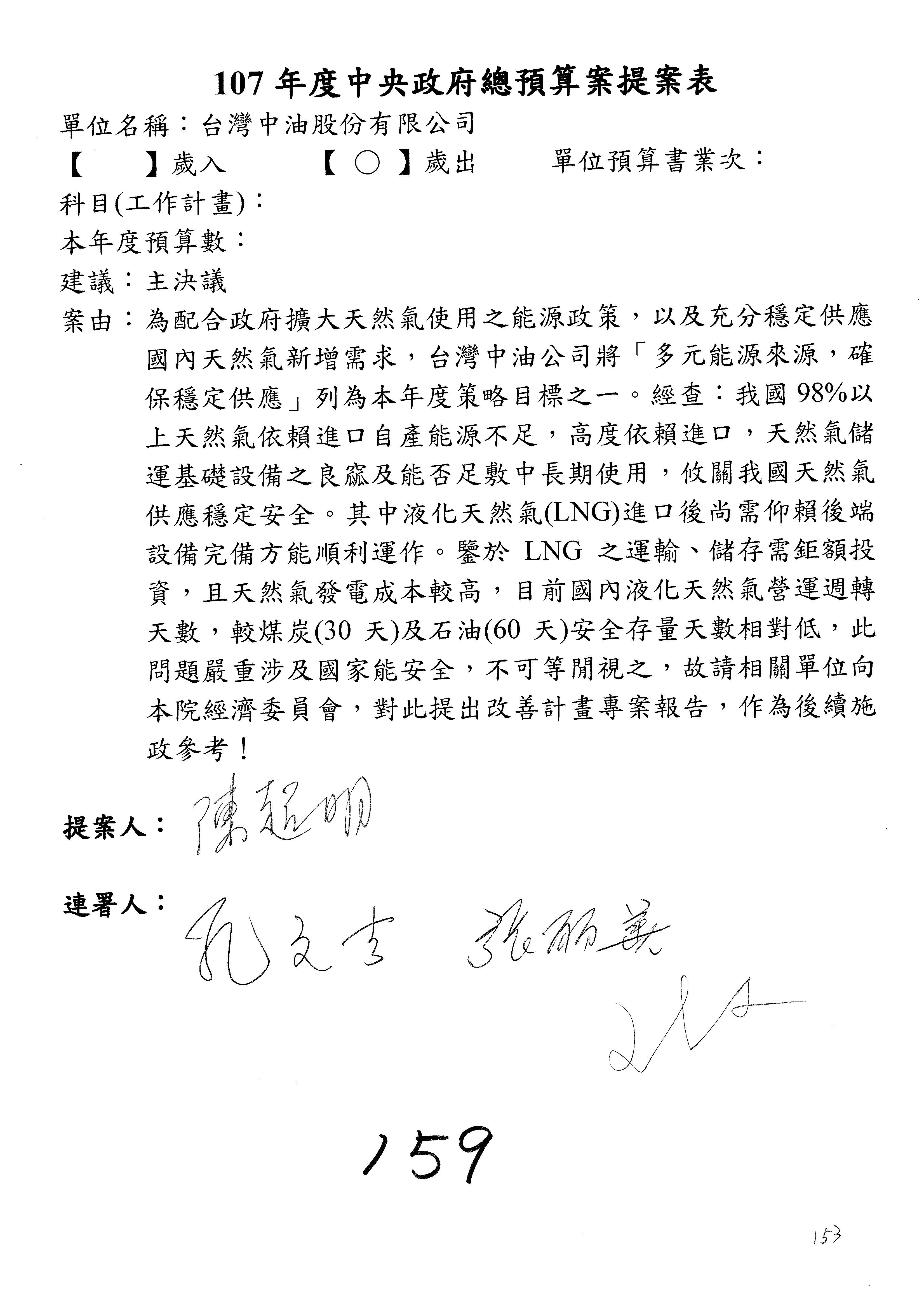 繼續審查107年度中央政府總預算案附屬單位預算營業部分關於經濟部主管:台灣自來水股份有限公司、台灣中油股份有限公司。