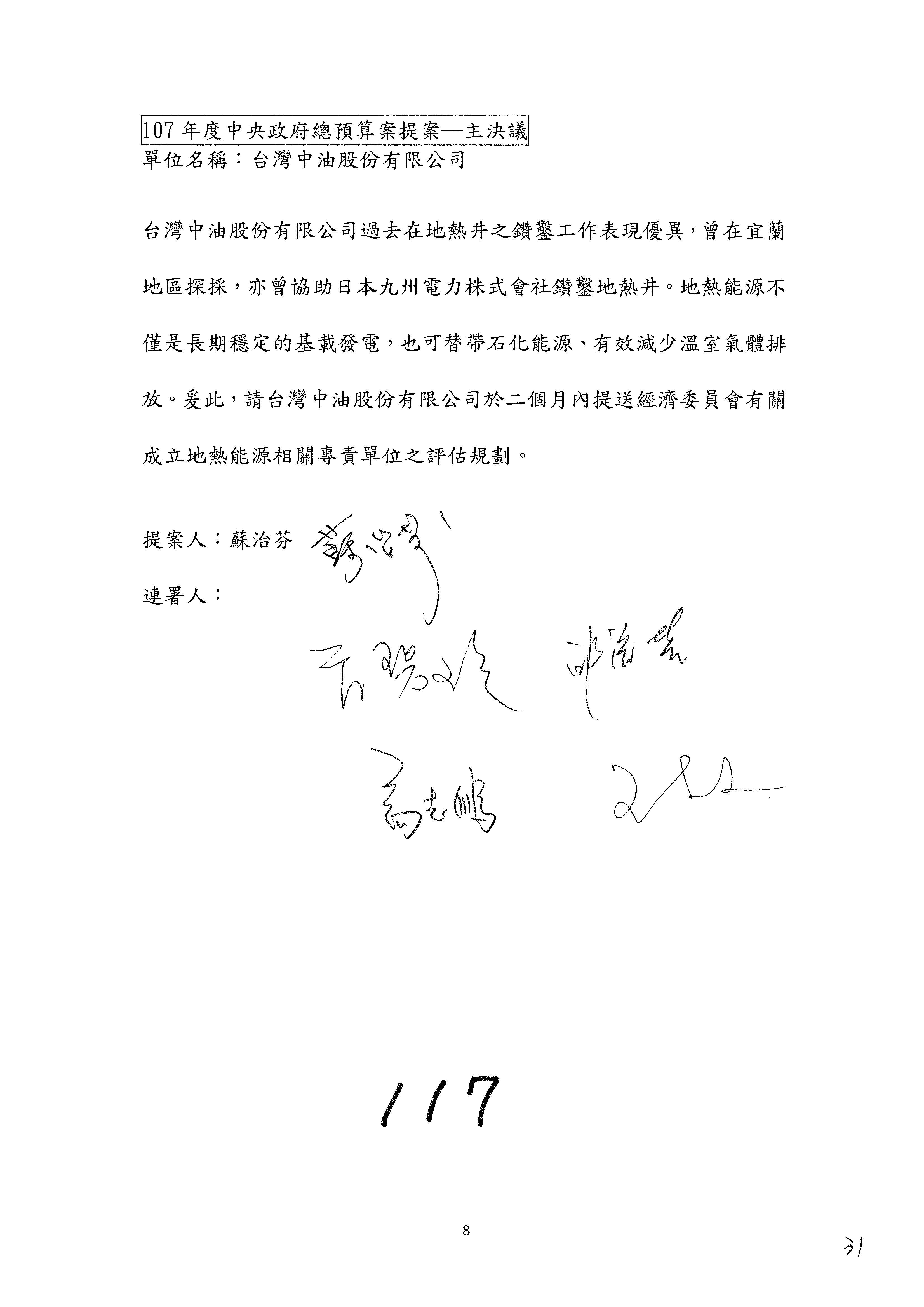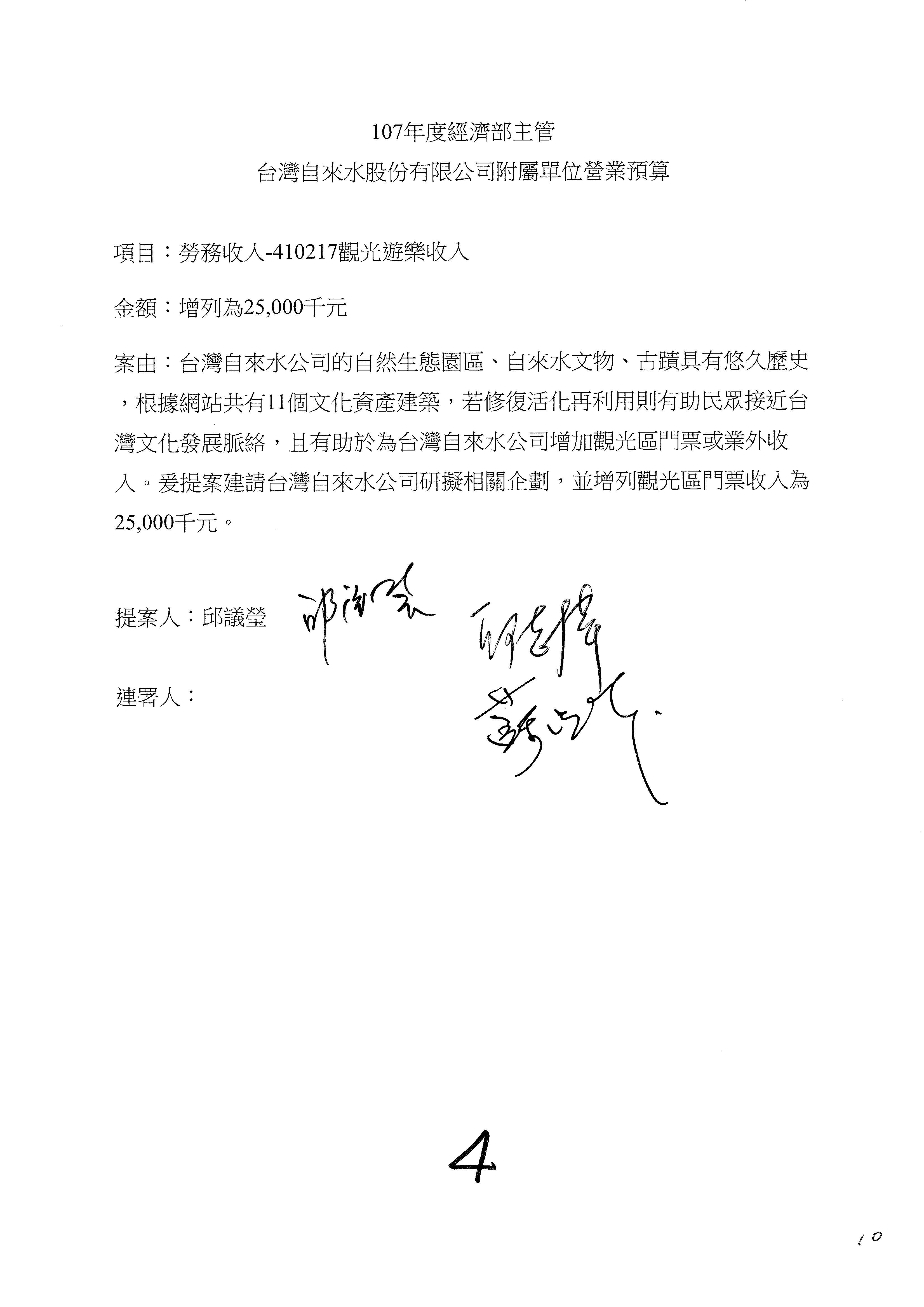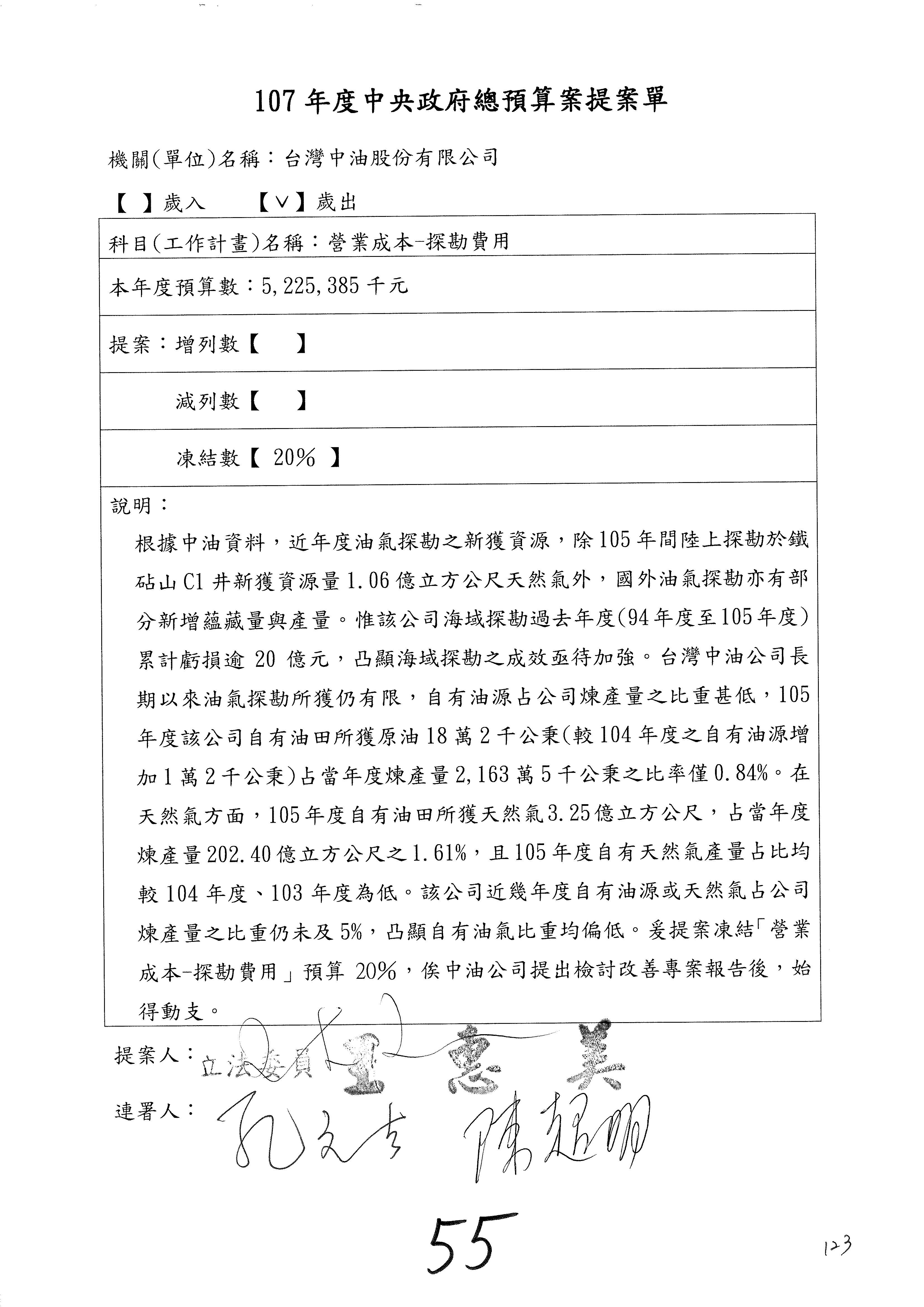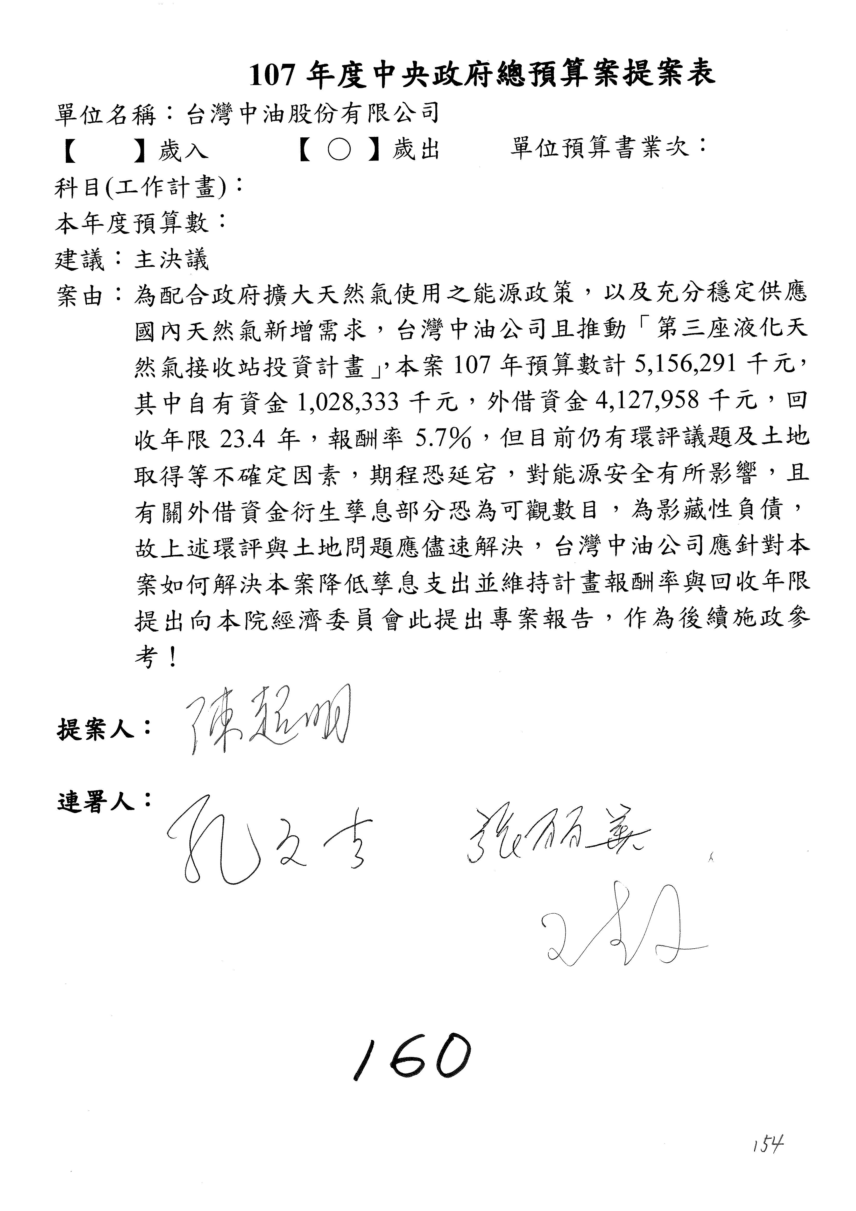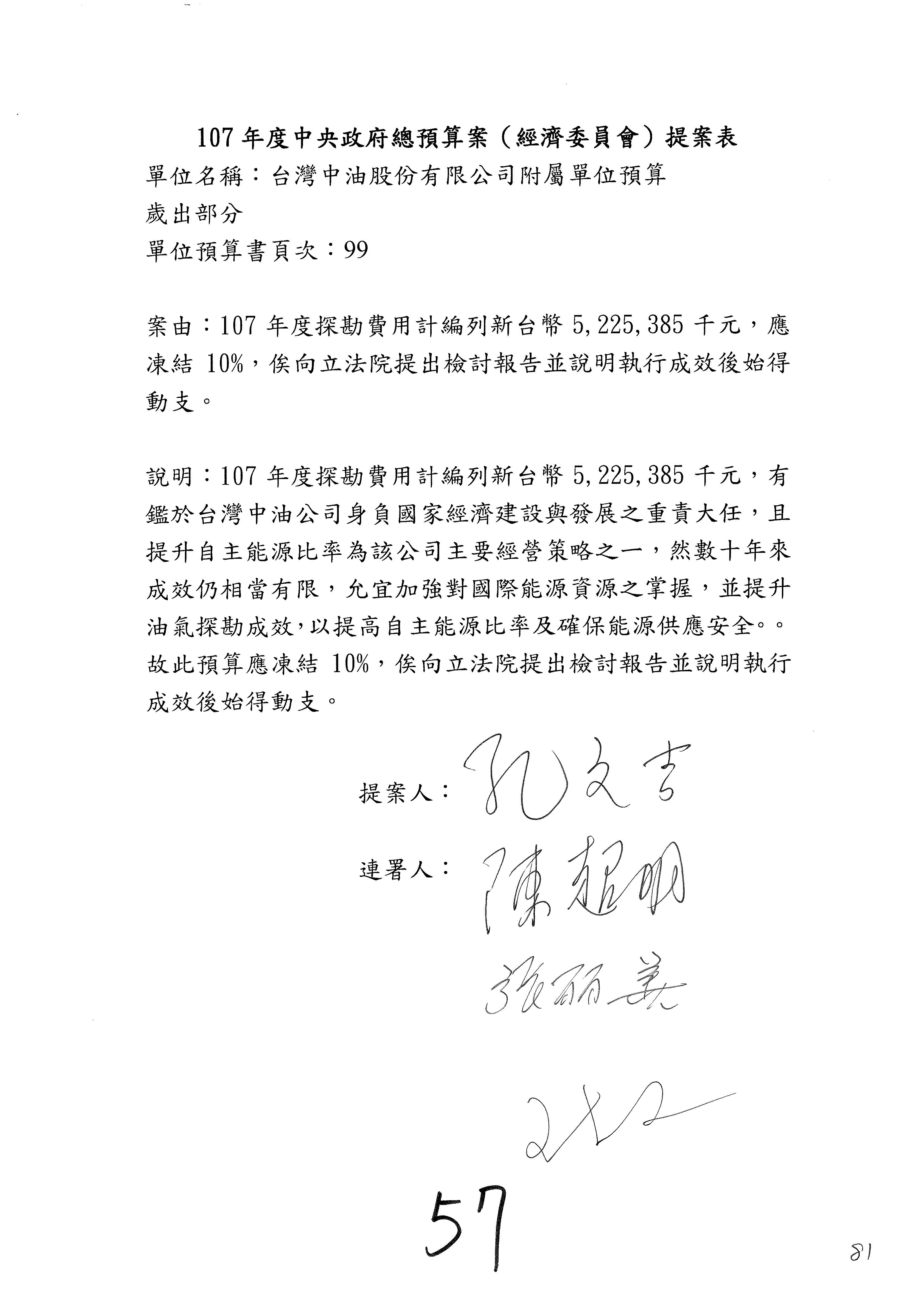 繼續審查107年度中央政府總預算案附屬單位預算營業部分關於經濟部主管:台灣自來水股份有限公司、台灣中油股份有限公司。