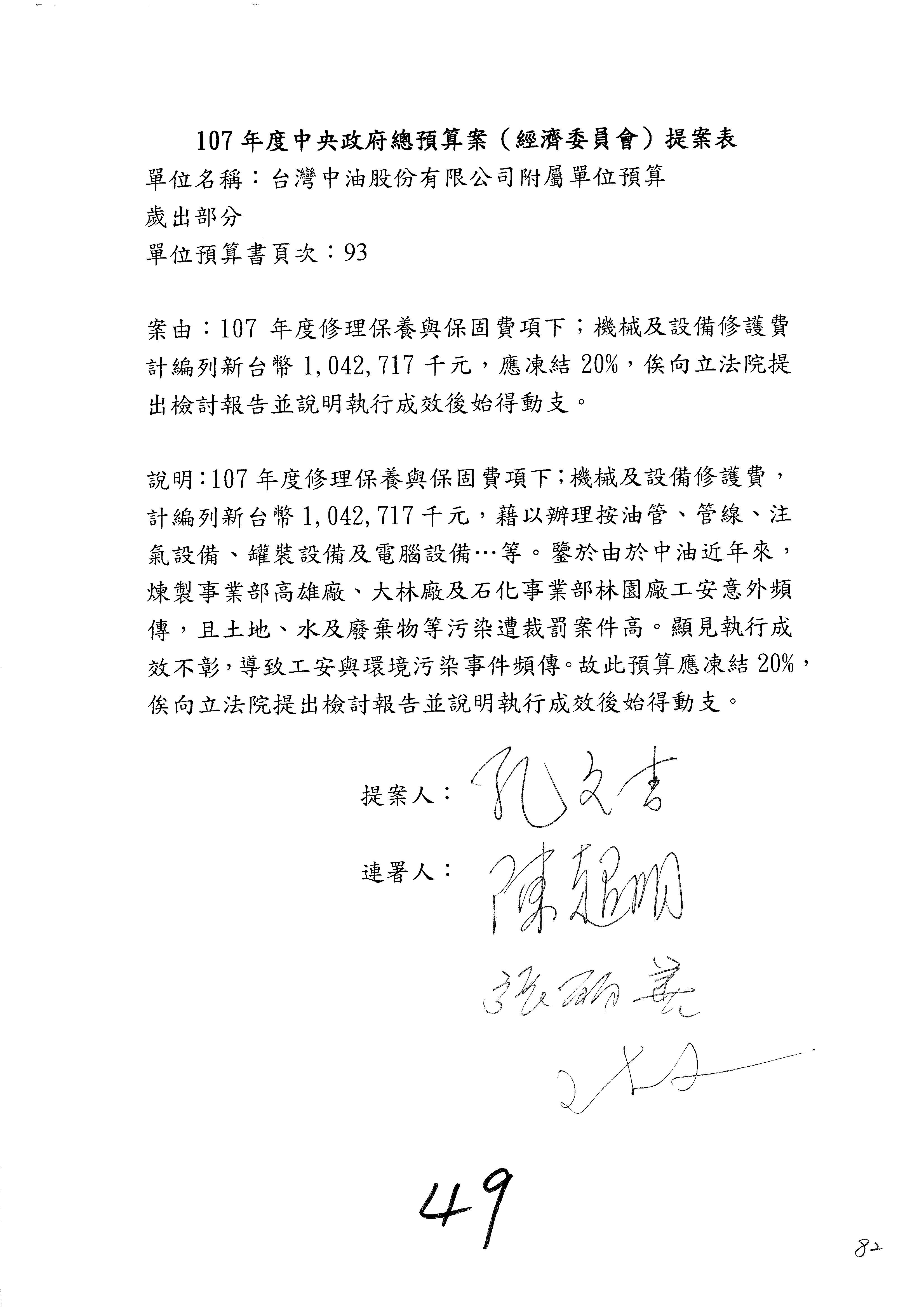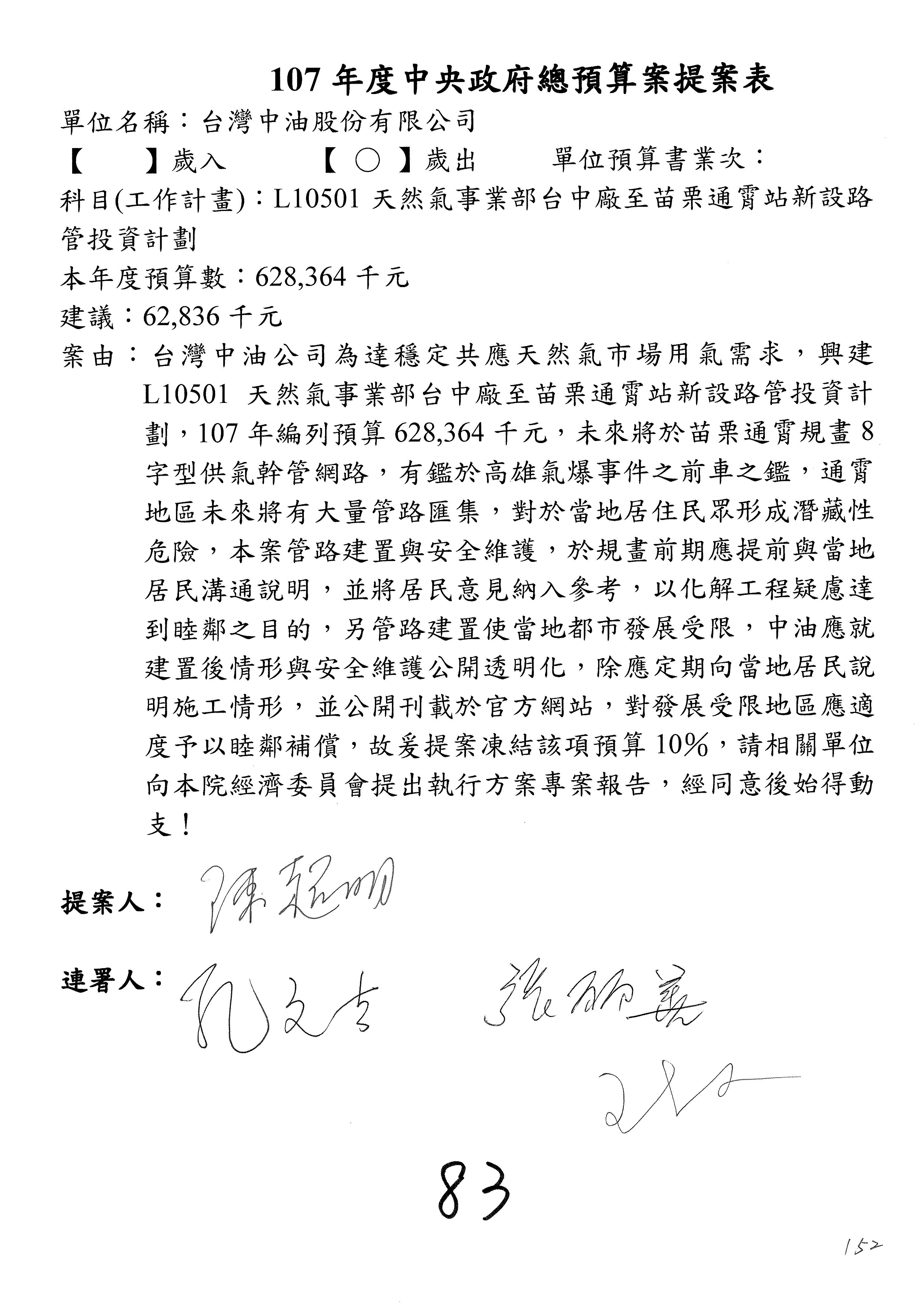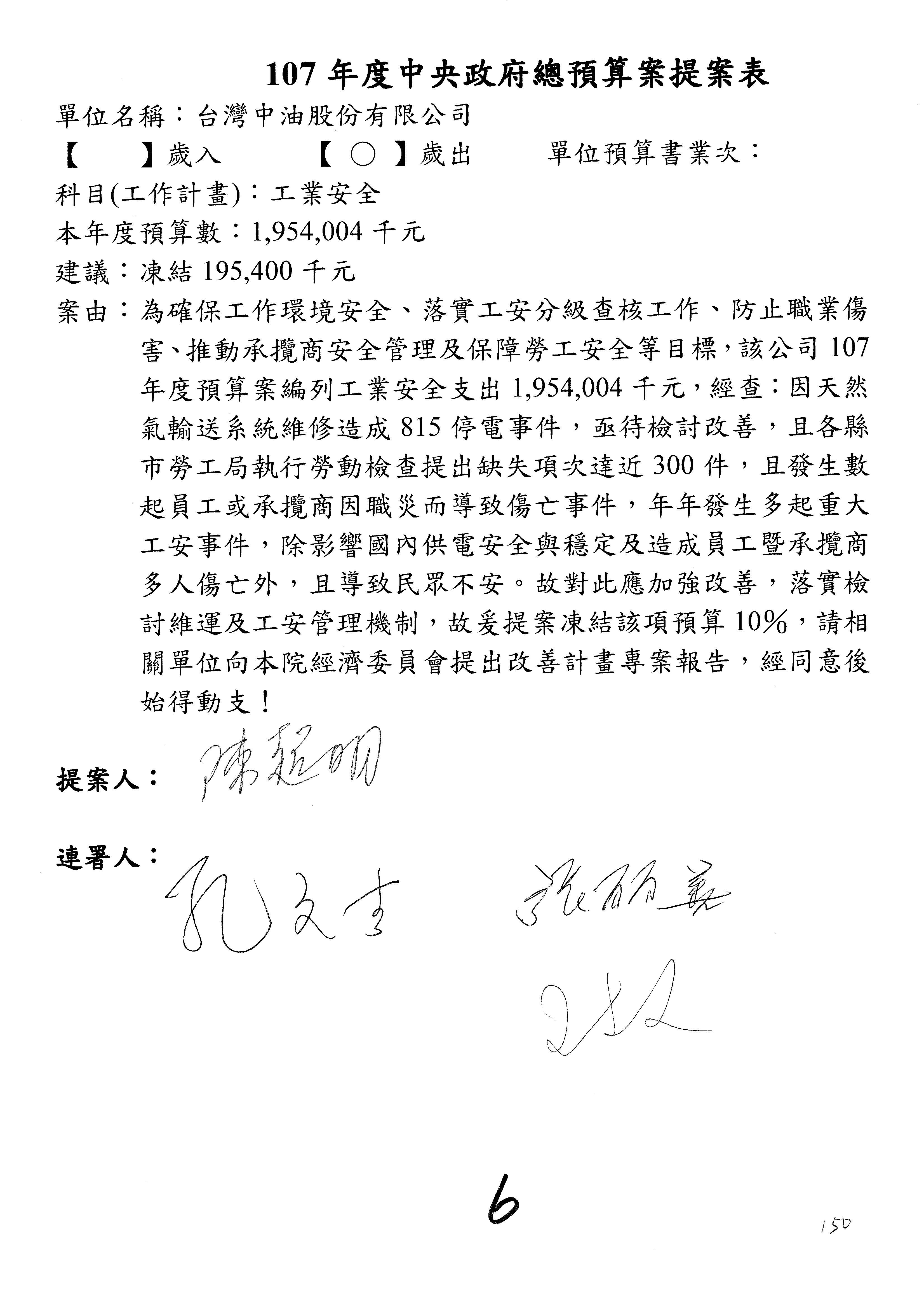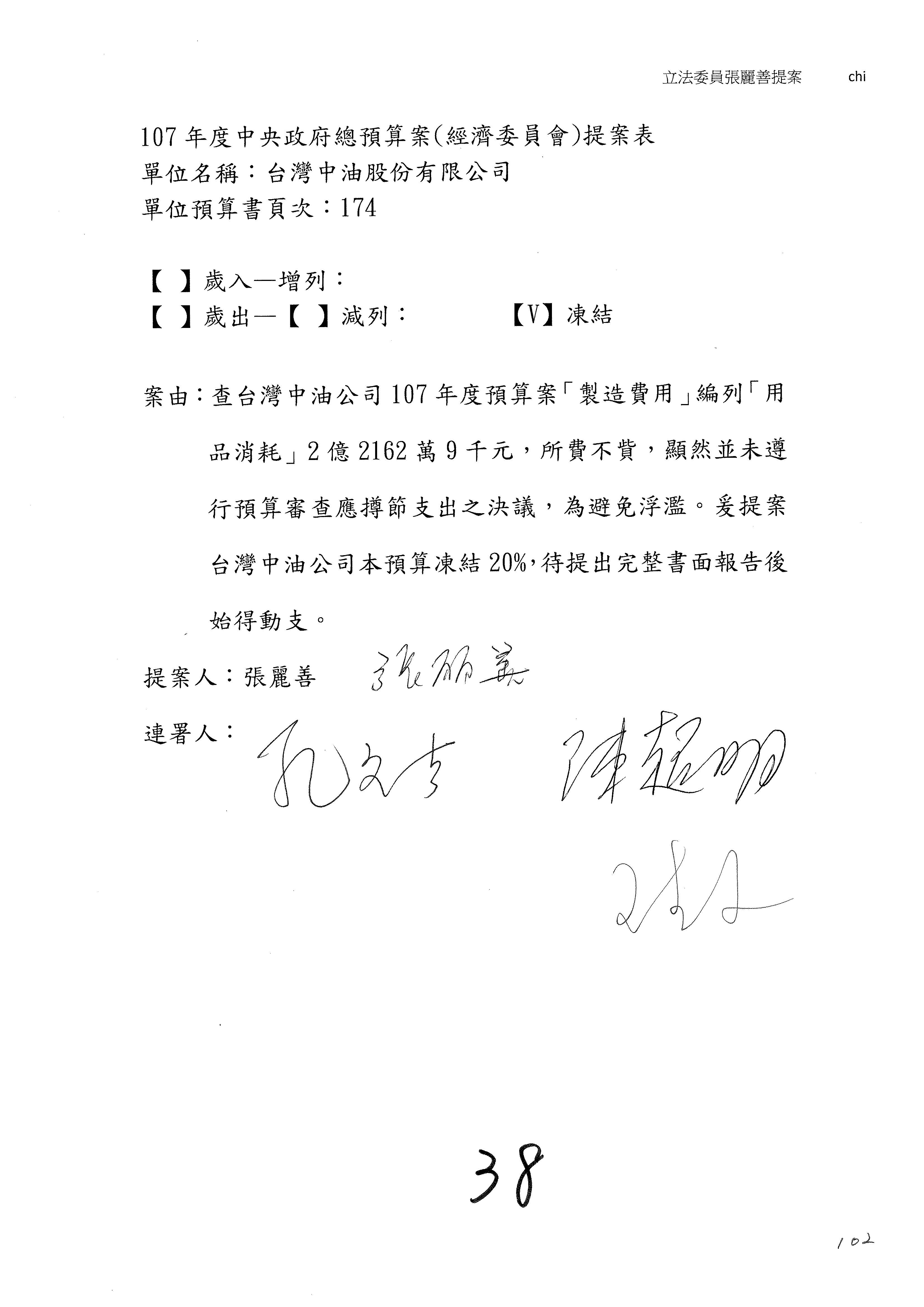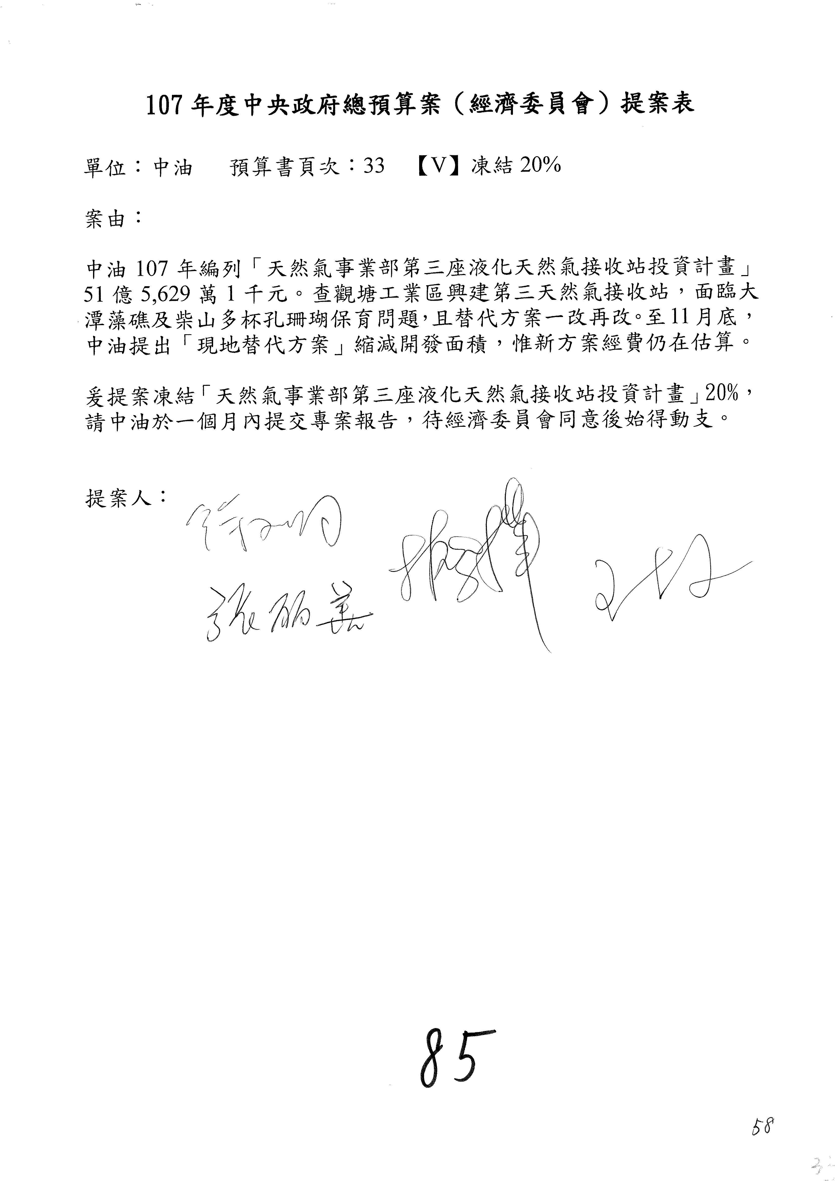 繼續審查107年度中央政府總預算案附屬單位預算營業部分關於經濟部主管:台灣自來水股份有限公司、台灣中油股份有限公司。