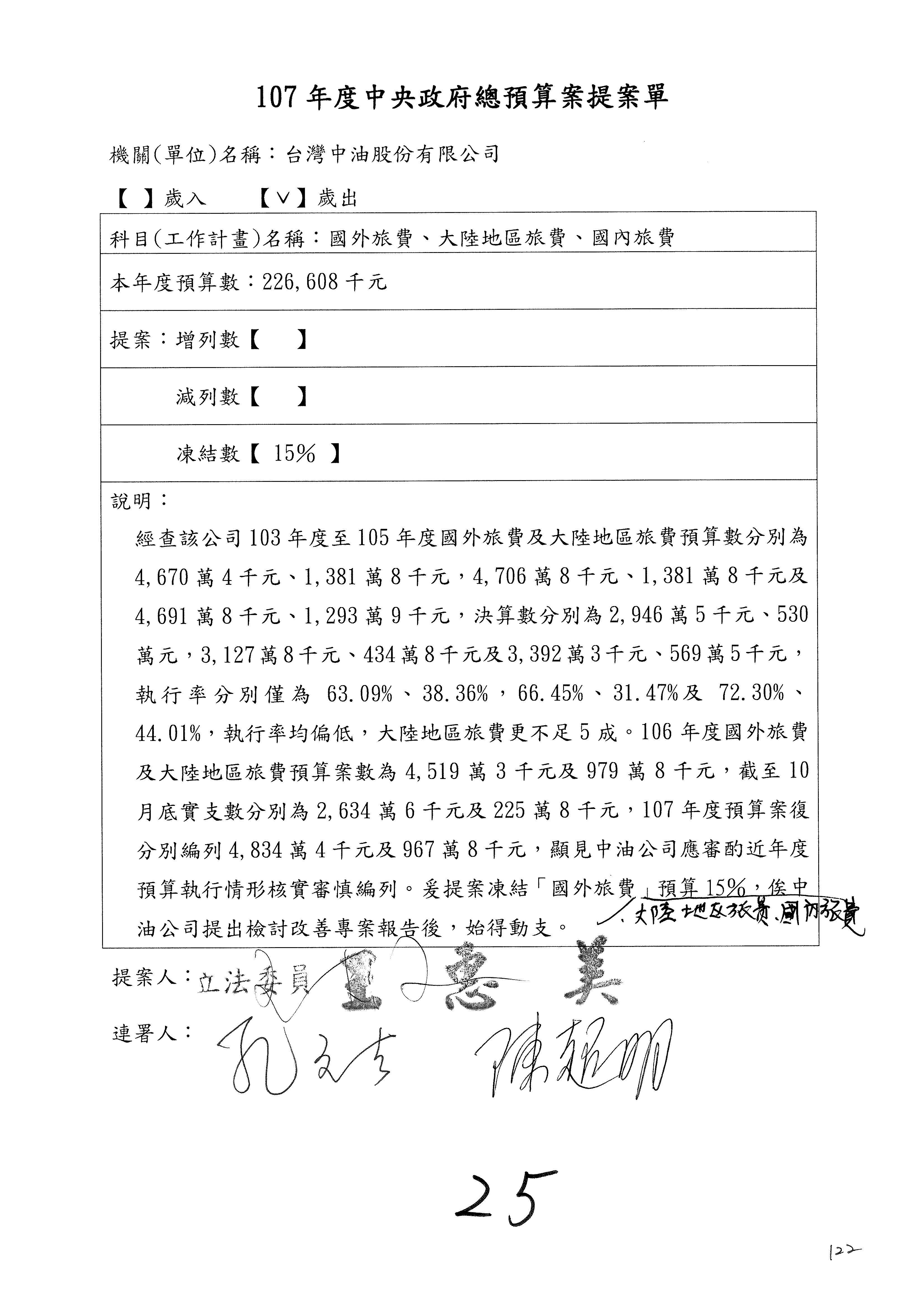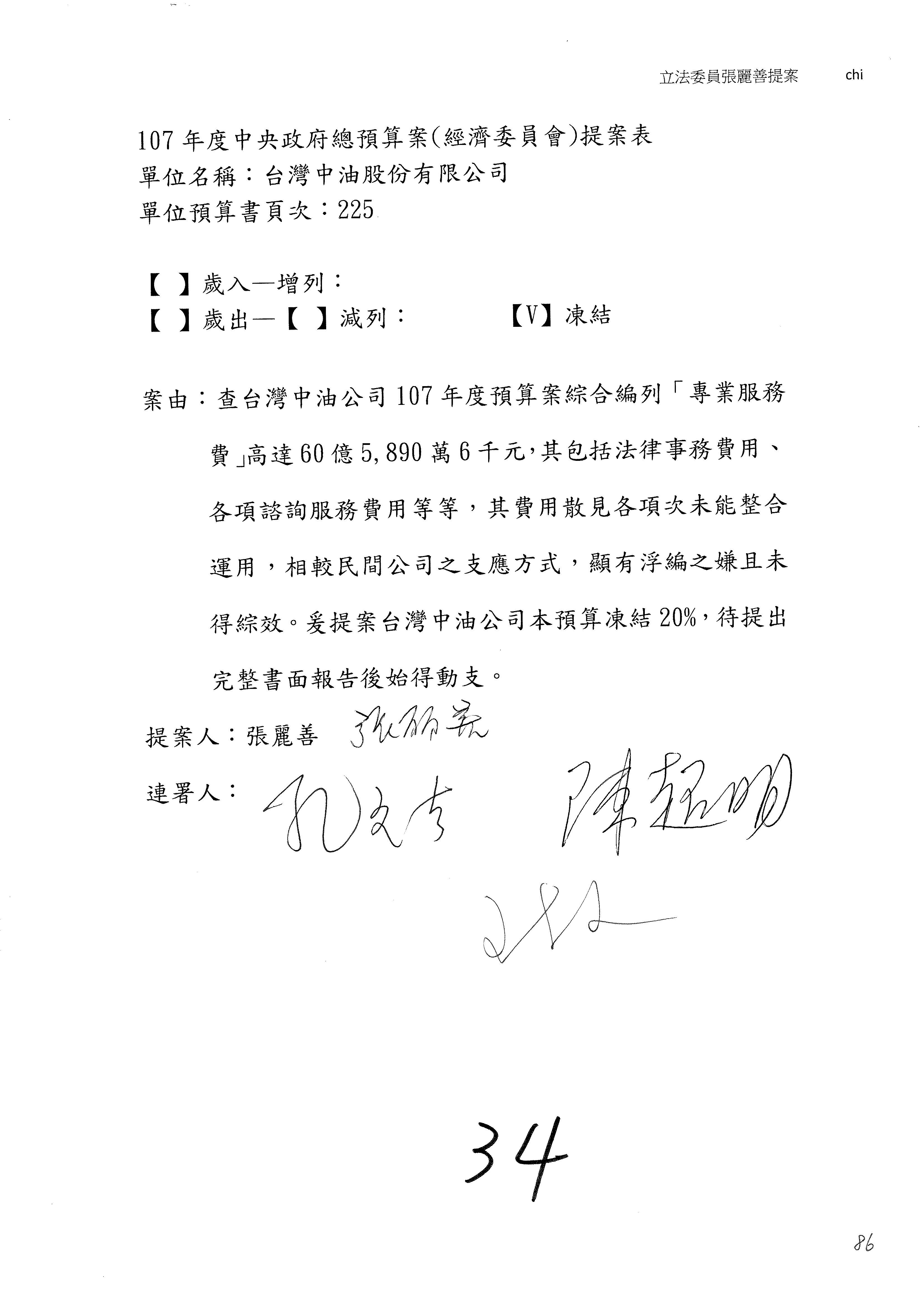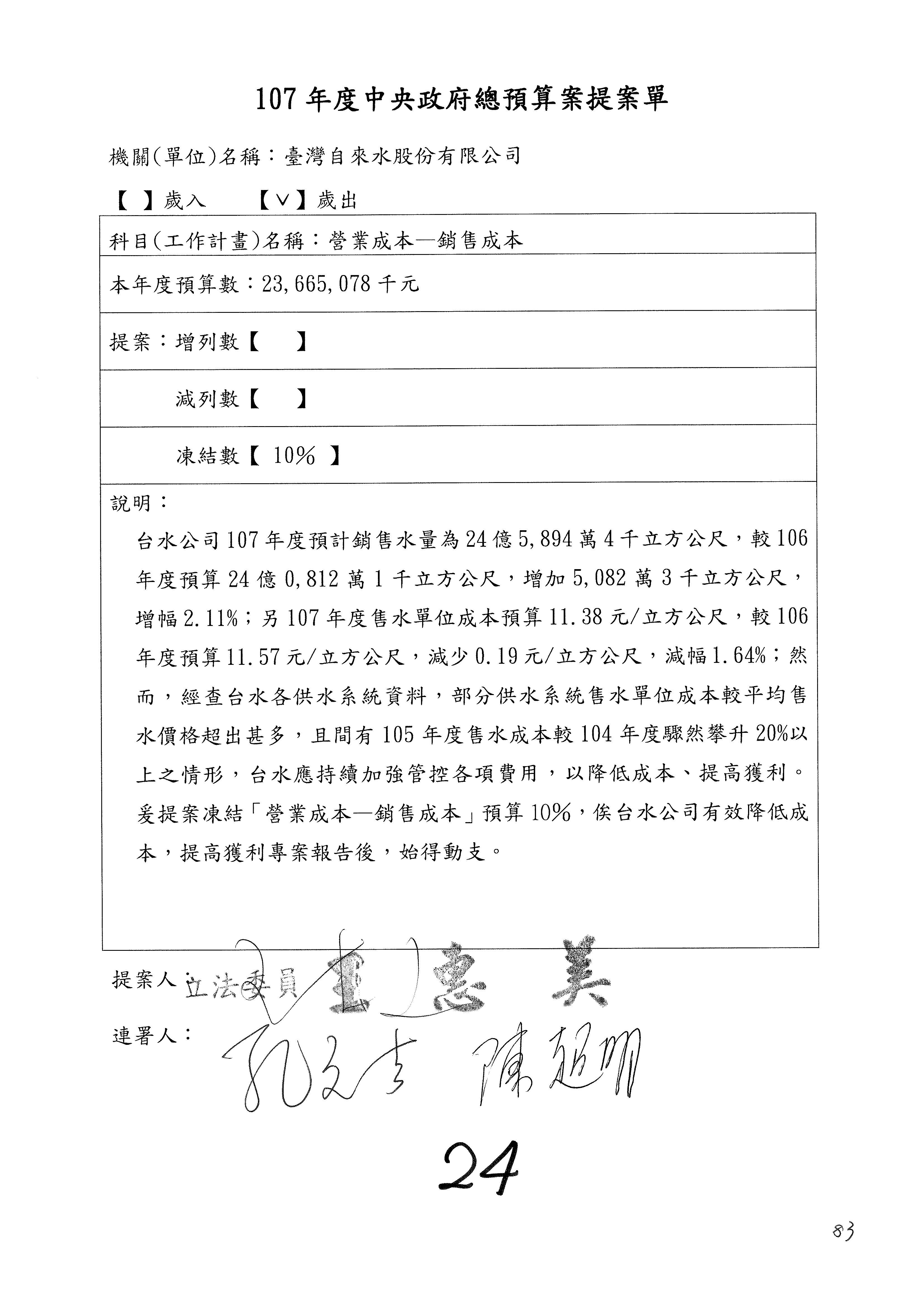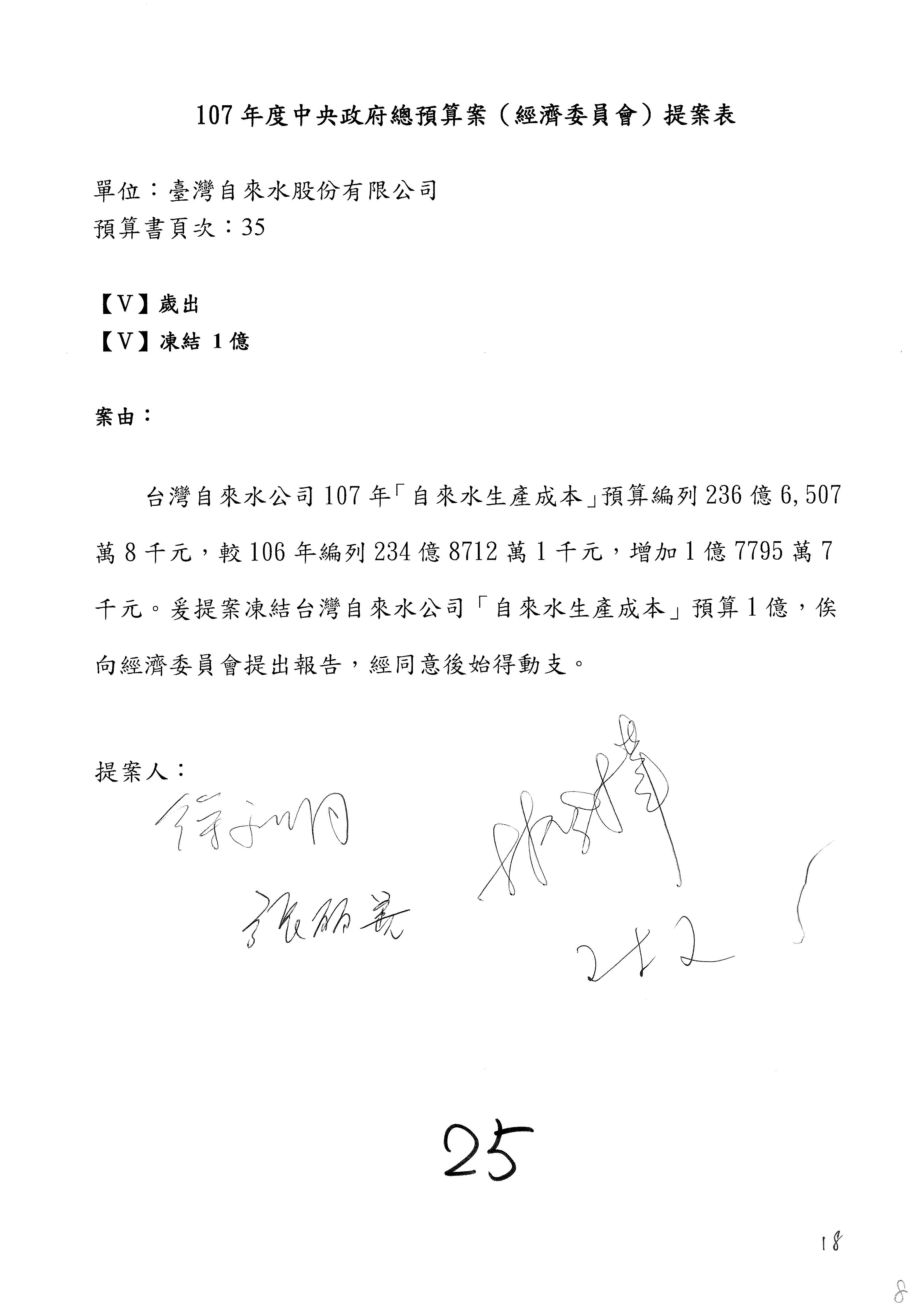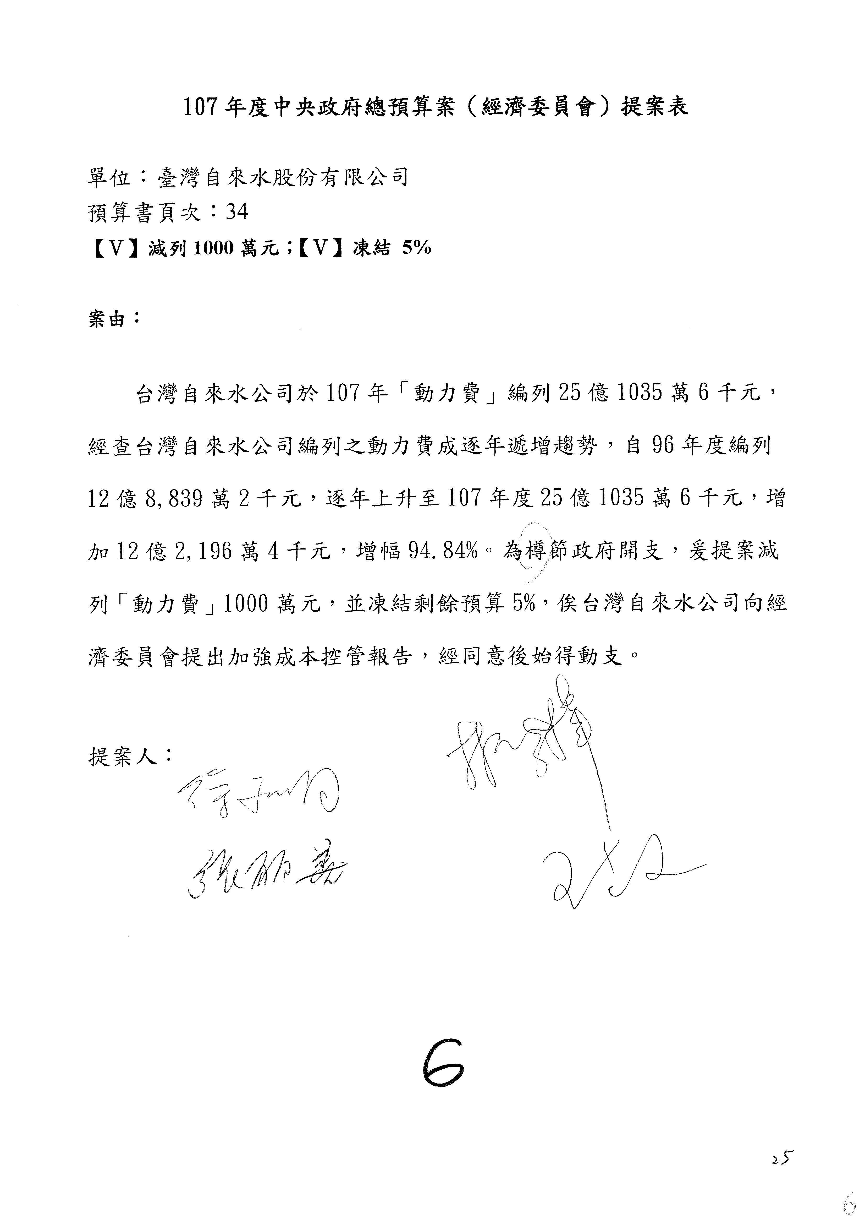 主席:服務費用─水電費─動力費原列數25億1,035萬6,000元,我們就把尾數去掉,減列1,035萬6,000元,科目自行調整。換言之,這主要是針對動力費的部分。
