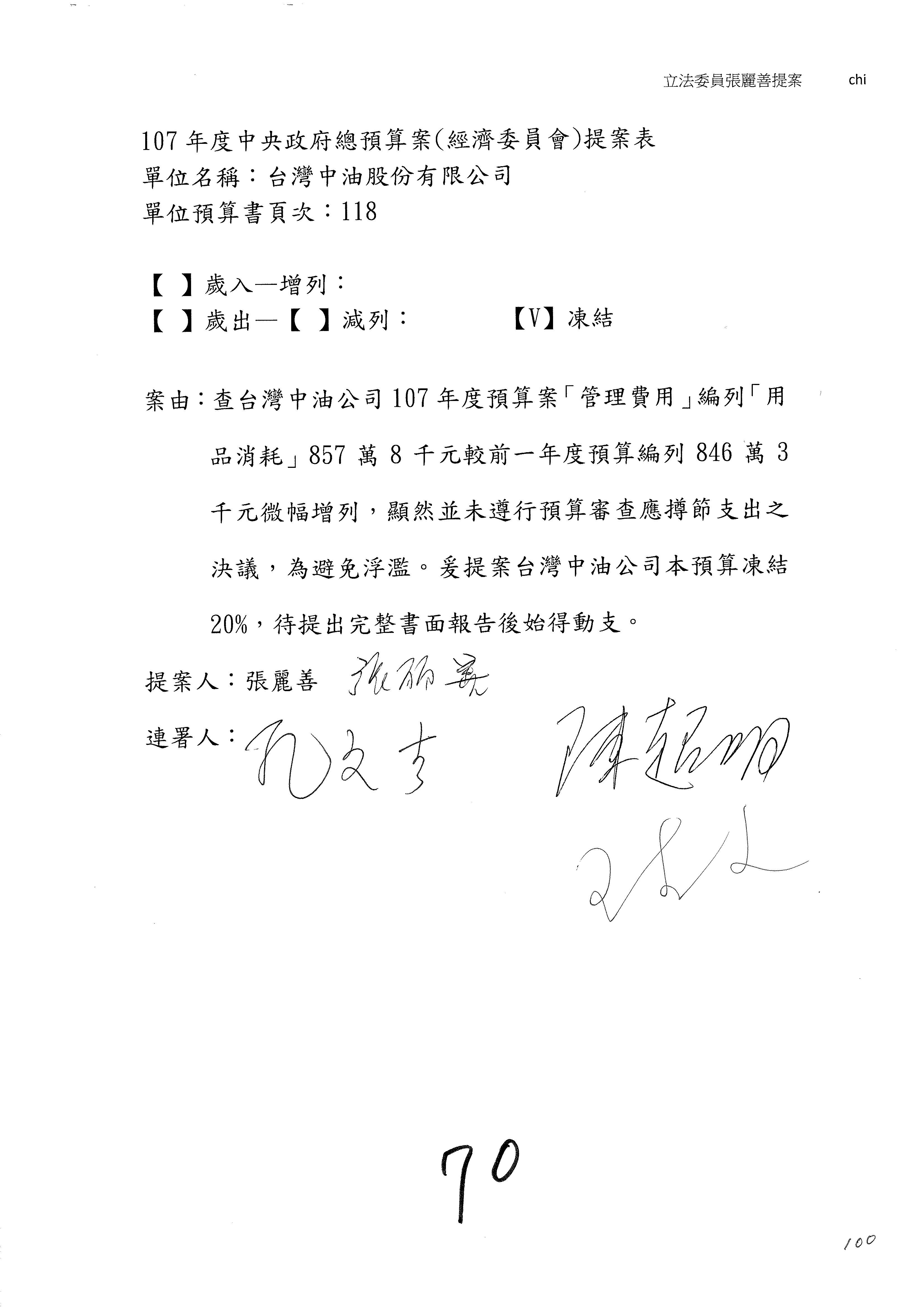 主席:修理保養與保固費的部分,要不要凍結呢?