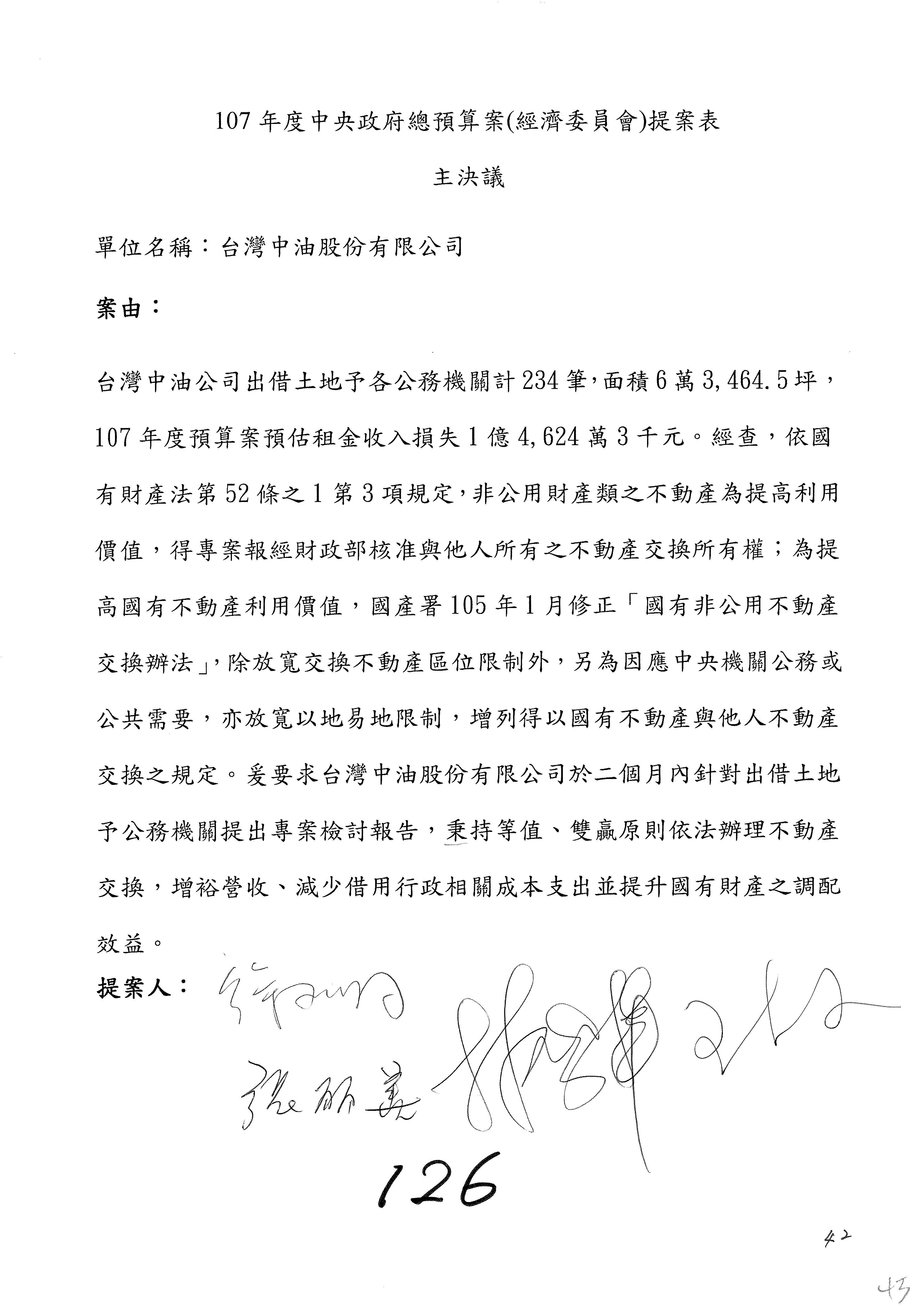 主席:請問各位同仁,對有委員提案的部分照剛才宣讀的協商結論通過、沒有提案的部分均照列或隨同調整,有無異議?(無)無異議,通過。