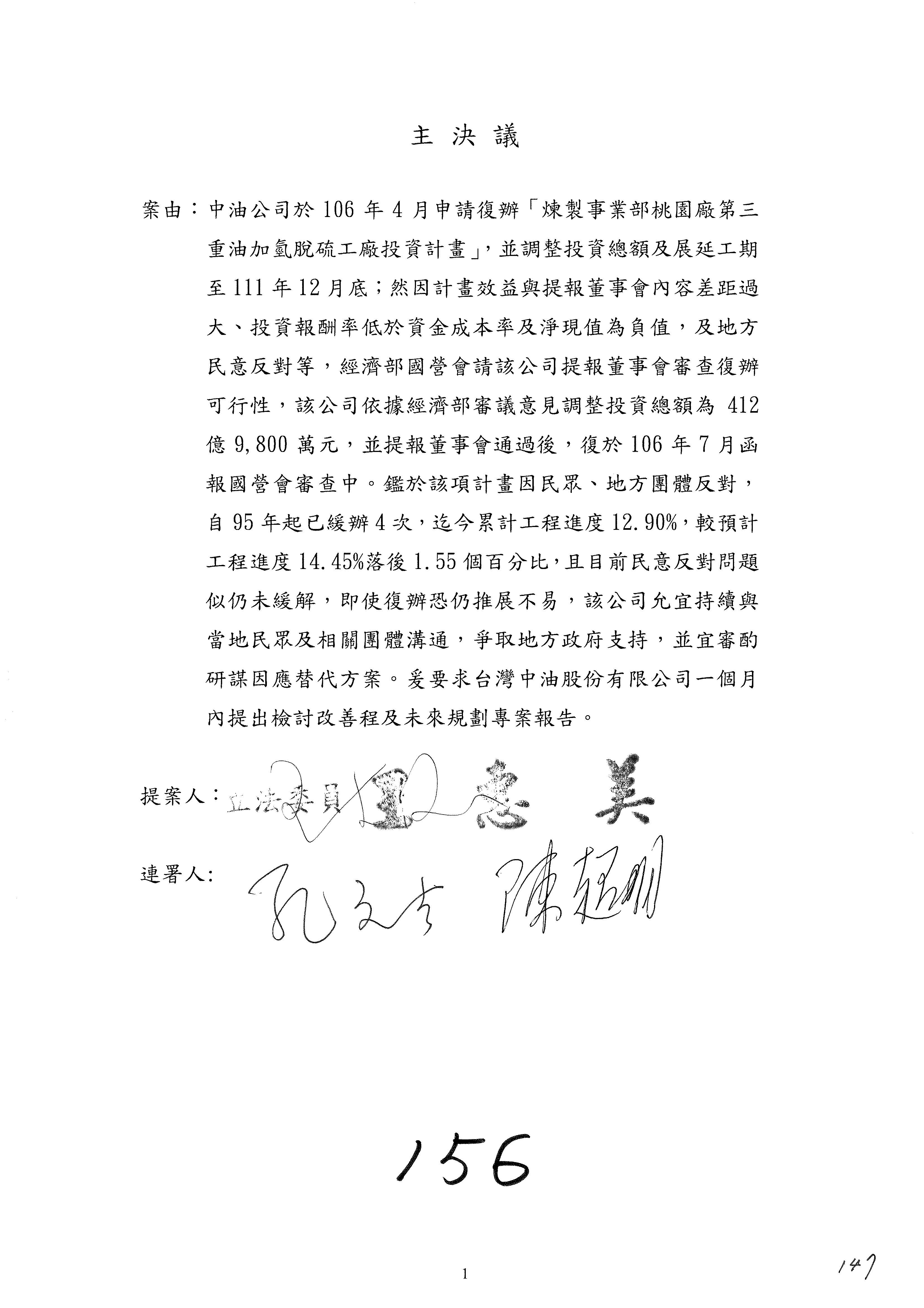 主席:高志鵬委員有跟我說,這個是希望你們持續「研議」啦!他雖然沒有來,但是我把他的意思傳達一下。