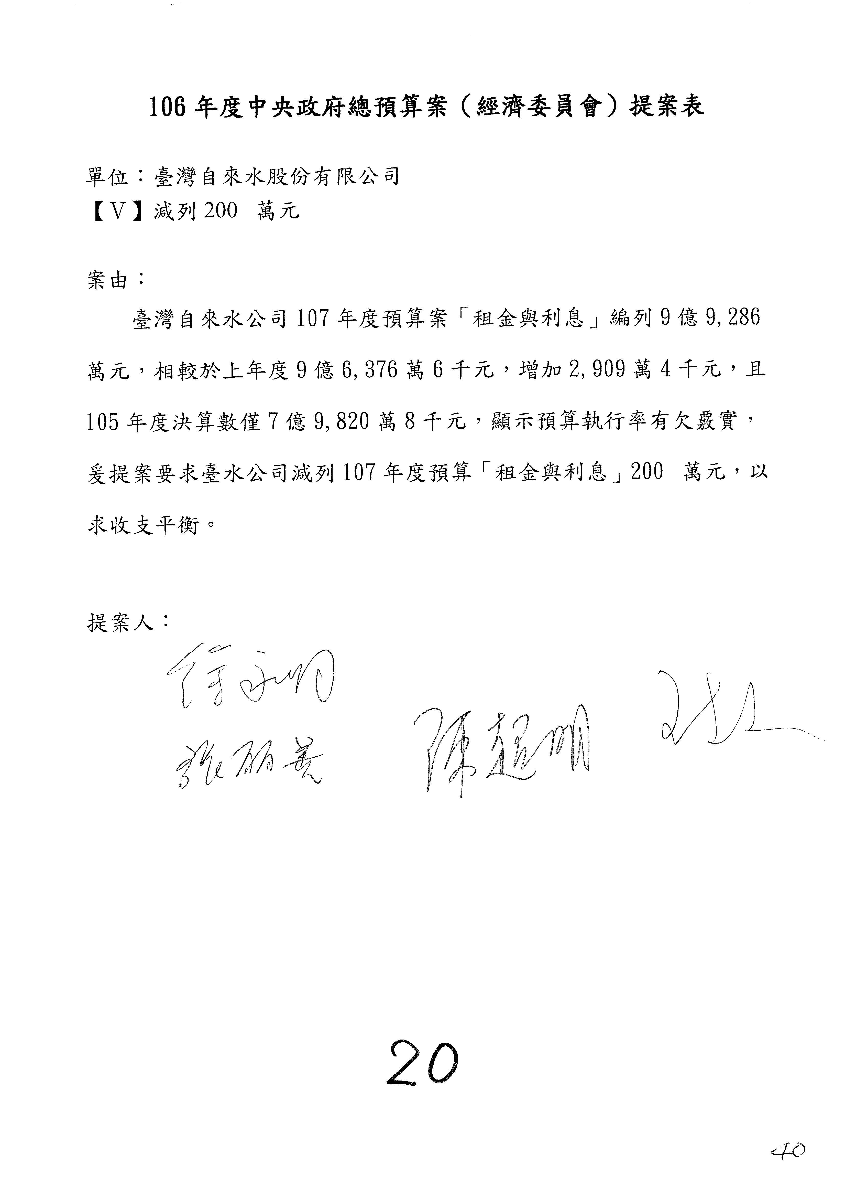 立法院第9屆第4會期經濟委員會第20次全體委員會議議事錄