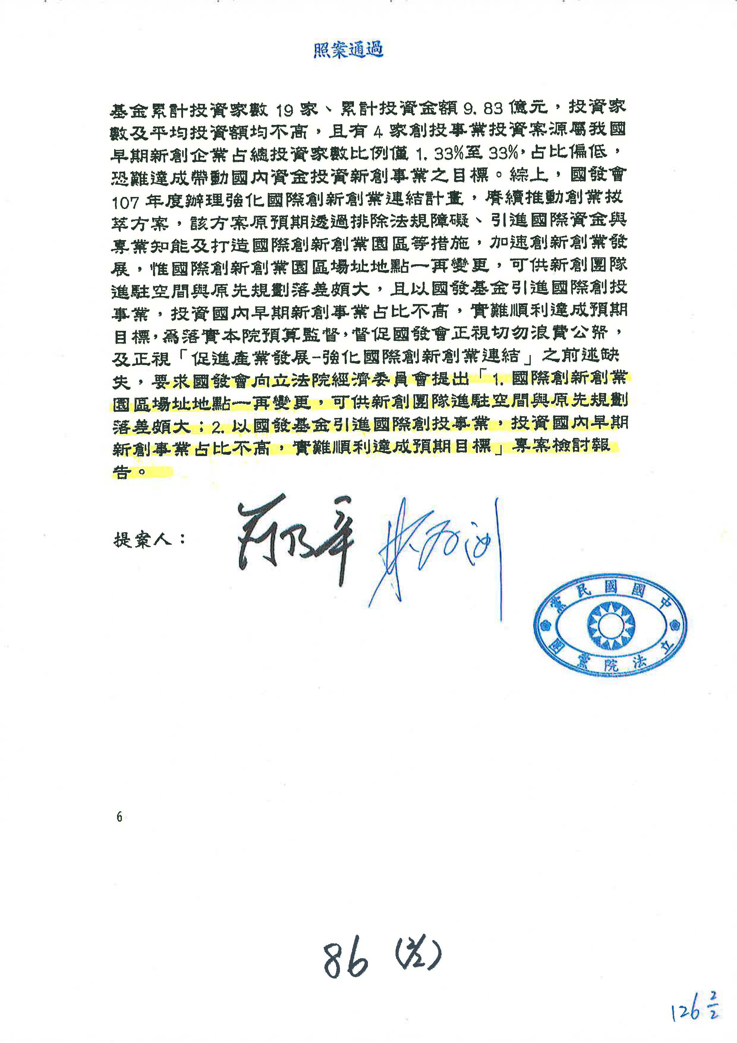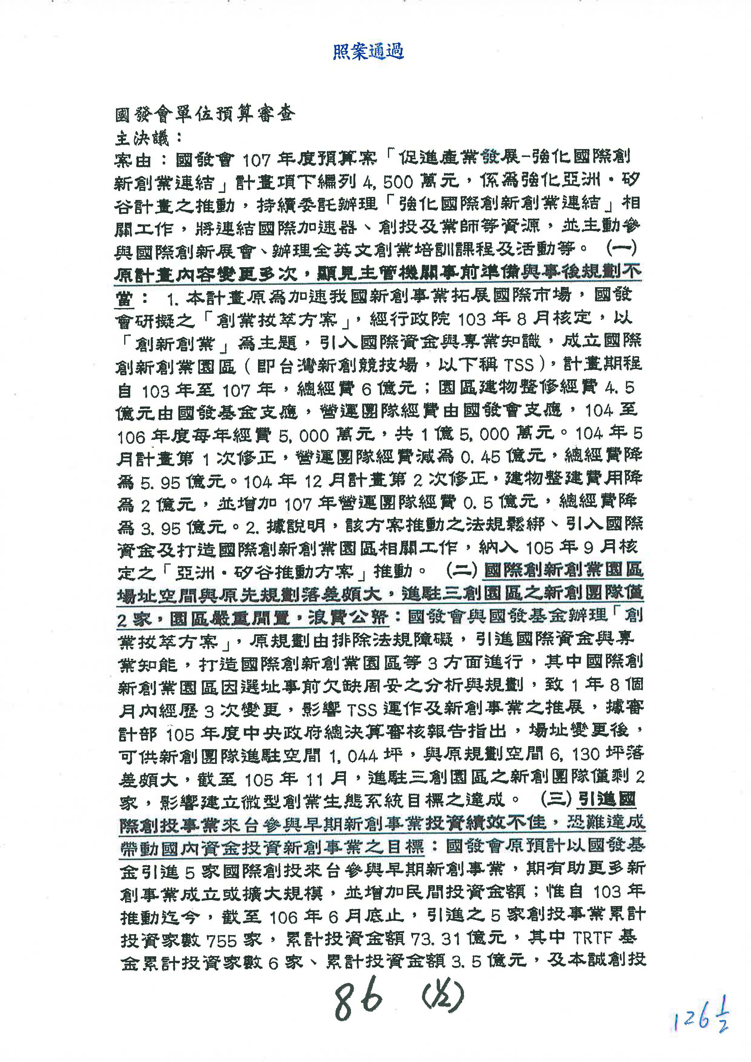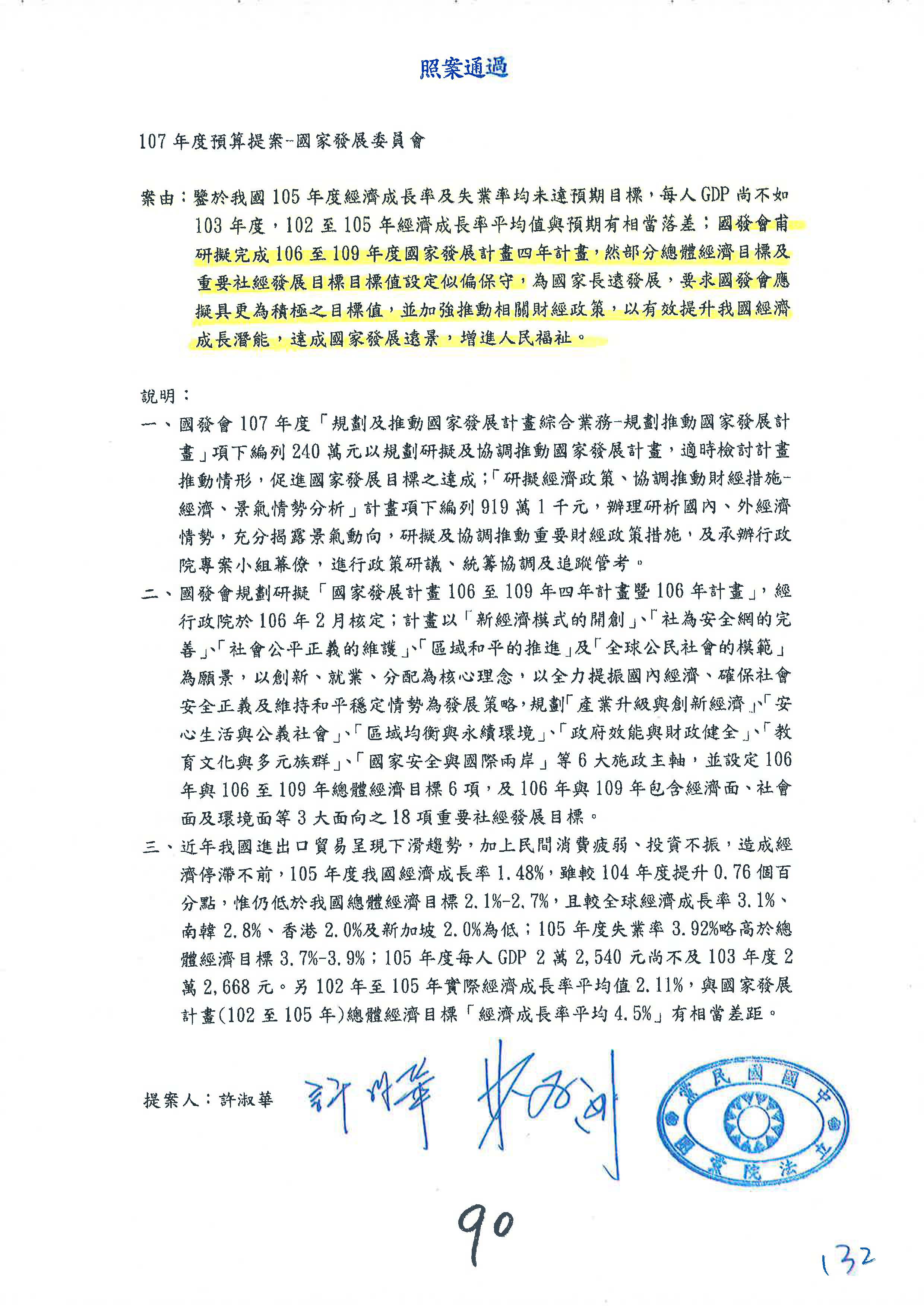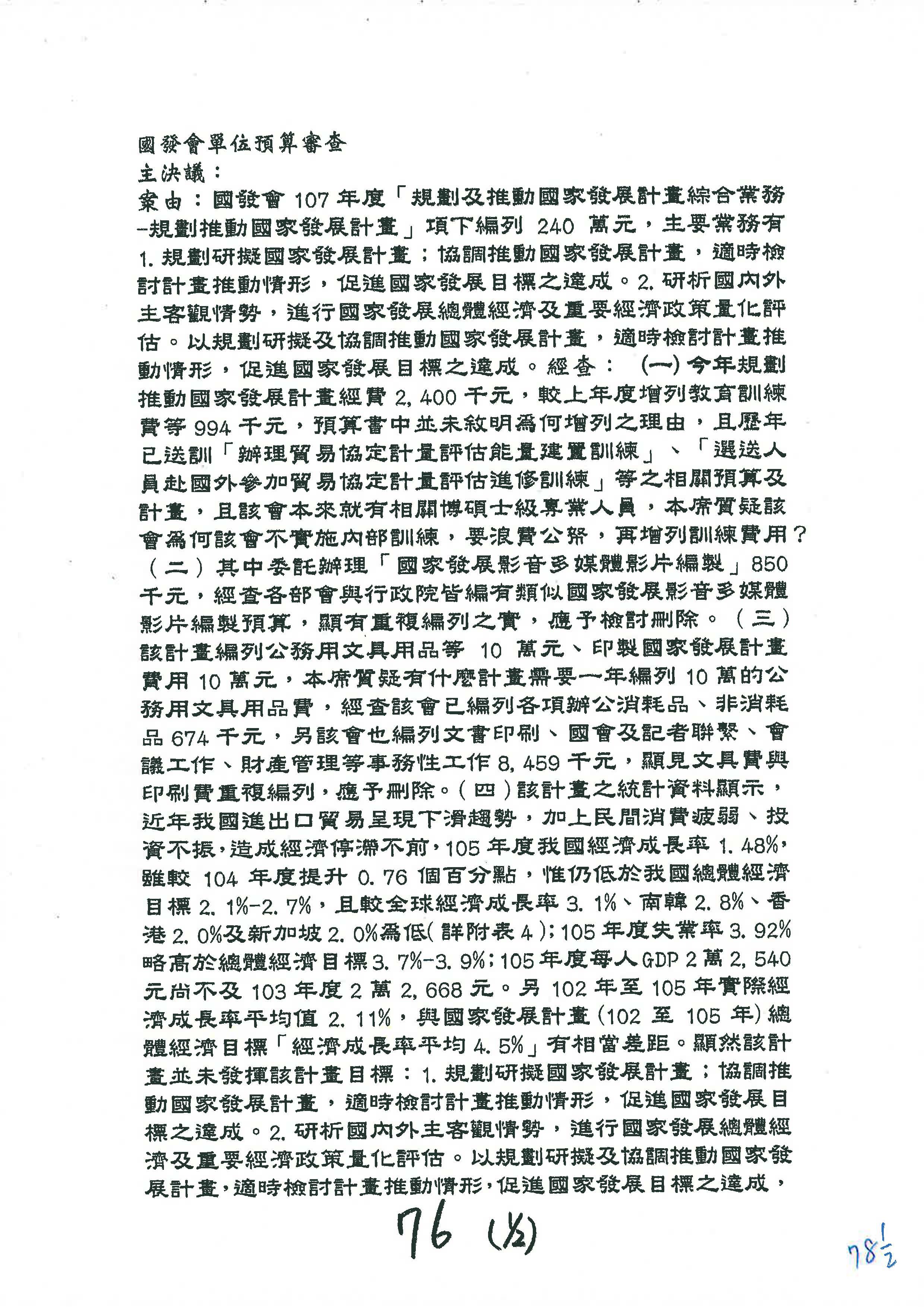 主席:報告院會,外交及國防委員會審查部分除保留部分外,其餘均照協商結論通過。