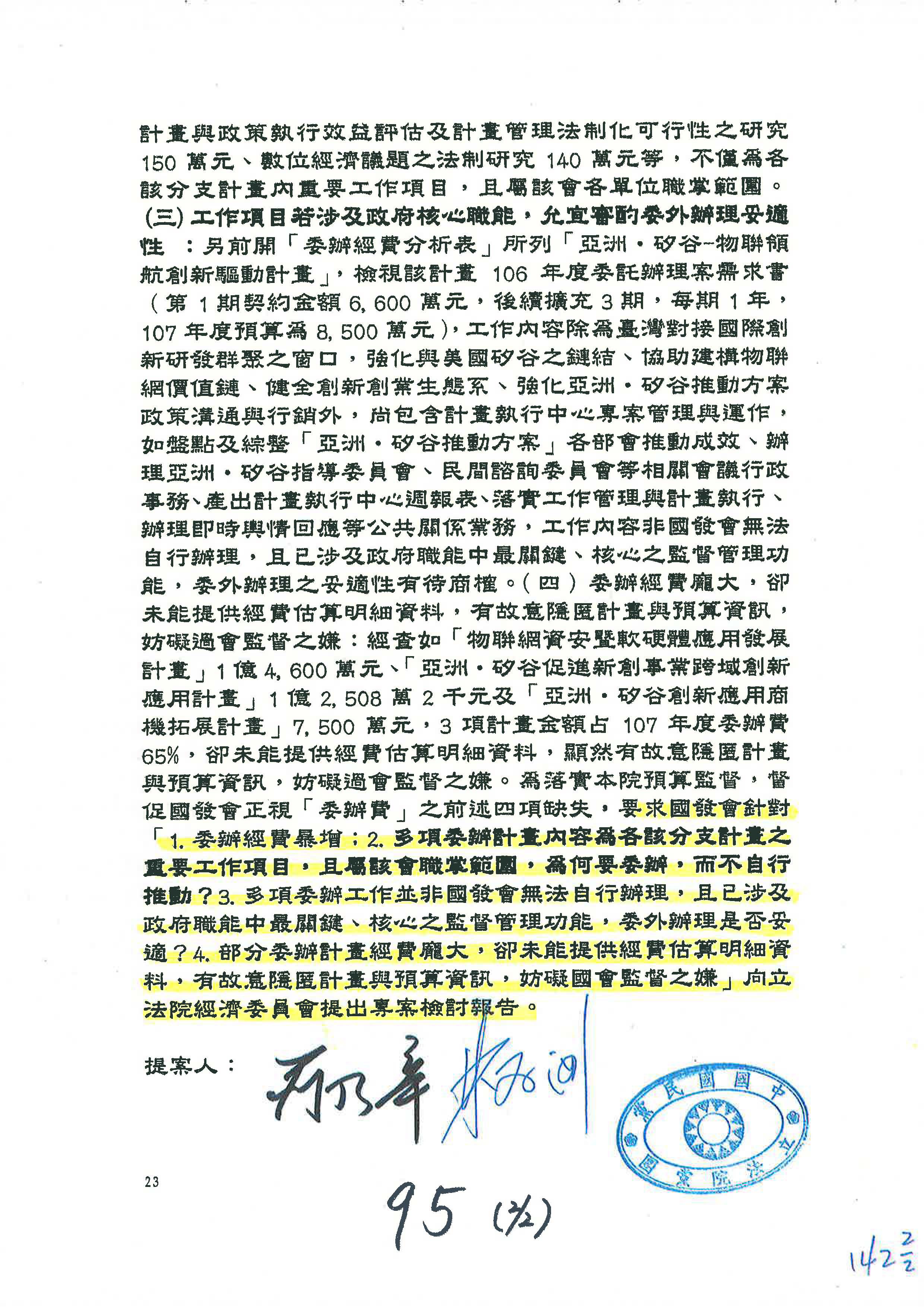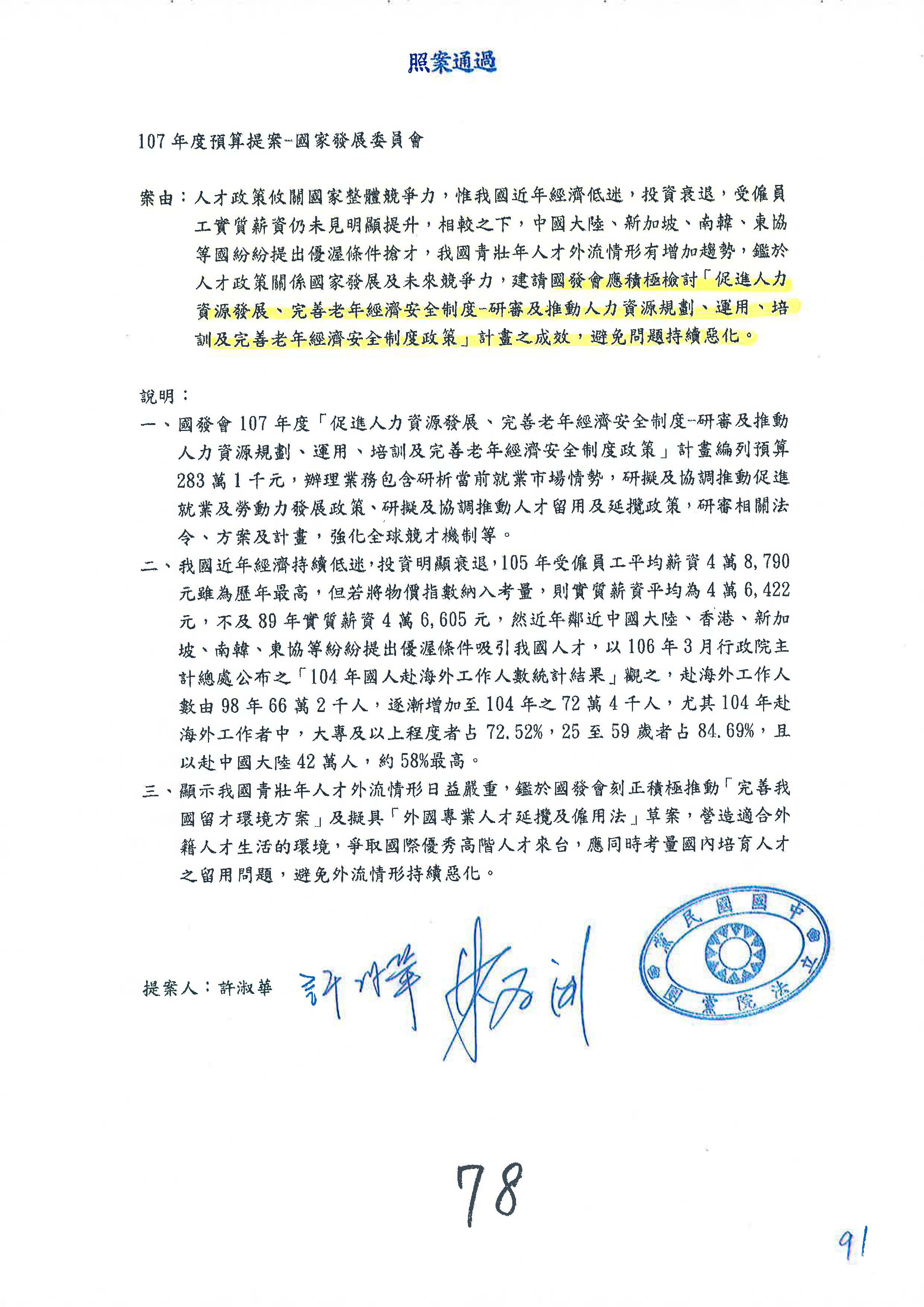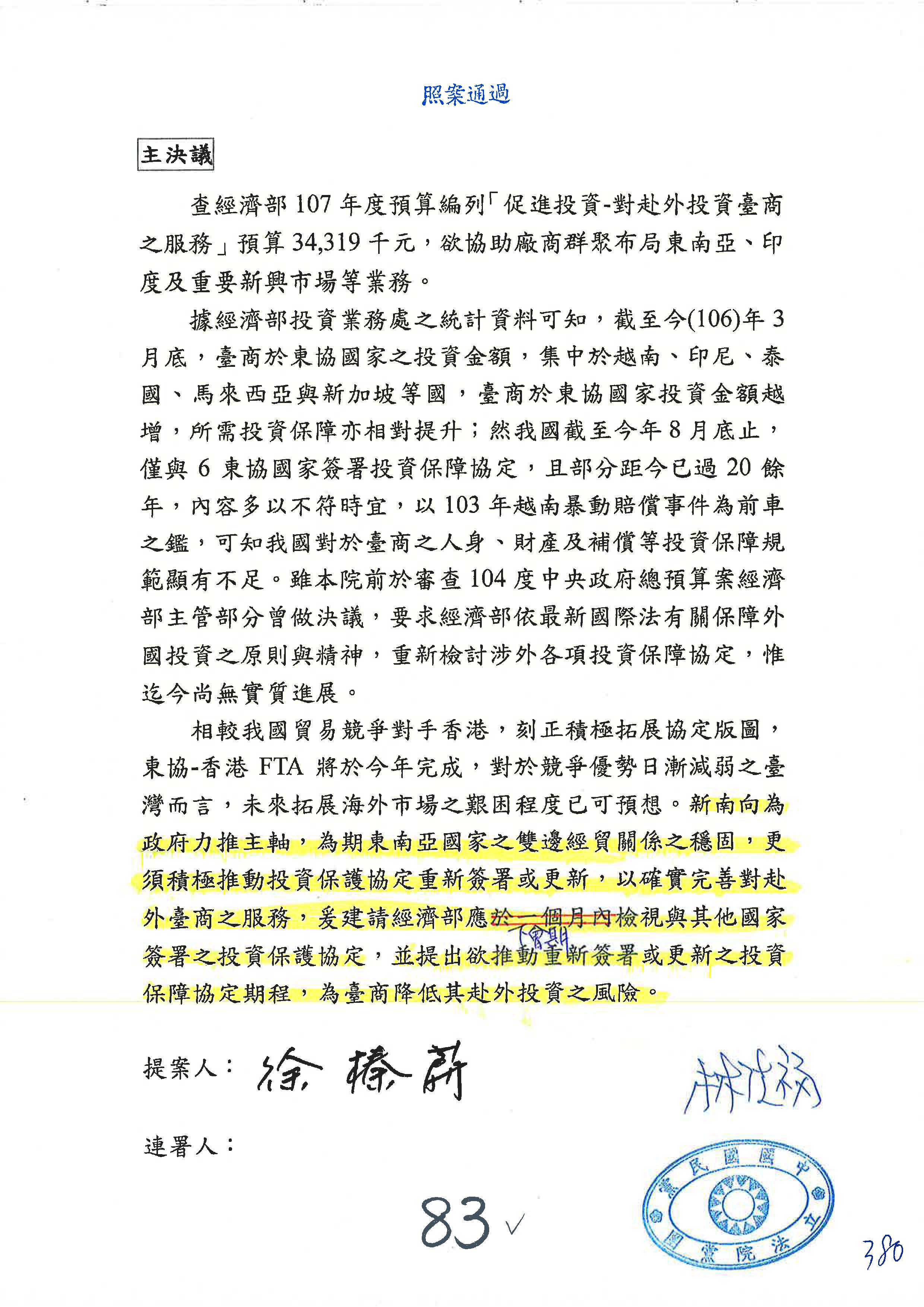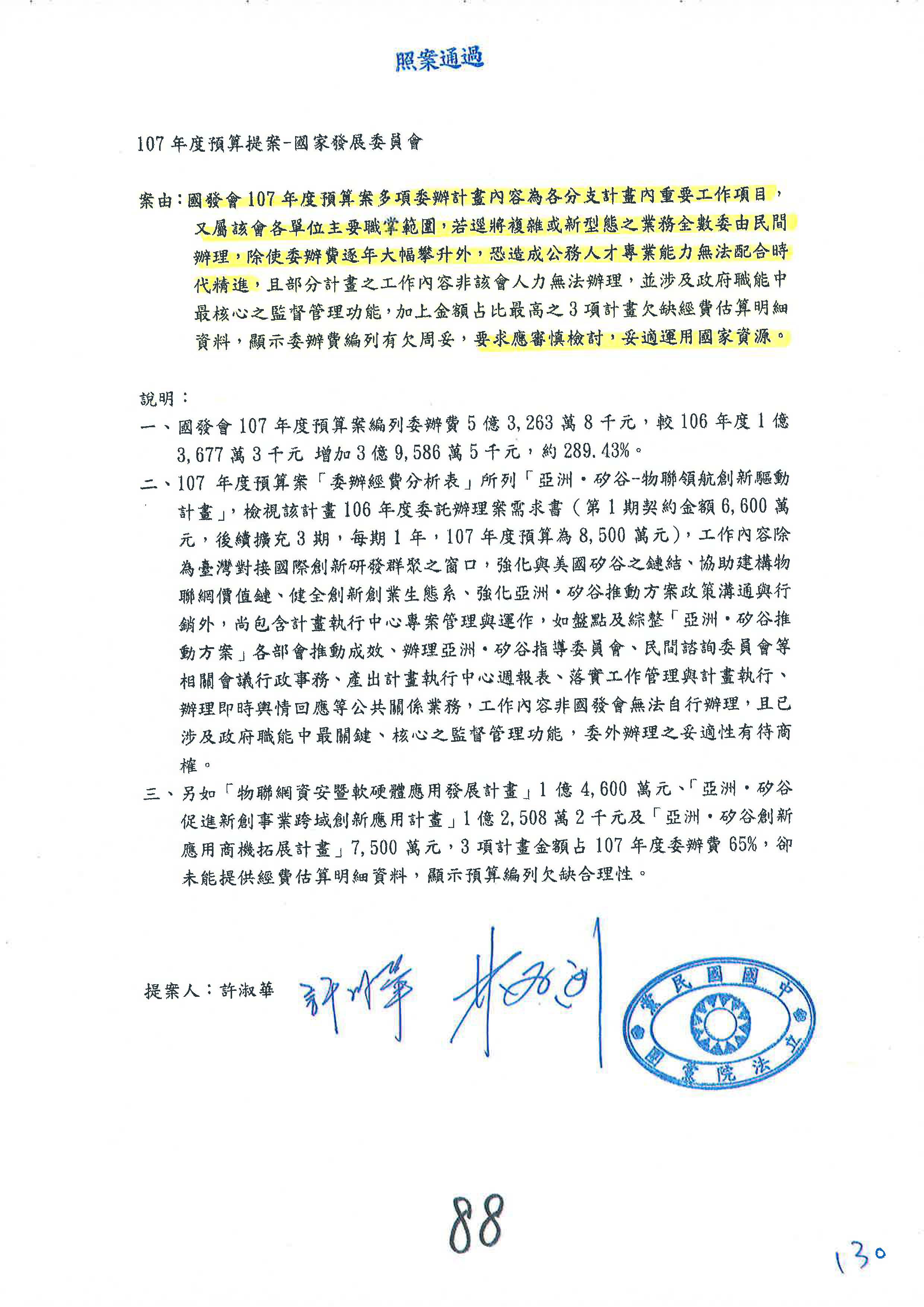 主席:報告院會,外交及國防委員會審查部分除保留部分外,其餘均照協商結論通過。
